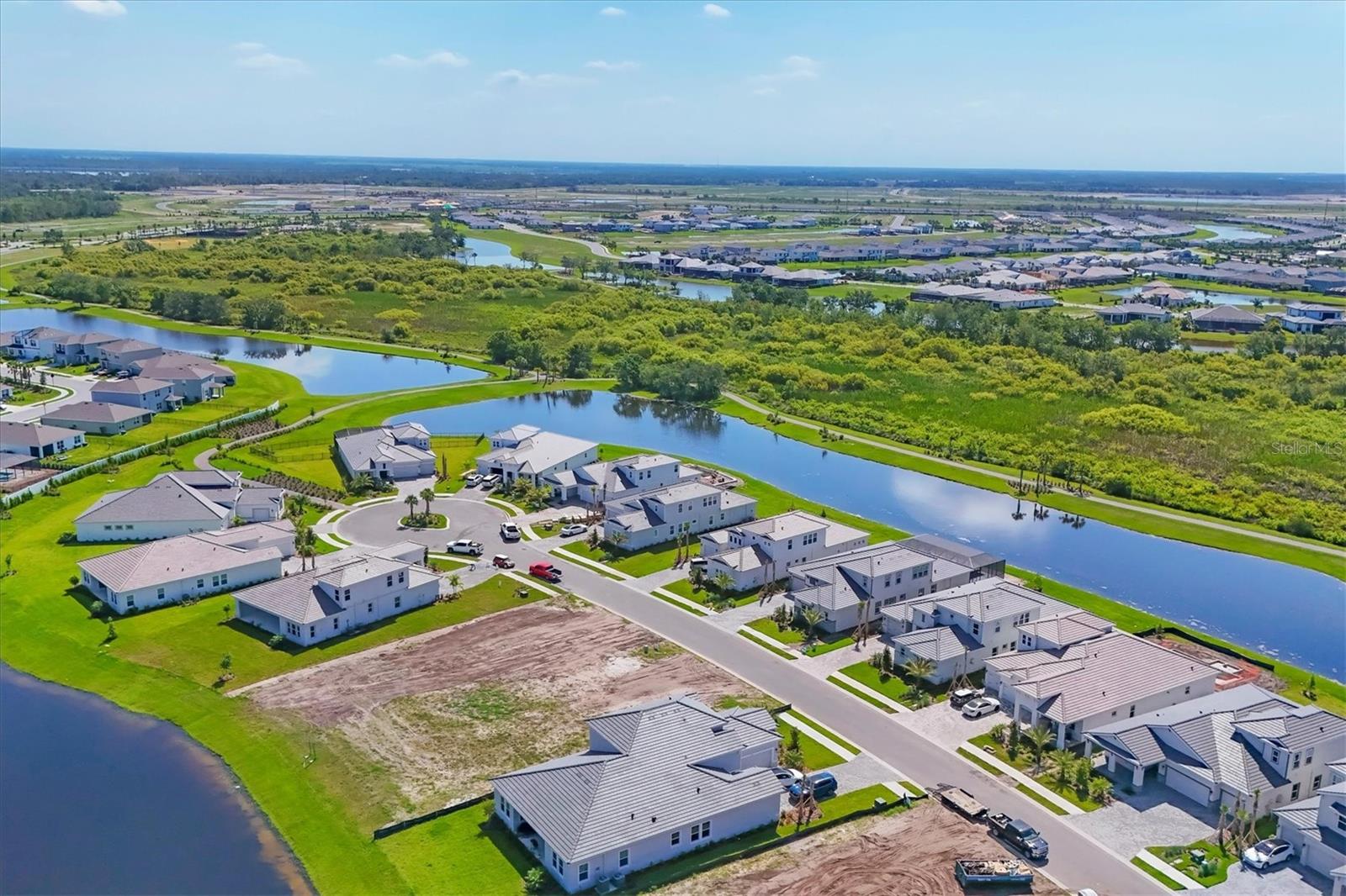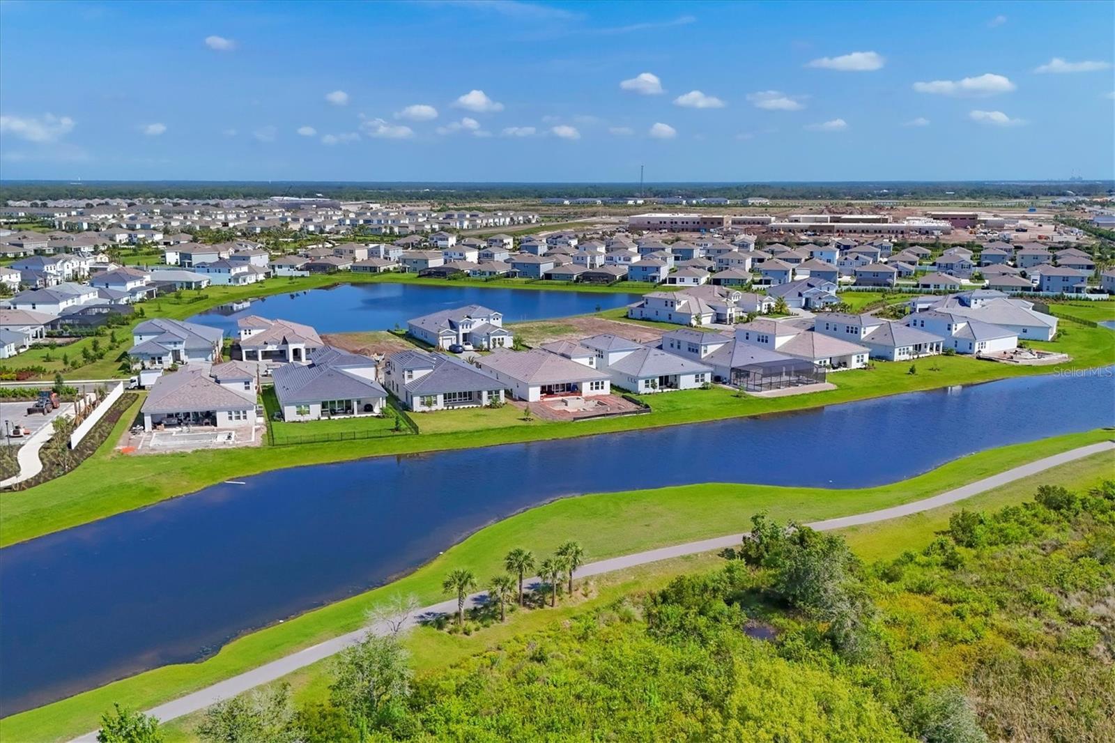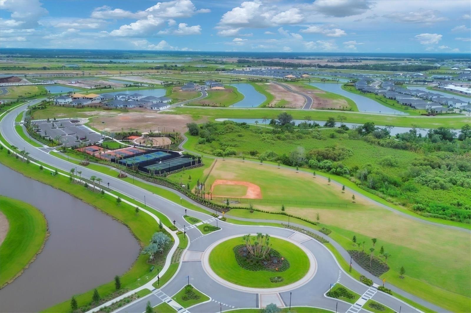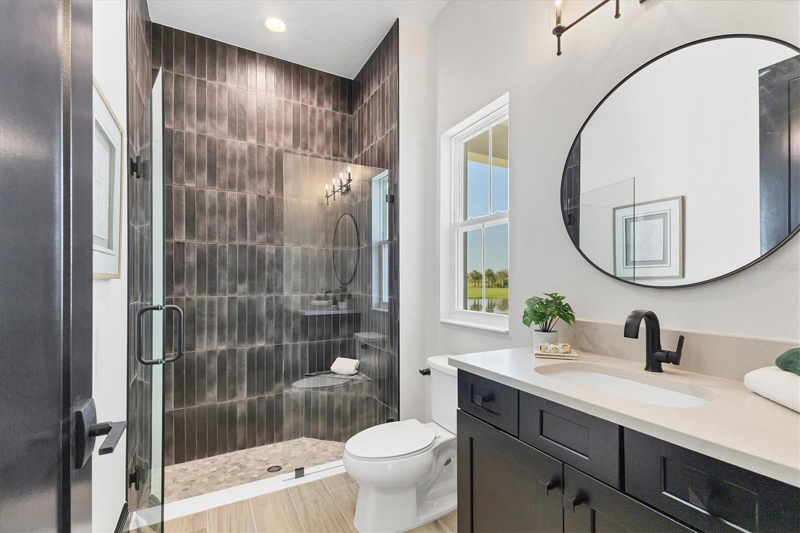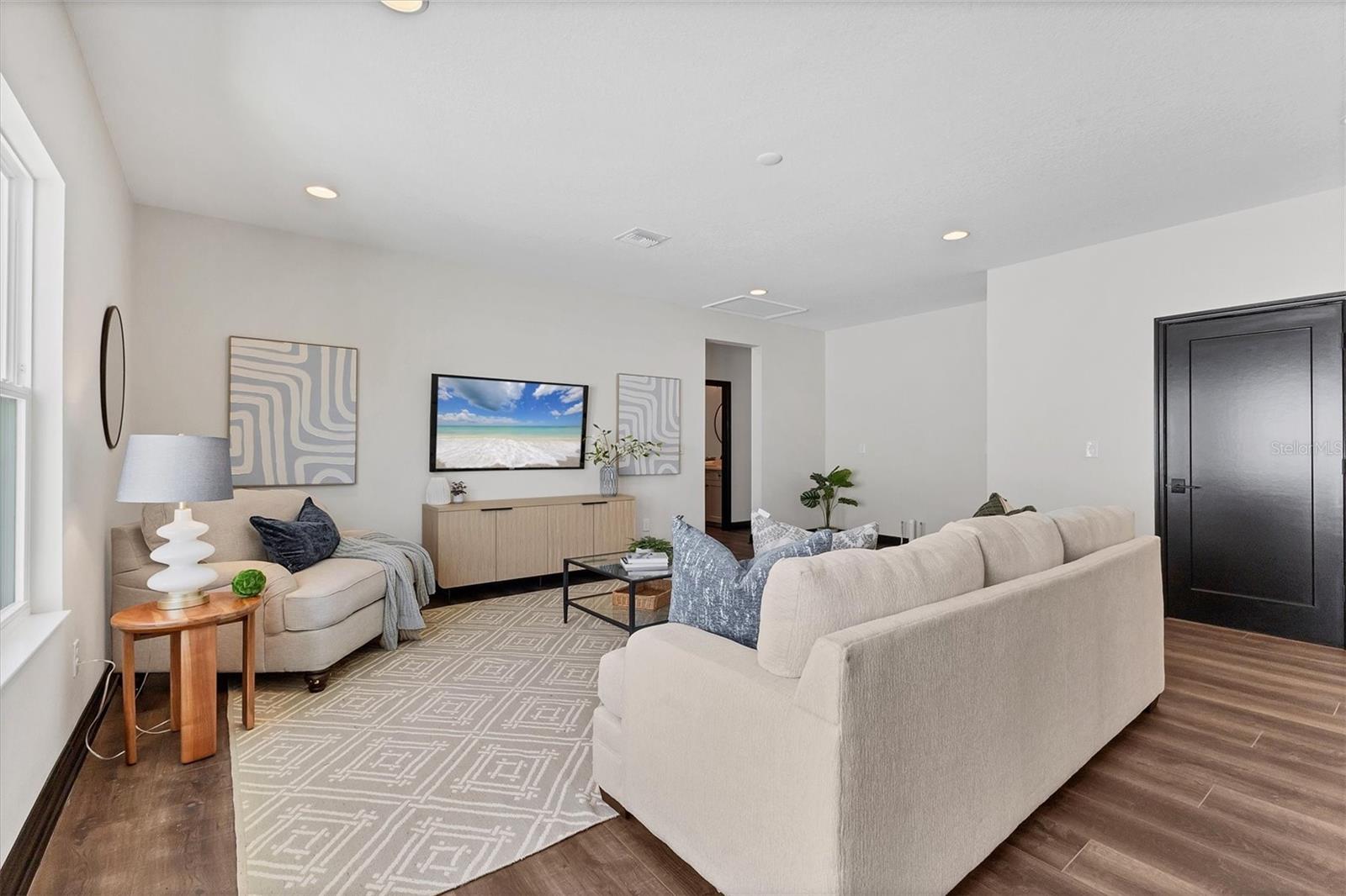 Welcome to this never-lived-in WestBay Siesta Key II model, offering over 3,700 square feet of refined living space on a quiet cul-de-sac, just a short distance from The Resort Club in Star Farms at Lakewood Ranch. This stunning two-story residence blends thoughtful design with elevated finishes, creating a balance of comfort and sophistication. Why wait to build when you can move in tomorrow? A grand double-door entry opens into a light-filled, open-concept layout with soaring 12-foot ceilings extending from the foyer through the main living areas. The spacious great room, dining space and kitchen flow seamlessly, making this home ideal for everyday living and effortless entertaining. At the heart of the home, the gourmet kitchen showcases a large waterfall-edge quartz island, GE Café appliances, Kohler apron-front farmhouse sink, walk-in pantry, glass upper cabinets and illuminated floating shelves, offering a chef-inspired environment with designer flair. The home offers four well-appointed bedrooms, each with a walk-in closet, and four full baths plus a powder bath. The expansive primary suite features a tray ceiling, additional sound insulation for peaceful relaxation, a spa-like en suite with a freestanding soaking tub, frameless glass shower with rain shower head and handheld nozzle, dual vanities and a generous walk-in closet. A large den with glass French doors provides a flexible space for a home office, library or playroom, while the oversized upstairs bonus room is pre-wired and pre-plumbed for a wet bar, fifth bedroom and guest bath, ideal for hosting guests, creating a media room or setting up a multi-generational living area. Throughout the first floor, you’ll find elegant Sandstone Beige wood-look porcelain tile, while the second floor features durable luxury vinyl for style and ease of maintenance. High-end details such as solid core doors, crown moldings, custom baseboards and thoughtful trim work elevate the entire home. A spacious laundry room with abundant cabinetry and a utility sink offers added convenience. The split three-car garage provides ample storage and functionality, while the covered lanai invites outdoor living with enough space to accommodate a custom pool. In the vibrant Star Farms community, this home comes with access to a wide array of resort-style amenities. The Resort Club features a zero-entry pool and spa, fitness center, coffee shop and private cabanas. The StarFit Fitness Center offers group classes, cardio equipment and strength training. Future amenities include a poolside bar and grill, event center and Junction Place—a family-focused complex with a baseball field, tennis courts, pickleball, basketball, sand volleyball, another resort pool and splashpad, and a pet park. Lifestyle conveniences also include concierge and hospitality services, community clubs and three planned dining venues. Enjoy the best of Lakewood Ranch living, with top-rated schools, Lakewood Ranch Medical Center, Sarasota Polo Club, 140-acre Premier Sports Campus and three town centers offering theaters, shopping and dining just minutes away. This is more than a home, it's a complete lifestyle.