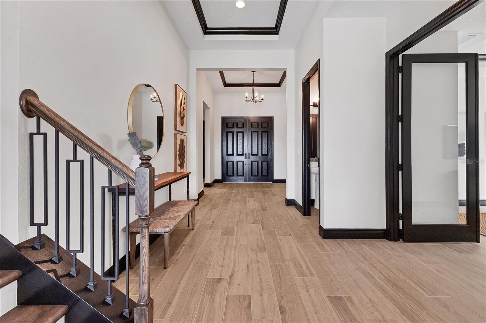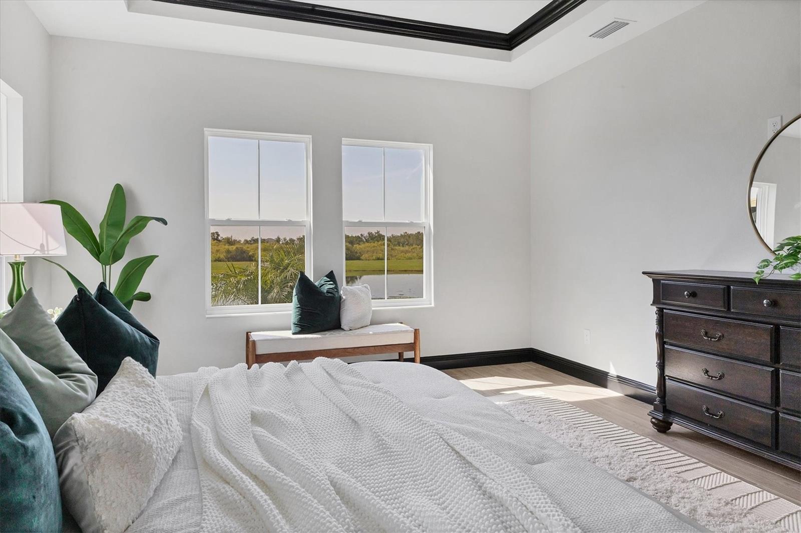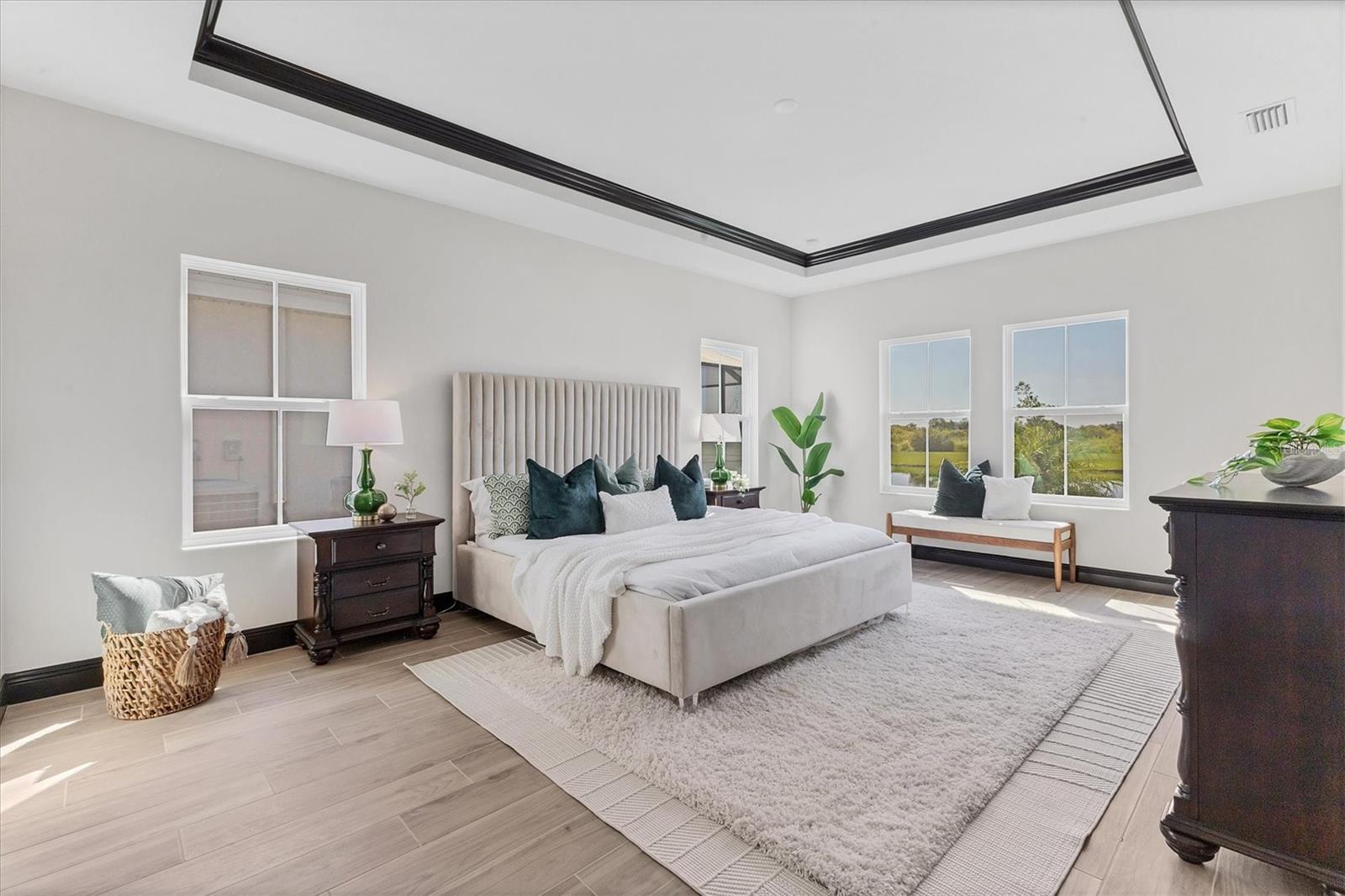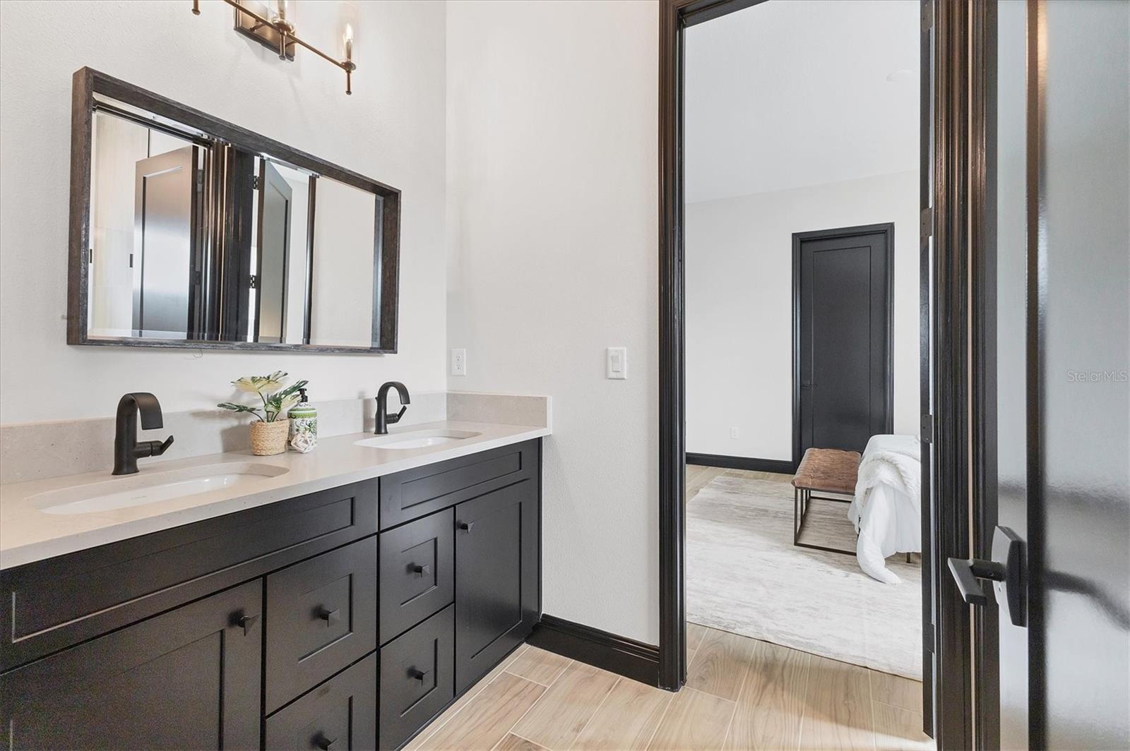 Welcome to this never-lived-in WestBay Siesta Key II model, offering over 3,700 square feet of refined living space on a quiet cul-de-sac, just a short distance from The Resort Club in Star Farms at Lakewood Ranch. This stunning two-story residence blends thoughtful design with elevated finishes, creating a balance of comfort and sophistication. Why wait to build when you can move in tomorrow? A grand double-door entry opens into a light-filled, open-concept layout with soaring 12-foot ceilings extending from the foyer through the main living areas. The spacious great room, dining space and kitchen flow seamlessly, making this home ideal for everyday living and effortless entertaining. At the heart of the home, the gourmet kitchen showcases a large waterfall-edge quartz island, GE Café appliances, Kohler apron-front farmhouse sink, walk-in pantry, glass upper cabinets and illuminated floating shelves, offering a chef-inspired environment with designer flair. The home offers four well-appointed bedrooms, each with a walk-in closet, and four full baths plus a powder bath. The expansive primary suite features a tray ceiling, additional sound insulation for peaceful relaxation, a spa-like en suite with a freestanding soaking tub, frameless glass shower with rain shower head and handheld nozzle, dual vanities and a generous walk-in closet. A large den with glass French doors provides a flexible space for a home office, library or playroom, while the oversized upstairs bonus room is pre-wired and pre-plumbed for a wet bar, fifth bedroom and guest bath, ideal for hosting guests, creating a media room or setting up a multi-generational living area. Throughout the first floor, you’ll find elegant Sandstone Beige wood-look porcelain tile, while the second floor features durable luxury vinyl for style and ease of maintenance. High-end details such as solid core doors, crown moldings, custom baseboards and thoughtful trim work elevate the entire home. A spacious laundry room with abundant cabinetry and a utility sink offers added convenience. The split three-car garage provides ample storage and functionality, while the covered lanai invites outdoor living with enough space to accommodate a custom pool. In the vibrant Star Farms community, this home comes with access to a wide array of resort-style amenities. The Resort Club features a zero-entry pool and spa, fitness center, coffee shop and private cabanas. The StarFit Fitness Center offers group classes, cardio equipment and strength training. Future amenities include a poolside bar and grill, event center and Junction Place—a family-focused complex with a baseball field, tennis courts, pickleball, basketball, sand volleyball, another resort pool and splashpad, and a pet park. Lifestyle conveniences also include concierge and hospitality services, community clubs and three planned dining venues. Enjoy the best of Lakewood Ranch living, with top-rated schools, Lakewood Ranch Medical Center, Sarasota Polo Club, 140-acre Premier Sports Campus and three town centers offering theaters, shopping and dining just minutes away. This is more than a home, it's a complete lifestyle.