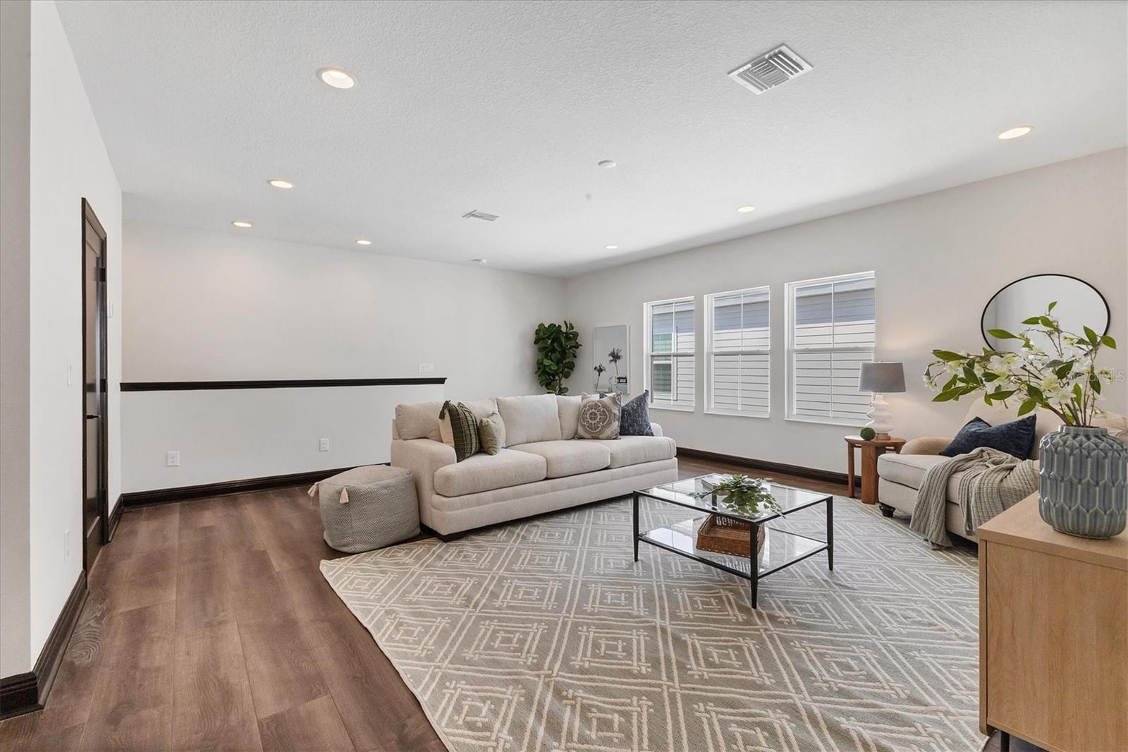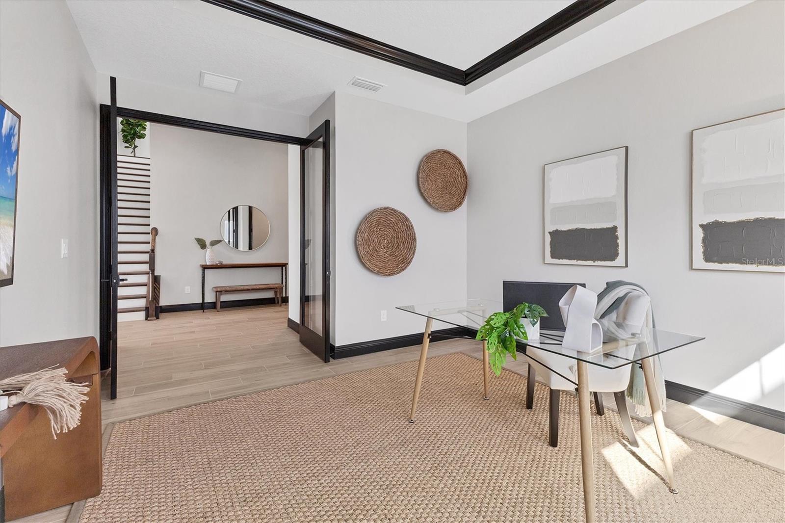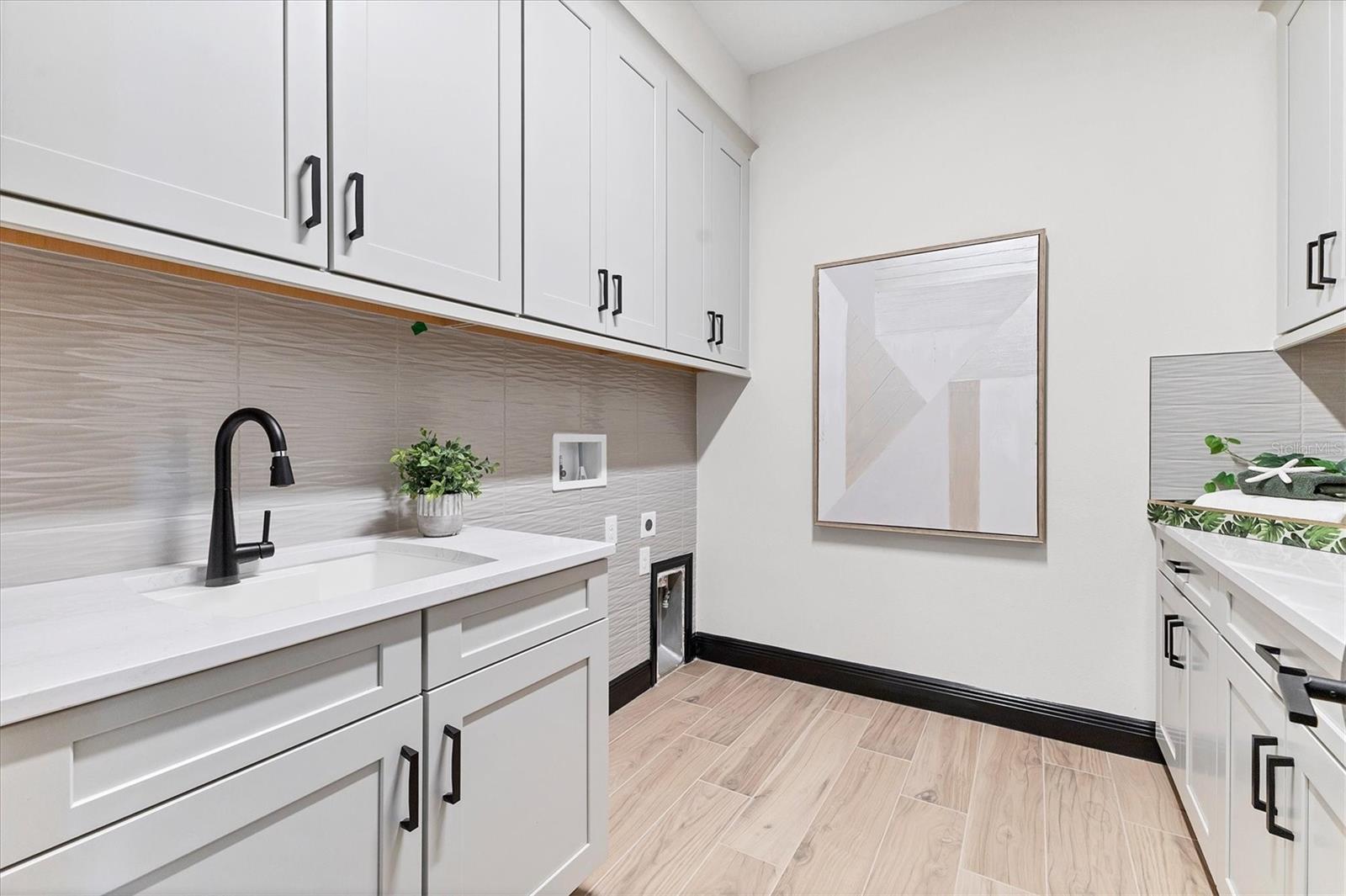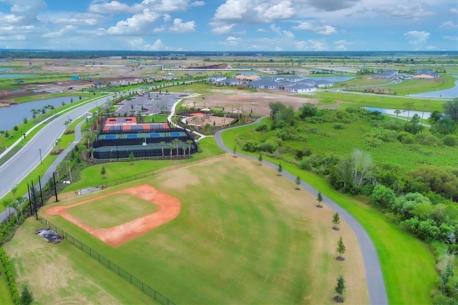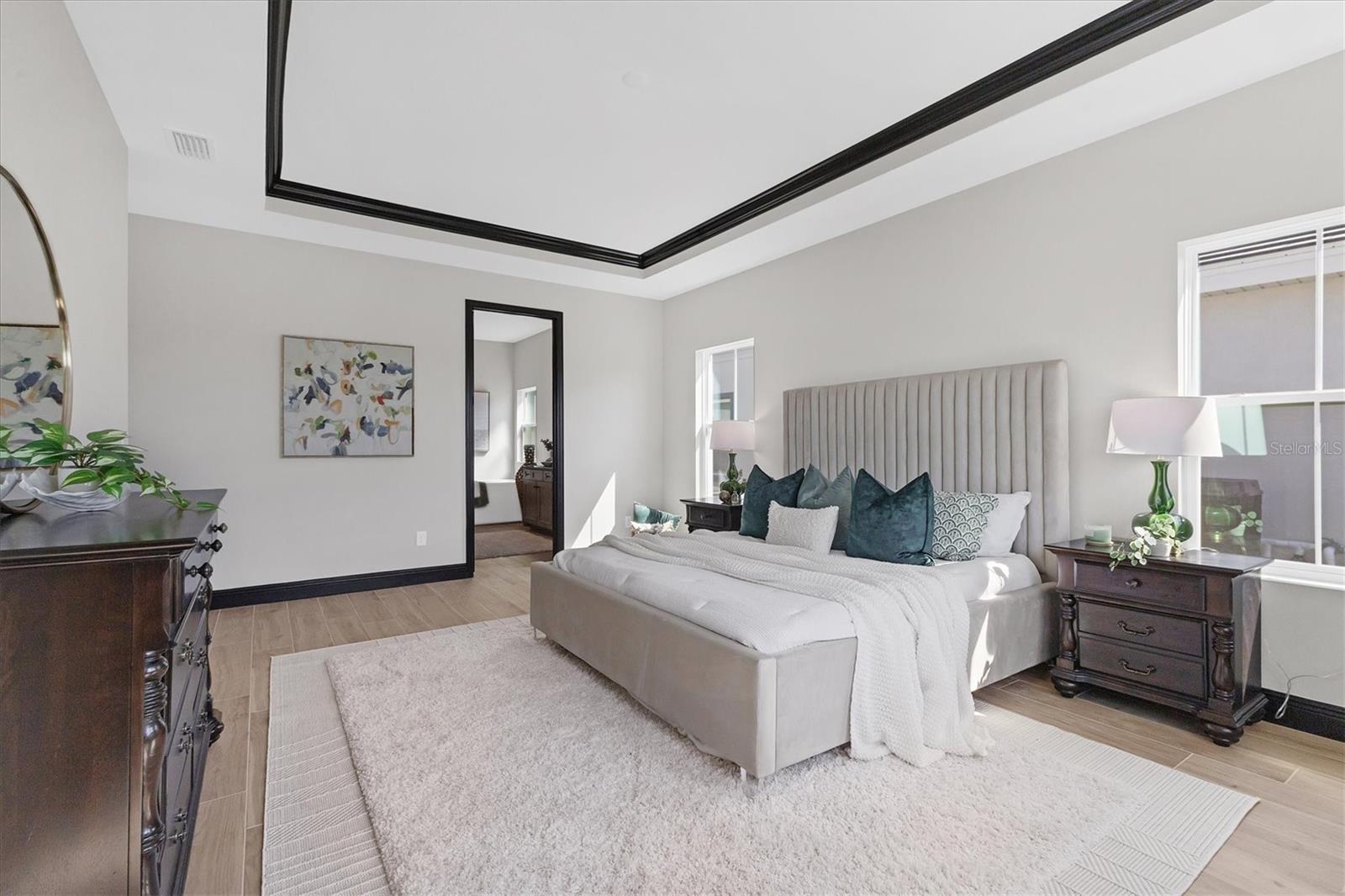 Welcome to this never-lived-in WestBay Siesta Key II model, offering over 3,700 square feet of refined living space on a quiet cul-de-sac, just a short distance from The Resort Club in Star Farms at Lakewood Ranch. This stunning two-story residence blends thoughtful design with elevated finishes, creating a balance of comfort and sophistication. Why wait to build when you can move in tomorrow? A grand double-door entry opens into a light-filled, open-concept layout with soaring 12-foot ceilings extending from the foyer through the main living areas. The spacious great room, dining space and kitchen flow seamlessly, making this home ideal for everyday living and effortless entertaining. At the heart of the home, the gourmet kitchen showcases a large waterfall-edge quartz island, GE Café appliances, Kohler apron-front farmhouse sink, walk-in pantry, glass upper cabinets and illuminated floating shelves, offering a chef-inspired environment with designer flair. The home offers four well-appointed bedrooms, each with a walk-in closet, and four full baths plus a powder bath. The expansive primary suite features a tray ceiling, additional sound insulation for peaceful relaxation, a spa-like en suite with a freestanding soaking tub, frameless glass shower with rain shower head and handheld nozzle, dual vanities and a generous walk-in closet. A large den with glass French doors provides a flexible space for a home office, library or playroom, while the oversized upstairs bonus room is pre-wired and pre-plumbed for a wet bar, fifth bedroom and guest bath, ideal for hosting guests, creating a media room or setting up a multi-generational living area. Throughout the first floor, you’ll find elegant Sandstone Beige wood-look porcelain tile, while the second floor features durable luxury vinyl for style and ease of maintenance. High-end details such as solid core doors, crown moldings, custom baseboards and thoughtful trim work elevate the entire home. A spacious laundry room with abundant cabinetry and a utility sink offers added convenience. The split three-car garage provides ample storage and functionality, while the covered lanai invites outdoor living with enough space to accommodate a custom pool. In the vibrant Star Farms community, this home comes with access to a wide array of resort-style amenities. The Resort Club features a zero-entry pool and spa, fitness center, coffee shop and private cabanas. The StarFit Fitness Center offers group classes, cardio equipment and strength training. Future amenities include a poolside bar and grill, event center and Junction Place—a family-focused complex with a baseball field, tennis courts, pickleball, basketball, sand volleyball, another resort pool and splashpad, and a pet park. Lifestyle conveniences also include concierge and hospitality services, community clubs and three planned dining venues. Enjoy the best of Lakewood Ranch living, with top-rated schools, Lakewood Ranch Medical Center, Sarasota Polo Club, 140-acre Premier Sports Campus and three town centers offering theaters, shopping and dining just minutes away. This is more than a home, it's a complete lifestyle.