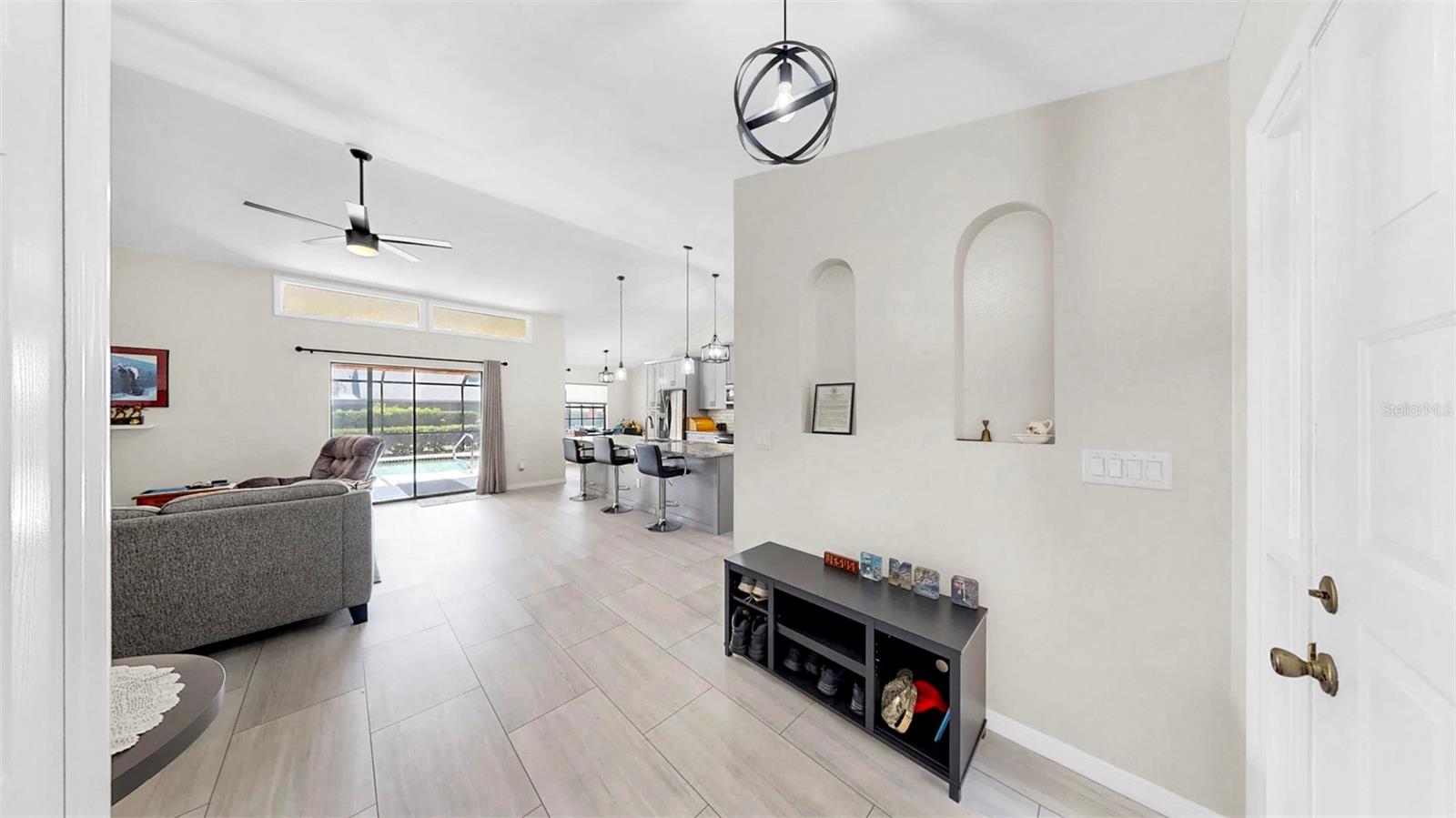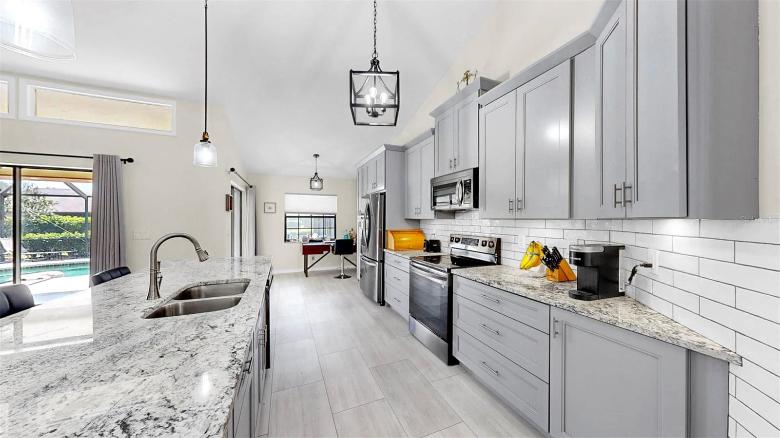 *** BRAND NEW HVAC installed June 2025!!! *** Welcome to this recently updated home in the Manatee Oaks community where the sellers have spared no expense in renovations and pride of ownership is evident! The open concept floor plan with vaulted ceilings and tile flooring throughout the main living areas, is perfect for every day living and entertaining. with the living room, dining room, and kitchen blending seamlessly. As you enter the home rom the screened in front porch, you'll find the living room straight ahead, dining room & kitchen with eat-in dinette area to your right. The kitchen has been tastefully updated featuring gray cabinets, granite countertops, stainless steel appliances, and under cabinet lighting. The home provides a split floor plan with two bedrooms and a hall bath to the right and the primary bedroom with en-suite to your left, which offers plenty of of space and privacy for everyone. The interior laundry room is conveniently located just off of the garage. Through the sliders from the living room, kitchen, and primary bedroom is the screened in lanai with in-ground heated pool, as well as an additional paver patio and fire pit, perfect for enjoying the summer days and nights! You'll be pleasantly surprised with the transformation this home has undergone during the current ownership with a new roof installed in 2023, new carpet in all bedrooms, and the countless updates throughout which means all you have to do is move in and unpack. LOW annual HOA dues and no CDD is an added bonus! The community is located near main roadways including 70, 301, 64, and I-75 with convenient proximity to shopping, dining, medical facilities, the mall at UTC, downtown Bradenton, Sarasota, Tampa, St. Pete, SRQ & TPA airports, as well as the beautiful gulf coast beaches. Don't miss this opportunity, schedule your showing today!!