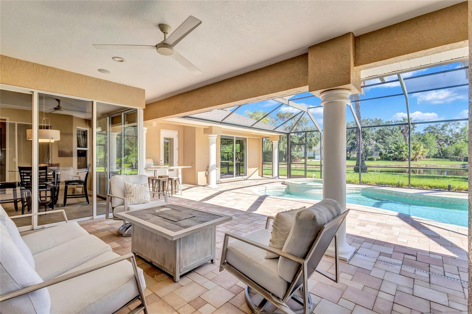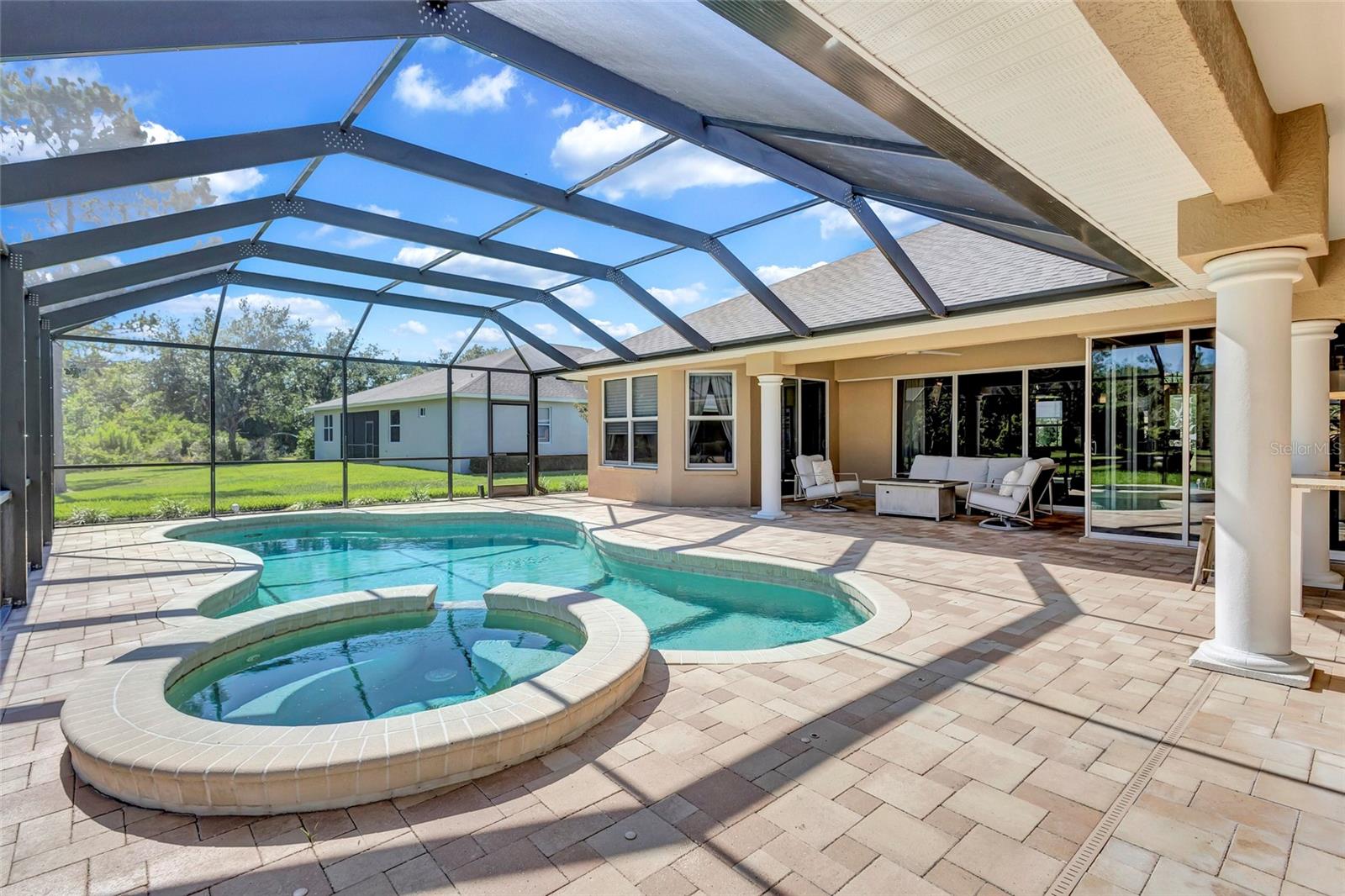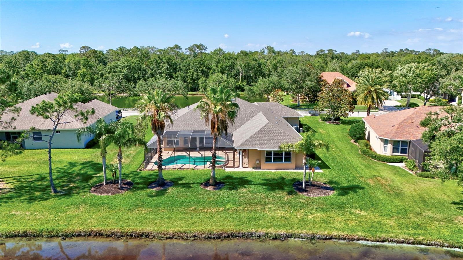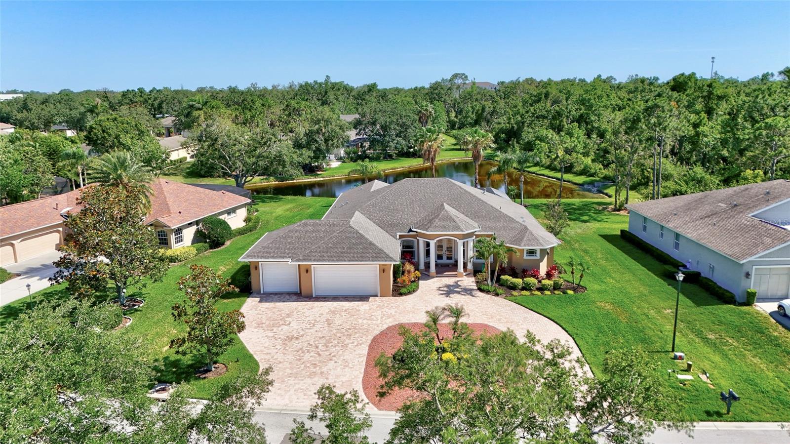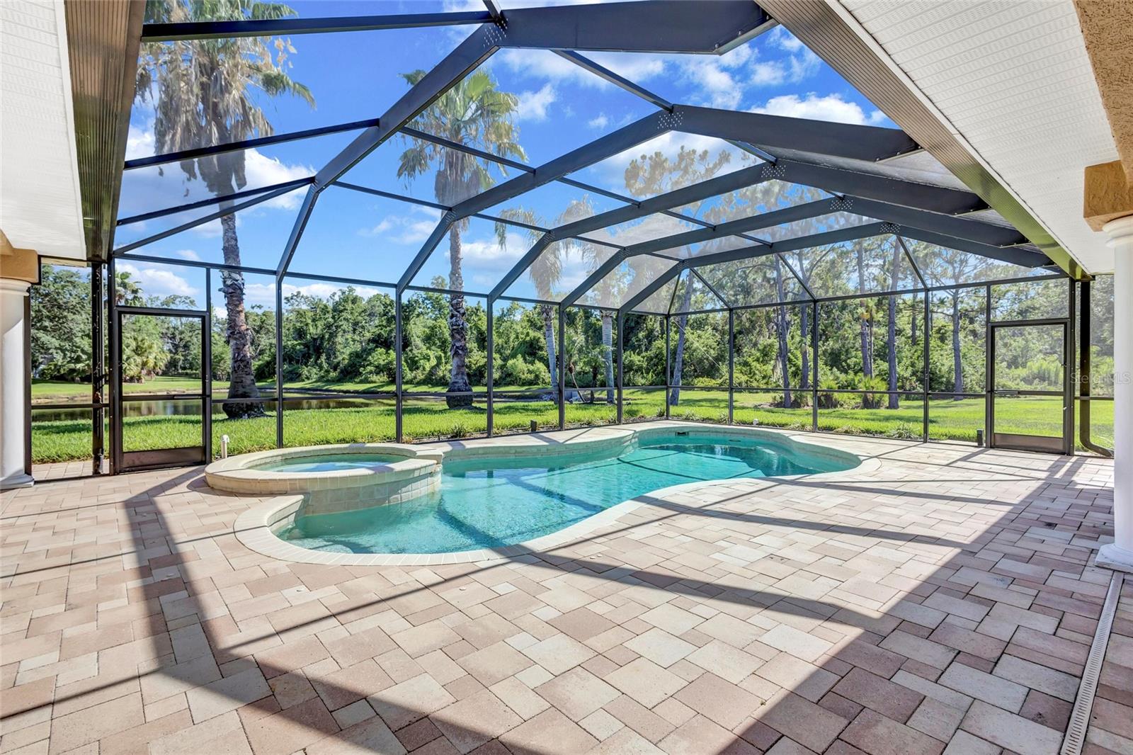 Private. Custom. Exceptional. Set on a lush, half-acre lot in sought-after Mill Creek, this custom-built 4-bedroom, 3-bath + den Salt Water pool home offers refined living with peaceful lake and preserve views both front and back. Extensively upgraded with over $100,000 in recent improvements, this move-in ready home features a brand new roof, new exterior paint, new AC system, updated pool equipment, security cameras and remote controlled room darkening blinds/ shades. IMPACT WINDOWS and a beautifully organized garage with custom shelving and epoxy flooring add even more appealing features to this amazing home. Inside, you’ll find soaring 9.5- to 14-foot ceilings, 8-foot doors, crown molding throughout, and a bright, open layout. The gourmet kitchen is a standout with 42” wood cabinetry, granite countertops, a brand-new gas range and stainless steel hood, walk-in pantry, under/over cabinet lighting, and a large bar with a breakfast nook overlooking the pool. Disappearing sliding glass doors lead to a covered lanai and sparkling pool—perfect for entertaining or relaxing in your own private oasis. The primary suite features custom closet systems, a Roman-style dual-head shower, and a separate soaking tub. Every bedroom includes a walk-in closet, and the oversized fourth bedroom offers flexible space for a bonus room, playroom, or in-law suite. A spacious laundry room with upper and lower cabinetry, electric fireplace, and an oversized 3-car garage complete the package. With low HOA fees, no CDDs, and a prime location in one of the area’s most desirable communities, this home is truly the full package.