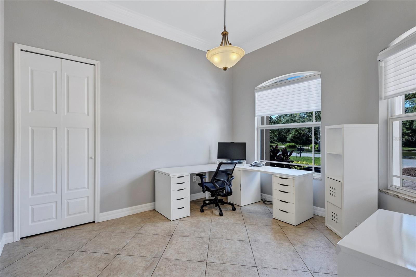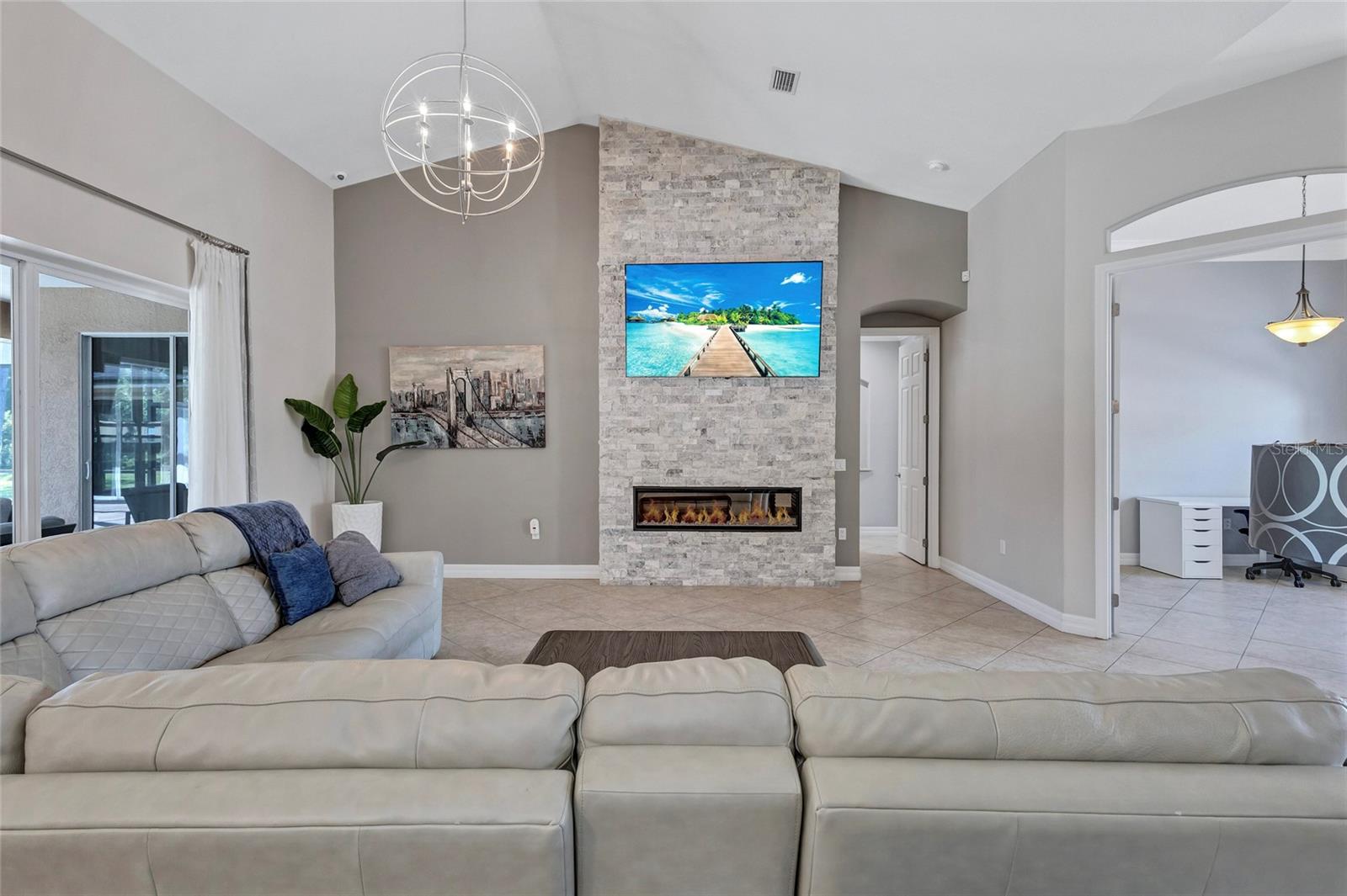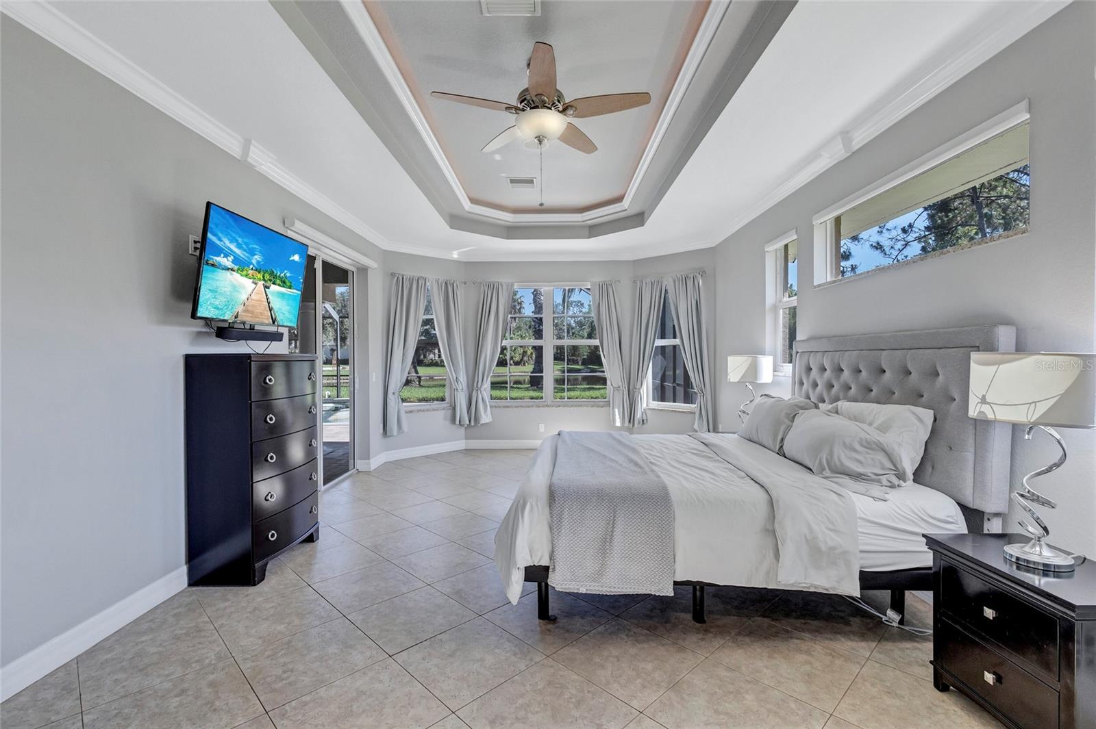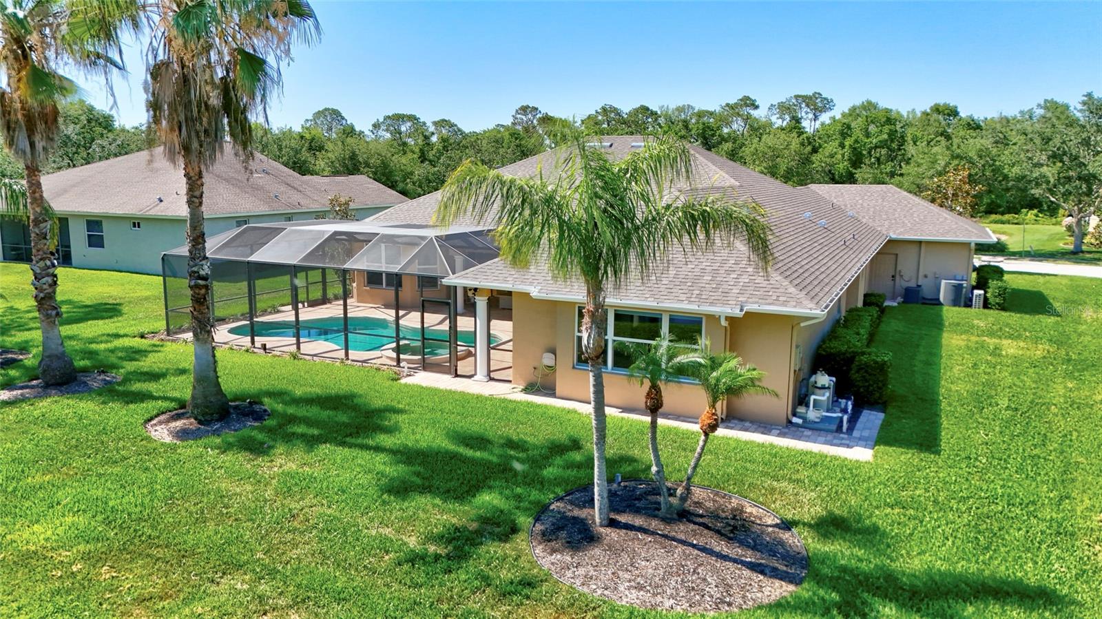 Private. Custom. Exceptional. Set on a lush, half-acre lot in sought-after Mill Creek, this custom-built 4-bedroom, 3-bath + den Salt Water pool home offers refined living with peaceful lake and preserve views both front and back. Extensively upgraded with over $100,000 in recent improvements, this move-in ready home features a brand new roof, new exterior paint, new AC system, updated pool equipment, security cameras and remote controlled room darkening blinds/ shades. IMPACT WINDOWS and a beautifully organized garage with custom shelving and epoxy flooring add even more appealing features to this amazing home. Inside, you’ll find soaring 9.5- to 14-foot ceilings, 8-foot doors, crown molding throughout, and a bright, open layout. The gourmet kitchen is a standout with 42” wood cabinetry, granite countertops, a brand-new gas range and stainless steel hood, walk-in pantry, under/over cabinet lighting, and a large bar with a breakfast nook overlooking the pool. Disappearing sliding glass doors lead to a covered lanai and sparkling pool—perfect for entertaining or relaxing in your own private oasis. The primary suite features custom closet systems, a Roman-style dual-head shower, and a separate soaking tub. Every bedroom includes a walk-in closet, and the oversized fourth bedroom offers flexible space for a bonus room, playroom, or in-law suite. A spacious laundry room with upper and lower cabinetry, electric fireplace, and an oversized 3-car garage complete the package. With low HOA fees, no CDDs, and a prime location in one of the area’s most desirable communities, this home is truly the full package.