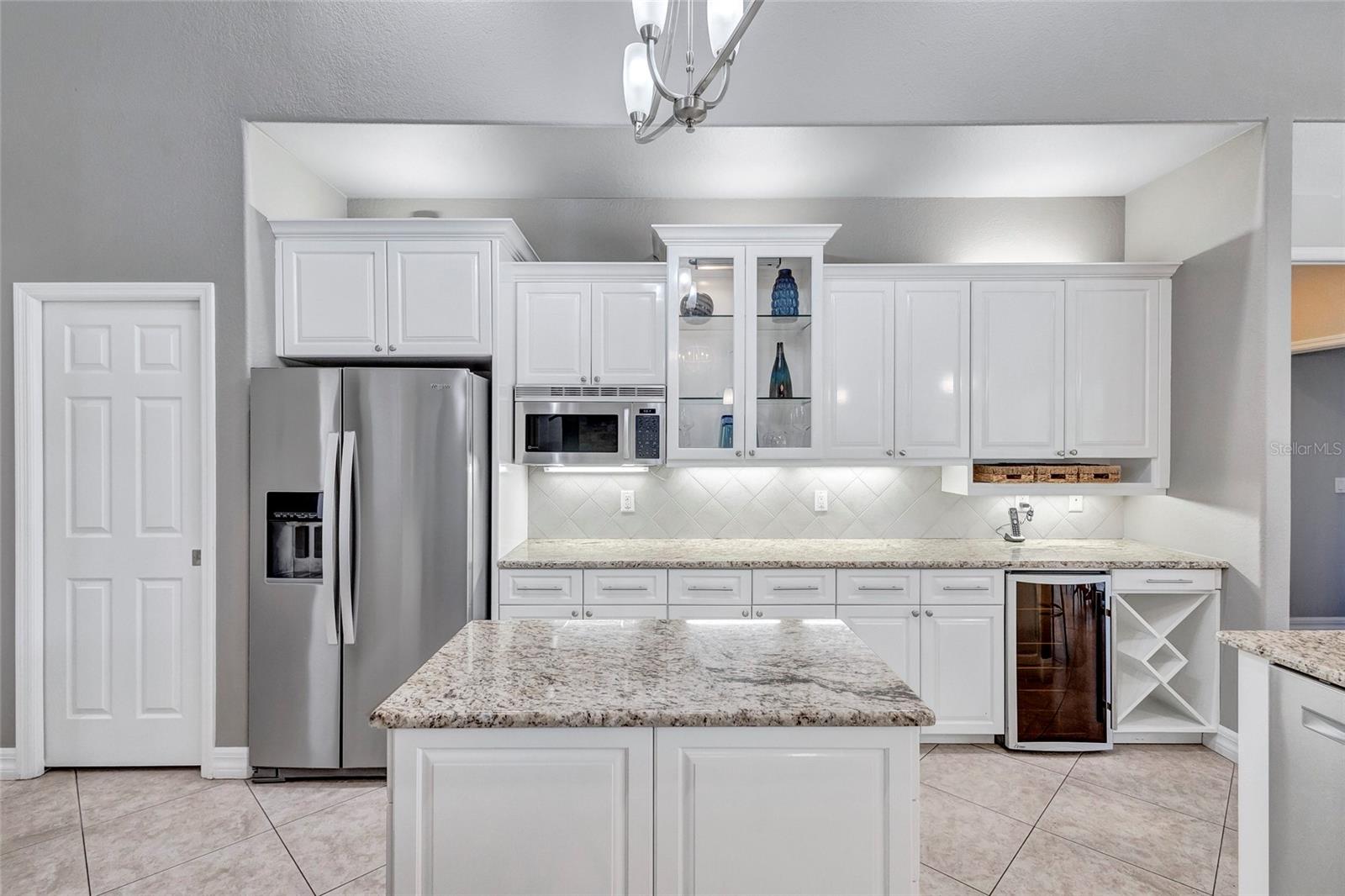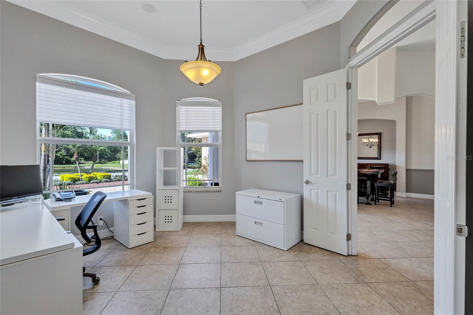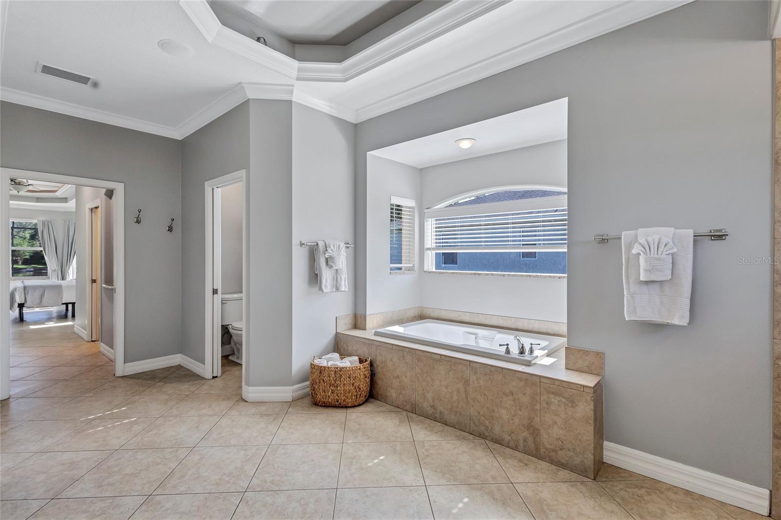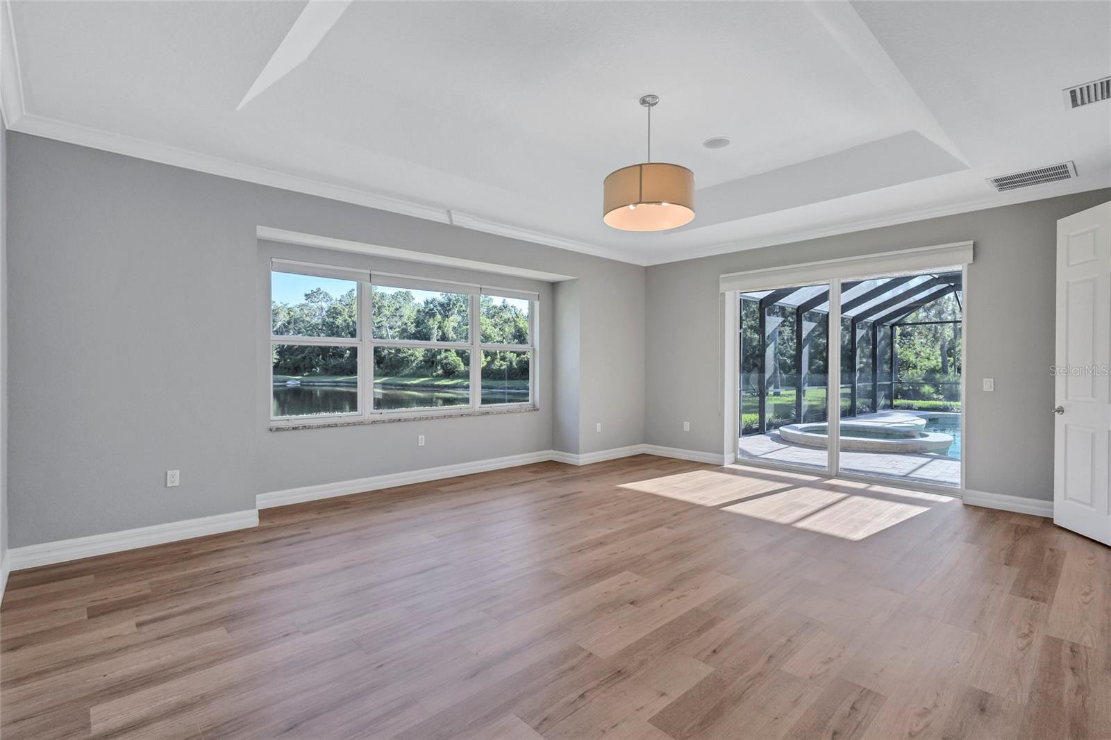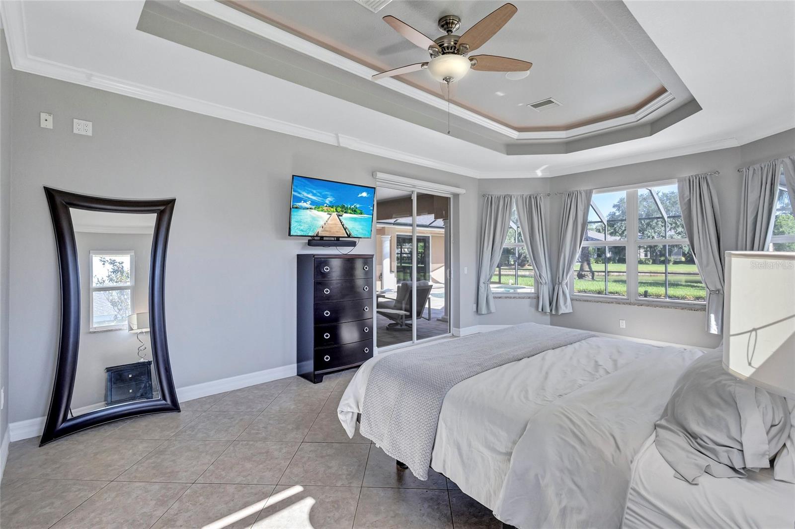 Private. Custom. Exceptional. Set on a lush, half-acre lot in sought-after Mill Creek, this custom-built 4-bedroom, 3-bath + den Salt Water pool home offers refined living with peaceful lake and preserve views both front and back. Extensively upgraded with over $100,000 in recent improvements, this move-in ready home features a brand new roof, new exterior paint, new AC system, updated pool equipment, security cameras and remote controlled room darkening blinds/ shades. IMPACT WINDOWS and a beautifully organized garage with custom shelving and epoxy flooring add even more appealing features to this amazing home. Inside, you’ll find soaring 9.5- to 14-foot ceilings, 8-foot doors, crown molding throughout, and a bright, open layout. The gourmet kitchen is a standout with 42” wood cabinetry, granite countertops, a brand-new gas range and stainless steel hood, walk-in pantry, under/over cabinet lighting, and a large bar with a breakfast nook overlooking the pool. Disappearing sliding glass doors lead to a covered lanai and sparkling pool—perfect for entertaining or relaxing in your own private oasis. The primary suite features custom closet systems, a Roman-style dual-head shower, and a separate soaking tub. Every bedroom includes a walk-in closet, and the oversized fourth bedroom offers flexible space for a bonus room, playroom, or in-law suite. A spacious laundry room with upper and lower cabinetry, electric fireplace, and an oversized 3-car garage complete the package. With low HOA fees, no CDDs, and a prime location in one of the area’s most desirable communities, this home is truly the full package.
