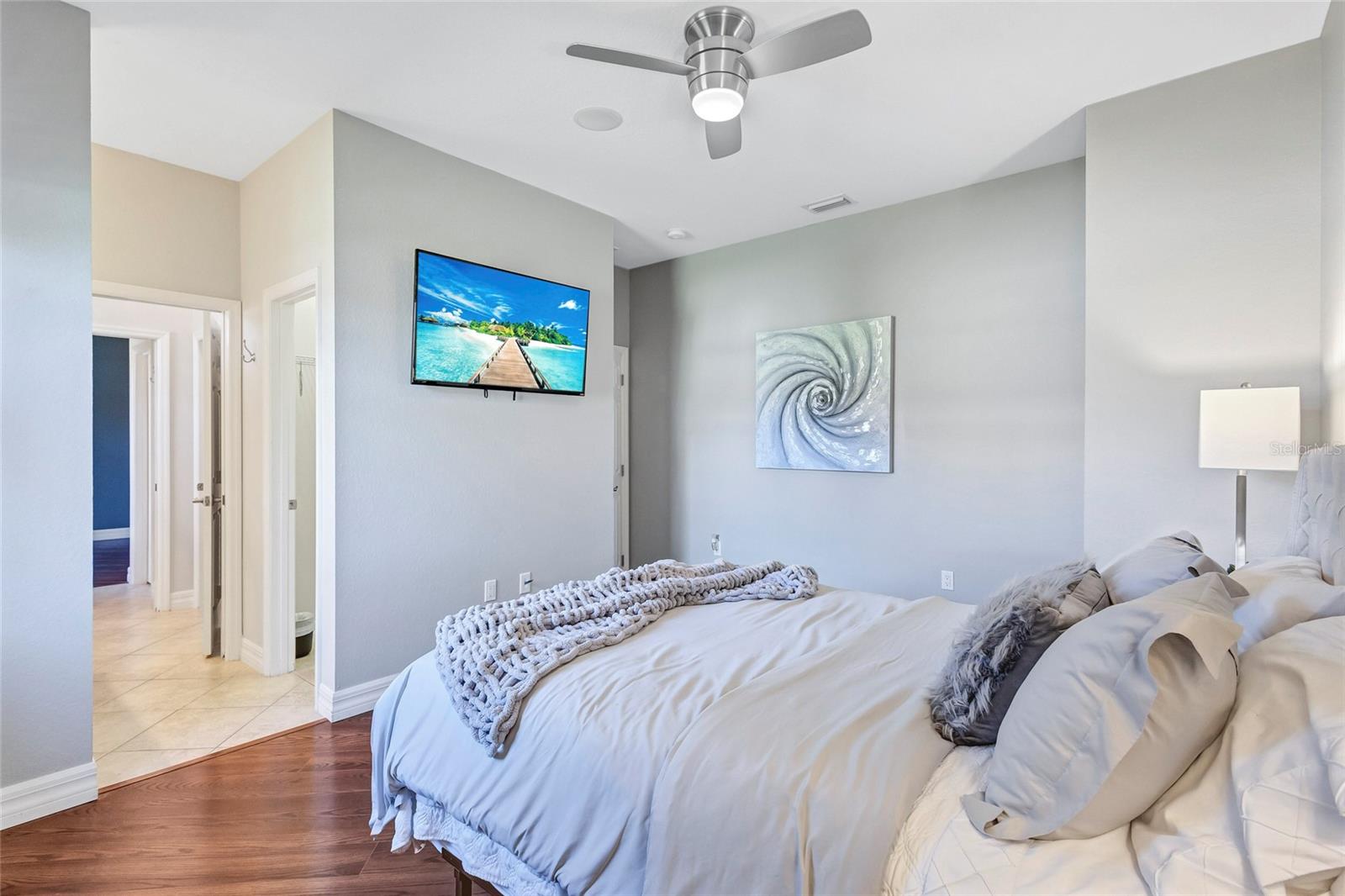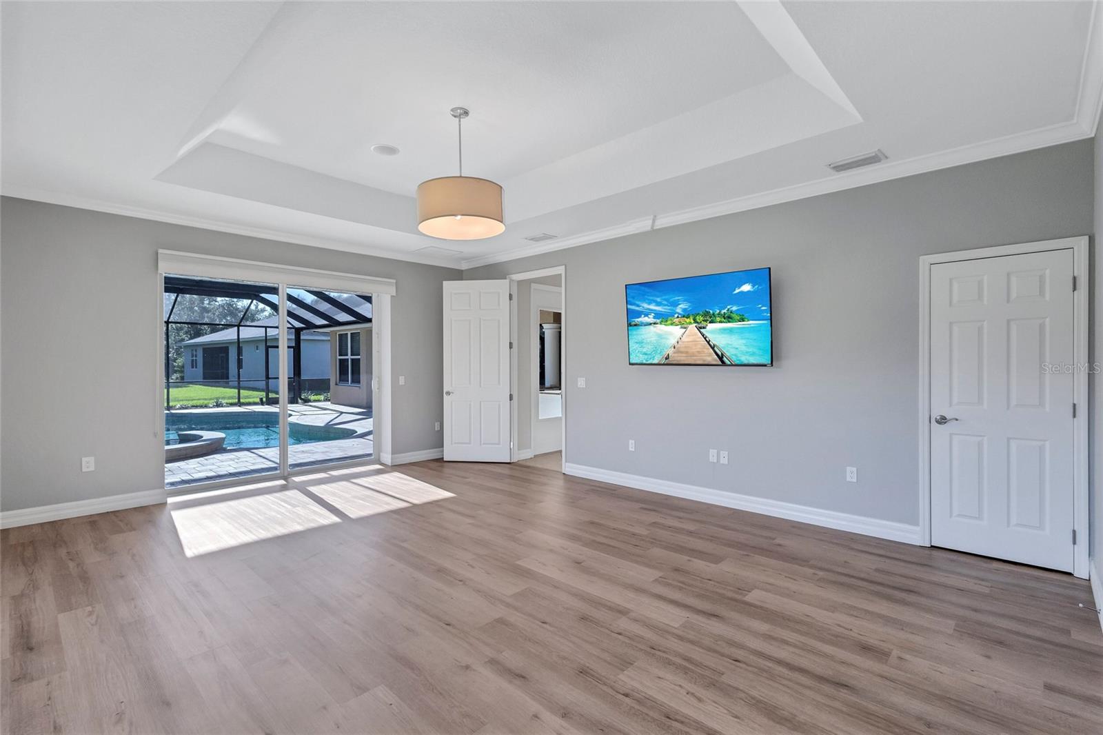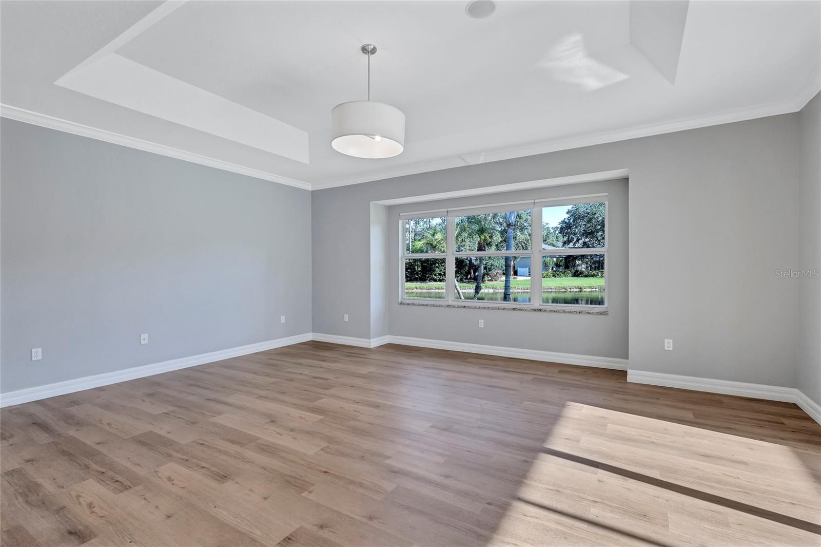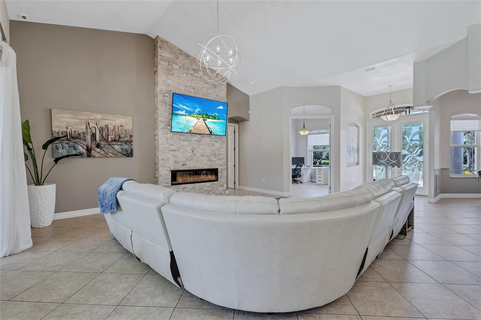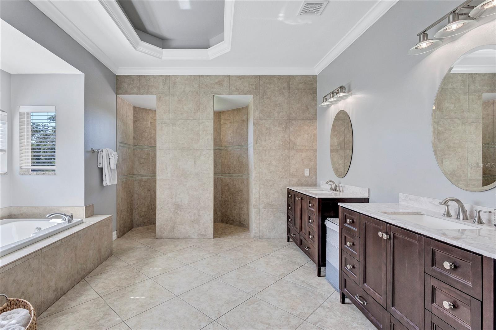Private. Custom. Exceptional. Set on a lush, half-acre lot in sought-after Mill Creek, this custom-built 4-bedroom, 3-bath + den Salt Water pool home offers refined living with peaceful lake and preserve views both front and back. Extensively upgraded with over $100,000 in recent improvements, this move-in ready home features a brand new roof, new exterior paint, new AC system, updated pool equipment, security cameras and remote controlled room darkening blinds/ shades. IMPACT WINDOWS and a beautifully organized garage with custom shelving and epoxy flooring add even more appealing features to this amazing home. Inside, you’ll find soaring 9.5- to 14-foot ceilings, 8-foot doors, crown molding throughout, and a bright, open layout. The gourmet kitchen is a standout with 42” wood cabinetry, granite countertops, a brand-new gas range and stainless steel hood, walk-in pantry, under/over cabinet lighting, and a large bar with a breakfast nook overlooking the pool. Disappearing sliding glass doors lead to a covered lanai and sparkling pool—perfect for entertaining or relaxing in your own private oasis. The primary suite features custom closet systems, a Roman-style dual-head shower, and a separate soaking tub. Every bedroom includes a walk-in closet, and the oversized fourth bedroom offers flexible space for a bonus room, playroom, or in-law suite. A spacious laundry room with upper and lower cabinetry, electric fireplace, and an oversized 3-car garage complete the package. With low HOA fees, no CDDs, and a prime location in one of the area’s most desirable communities, this home is truly the full package.