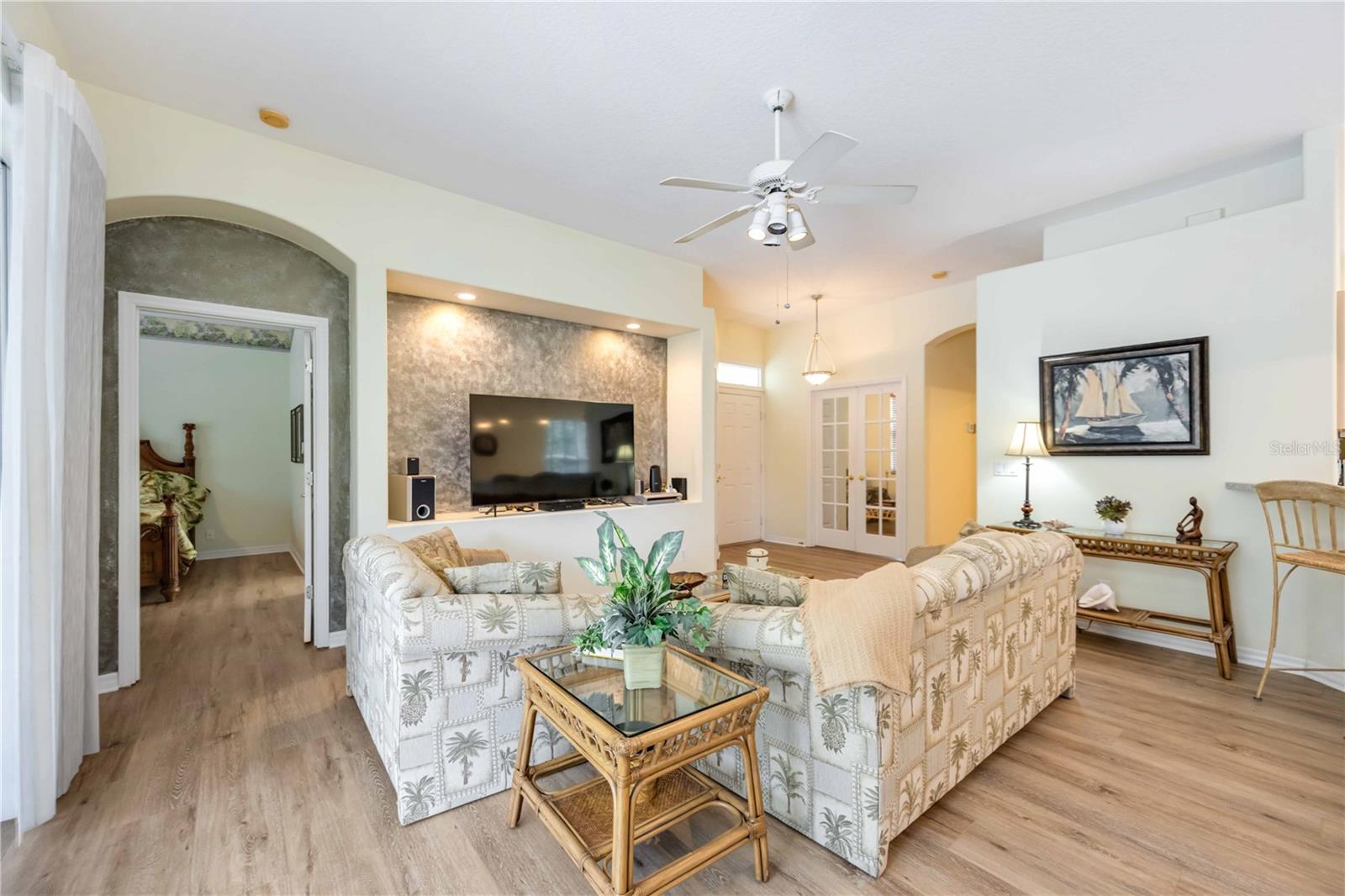 WELCOME TO WATERLEFE, WHERE YOUR PERFECT FLORIDA RETREAT AWAITS! Maintenance-assisted, 3 bedroom, 2 bath home and turn-key furnished - ready for you to start enjoying the exclusive and relaxed life style you've always dreamed about in a highly sought after Golf and Boating Community on the sunny west coast of Florida along the shores of the Manatee River. Located on a quiet cul-de-sac street, the home is situated on a lushly landscaped lot that affords a peaceful, private oasis with a heated pool and spa As you enter, you'll appreciate the open floorplan with a great room and combined dining area that boasts high ceilings, large screen TV, and new flooring with a stylish tropical design that is both functional for family living and great for entertaining. The kitchen has bar seating and breakfast cafe for additional dining. The spacious master ensuite feels like a sanctuary with pool and preserve views, and garden tub and large walk-in closet. Both the great room and 3rd Bedroom include large screen TV's and sleeper sofas to accommodate extended family visits. The split floorplan affords privacy for the guest bedroom and bath. A two-car garage allows extra space for storage and includes some cabinetry. Grounds Maintenance, cable, wi-fi and internet are included in HOA fee. Home exterior was painted in 2024. Gently used primarily as a winter residency, THIS HOME TRULY HAS EVERYTHING YOU NEED TO MOVE RIGHT IN. Waterlefe Golf and Country Club offers exceptional, resort-style living which includes fine dining on the riverfront , casual dining in the Bistro and Sunset Lounge. and a world class golf course designed by Ted McAnlis that winds through the Manatee River. There are 8 sets of tees to accommodate any level of play. The clubhouse is newly renovated and offers breakfast, lunch and dinner in the grille room. Boat slips are available to purchase in the cove marina or through optional membership for the 59-slip marina on the River with direct access to the Gulf of Mexico. Social activities include trivia, concerts, book clubs, and game nights. There is Kayaking, community pool, and fitness center. Enjoy zumba, yoga, water aerobics and various exercise classes or just relax and enjoy weekend lunches at the poolside Tiki Bar. Community is close to I-75 for easy access to Tampa, St. Petersburg and Sarasota. CDD fees are includes in tax amount. Call today for your private showing before this one slips away!