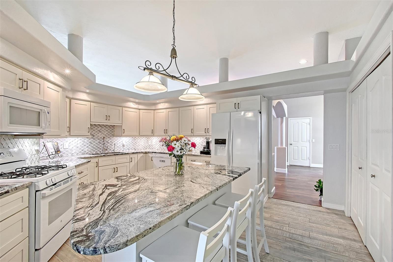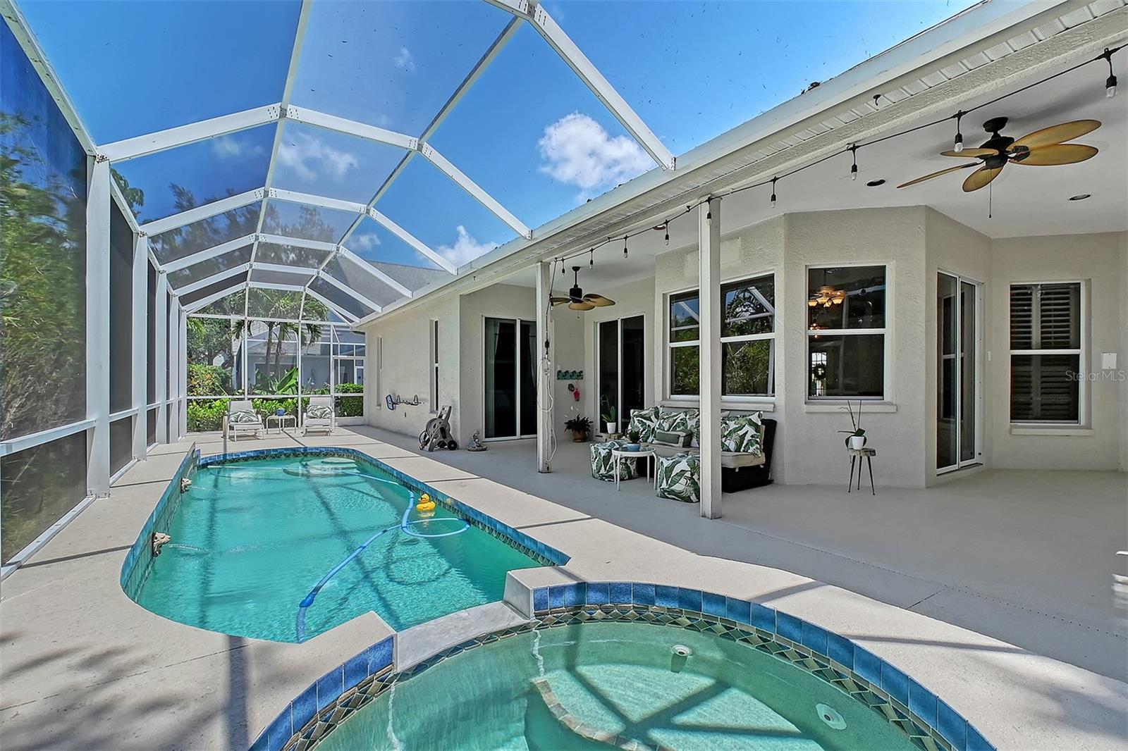 One or more photo(s) has been virtually staged. Rarely available custom Columbia Model in the prestigious Inlets. Welcome to this beautifully updated 4-bedroom, 2-bath home, nestled in one of Bradenton’s premier boating community with direct access to the Manatee River and Gulf of America. This meticulously maintained home showcases a spacious split floor plan with thoughtful upgrades throughout. The completely renovated kitchen is a showstopper, featuring a center island, white shaker wood cabinetry, marble countertops, tiled backsplash, under-cabinet lighting, a walk-in pantry, and a brand-new 2025 refrigerator. Additional updates in 2025 include: EV outlet for an electric car, interior and exterior paint, freshly painted lanai with new screens, and luxury vinyl plank and wood-look tile flooring throughout. Plantation shutters, custom closets, and elegant finishes add to the home's appeal. Enjoy Florida living in your private backyard oasis, complete with a heated pool and spa, a stunning oversized screened lanai, gas connection for outside grill, and lush landscaping perfect for entertaining or relaxing. The double porte-cochere and oversized garage offer ample parking and storage space. The Inlets is a lively community that offers a vibrant calendar of social activities, tennis courts, a playground, walking trails, kayak launch, fishing pier, and boat slips available at the marina as well as the community boat ramp for residents to launch their boats. Low HOA fees and NO CDD fees make this an unbeatable value. Centrally located with easy access to I-75, downtown Bradenton, St. Petersburg, Tampa, Sarasota, award-winning beaches, fine dining, and world-class shopping. Don't miss this rare opportunity to own a slice of paradise in The Inlets!