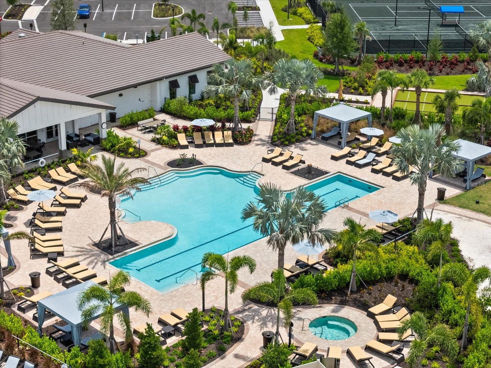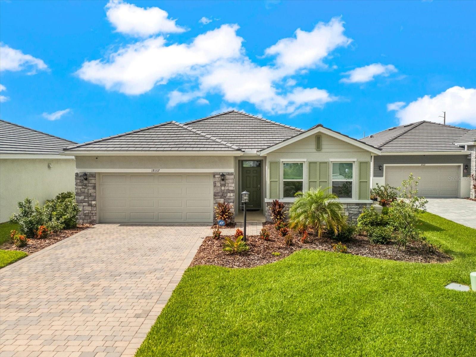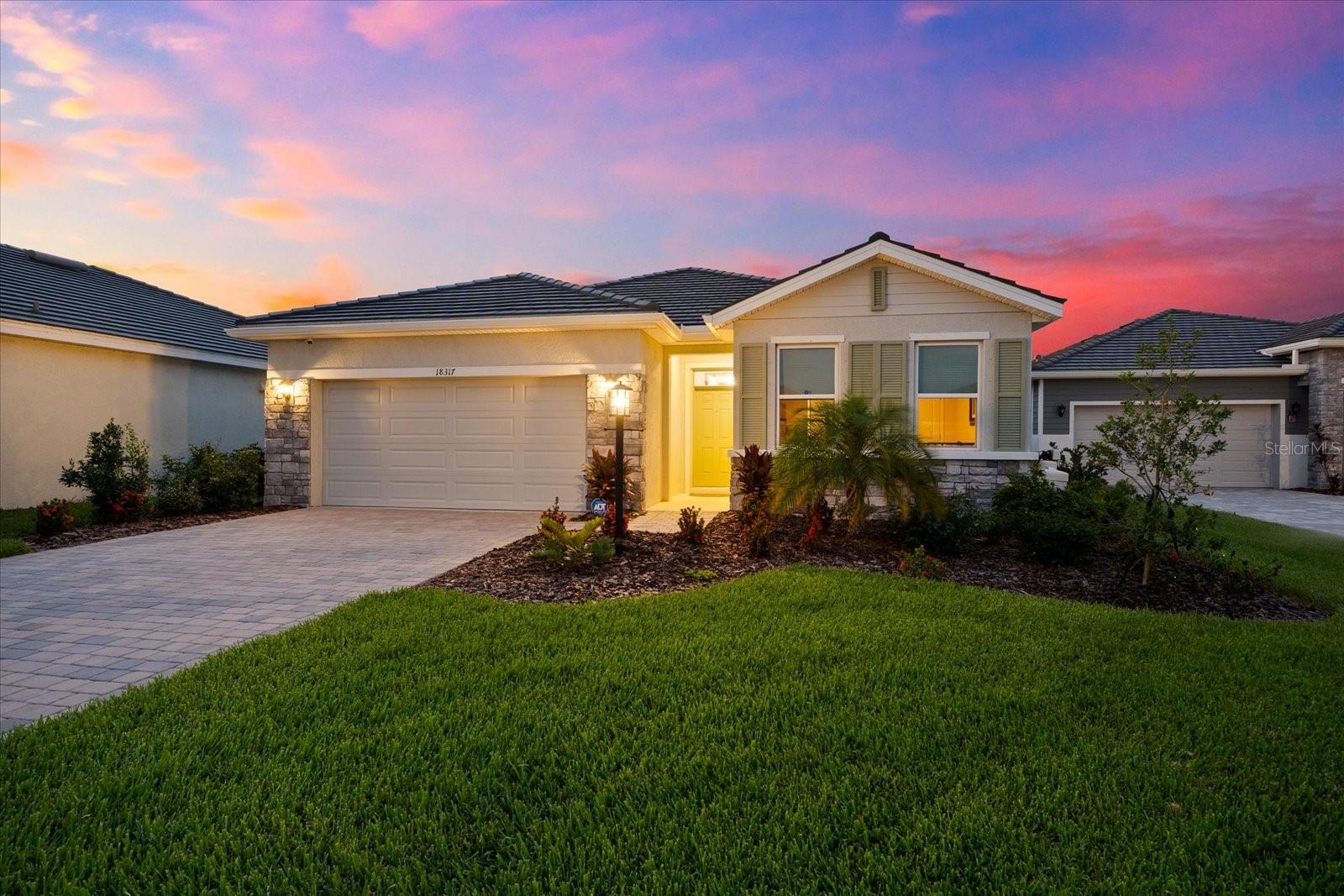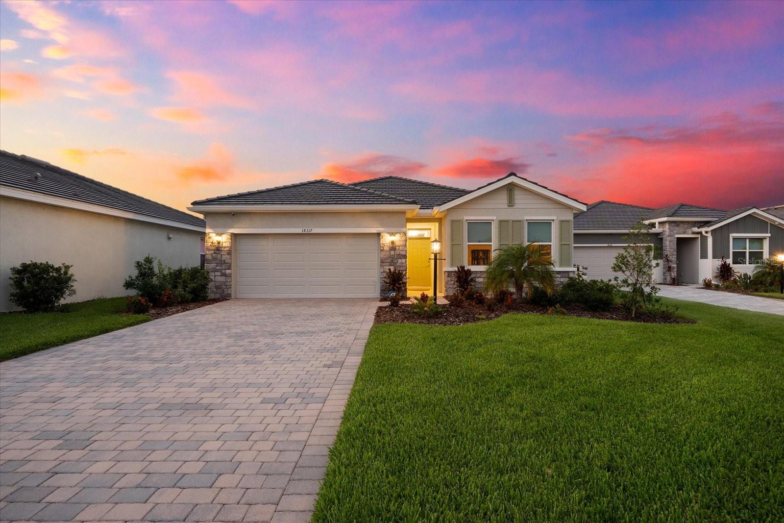 Skip the build time and step into this beautifully upgraded, move-in ready 2,034 sq ft Delray Model, ideally located on a private cul-de-sac oversized lot in Star Farms Adventure Retreat at Lakewood Ranch—part of the nation’s #1 multi-generational master-planned community. This stylish 4-bedroom, 2-bath home with a 2-car garage and extended lanai offers the perfect blend of luxury, functionality, and modern design. From the moment you arrive you will be impressed by the curb appeal and thoughtful upgrades such as an elegant stone front elevation and an extended driveway. Inside, the home showcases neutral luxury vinyl plank flooring throughout, enhanced by modern ceiling fans and upgraded lighting that lend a sleek, contemporary touch. The spacious, open concept living offers a gourmet kitchen, the heart of the home, and features an oversized island with seating for four, stainless steel appliances, granite countertops, and generous counter space for effortless entertaining and everyday cooking. The private owner’s retreat boasts tranquil water views, a luxurious ensuite bath with dual sinks, a granite vanity, a large tiled walk-in shower, and a custom walk-in closet with built in drawers and shelving. Three additional bedrooms are thoughtfully placed for maximum privacy, accompanied by a stylish bath with a tub/shower combo. This gem offers outdoor living at its best. Step out to the extended lanai complete with upgraded pavers, a hot tub, perfect for relaxing or hosting guests. The fenced backyard offers a safe, spacious area for pets and outdoor fun. The garage is finished with epoxy flooring and built-in shelving, and the home also includes a security system, water softener, and reverse osmosis system—providing peace of mind and added value. Residents enjoy a wide array of amenities designed for active, social, and wellness-focused living. The Adventure Retreat offers a private clubhouse, meeting rooms, a resort-style pool and spa, cabanas, a beach area for laid back lounging, tennis, pickleball, bocce ball courts, a resistance pool for low impact fitness, poolside grilling stations, a pet park, and a fully equipped fitness center. The Resort Club, a second luxury clubhouse, offers a state-of-the art golf simulator, instructor-led exercise classes, pool and spa, a cozy coffee shop, a vibrant poolside bar & grill, basketball courts and ball field. For more leisure, Cabana Corner will be a third gathering spot with additional like amenities. Star Farms puts you close to everything including major airports, ample restaurants and shops, championship golf courses, world-class beaches, and top-rated medical facilities. Star Farms offers a one-of-a-kind lifestyle you won’t want to miss. Schedule your private showing today!