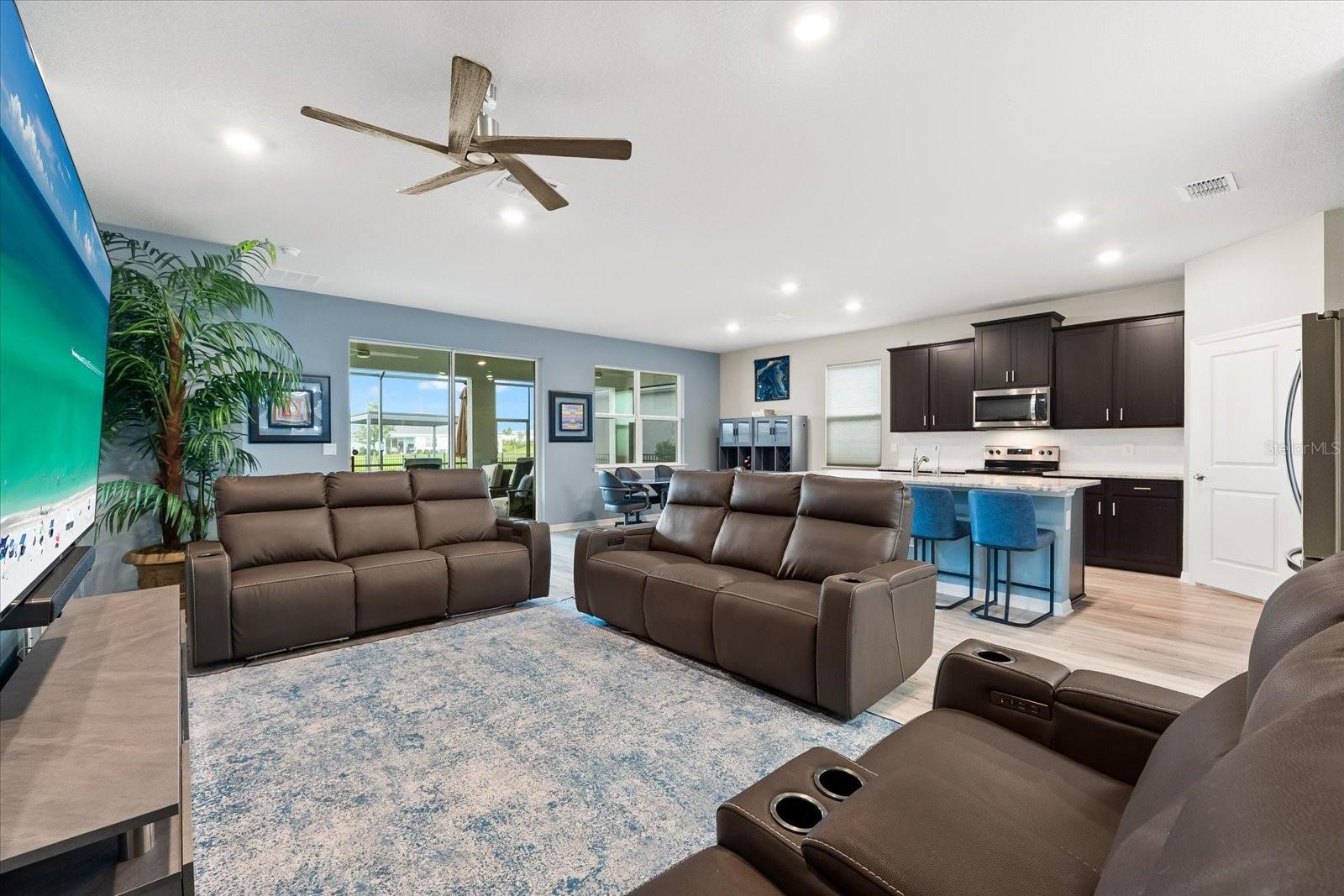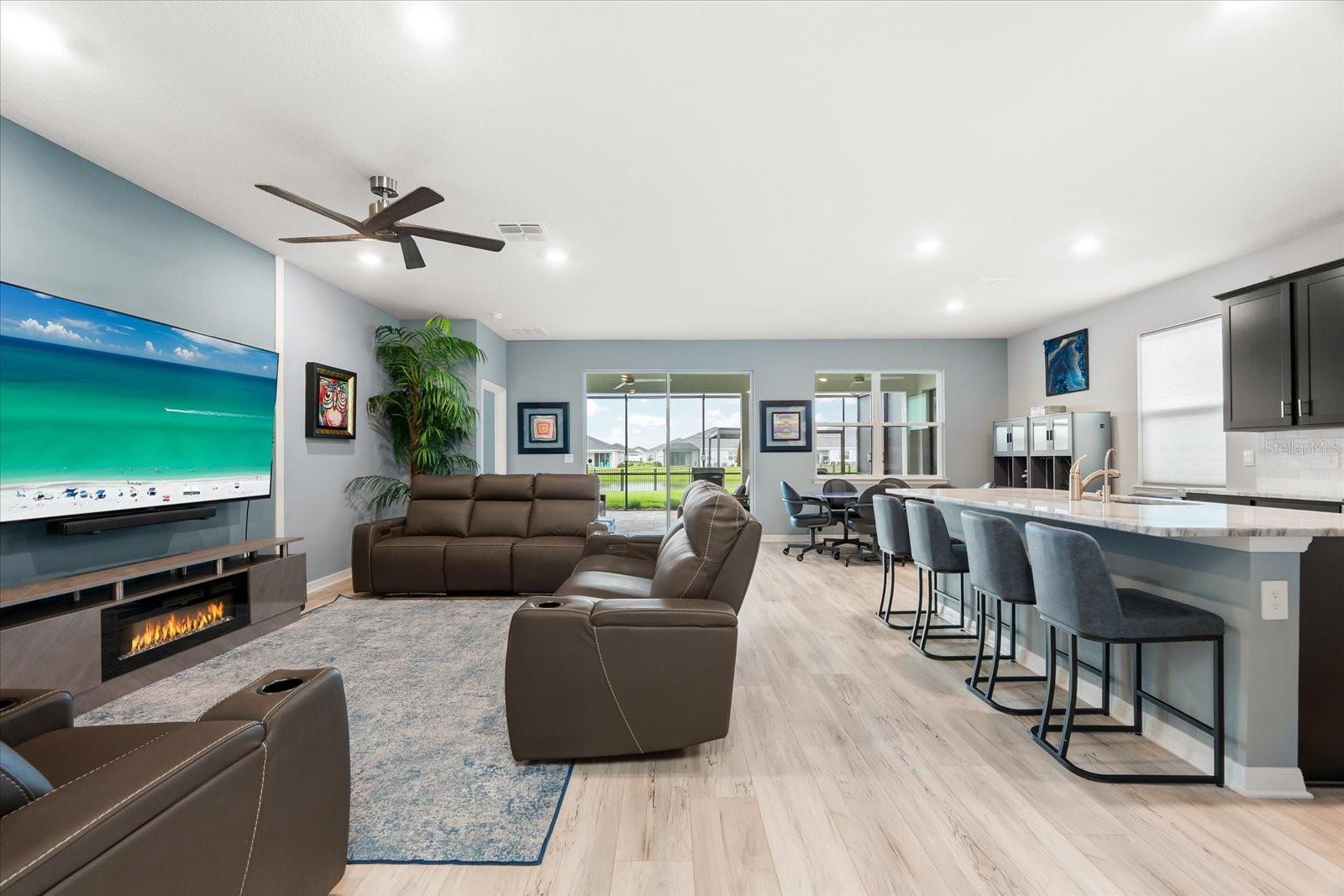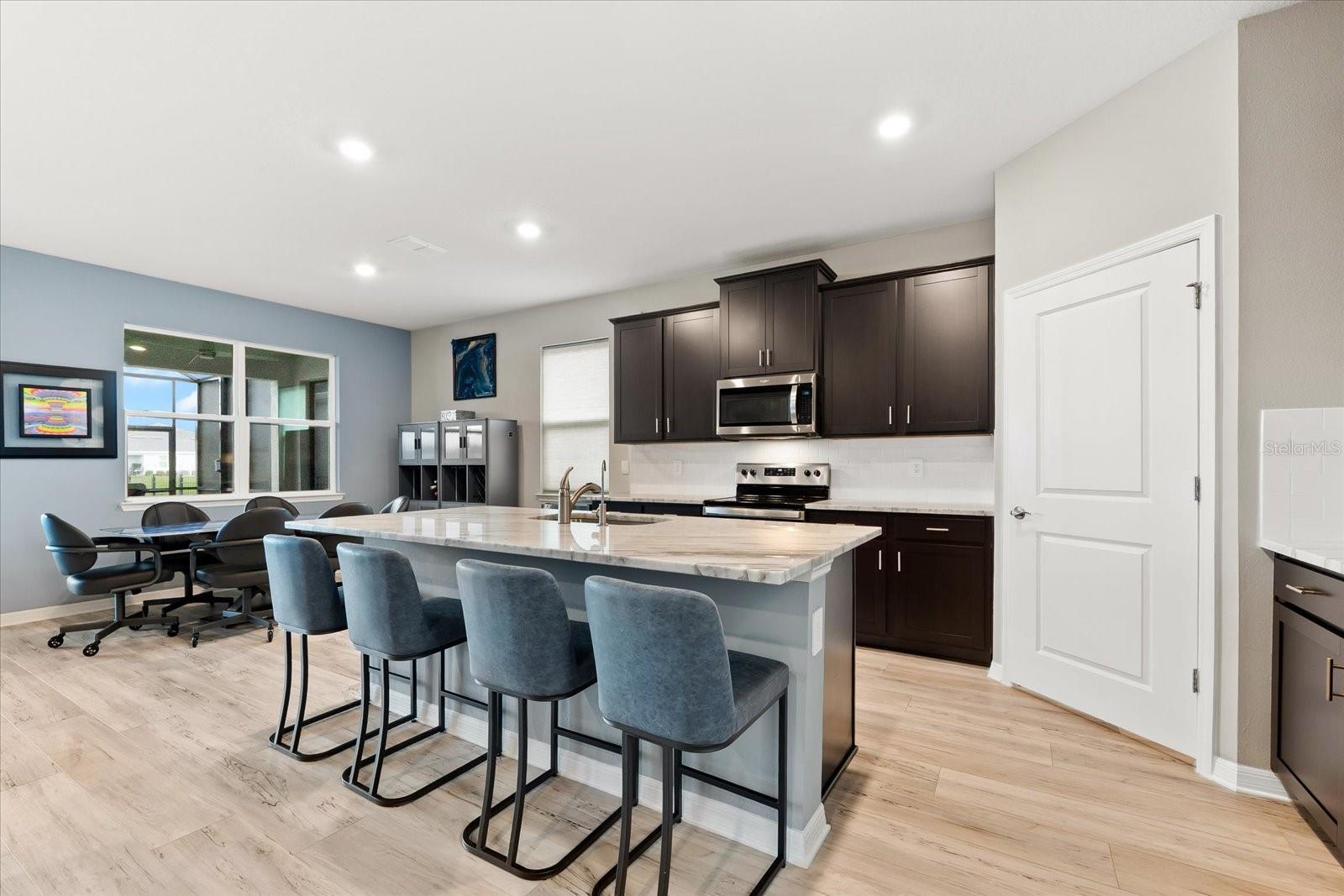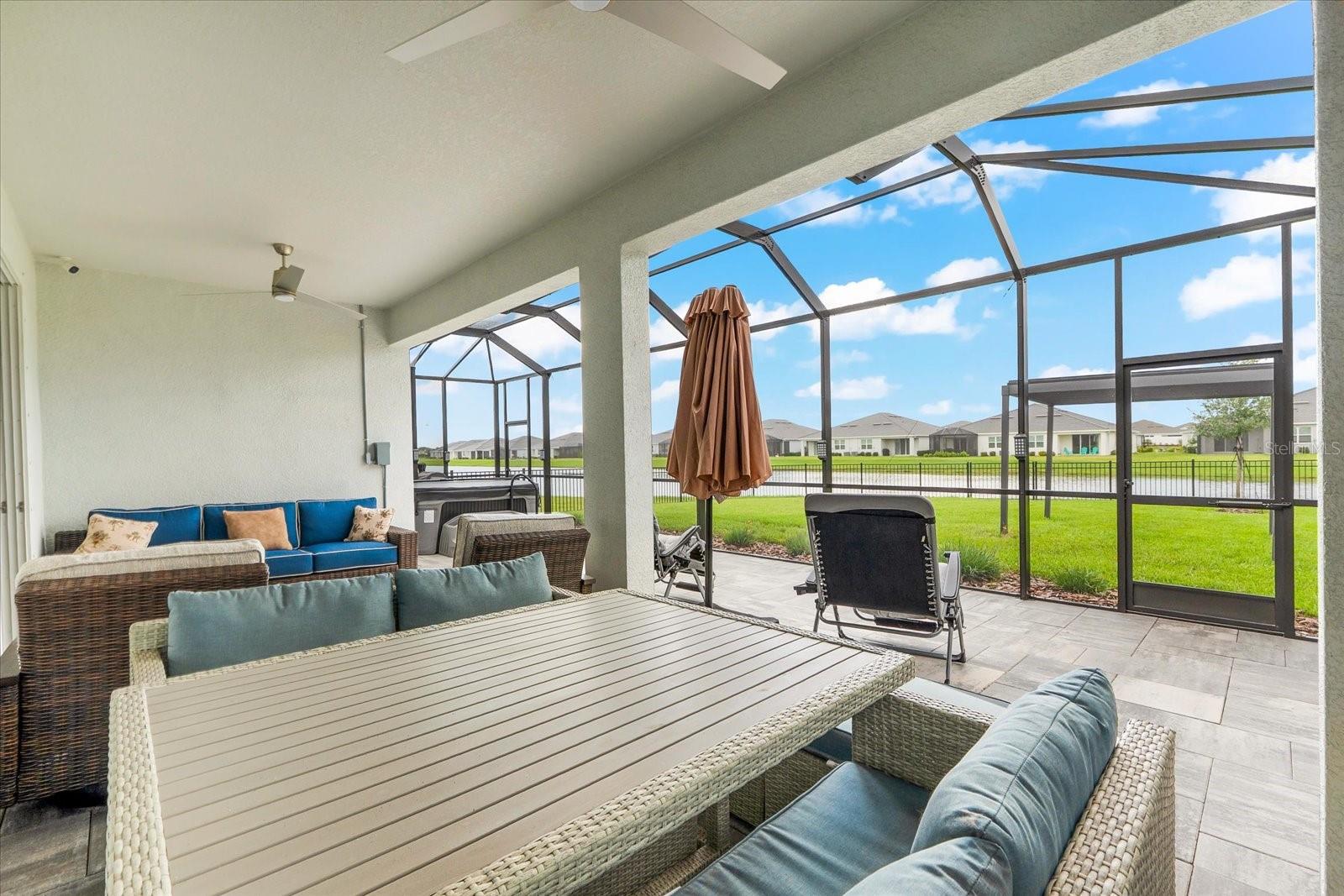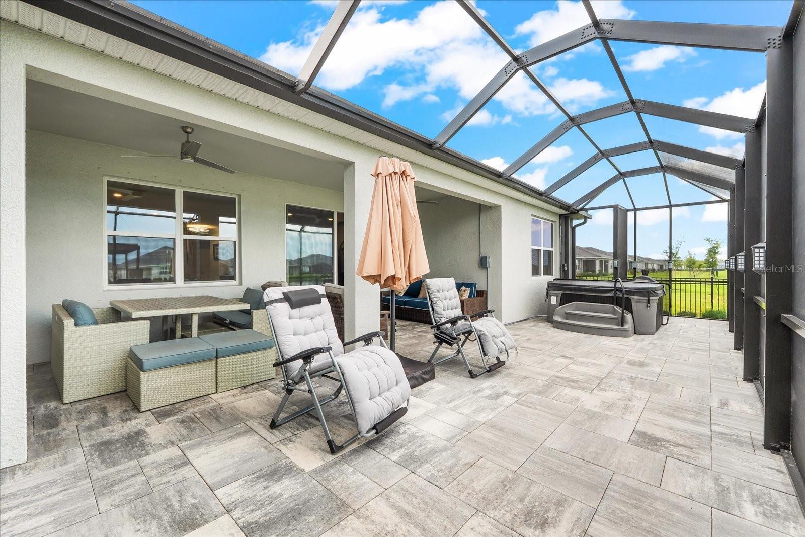 Skip the build time and step into this beautifully upgraded, move-in ready 2,034 sq ft Delray Model, ideally located on a private cul-de-sac oversized lot in Star Farms Adventure Retreat at Lakewood Ranch—part of the nation’s #1 multi-generational master-planned community. This stylish 4-bedroom, 2-bath home with a 2-car garage and extended lanai offers the perfect blend of luxury, functionality, and modern design. From the moment you arrive you will be impressed by the curb appeal and thoughtful upgrades such as an elegant stone front elevation and an extended driveway. Inside, the home showcases neutral luxury vinyl plank flooring throughout, enhanced by modern ceiling fans and upgraded lighting that lend a sleek, contemporary touch. The spacious, open concept living offers a gourmet kitchen, the heart of the home, and features an oversized island with seating for four, stainless steel appliances, granite countertops, and generous counter space for effortless entertaining and everyday cooking. The private owner’s retreat boasts tranquil water views, a luxurious ensuite bath with dual sinks, a granite vanity, a large tiled walk-in shower, and a custom walk-in closet with built in drawers and shelving. Three additional bedrooms are thoughtfully placed for maximum privacy, accompanied by a stylish bath with a tub/shower combo. This gem offers outdoor living at its best. Step out to the extended lanai complete with upgraded pavers, a hot tub, perfect for relaxing or hosting guests. The fenced backyard offers a safe, spacious area for pets and outdoor fun. The garage is finished with epoxy flooring and built-in shelving, and the home also includes a security system, water softener, and reverse osmosis system—providing peace of mind and added value. Residents enjoy a wide array of amenities designed for active, social, and wellness-focused living. The Adventure Retreat offers a private clubhouse, meeting rooms, a resort-style pool and spa, cabanas, a beach area for laid back lounging, tennis, pickleball, bocce ball courts, a resistance pool for low impact fitness, poolside grilling stations, a pet park, and a fully equipped fitness center. The Resort Club, a second luxury clubhouse, offers a state-of-the art golf simulator, instructor-led exercise classes, pool and spa, a cozy coffee shop, a vibrant poolside bar & grill, basketball courts and ball field. For more leisure, Cabana Corner will be a third gathering spot with additional like amenities. Star Farms puts you close to everything including major airports, ample restaurants and shops, championship golf courses, world-class beaches, and top-rated medical facilities. Star Farms offers a one-of-a-kind lifestyle you won’t want to miss. Schedule your private showing today!