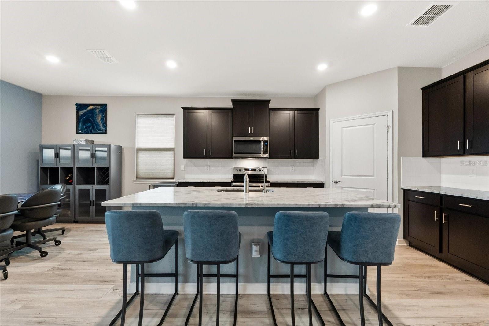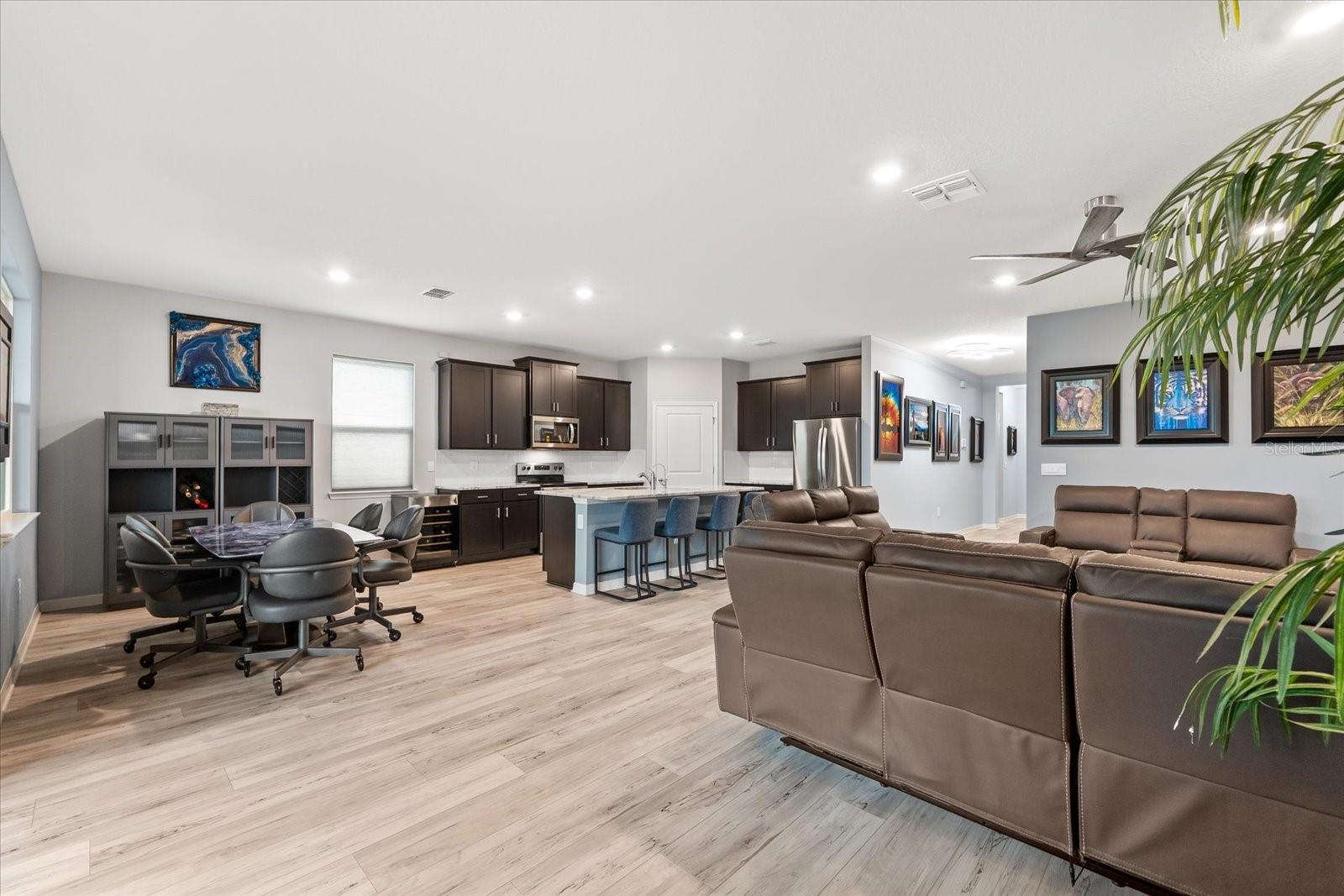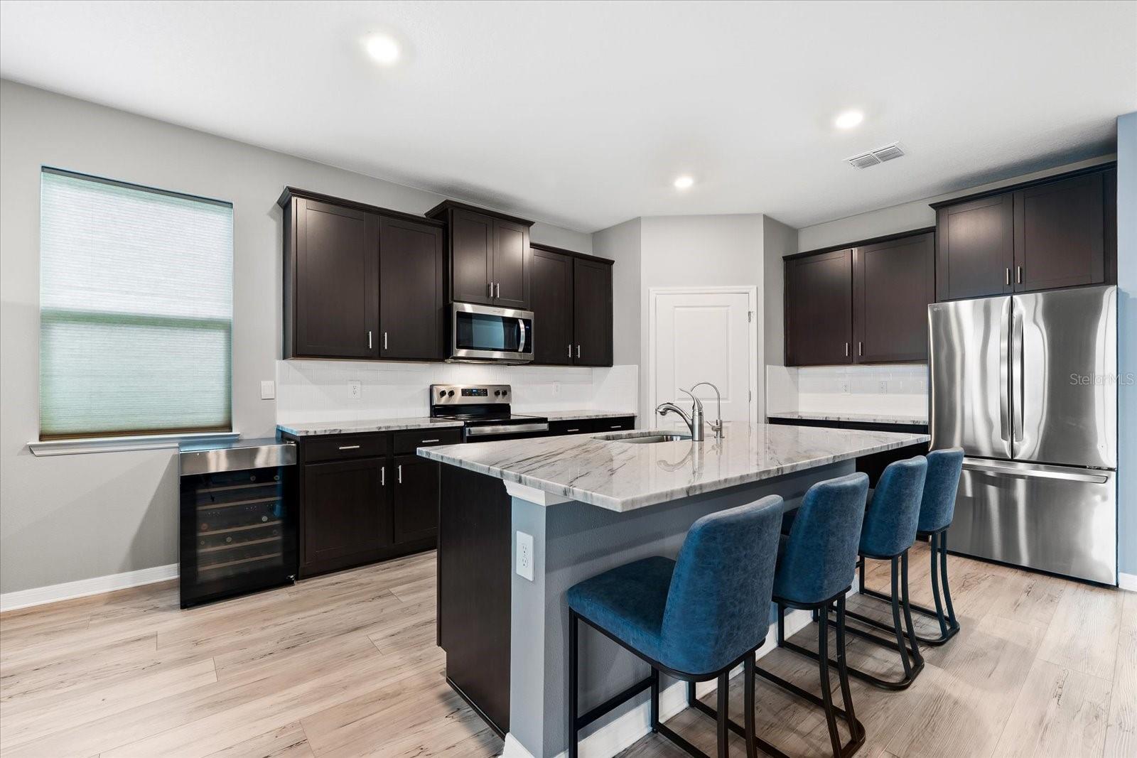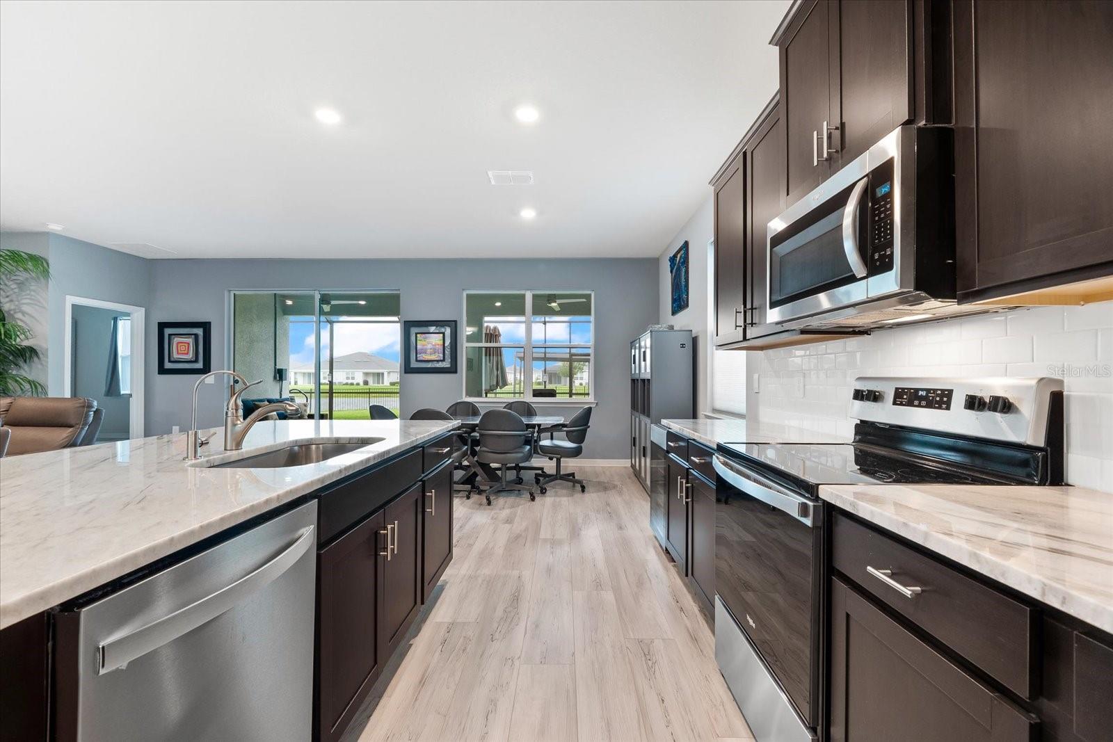 Skip the build time and step into this beautifully upgraded, move-in ready 2,034 sq ft Delray Model, ideally located on a private cul-de-sac oversized lot in Star Farms Adventure Retreat at Lakewood Ranch—part of the nation’s #1 multi-generational master-planned community. This stylish 4-bedroom, 2-bath home with a 2-car garage and extended lanai offers the perfect blend of luxury, functionality, and modern design. From the moment you arrive you will be impressed by the curb appeal and thoughtful upgrades such as an elegant stone front elevation and an extended driveway. Inside, the home showcases neutral luxury vinyl plank flooring throughout, enhanced by modern ceiling fans and upgraded lighting that lend a sleek, contemporary touch. The spacious, open concept living offers a gourmet kitchen, the heart of the home, and features an oversized island with seating for four, stainless steel appliances, granite countertops, and generous counter space for effortless entertaining and everyday cooking. The private owner’s retreat boasts tranquil water views, a luxurious ensuite bath with dual sinks, a granite vanity, a large tiled walk-in shower, and a custom walk-in closet with built in drawers and shelving. Three additional bedrooms are thoughtfully placed for maximum privacy, accompanied by a stylish bath with a tub/shower combo. This gem offers outdoor living at its best. Step out to the extended lanai complete with upgraded pavers, a hot tub, perfect for relaxing or hosting guests. The fenced backyard offers a safe, spacious area for pets and outdoor fun. The garage is finished with epoxy flooring and built-in shelving, and the home also includes a security system, water softener, and reverse osmosis system—providing peace of mind and added value. Residents enjoy a wide array of amenities designed for active, social, and wellness-focused living. The Adventure Retreat offers a private clubhouse, meeting rooms, a resort-style pool and spa, cabanas, a beach area for laid back lounging, tennis, pickleball, bocce ball courts, a resistance pool for low impact fitness, poolside grilling stations, a pet park, and a fully equipped fitness center. The Resort Club, a second luxury clubhouse, offers a state-of-the art golf simulator, instructor-led exercise classes, pool and spa, a cozy coffee shop, a vibrant poolside bar & grill, basketball courts and ball field. For more leisure, Cabana Corner will be a third gathering spot with additional like amenities. Star Farms puts you close to everything including major airports, ample restaurants and shops, championship golf courses, world-class beaches, and top-rated medical facilities. Star Farms offers a one-of-a-kind lifestyle you won’t want to miss. Schedule your private showing today!