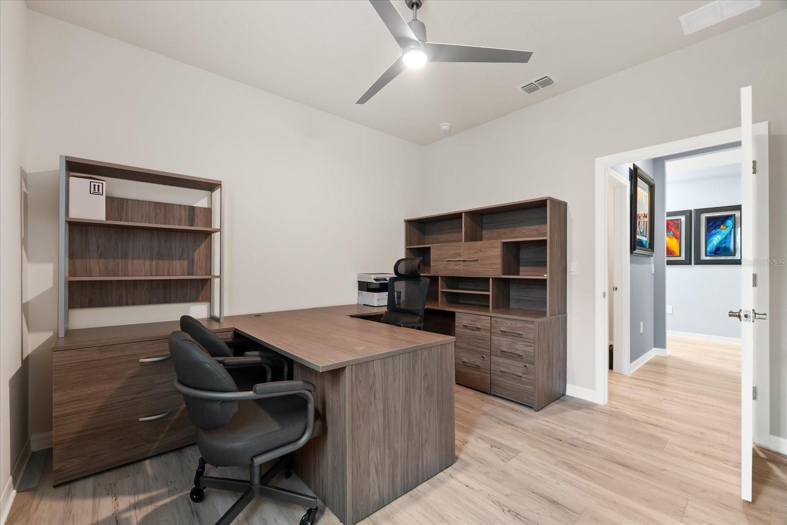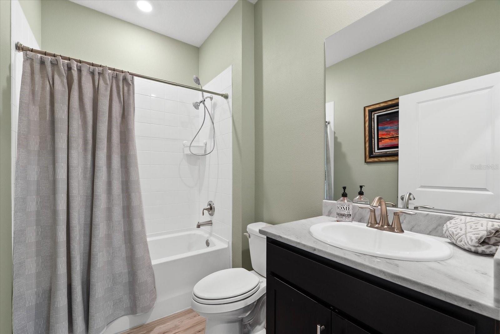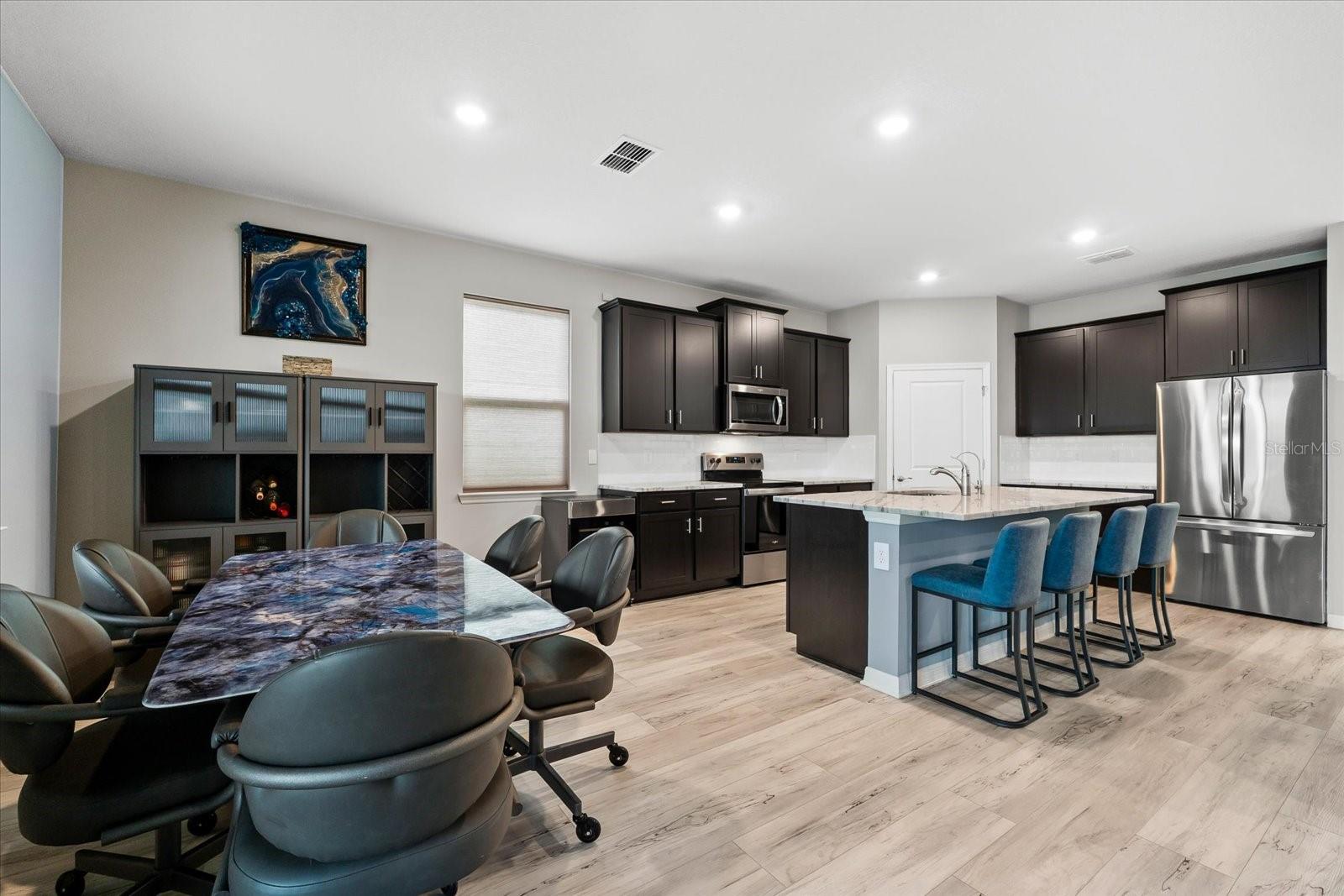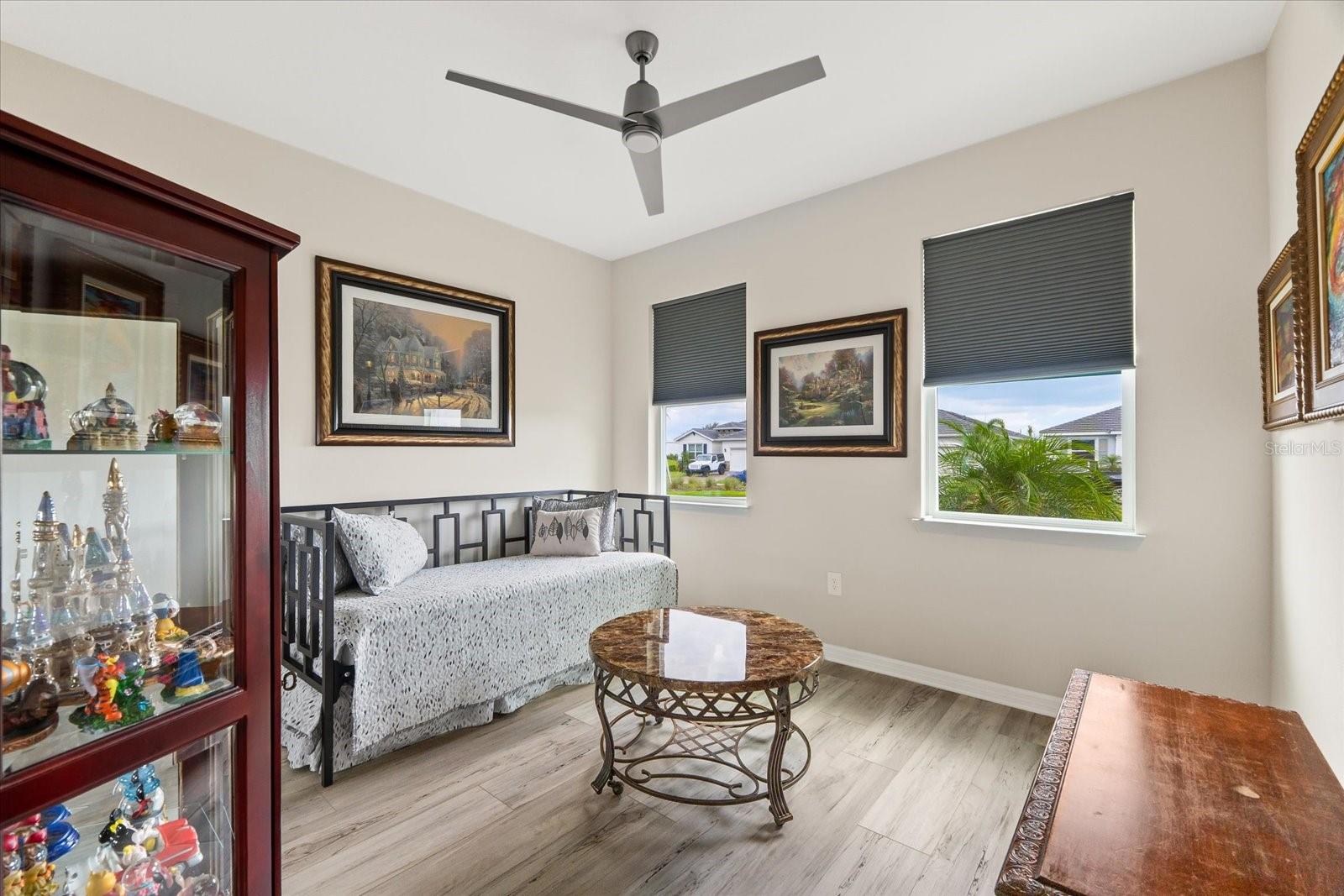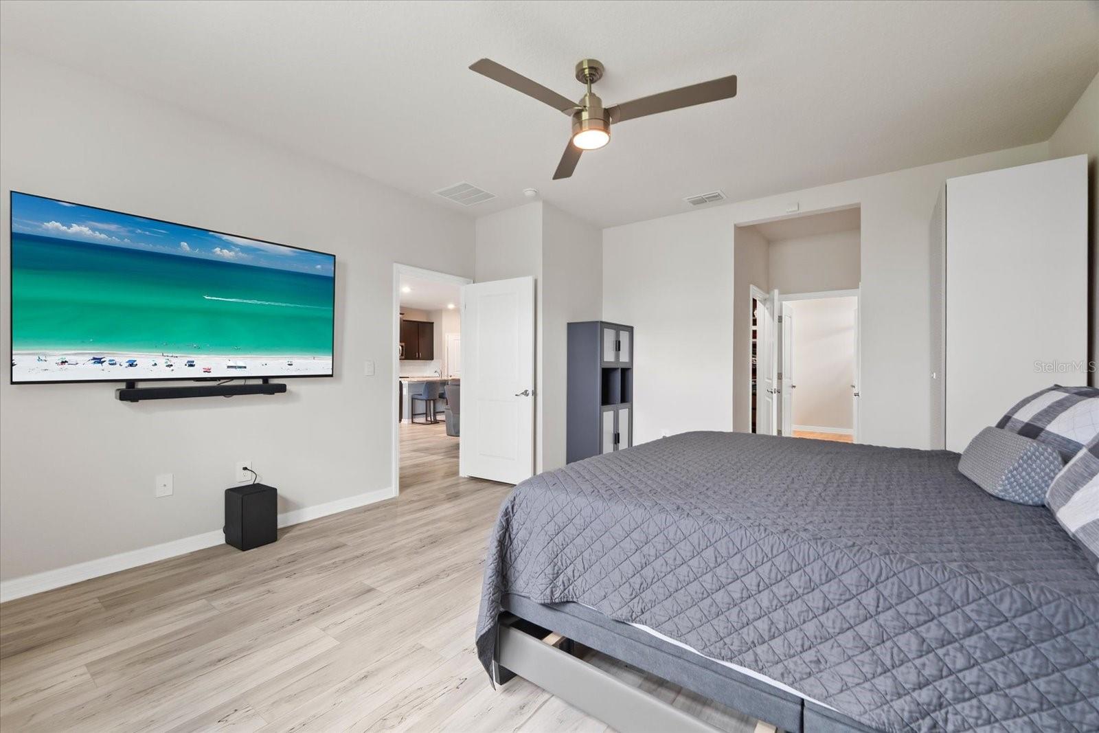 Skip the build time and step into this beautifully upgraded, move-in ready 2,034 sq ft Delray Model, ideally located on a private cul-de-sac oversized lot in Star Farms Adventure Retreat at Lakewood Ranch—part of the nation’s #1 multi-generational master-planned community. This stylish 4-bedroom, 2-bath home with a 2-car garage and extended lanai offers the perfect blend of luxury, functionality, and modern design. From the moment you arrive you will be impressed by the curb appeal and thoughtful upgrades such as an elegant stone front elevation and an extended driveway. Inside, the home showcases neutral luxury vinyl plank flooring throughout, enhanced by modern ceiling fans and upgraded lighting that lend a sleek, contemporary touch. The spacious, open concept living offers a gourmet kitchen, the heart of the home, and features an oversized island with seating for four, stainless steel appliances, granite countertops, and generous counter space for effortless entertaining and everyday cooking. The private owner’s retreat boasts tranquil water views, a luxurious ensuite bath with dual sinks, a granite vanity, a large tiled walk-in shower, and a custom walk-in closet with built in drawers and shelving. Three additional bedrooms are thoughtfully placed for maximum privacy, accompanied by a stylish bath with a tub/shower combo. This gem offers outdoor living at its best. Step out to the extended lanai complete with upgraded pavers, a hot tub, perfect for relaxing or hosting guests. The fenced backyard offers a safe, spacious area for pets and outdoor fun. The garage is finished with epoxy flooring and built-in shelving, and the home also includes a security system, water softener, and reverse osmosis system—providing peace of mind and added value. Residents enjoy a wide array of amenities designed for active, social, and wellness-focused living. The Adventure Retreat offers a private clubhouse, meeting rooms, a resort-style pool and spa, cabanas, a beach area for laid back lounging, tennis, pickleball, bocce ball courts, a resistance pool for low impact fitness, poolside grilling stations, a pet park, and a fully equipped fitness center. The Resort Club, a second luxury clubhouse, offers a state-of-the art golf simulator, instructor-led exercise classes, pool and spa, a cozy coffee shop, a vibrant poolside bar & grill, basketball courts and ball field. For more leisure, Cabana Corner will be a third gathering spot with additional like amenities. Star Farms puts you close to everything including major airports, ample restaurants and shops, championship golf courses, world-class beaches, and top-rated medical facilities. Star Farms offers a one-of-a-kind lifestyle you won’t want to miss. Schedule your private showing today!