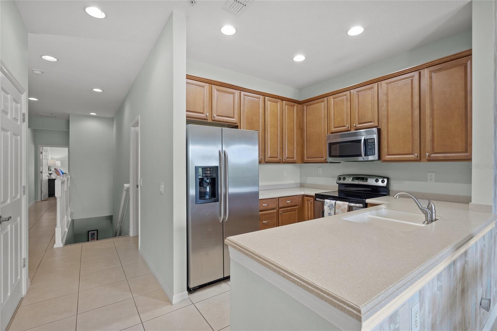 Don't miss your chance to own this spacious and well-appointed second floor condo in the desirable Palma Sola Trace community. Built by the renowned developer, Taylor Morrison, this Berkeley model offers 2 bedrooms, 2 full ensuite bathrooms and 2128SF under air, providing a comfortable open layout, perfect for everyday living or seasonal retreat. The kitchen overlooks the Greatroom and offers Corian countertops, rich maple shaded cabinets and dark appliances. The open floor layout allows you to enjoy your guests in one location while the bedrooms are split to the front/middle of the unit. Enjoy tranquil views of the water feature/pond and lush greenery from your private screened in balcony - a spot to relax and unwind This home also includes a one-car garage on ground level, hurricane shutters, and a brand new roof installed in 2024. The building's exterior is scheduled to be freshly painted this year, further enhancing its curb appeal. Palma Sola Trace is a well maintained community offering comfort, convenience and value. With mature landscaping and an ideal location, you'll find a beautifully maintained pool area for relaxing, swimming laps or soaking up the Florida sunshine. For those focused on fitness the community has a well equipped fitness area. In addition to its excellent on site amenities, Palma Sola Trace is ideal for its easy access to the Anna Maria beaches and other barrier islands in just a short drive. And despite its proximity to the beaches, the community is ideally located in a non-flood (X flood zone) for peace of mind and insurance costs. This condo is the perfect place to call home whether as a vacation retreat or permanent home. Don't wait - schedule an appointment to see this wonderful condo before it is gone!