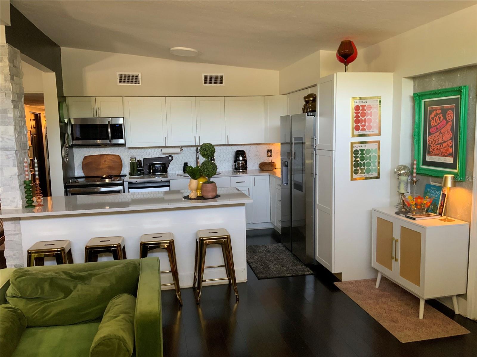 Major Price Adjustment!!! This home is an exceptional Mid-Century Modern Marvel built when homes were custom crafted with quality construction and appealing architecture, providing ambiance unlike the current Florida cookie cutter-style homes. If you are seeking a “wow” factor and uniqueness in style and décor, this is the home for you! Upon entering the home, you will immediately notice the light and bright open floor plan that includes a dining room with built-in hutch, an airy kitchen and large living room. The kitchen boasts white quartz countertops, shaker cabinets and island, making food preparation enjoyable. Pull out drawers were installed in the cabinets, and a pull-out trash receptacle cabinet was added. The pantry also has pull out drawers. Stainless steel appliances enhance the kitchen’s appeal. The breakfast bar is the perfect gathering spot to interact with the chef. The separate den/office/bonus room is off the living area and has direct access to the back yard. Storage and laundry are under the carport. This home features four bedrooms. The primary bedroom is located at the rear of the home, while Bedroom 2 across the hall is being used as a large walk-in closet for the primary suite. The third smaller bedroom serves as a guest bedroom and toy room/storage. The Bonus room, or fourth bedroom, is separate from the other bedrooms, with access under the carport, is the largest, with its own mini-split a/c system and set up as a teen suite. The Seller has spared no expense in remodeling their home. With a new a/c system, newer roof, refrigerator, stove (2025), luxury vinyl flooring, interior painting, aesthetically appealing new 1/4”, low iron glass installed in the original frames of the front window, remodel of the 4th bedroom, and updated primary bathroom, this house is truly “move-in ready”. There is also a new 12'x10' shed in the backyard. Enjoy your private, fenced, backyard with a fire pit for BBQs, entertainment, reading or friendly get-togethers. Added parking for boat/RV is available. Bayshore Gardens Park/Recreation Center is located on Sarasota Bay, offering residents access to the marina and private boat ramp. Boat slips are available, on a first-come, first-served basis at discounted rates. Additional amenities include boat and trailer storage, recreation hall, community junior Olympic-size swimming pool, ball fields, playground, grilling area, picnic pavilions, pickleball and basketball courts and kayak/canoe racks. A fishing pier and viewing area of Sarasota Bay add to the attractions of this waterfront community. Bayshore Gardens is conveniently located between downtown Bradenton and Sarasota, minutes from Sarasota-Bradenton International Airport, nearby IMG Sports Academy, the UTC Mall, Saint Armands Circle, Longboat Key and Anna Maria Island’s white sandy beaches. Also nearby are local shopping, eateries and entertainment for all. Do not miss the opportunity to own this stunning Mid-Century Modern home. Possible temporary 1-0 buydown rate covered by lender. Call for details. Schedule your private showing today!