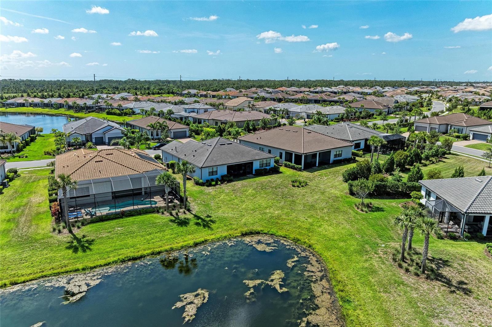 Nestled in the heart of Del Webb at Lakewood Ranch. A premier active lifestyle 55+ community. This STARDOM model blends modern comfort with timeless design. Boasting 2 master bedroom suites with a split floorplan for privacy, 2.5 bathrooms, and a flexible den/home office. Thoughtfully designed for both everyday ease and effortless entertaining. This open floor plan with over 2,200 square feet of living area screams of quality upgrades and seamlessly blends indoor and outdoor living with the 15' wide sliding glass doors to the lanai, flooding the home with natural light. Step outside to your screened lanai, perfect for morning coffee or unwinding in the evenings The gourmet kitchen takes center stage with its oversized island ( 3 inches short of 12'), quartz countertops, marble tile backsplash, built-in Kitchen Aid appliances, and walk-in pantry—making meal prep a breeze. The owner's suite is a true sanctuary with plantation shutters for privacy and the en-suite featuring dual sinks, walk-in shower, and generous walk-in closet. Storage space is more than ample throughout the home besides the over-sized laundry room, closet space, kitchen island tastefully designed lower cabinetry, coat closet etc. The extended garage provides more storage or hobby space or golf cart space all set on a well-sized 0.21-acre lot. Residents enjoy resort-style amenities including a clubhouse, fitness center, pools, pickleball, tennis, walking trails, and a full calendar of social events. Just minutes from dining, shopping, medical care, and world-famous Gulf beaches. Live the lifestyle you’ve earned—schedule your showing today!!!