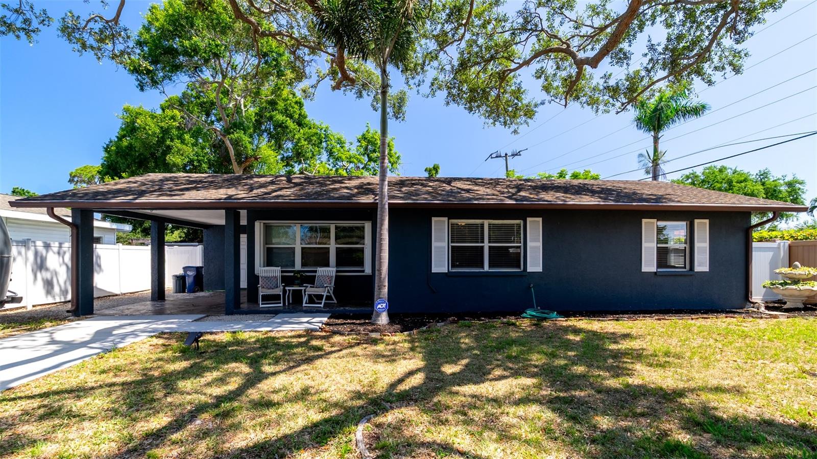 Home Features This charming block home offers two bedrooms, with the flexibility to convert a third room into an additional bedroom, office, or den. The residence includes one bathroom, a dedicated washer/dryer room conveniently located off the carport, and a newly installed concrete driveway. Interior Details- The kitchen is equipped with granite countertops, while ceiling fans provide comfort in the living room and both bedrooms. The air conditioning unit is six years old, and the roof is eight years old, ensuring reliability for years to come. Exterior Amenities - Ample parking is available for your RV, featuring a 50-amp outlet and a large gated entrance to the backyard. The carport is complemented by a new concrete driveway. For storm protection, two hurricane windows were installed in 2024, along with a hurricane accordion shutter for the den/office windows. A spacious, fully fenced backyard includes a 10’ x 13’ storage shed with rear and side entrances to the home, as well as a mature, producing avocado tree.