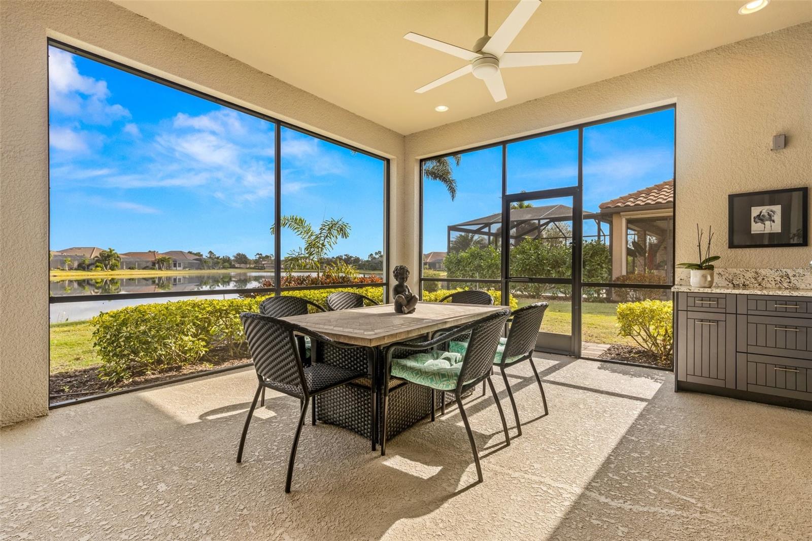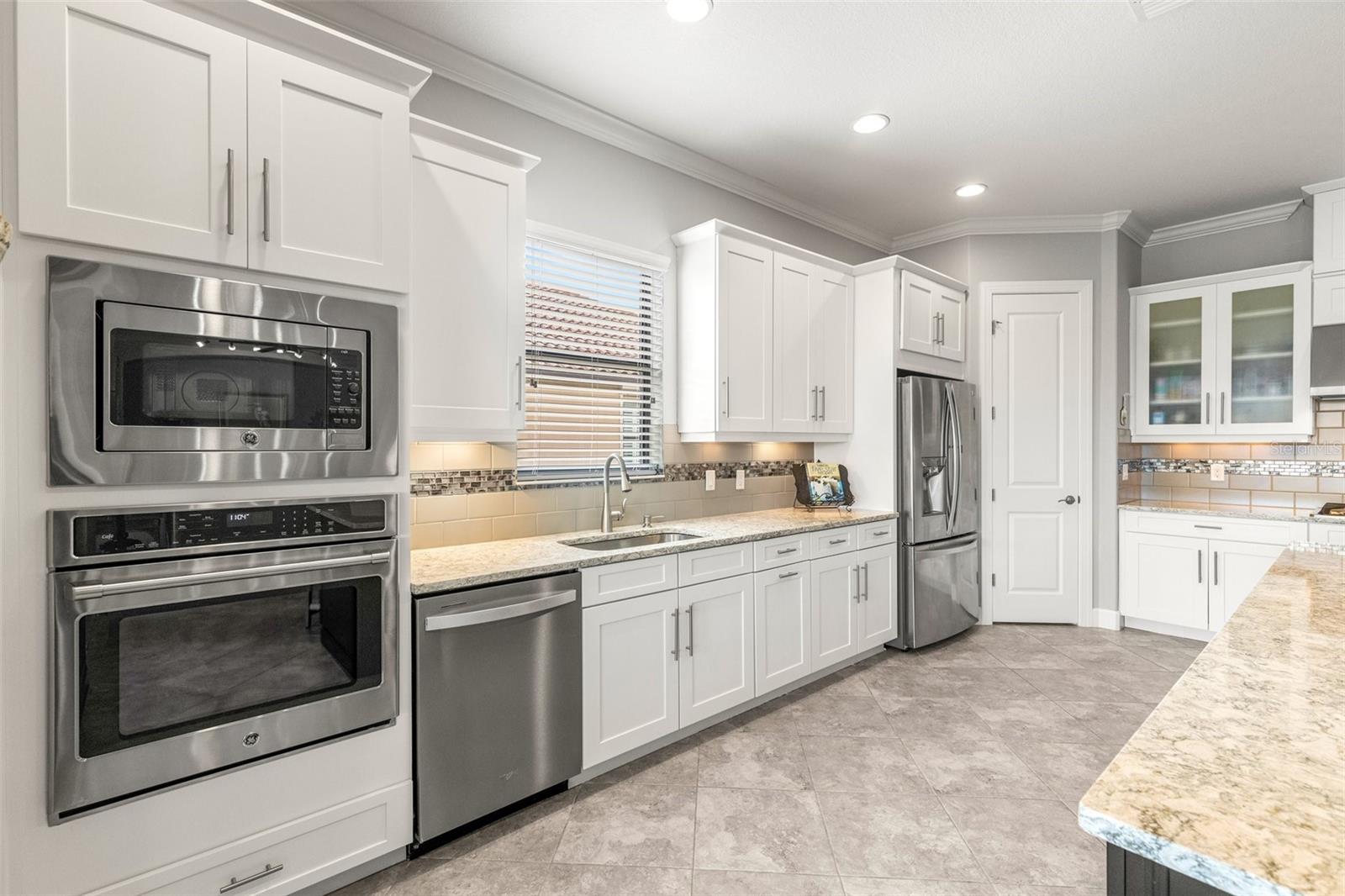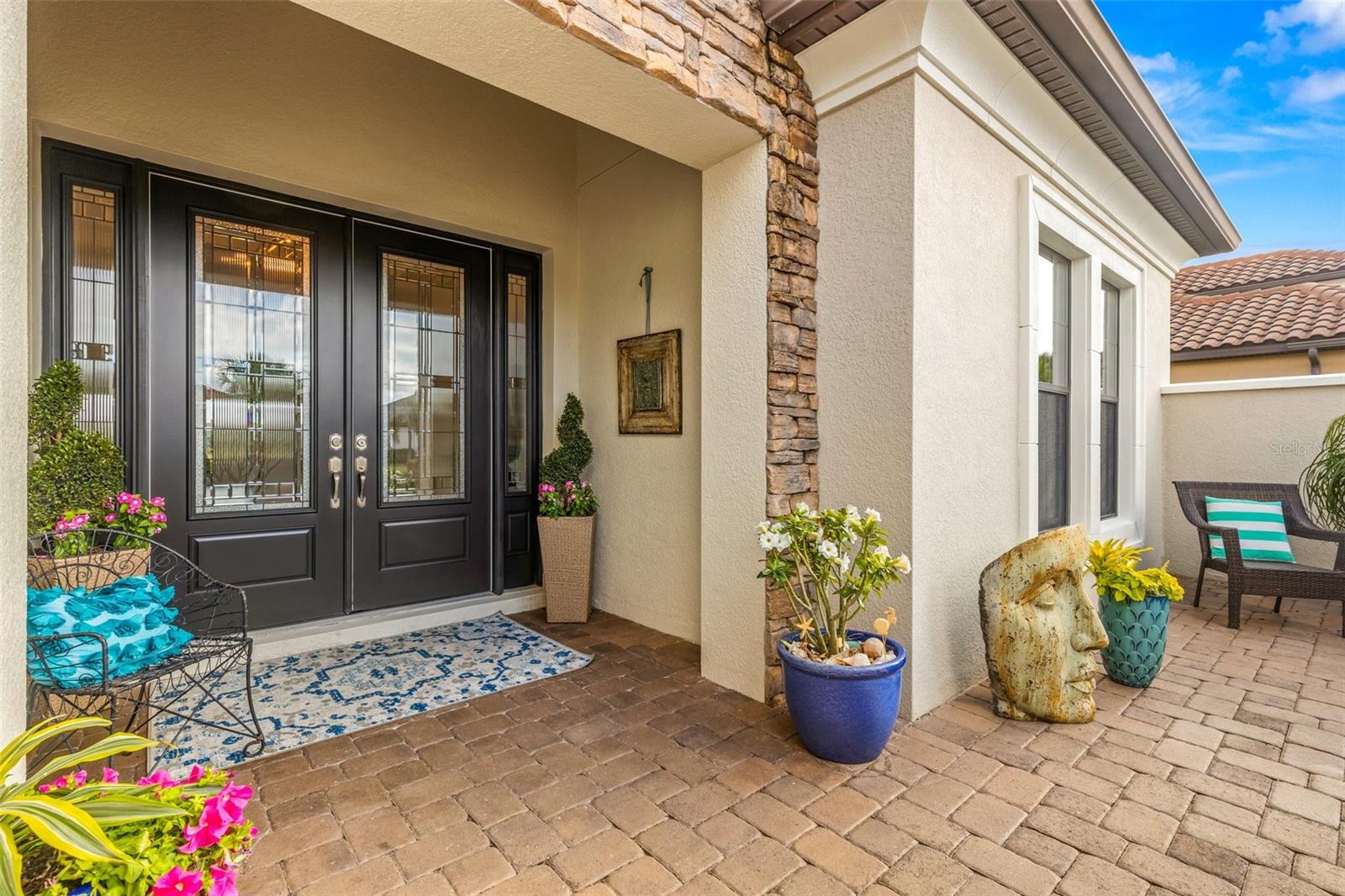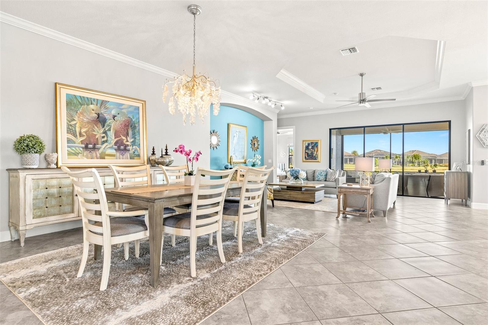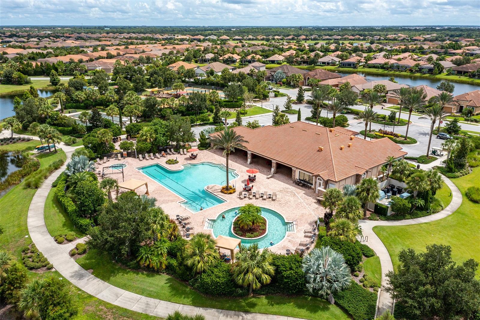 This stunning golf deeded home offers over 3,000 square feet of bright, airy living space in the amenity-rich Esplanade Golf and Country Club, nestled in the heart of Lakewood Ranch. This popular Pallazio model is designed with an open floor plan and features three spacious bedrooms, three full bathrooms, a versatile den/office, and a gourmet kitchen. The large lanai is the perfect setting for outdoor living and a place to enjoy a beautiful sunrise. Thoughtfully upgraded, this home boasts high tray ceilings, elegant crown molding, and modern tech enhancements like integrated wiring for speakers and security cameras. A BRAND NEW HVAC system was installed in March 2025. The three-car garage includes a unique tandem area that has been enclosed as a functional workroom but can easily be converted back to its original open layout. For peace of mind during hurricane season, high impact roll down shades have been installed for the lanai and each of the side and back windows have been fitted with high impact kevlar material that is easy to install. The front door, front window and garage door are high impact rated on their own. All this AND located in a non-evacuation zone! Esplanade is resort-style living at its finest! Not only does it have an incredible 18 hole golf course, Esplanade offers an unmatched lifestyle with an array of world-class amenities, including: • multiple workout spaces • resort-style pools • The Bahama Bar, a tiki bar for casual dining and drinks • The Barrel House, a full-service restaurant • a dog park • a playground • tennis, pickleball, and bocce ball courts • and a fire pit for gathering and relaxation. Esplanade is ideally situated within Lakewood Ranch, one of the nation’s premier master-planned communities. Residents enjoy proximity to top-rated schools, an abundance of shopping opportunities, and high-end dining options. From boutique shops to fine restaurants, there’s something for everyone. With activities and amenities for all ages, this vibrant community provides an unparalleled lifestyle. This home is a perfect blend of comfort, style, and convenience. Don’t miss your chance to make it yours and experience the best of Esplanade living!