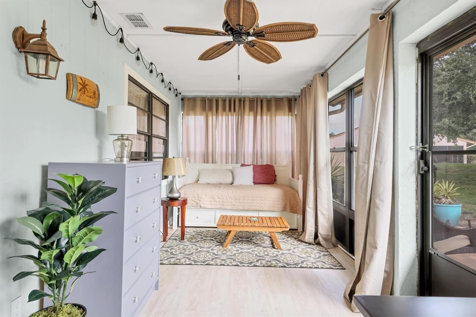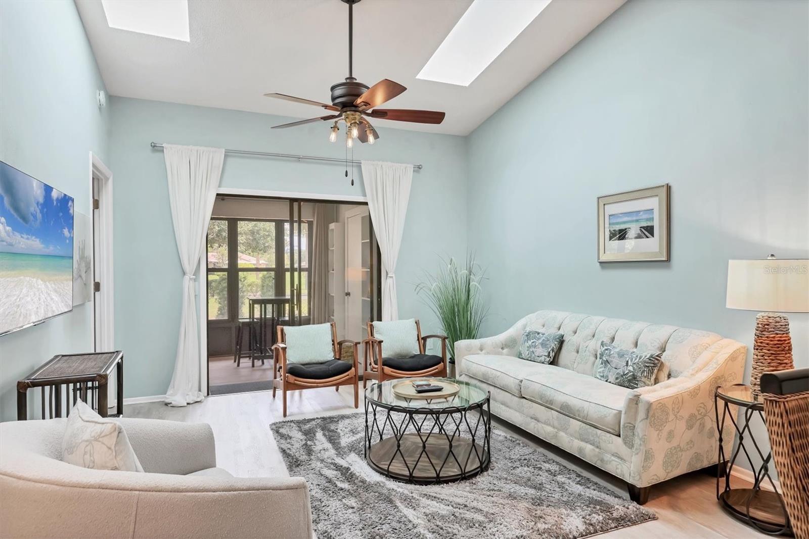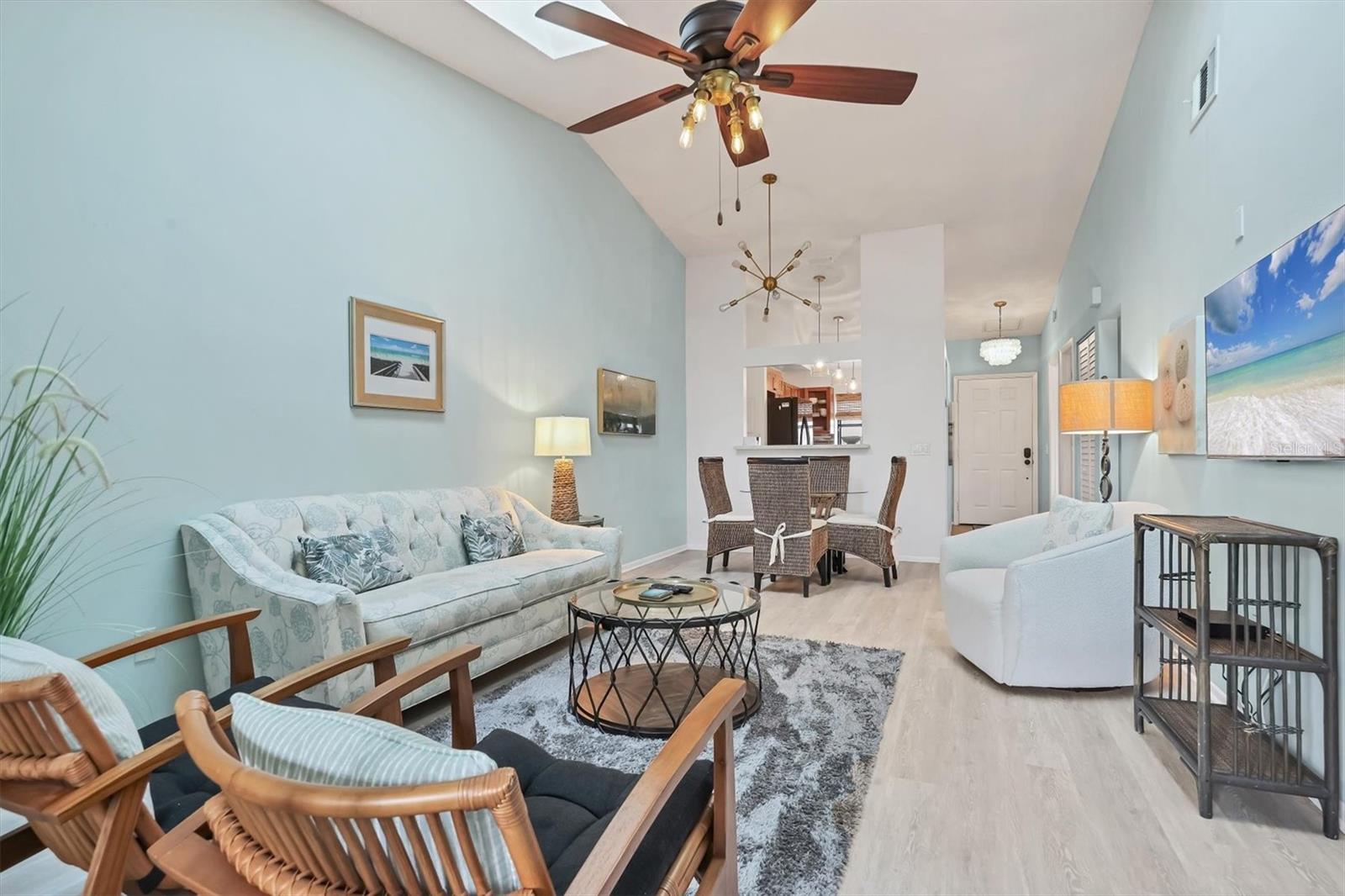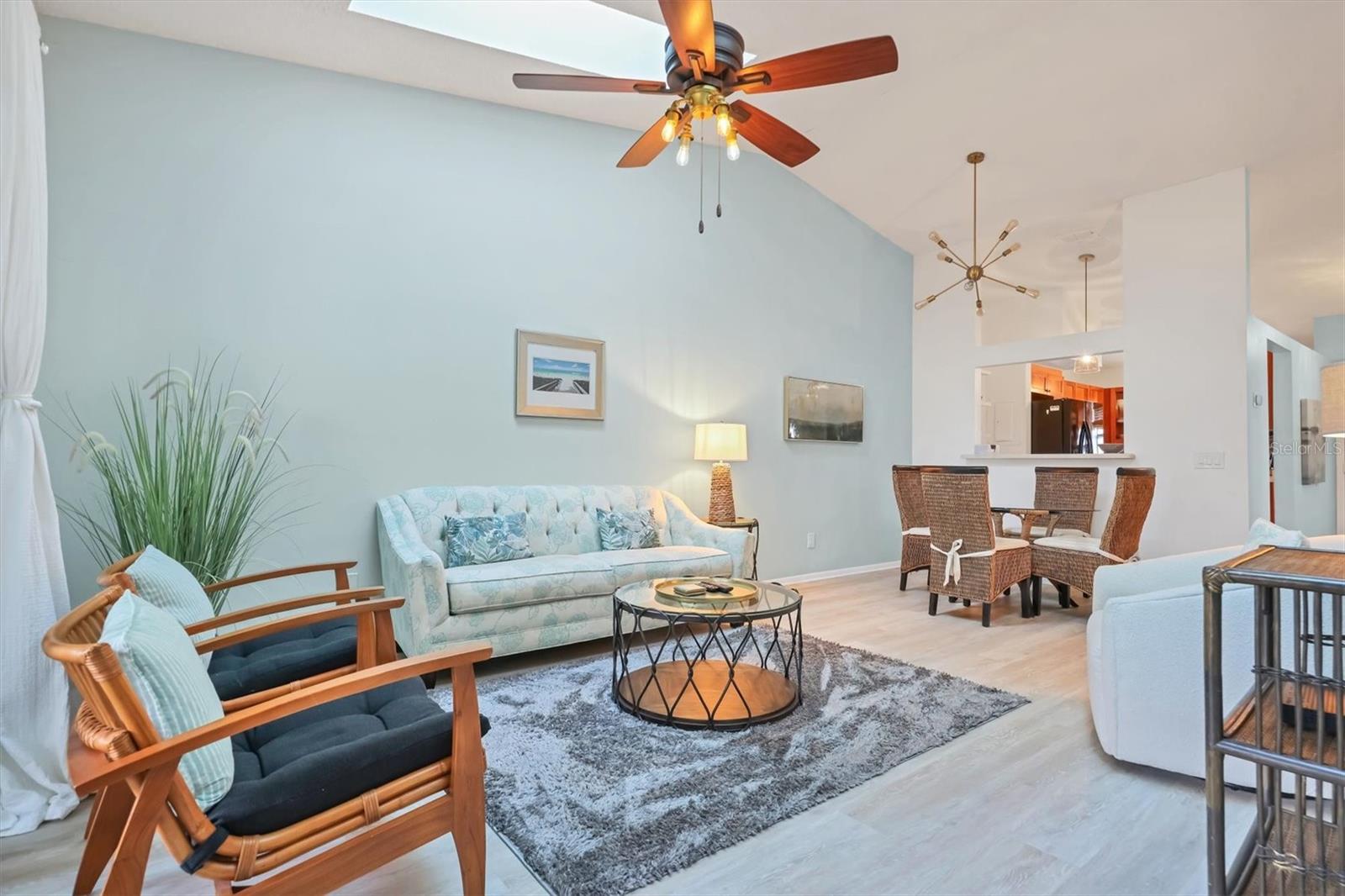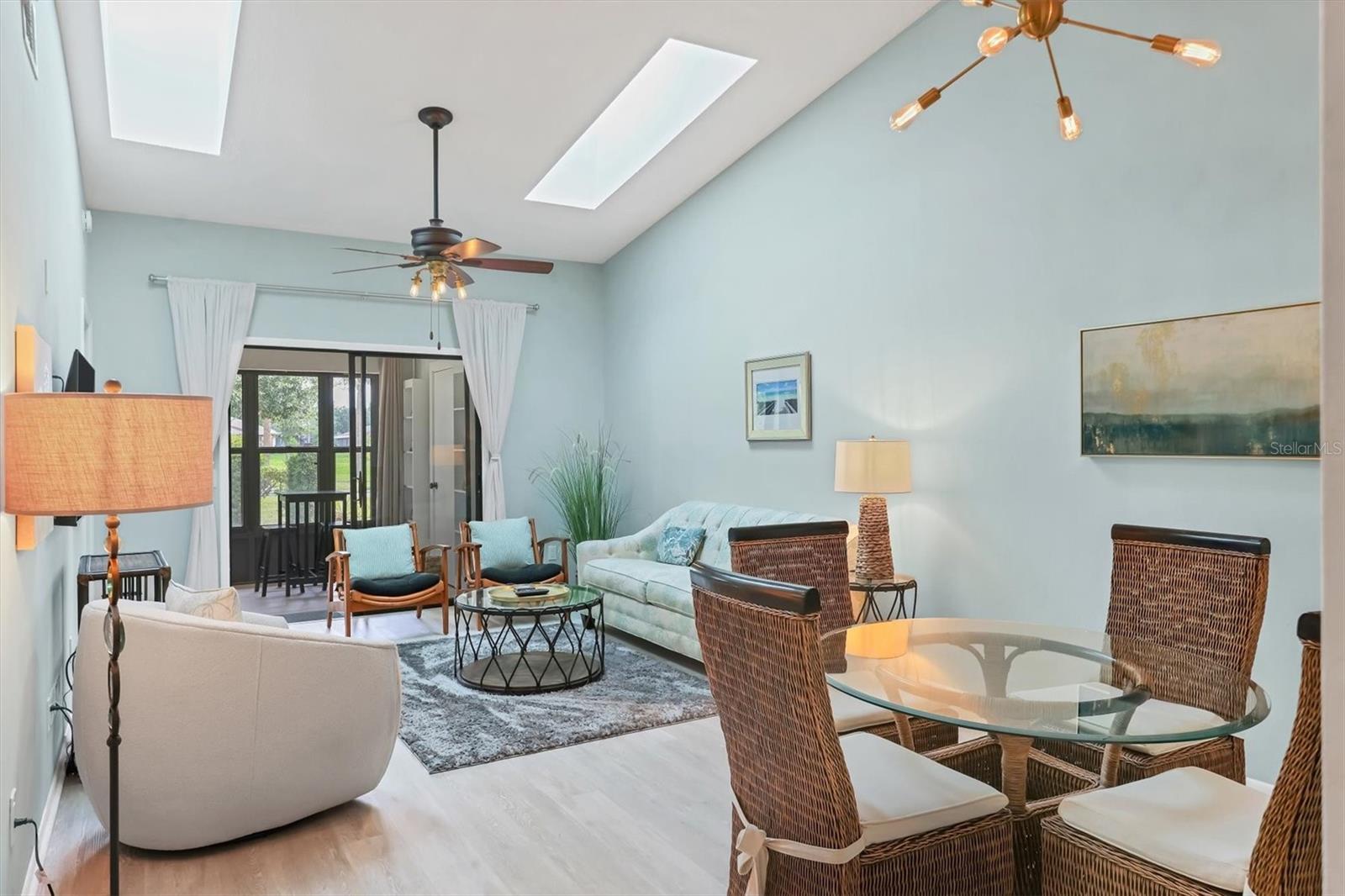 FURNISHED and nicely updated 2/2 split floor plan in an end unit villa. Pet friendly and age friendly community. No wait to rent! Close to Anna Maria beaches, Blake Medical Center, short walk to GT Bray park, DeSoto National park, Robinson Preserve, shopping, dining, SRQ international airport, the arts of Sarasota and so much more. Superb features such as luxury vinyl flooring, vaulted ceilings, skylights, bright and airy living space drawing your eyes to the Florida room with windows presenting lush open green space that opens to your own private patio. Kitchen has gorgeous cabinets, Corian countertops and tile backsplash, while both bathrooms are updated beautifully, the 2nd bathroom has a subway tiled walk-in shower. Low - very inclusive - HOA fees with no wait rentals 1 time annually.