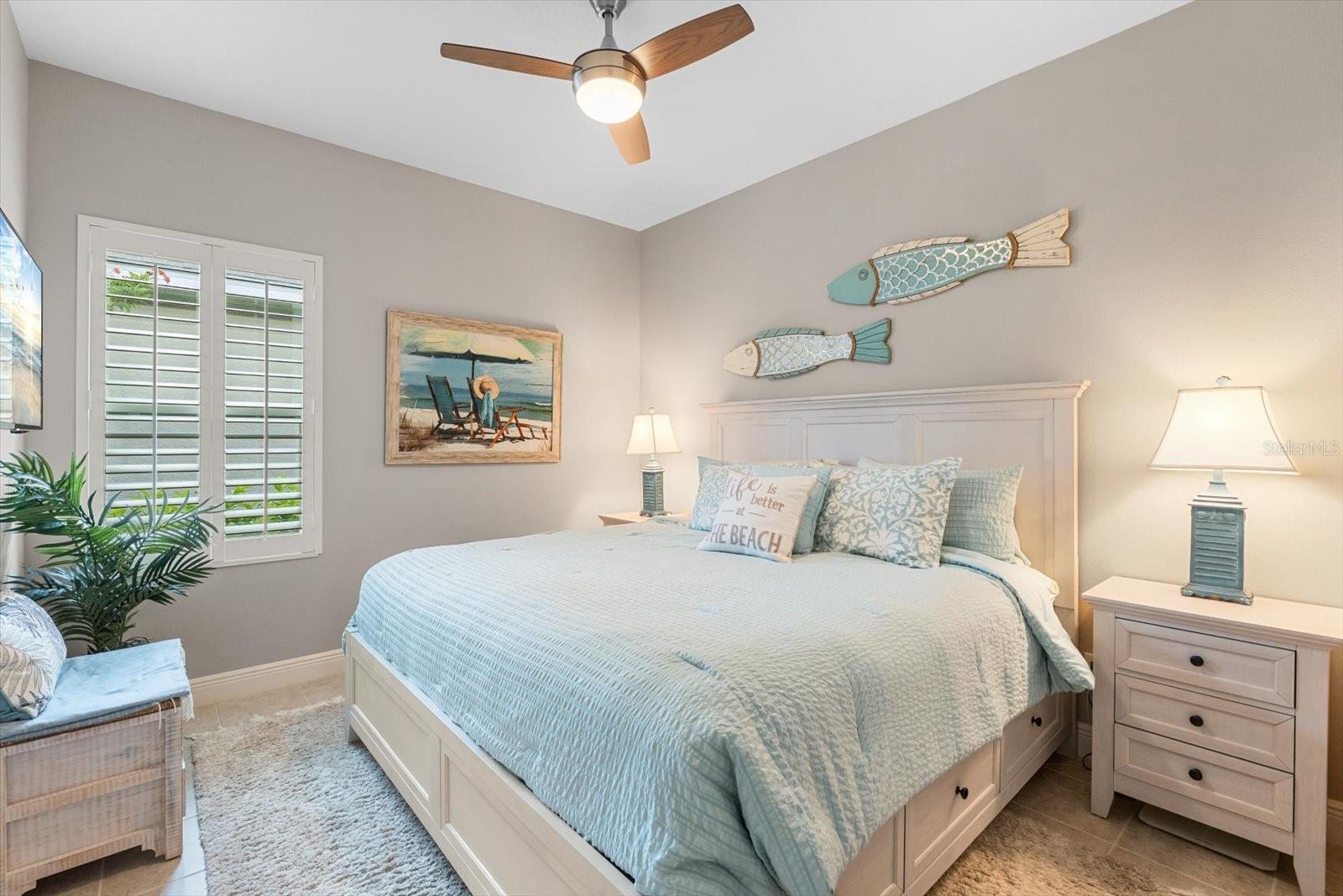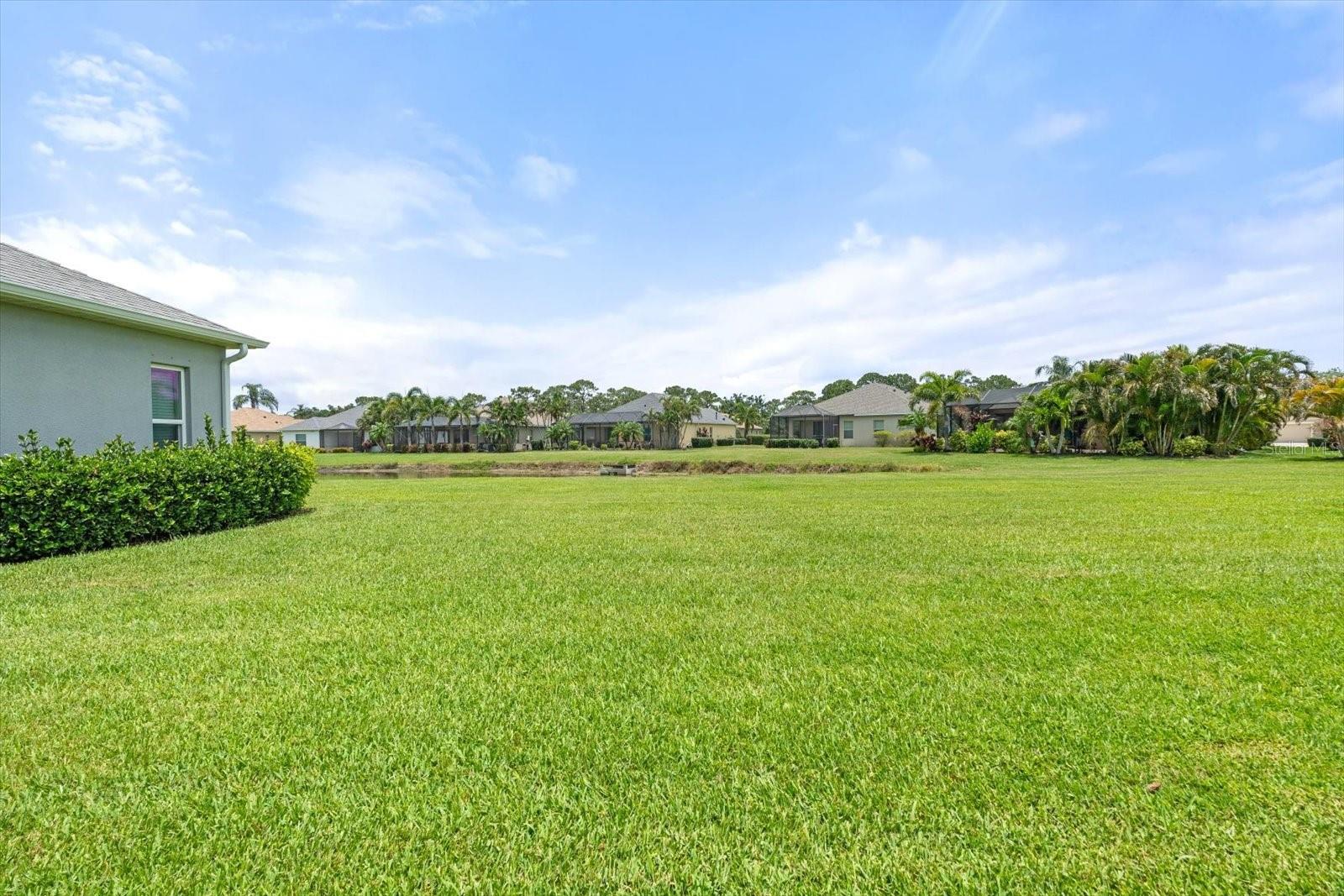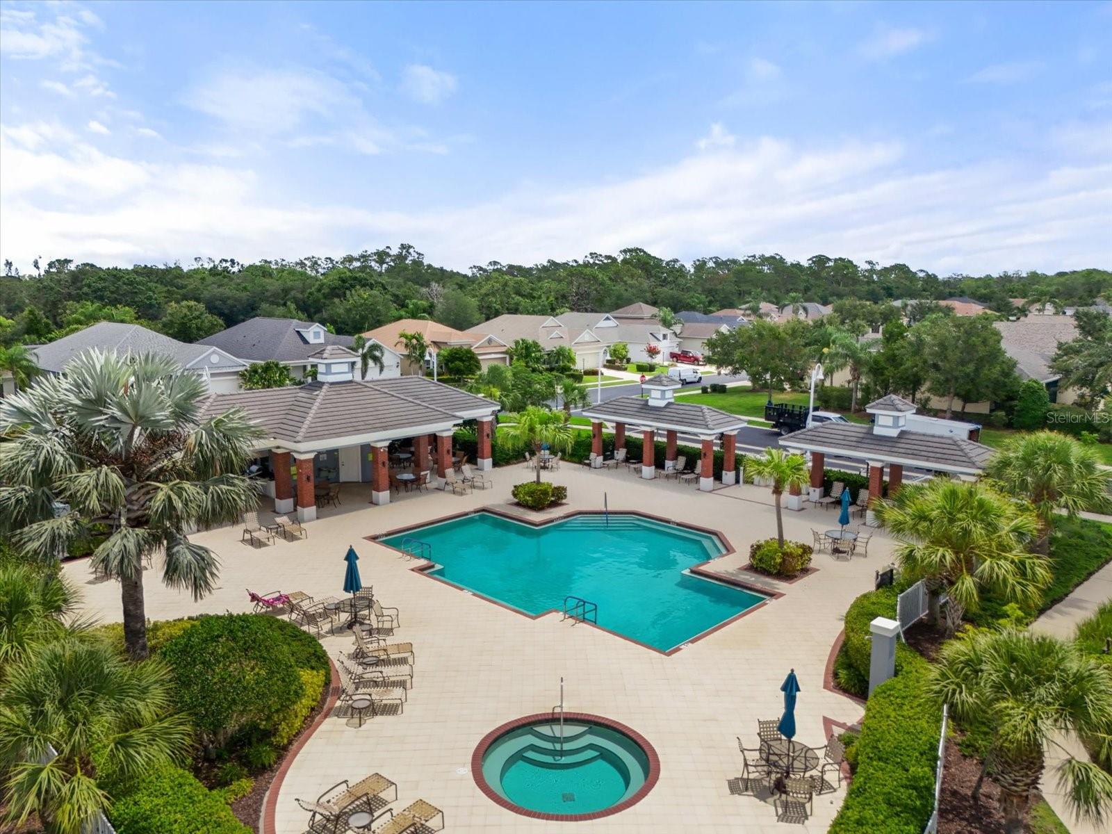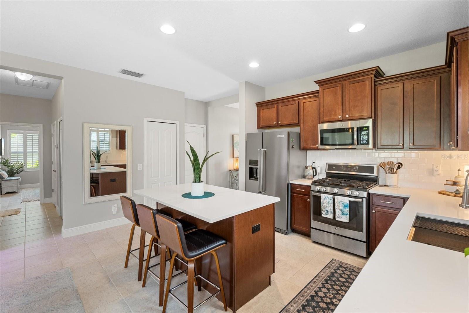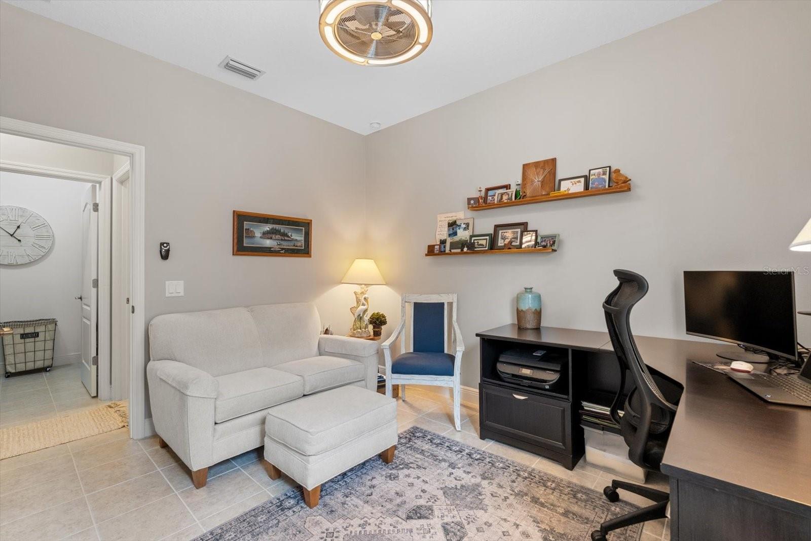 This meticulously cared-for home, inside and out, is truly move-in ready! Located on a cul-de-sac in the highly sought-after gated community of Eagle Trace, this property offers the perfect blend of comfort, functionality, and charm. Enjoy your morning coffee on the inviting front porch, then step through the glass front door into a naturally lit, open-concept layout with a direct view of the serene pond in the backyard. A spacious front den offers the ideal space for a home office, playroom, or reading nook. The heart of the home features a stylish kitchen complete with gas stainless steel appliances, a large island with seating, backsplash, and a walk-in pantry. Best of all—this home has no carpet!Plantation shutters, updated light fixtures, and ceiling fans throughout the home. Down the hallway, you'll find two generously sized bedrooms, a guest bathroom, and a laundry room with washer and dryer included. The split floor plan ensures privacy, with the spacious primary suite located at the back of the home. The primary bedroom is filled with natural light and includes an en-suite bathroom with double sinks and a walk-in shower. Enjoy Florida living year-round on the screened-in lanai overlooking the peaceful pond. Best of all, the home is not in a flood zone and no CDD fee! Eagle Trace HOA covers front and backyard irrigation, lawn maintenance, and access to fantastic amenities including a community pool, hot tub, pickleball courts, playground, and dog park. Conveniently located near SR-64, US-301, I-75, and I-275, yet tucked away in a private neighborhood—this is the perfect place to call home.