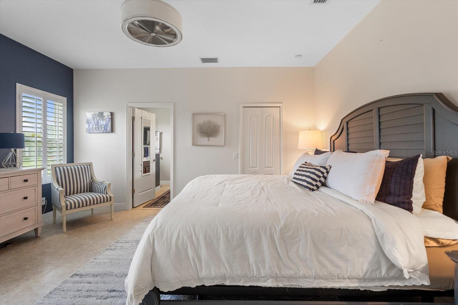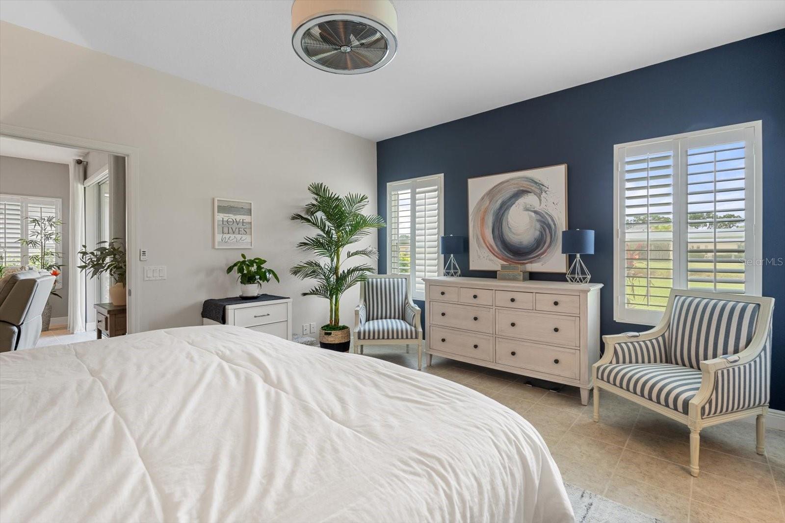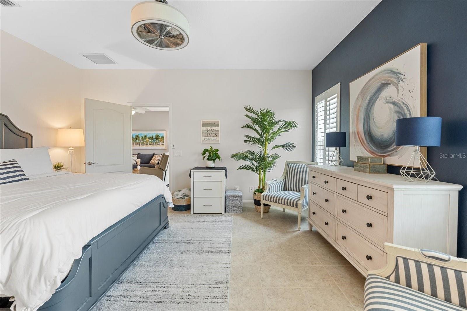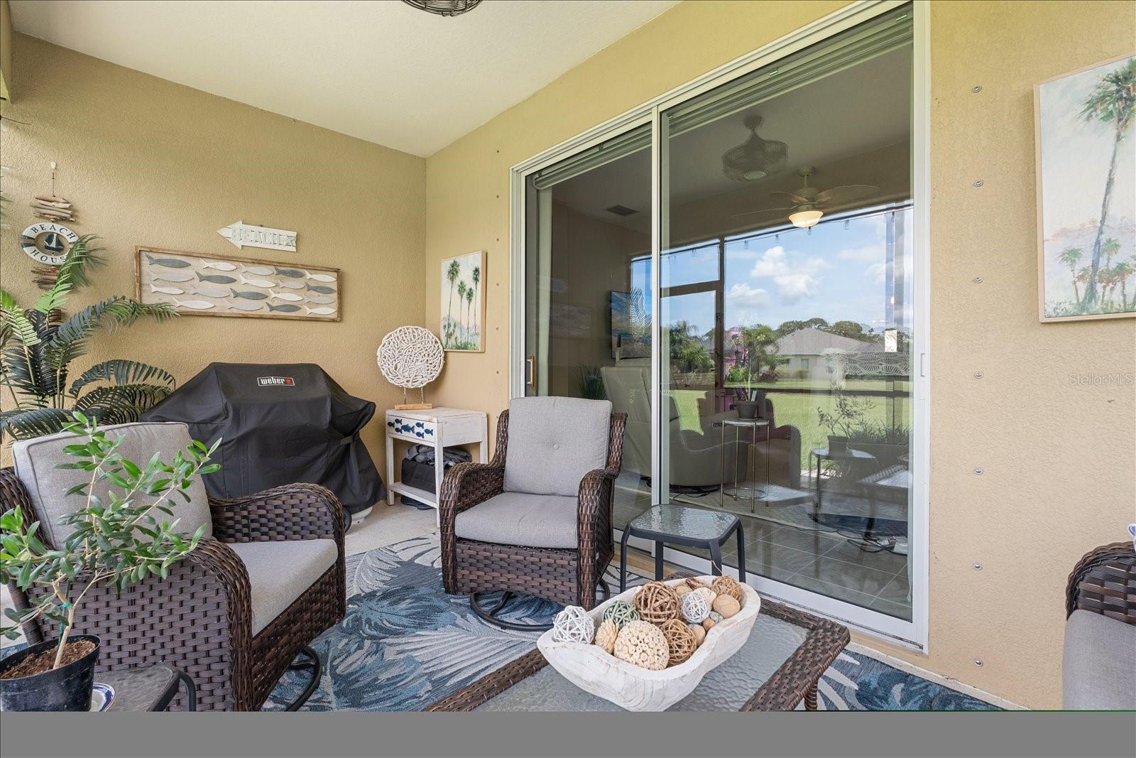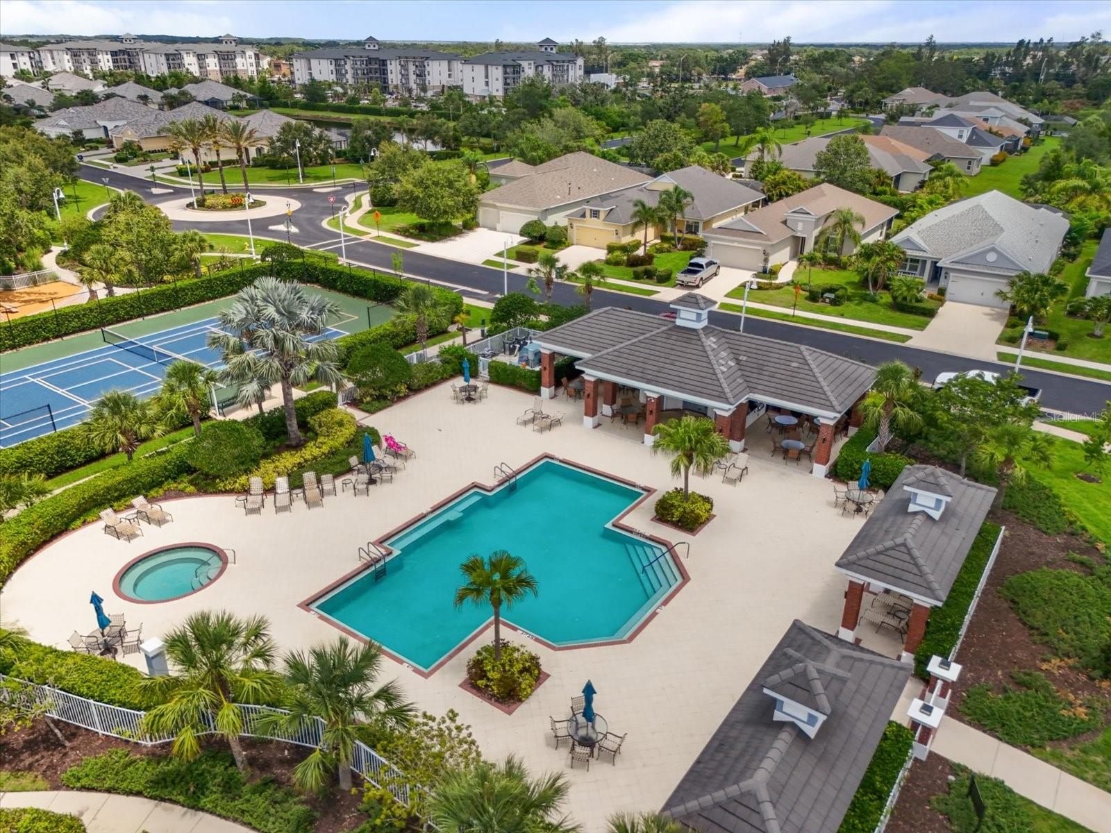 This meticulously cared-for home, inside and out, is truly move-in ready! Located on a cul-de-sac in the highly sought-after gated community of Eagle Trace, this property offers the perfect blend of comfort, functionality, and charm. Enjoy your morning coffee on the inviting front porch, then step through the glass front door into a naturally lit, open-concept layout with a direct view of the serene pond in the backyard. A spacious front den offers the ideal space for a home office, playroom, or reading nook. The heart of the home features a stylish kitchen complete with gas stainless steel appliances, a large island with seating, backsplash, and a walk-in pantry. Best of all—this home has no carpet!Plantation shutters, updated light fixtures, and ceiling fans throughout the home. Down the hallway, you'll find two generously sized bedrooms, a guest bathroom, and a laundry room with washer and dryer included. The split floor plan ensures privacy, with the spacious primary suite located at the back of the home. The primary bedroom is filled with natural light and includes an en-suite bathroom with double sinks and a walk-in shower. Enjoy Florida living year-round on the screened-in lanai overlooking the peaceful pond. Best of all, the home is not in a flood zone and no CDD fee! Eagle Trace HOA covers front and backyard irrigation, lawn maintenance, and access to fantastic amenities including a community pool, hot tub, pickleball courts, playground, and dog park. Conveniently located near SR-64, US-301, I-75, and I-275, yet tucked away in a private neighborhood—this is the perfect place to call home.