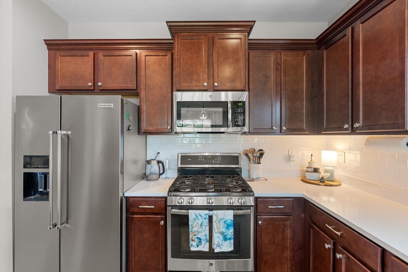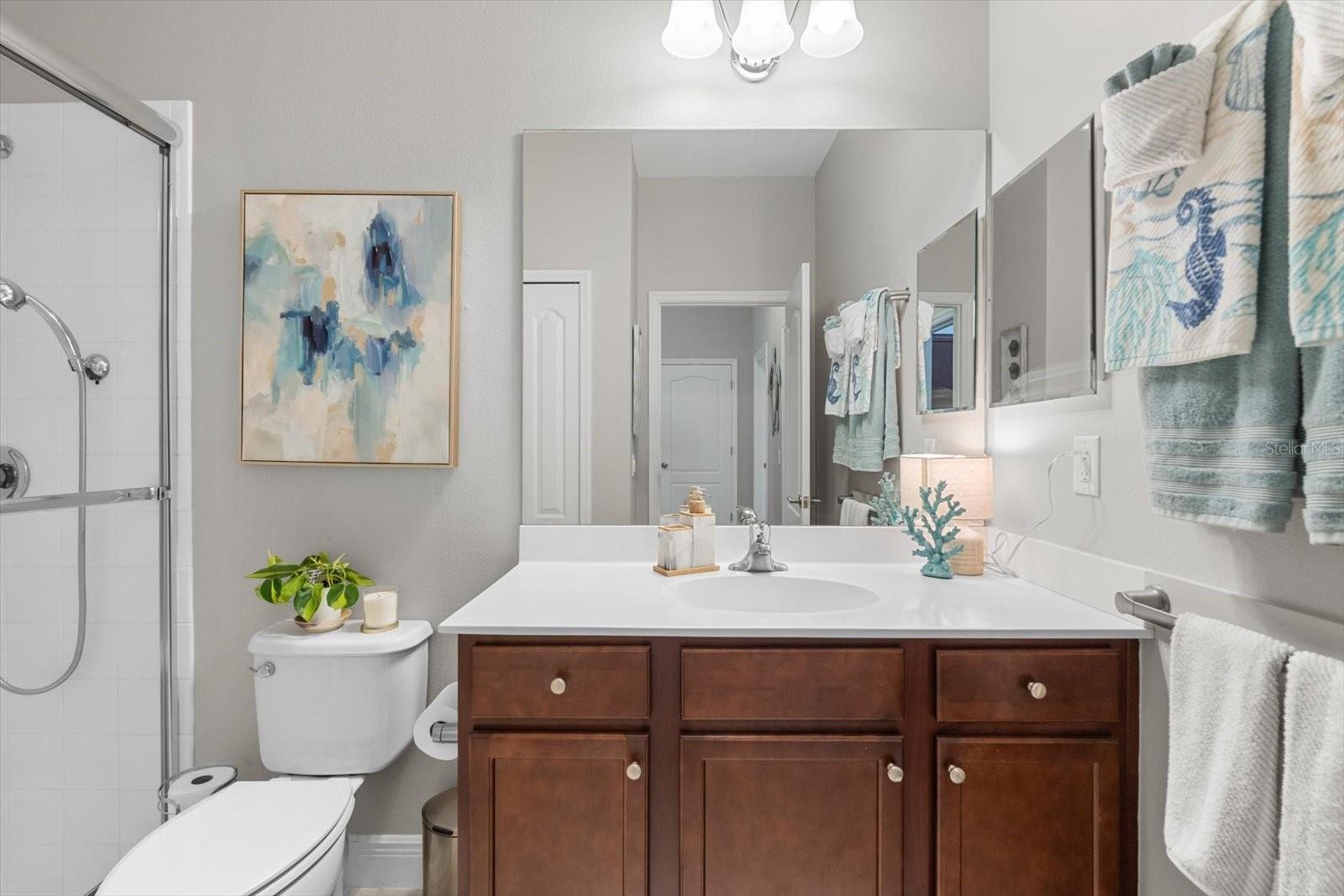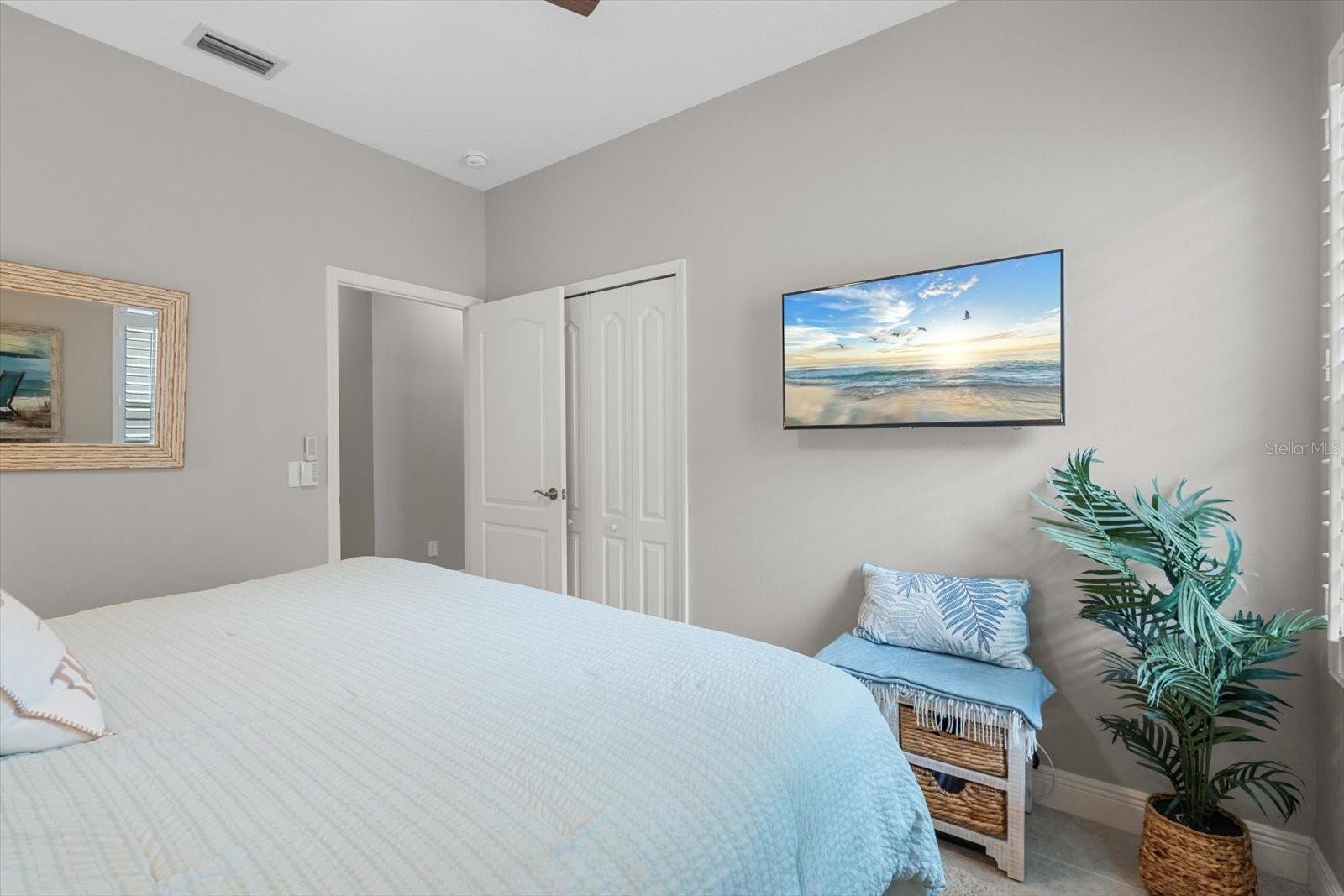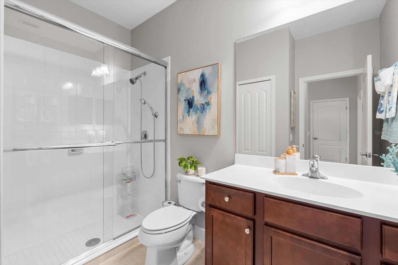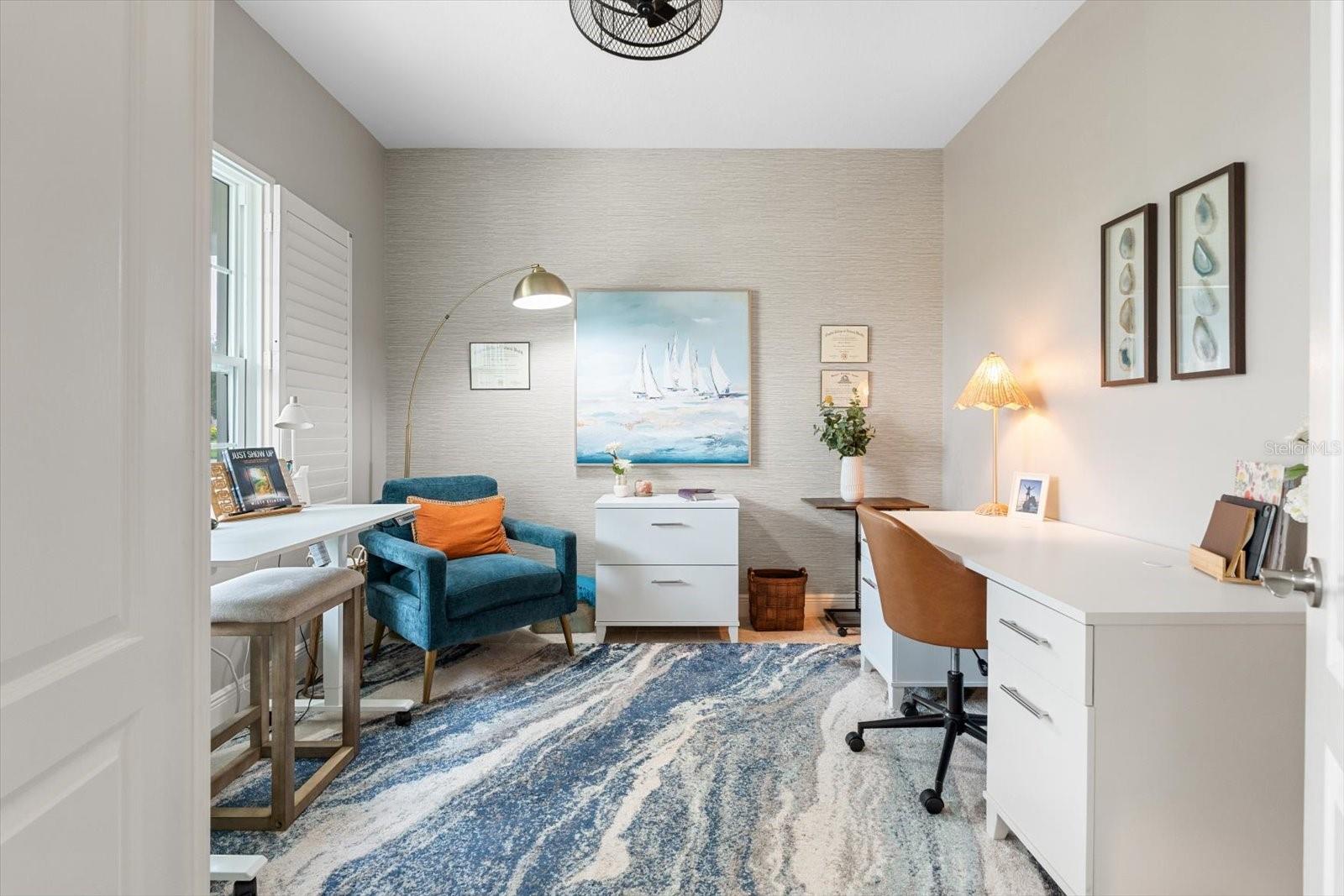 This meticulously cared-for home, inside and out, is truly move-in ready! Located on a cul-de-sac in the highly sought-after gated community of Eagle Trace, this property offers the perfect blend of comfort, functionality, and charm. Enjoy your morning coffee on the inviting front porch, then step through the glass front door into a naturally lit, open-concept layout with a direct view of the serene pond in the backyard. A spacious front den offers the ideal space for a home office, playroom, or reading nook. The heart of the home features a stylish kitchen complete with gas stainless steel appliances, a large island with seating, backsplash, and a walk-in pantry. Best of all—this home has no carpet!Plantation shutters, updated light fixtures, and ceiling fans throughout the home. Down the hallway, you'll find two generously sized bedrooms, a guest bathroom, and a laundry room with washer and dryer included. The split floor plan ensures privacy, with the spacious primary suite located at the back of the home. The primary bedroom is filled with natural light and includes an en-suite bathroom with double sinks and a walk-in shower. Enjoy Florida living year-round on the screened-in lanai overlooking the peaceful pond. Best of all, the home is not in a flood zone and no CDD fee! Eagle Trace HOA covers front and backyard irrigation, lawn maintenance, and access to fantastic amenities including a community pool, hot tub, pickleball courts, playground, and dog park. Conveniently located near SR-64, US-301, I-75, and I-275, yet tucked away in a private neighborhood—this is the perfect place to call home.