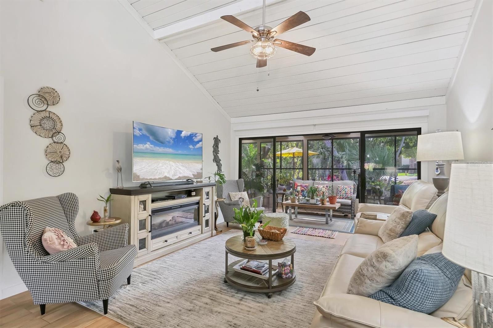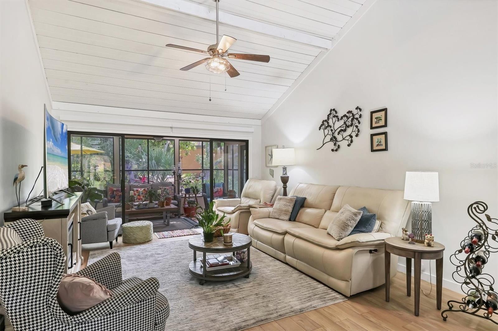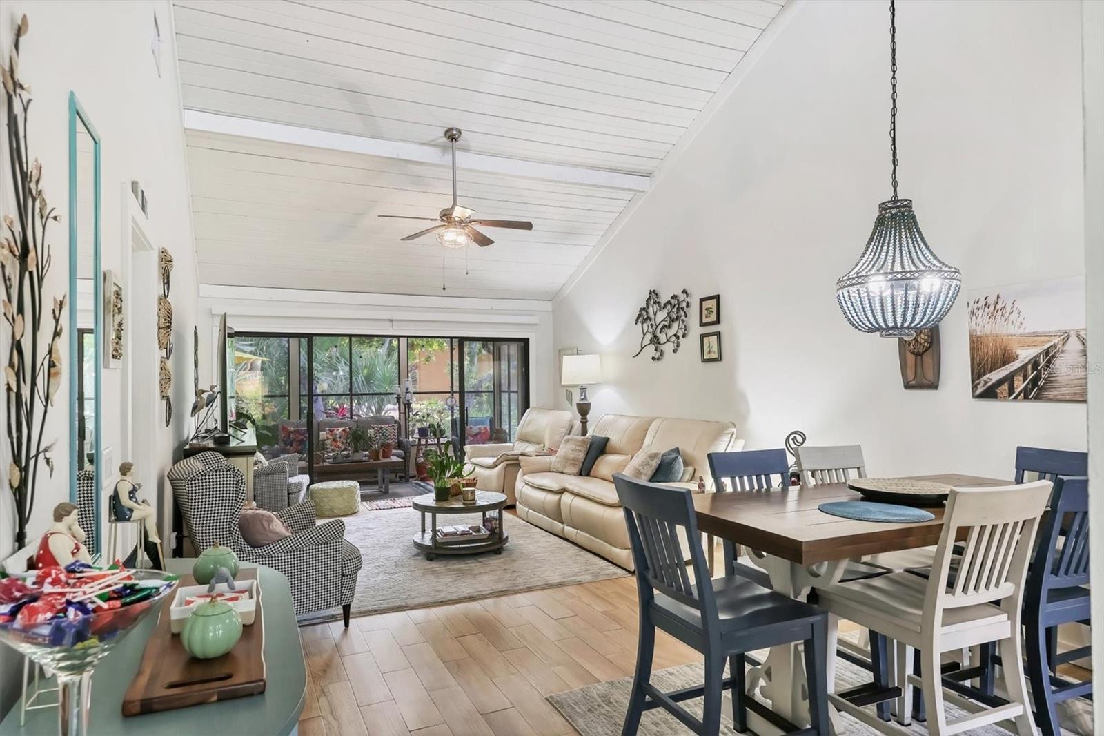 Welcome to 7915 4th Avenue W in beautiful Bradenton, a tastefully renovated two-bedroom, two-bath condominium in the desirable Pine Bay Forest community. This light-filled, spacious residence offers a blend of comfort, style and convenience, just minutes from the world-famous beaches of Anna Maria Island. Enter to discover soaring vaulted ceilings with exposed wood beams, creating a warm and inviting atmosphere throughout the open living and dining areas. The updated kitchen is a chef's delight, featuring new appliances, custom tile flooring and ample cabinetry, making meal prep a breeze. Both baths have been thoughtfully renovated, including the primary en suite, which boasts dual sinks and a large walk-in closet. The second bedroom is equally spacious and ideal for guests or a home office. Just off the main living space, an enclosed lanai provides a spot for morning coffee, creative hobbies or a cozy reading nook. Pine Bay Forest is known for its lush, park-like setting and resort-style amenities. Residents enjoy access to a heated community pool, relaxing spa, sauna, tennis courts and shuffleboard, all near your front door. Nature lovers will appreciate the proximity to Robinson Preserve and DeSoto National Memorial Park, while shoppers and foodies will enjoy being close to local boutiques, cafes and restaurants. Whether you're searching for a full-time residence or a seasonal getaway, this move-in-ready condominium offers the Florida lifestyle you've been dreaming of. Don't miss the opportunity to make 7915 4th Avenue W your new home. New roof in 2022.