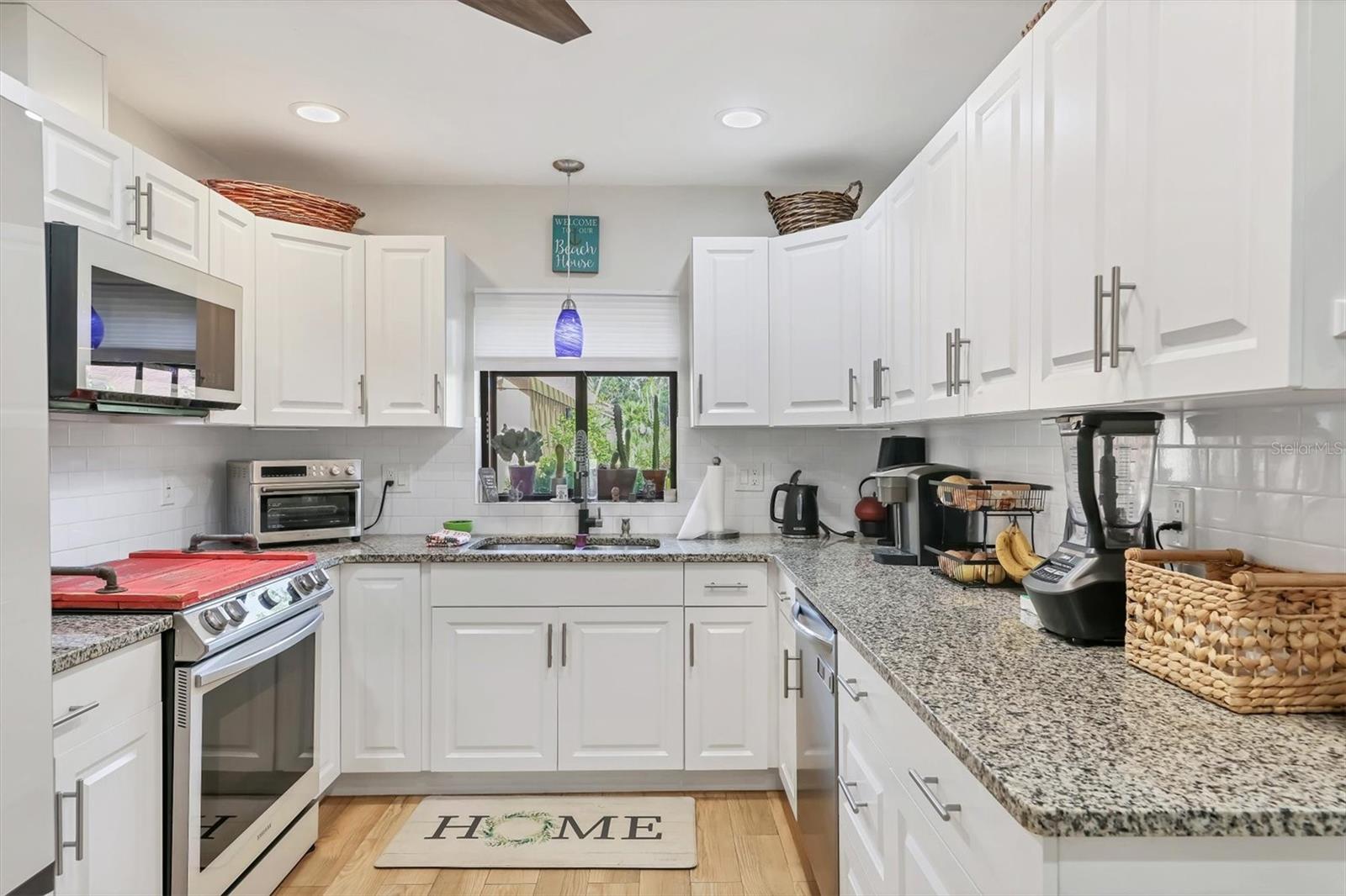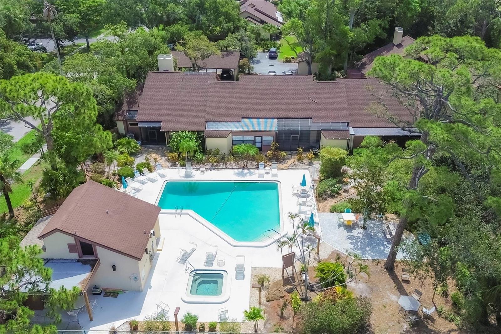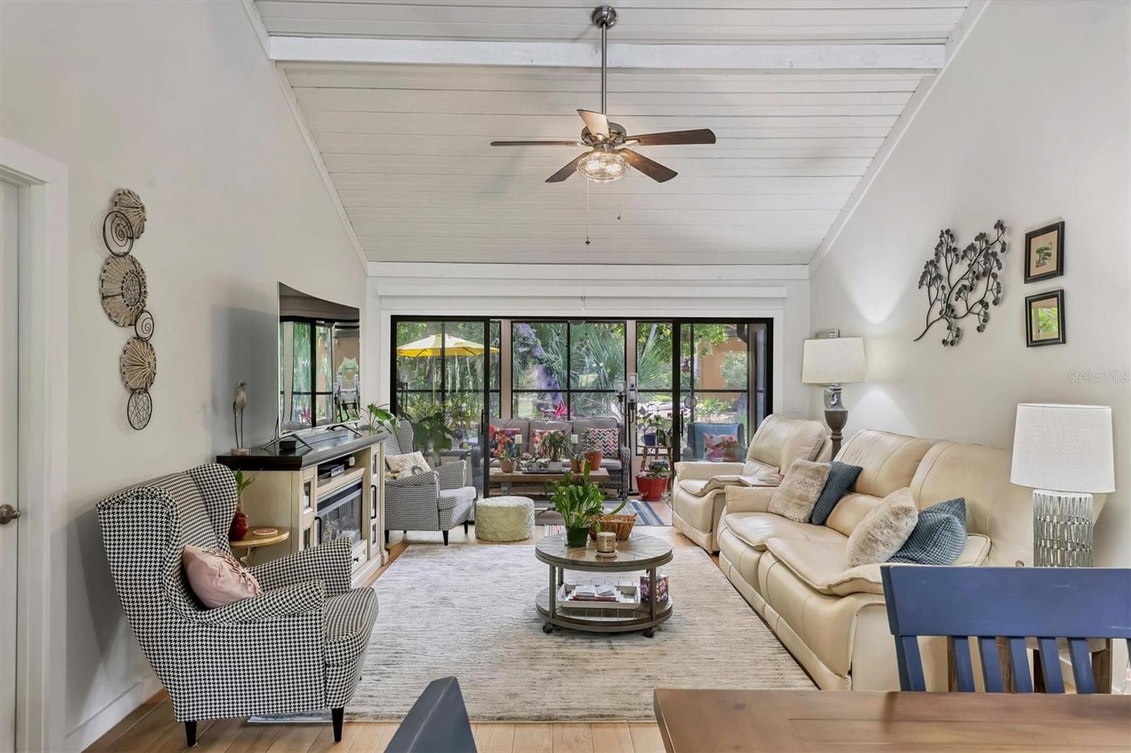 Welcome to 7915 4th Avenue W in beautiful Bradenton, a tastefully renovated two-bedroom, two-bath condominium in the desirable Pine Bay Forest community. This light-filled, spacious residence offers a blend of comfort, style and convenience, just minutes from the world-famous beaches of Anna Maria Island. Enter to discover soaring vaulted ceilings with exposed wood beams, creating a warm and inviting atmosphere throughout the open living and dining areas. The updated kitchen is a chef's delight, featuring new appliances, custom tile flooring and ample cabinetry, making meal prep a breeze. Both baths have been thoughtfully renovated, including the primary en suite, which boasts dual sinks and a large walk-in closet. The second bedroom is equally spacious and ideal for guests or a home office. Just off the main living space, an enclosed lanai provides a spot for morning coffee, creative hobbies or a cozy reading nook. Pine Bay Forest is known for its lush, park-like setting and resort-style amenities. Residents enjoy access to a heated community pool, relaxing spa, sauna, tennis courts and shuffleboard, all near your front door. Nature lovers will appreciate the proximity to Robinson Preserve and DeSoto National Memorial Park, while shoppers and foodies will enjoy being close to local boutiques, cafes and restaurants. Whether you're searching for a full-time residence or a seasonal getaway, this move-in-ready condominium offers the Florida lifestyle you've been dreaming of. Don't miss the opportunity to make 7915 4th Avenue W your new home. New roof in 2022.
