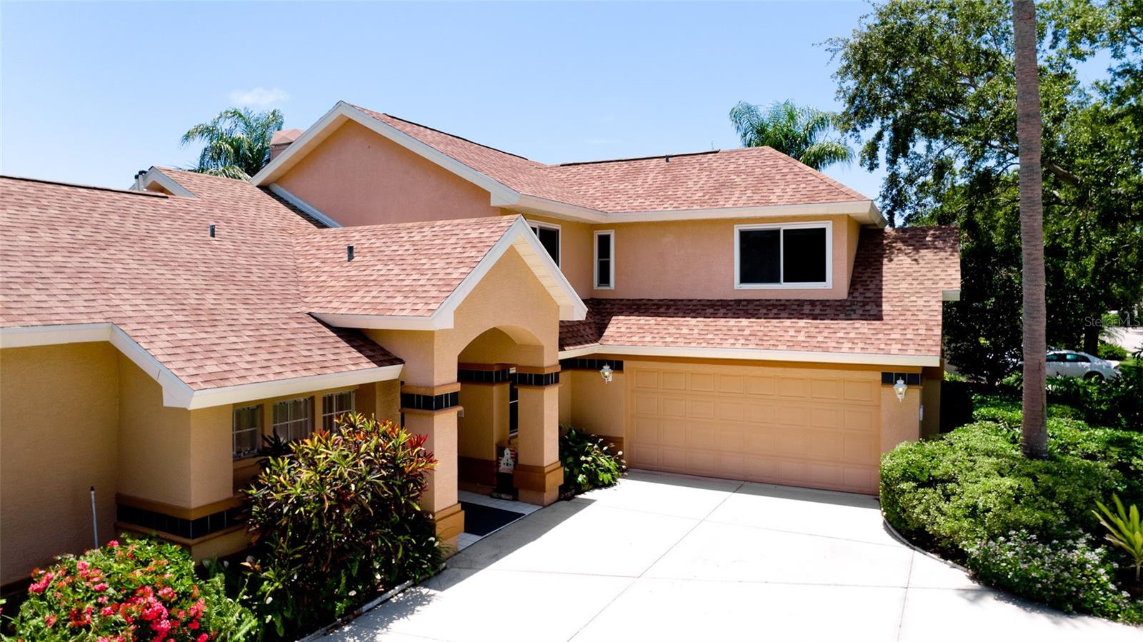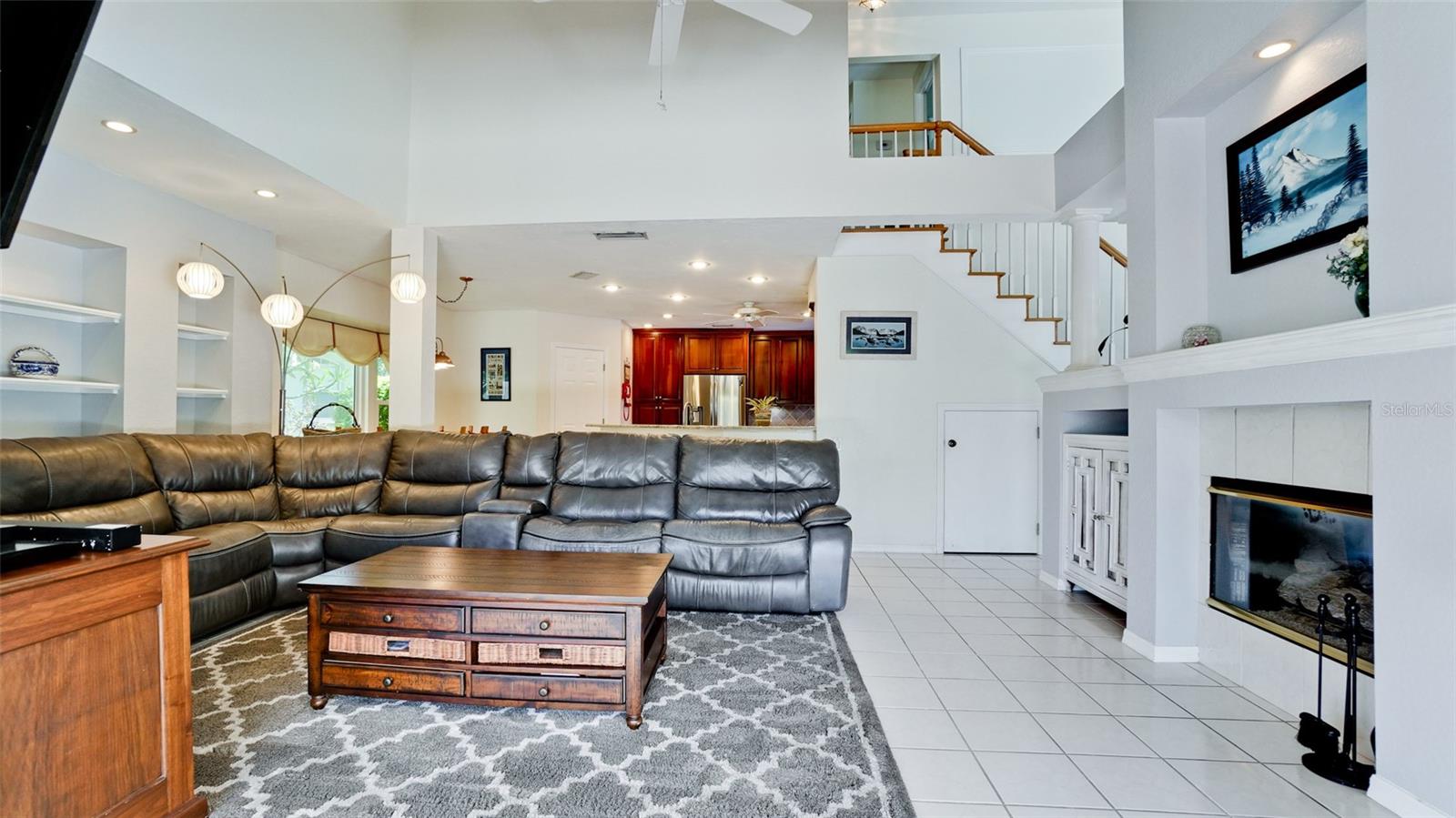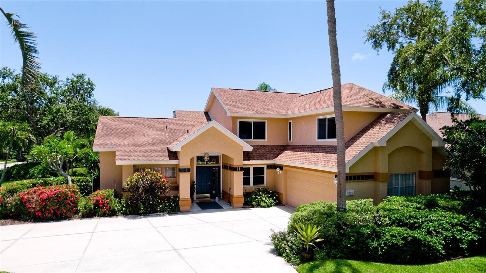 Welcome to your Florida dream home, nestled in the sought-after, well-established neighborhood of Hawthorne Park! This beautifully maintained four-bedroom, two-and-a-half-bath residence offers 2,149 sq. ft. of living space on a spacious quarter-acre corner lot, just minutes from Anna Maria Island, Robinson Preserve, and the Botanical Gardens. Enjoy the ultimate in outdoor living with a sparkling, solar-heated, caged pool surrounded by a brick paver patio—perfectly designed with both covered and open areas, all within a screened enclosure for year-round enjoyment. The home boasts a circular driveway, side-entry two-car garage, and lush landscaping supported by an irrigation system using reclaimed water. Step inside to a grand living room with soaring 18-foot ceilings, and a cozy family room off the kitchen, both sharing a double-sided gas fireplace (not warranted), and offering views of the serene pool area. The kitchen is a chef’s delight with solid wood cabinetry, stainless steel appliances, recessed and under-cabinet lighting, and a sunny breakfast nook, plus a formal dining area for entertaining. The primary suite is conveniently located on the main floor, featuring double sinks, a large soaking tub, separate shower, and a generously sized walk-in closet with bonus storage above. Upstairs, you’ll find three additional bedrooms and a full bath. Additional features include: All impact windows and doors or shutters, Zoned central A/C with service paid through May 2026, Roof replaced in 2019, Washer and dryer included. HOA only $850 semi-annual, covering basic cable, internet, street lighting, lakes, and common area/entrance maintenance. This is the perfect blend of privacy, location, and amenities in one of the area’s most desirable communities. Don’t miss this rare opportunity.