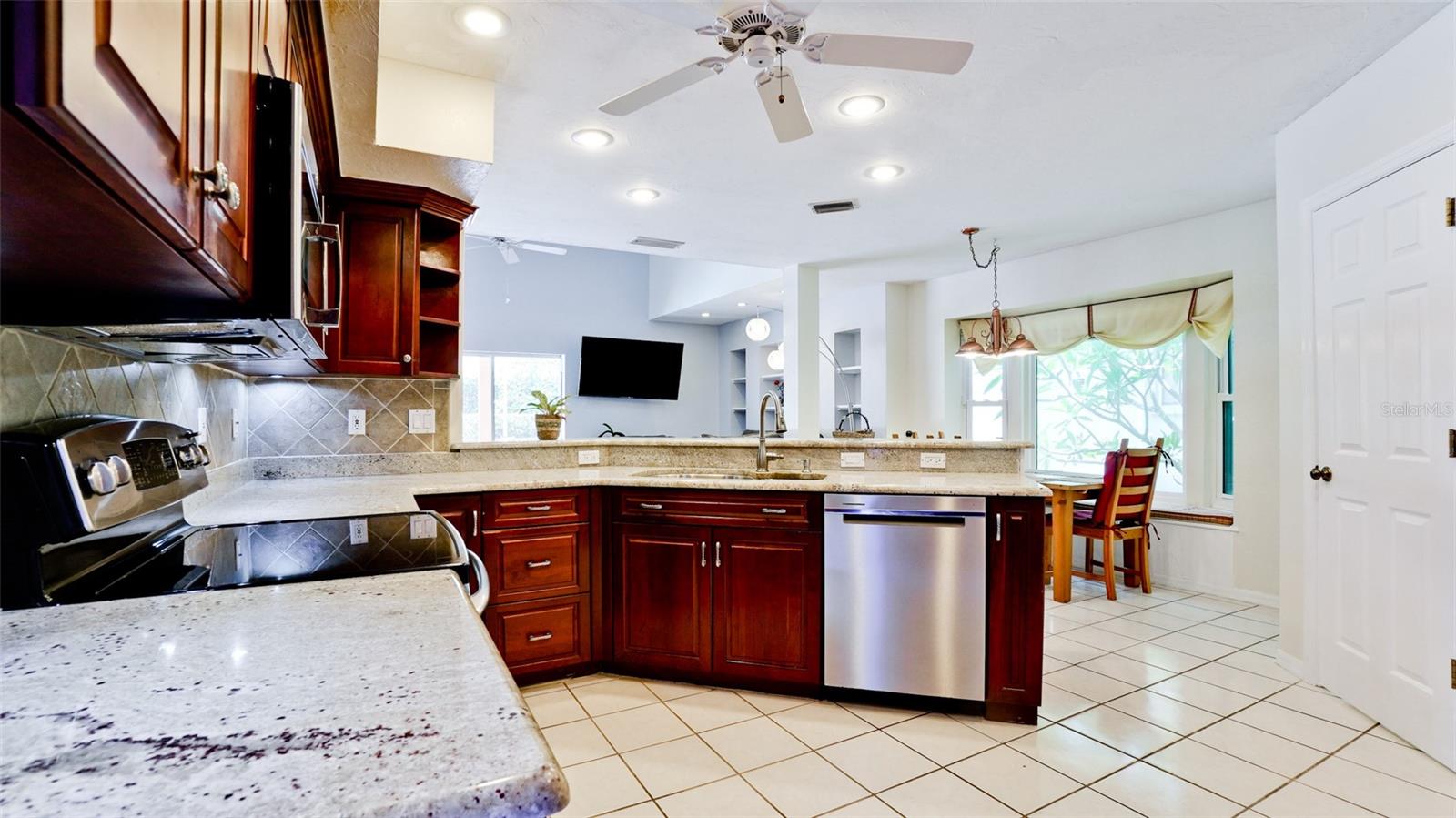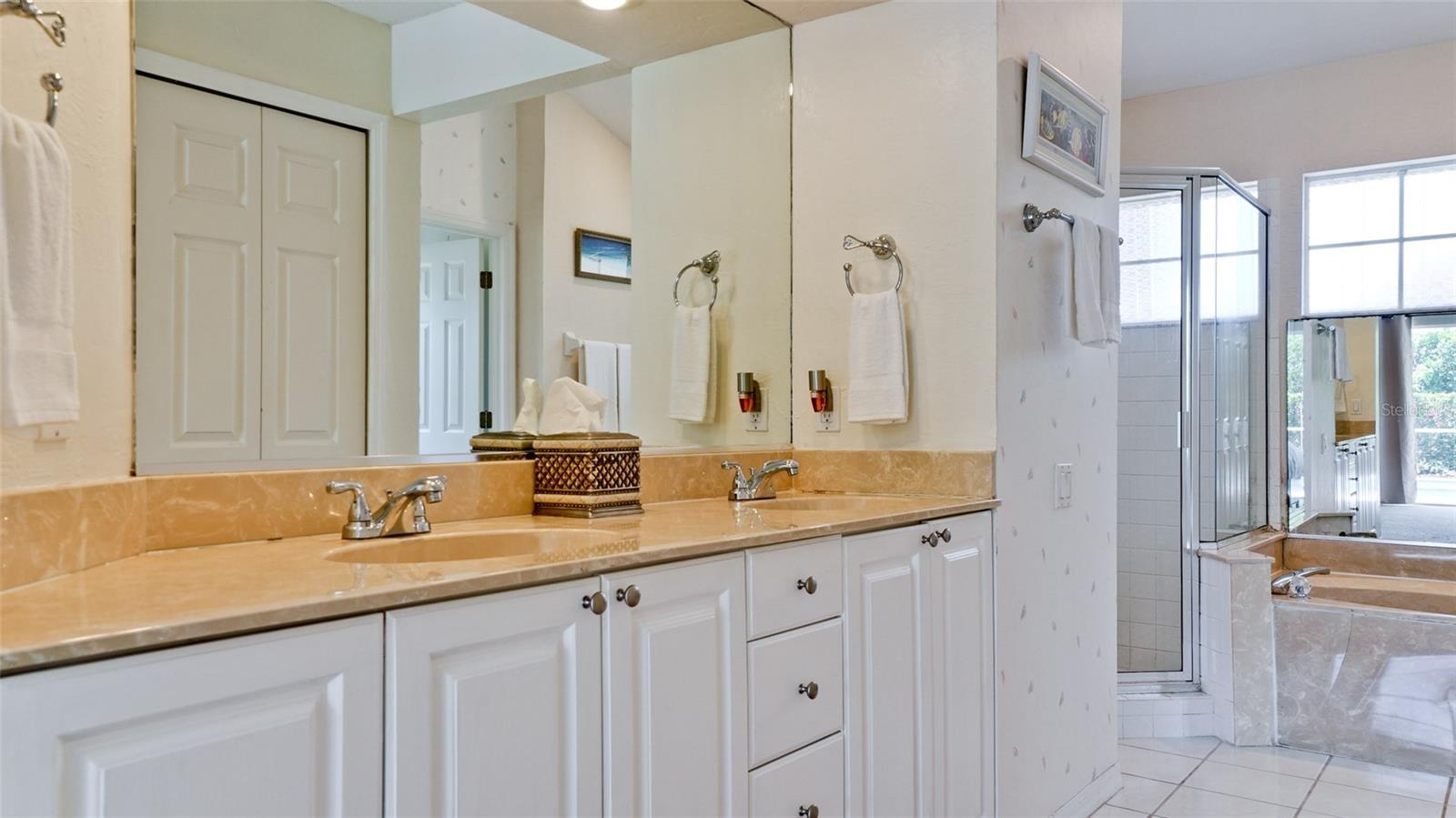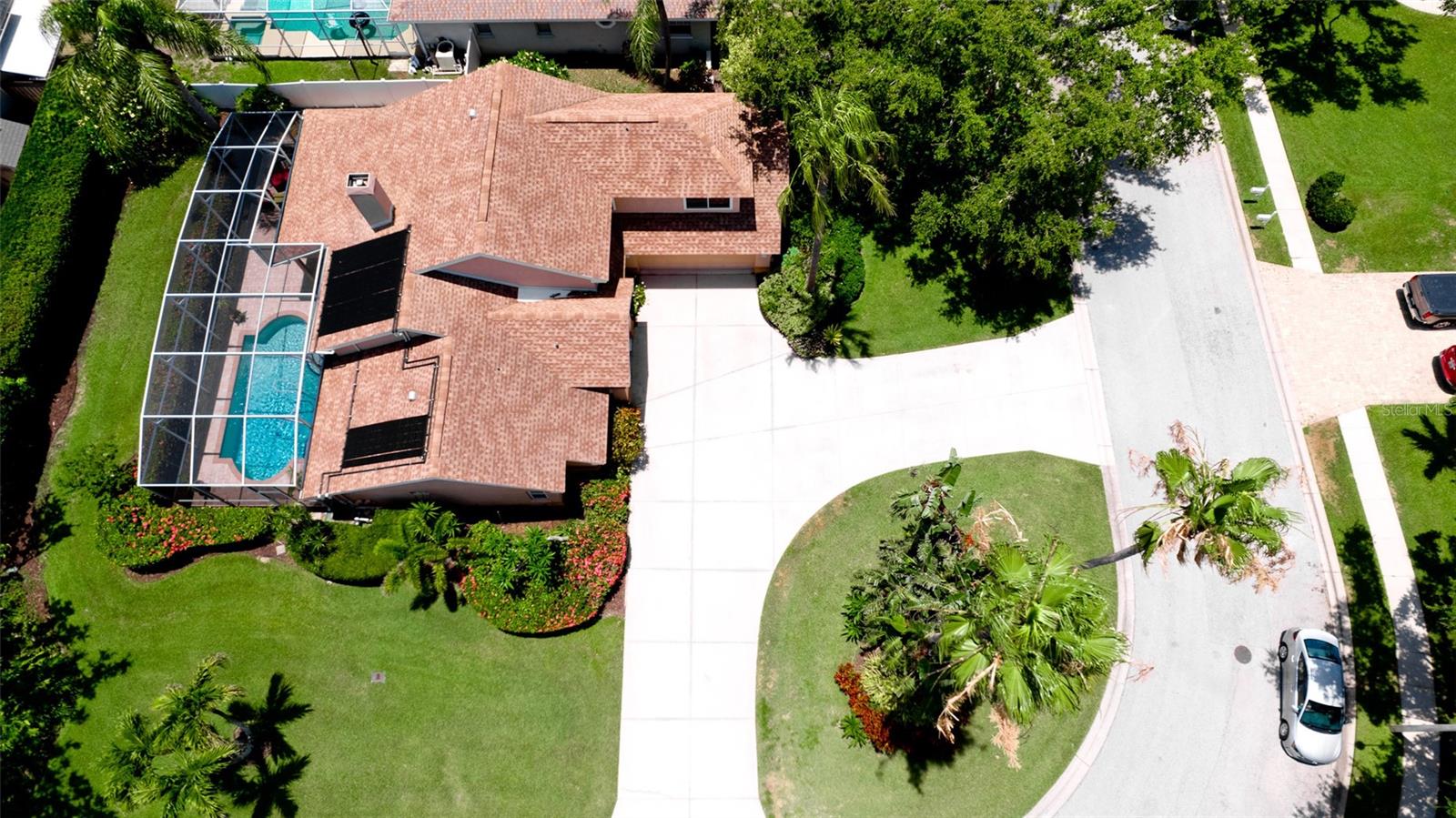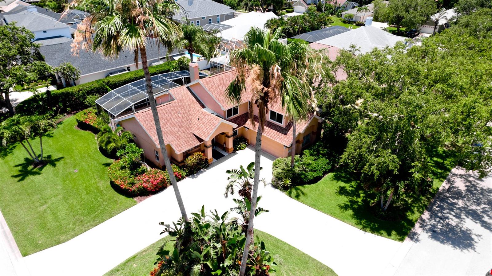 Welcome to your Florida dream home, nestled in the sought-after, well-established neighborhood of Hawthorne Park! This beautifully maintained four-bedroom, two-and-a-half-bath residence offers 2,149 sq. ft. of living space on a spacious quarter-acre corner lot, just minutes from Anna Maria Island, Robinson Preserve, and the Botanical Gardens. Enjoy the ultimate in outdoor living with a sparkling, solar-heated, caged pool surrounded by a brick paver patio—perfectly designed with both covered and open areas, all within a screened enclosure for year-round enjoyment. The home boasts a circular driveway, side-entry two-car garage, and lush landscaping supported by an irrigation system using reclaimed water. Step inside to a grand living room with soaring 18-foot ceilings, and a cozy family room off the kitchen, both sharing a double-sided gas fireplace (not warranted), and offering views of the serene pool area. The kitchen is a chef’s delight with solid wood cabinetry, stainless steel appliances, recessed and under-cabinet lighting, and a sunny breakfast nook, plus a formal dining area for entertaining. The primary suite is conveniently located on the main floor, featuring double sinks, a large soaking tub, separate shower, and a generously sized walk-in closet with bonus storage above. Upstairs, you’ll find three additional bedrooms and a full bath. Additional features include: All impact windows and doors or shutters, Zoned central A/C with service paid through May 2026, Roof replaced in 2019, Washer and dryer included. HOA only $850 semi-annual, covering basic cable, internet, street lighting, lakes, and common area/entrance maintenance. This is the perfect blend of privacy, location, and amenities in one of the area’s most desirable communities. Don’t miss this rare opportunity.