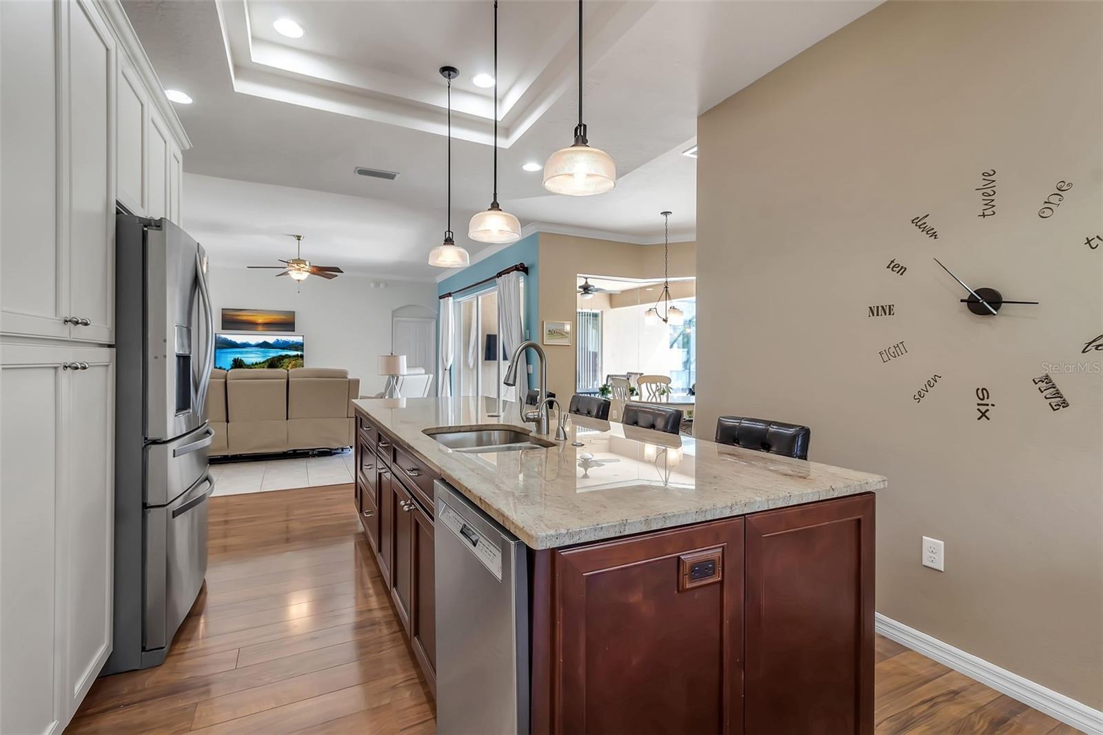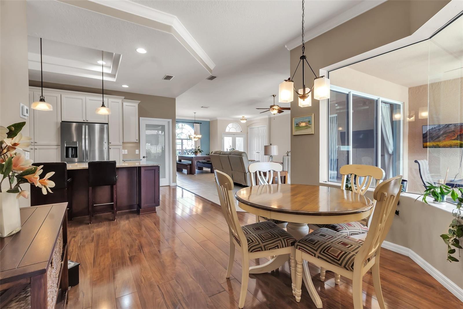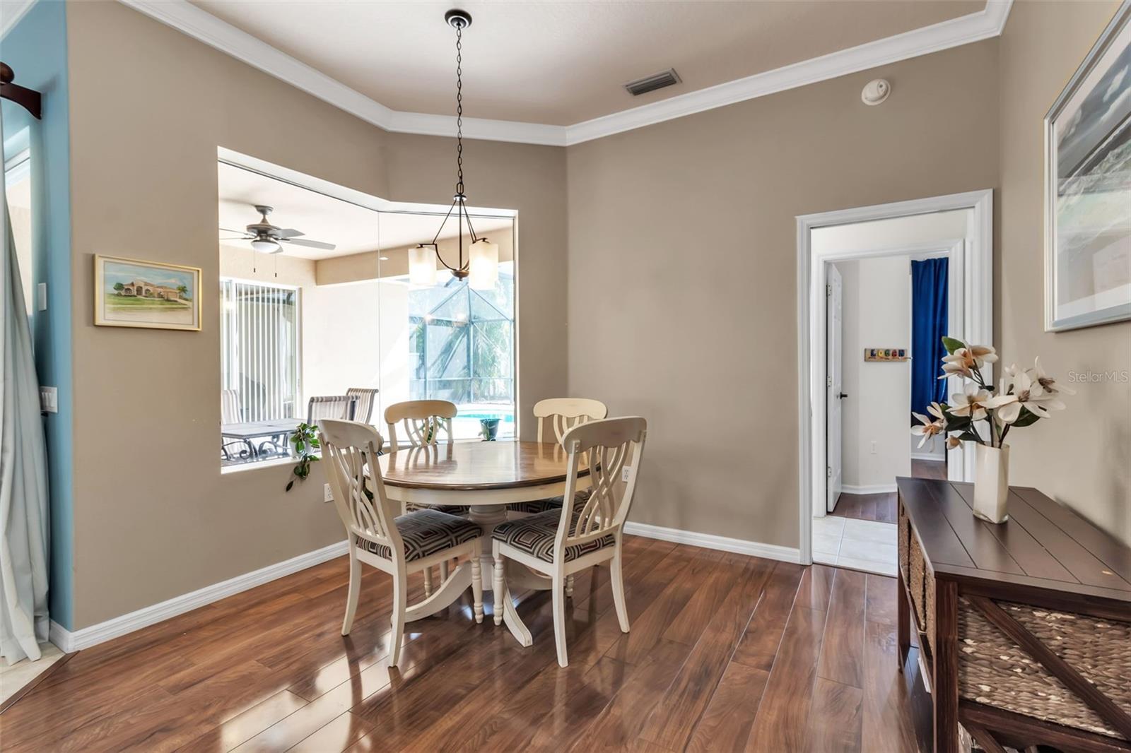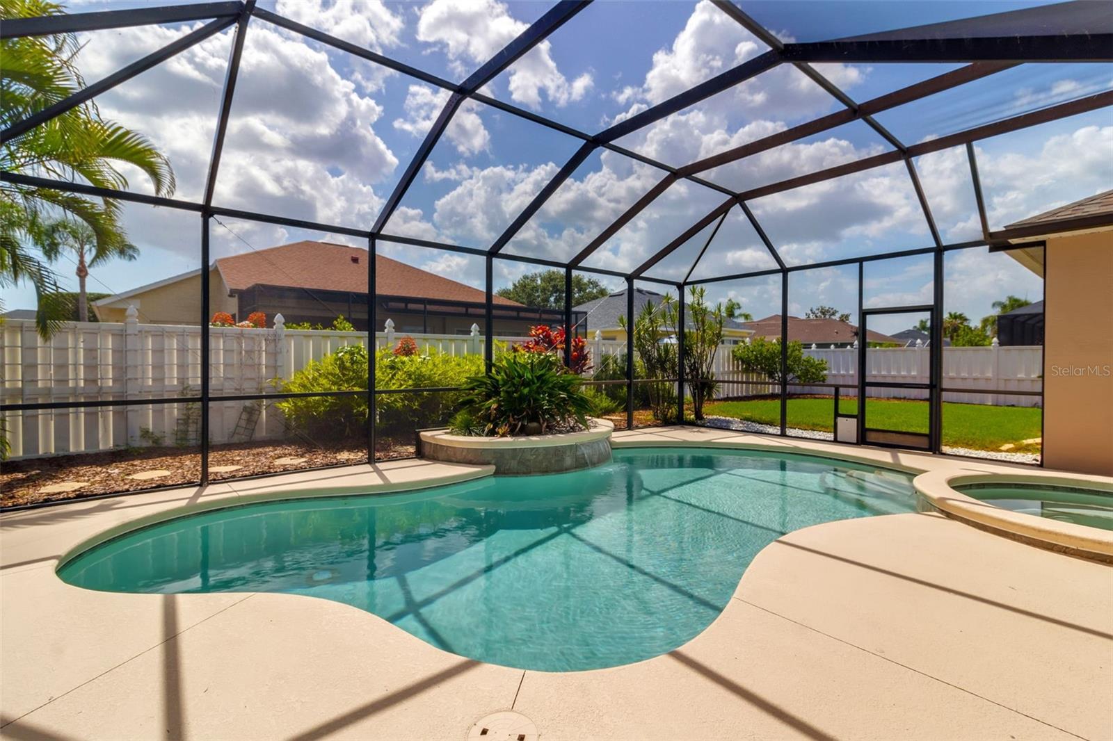 Welcome to this meticulously maintained home in the Greenfield Plantation/Planters Manor community, where timeless elegance meets modern comfort. Boasting 2,296 square feet of thoughtfully designed living space, this 3-bedroom, 2-bathroom residence includes a Bonus Room with a murphy bed, soaring 10’ ceilings, crown molding, and an open layout providing loads of natural light, perfect for both everyday living and entertaining. You will fall in love with the spacious redesigned and upgraded kitchen, featuring newer appliances, maple cabinets with plenty of storage and adjacent upgraded large mudroom. The private, gas-heated pool with waterfall and spa, added in 2011 and nestled under a full screen enclosure is the perfect oasis for relaxation or year-round outdoor fun. The list of upgrades goes on and on: • Roof (2020) • Hurricane-rated garage door (2017) + new opener system/rails (2025) • A/C with UV purification system & • new attic insulation (2025) • Water heater (2021) • Updated guest bathroom, double vanity in master bathroom • Tile & laminate flooring throughout • Central vacuum system • Security System • Energy Efficient VFD pool pump system • 2.5 gar garage with large freezer • upgraded irrigation system Low HOA $$, no CDD This home is connected to Manatee County water/sewer, with natural gas service (dryer, stove, heater/water heater, pool/ spa heater, grill), and has high speed internet. Greenfield Plantation subdivision, with public golf course, is located near top-rated schools (very close proximity to elementary and middle school), shopping, dining, beaches, parks, and everyday conveniences — this is Florida living at its finest in a community known for its charm and easy access to all that Manatee County has to offer. $1000 home warranty option!