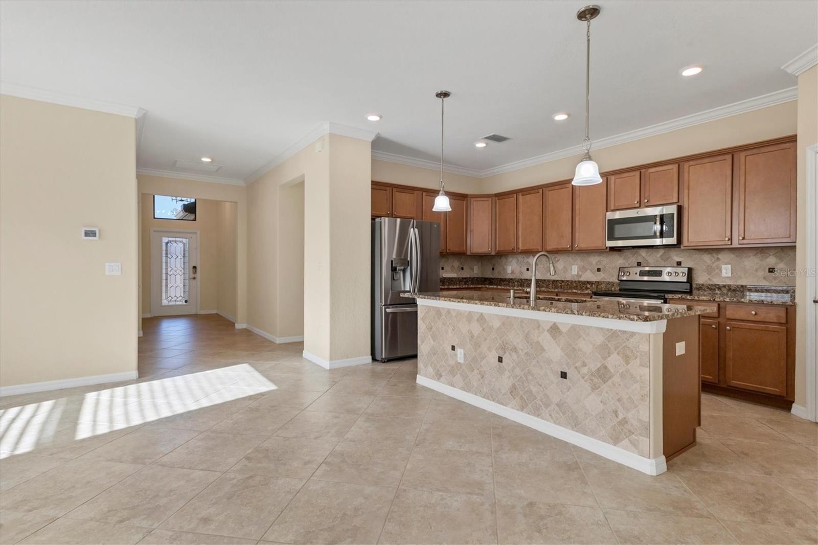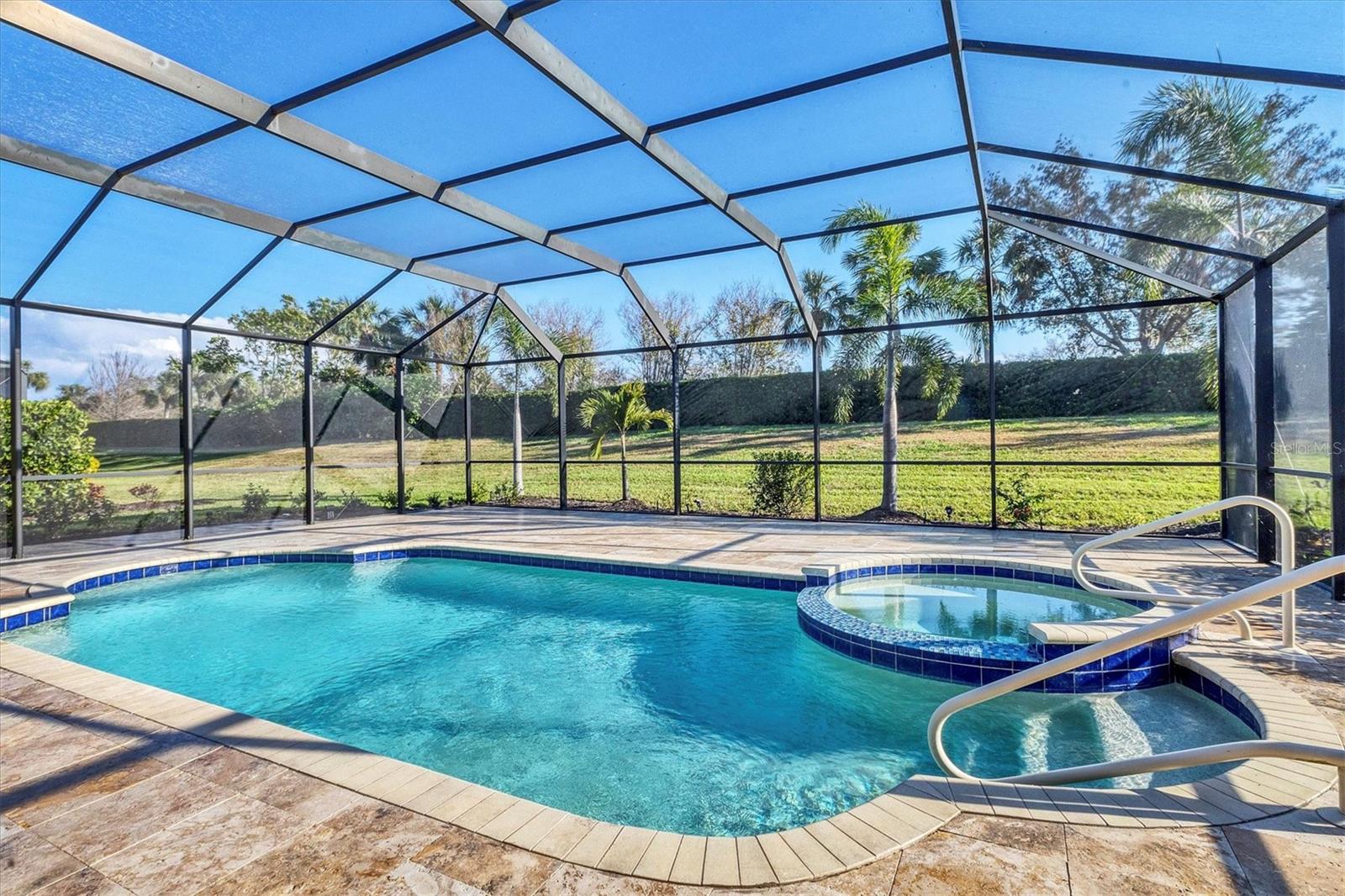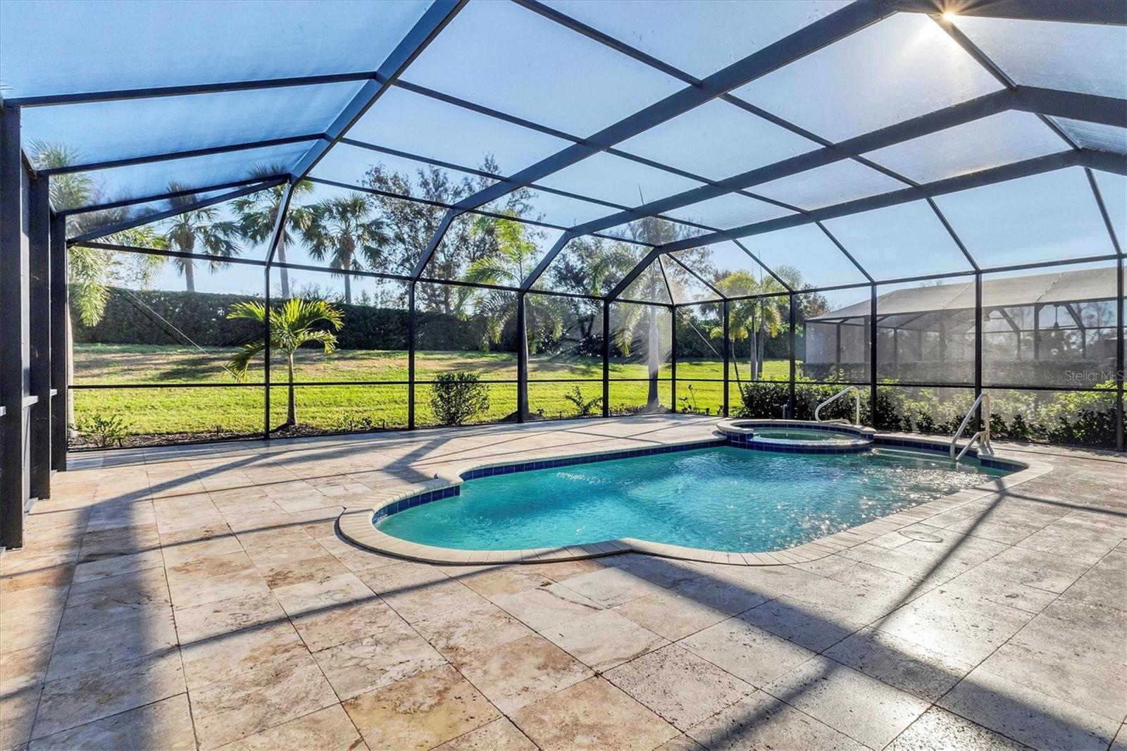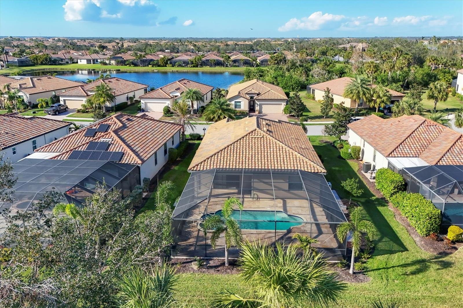 One or more photo(s) has been virtually staged. Welcome to this luxurious and meticulously maintained home in the highly sought-after gated community of The Sanctuary at River Strand Golf & Country Club. Located in one of the area’s most desirable neighborhoods, this spacious residence offers the popular Trevi floor plan, thoughtfully designed to provide an ideal balance of open-concept living and privacy. Featuring 4 generously-sized bedrooms and 3 full baths, this home is perfect for both family living and entertaining. The split-bedroom layout enhances privacy and functionality, with the 4th bedroom offering its own private ensuite, making it an excellent choice for guests, extended family, or a dedicated home office. The master suite serves as a true retreat, showcasing two walk-in closets and a spa-like ensuite with dual vanities, a soaking tub, and a walk-in shower, all designed for the ultimate relaxation experience. At the heart of the home lies the gourmet kitchen, fully equipped with stainless steel appliances, granite countertops, and custom solid wood cabinets. Whether you’re preparing a meal for yourself or hosting friends and family, the kitchen flows seamlessly into the family room and dining area, creating an inviting and functional space for both casual meals and formal gatherings. The home is also enhanced by upgraded finishes, including crown molding, ceiling fans, window blinds, and wall-to-wall tile flooring laid on the diagonal, giving the home a sleek, modern feel. Other thoughtful features include new screen entry, gutter system, and an energy-efficient solar power vent in the attic, providing you with long-term energy savings and peace of mind. Step outside and enjoy your very own private backyard oasis. The expansive pool deck (36' x 40') is beautifully finished with luxurious travertine tile, offering a serene space for outdoor dining, lounging, or entertaining guests. The oversized pool (2018) with spa has been upgraded with a Pebble Sheen finish, a Pentair salt system, a whisper-quiet variable-speed pump, and LED multi-color lighting with remote control, allowing you to tailor your poolside experience to your mood. Enjoy year-round swimming with both solar heating and a heat pump, ensuring perfect water temperature in every season. The spacious covered lanai (18' x 8') includes electronic hurricane screens, and provides the perfect setting to unwind with a glass of wine or enjoy the Florida sunshine. As a resident of River Strand, you'll have exclusive access to a wealth of amenities, including 8 pickleball courts, 9 Har-Tru tennis courts, resort-style pools, a well-appointed clubhouse with dining, fitness centers, and an active social calendar. With a 24-hour gated community for peace of mind, you'll enjoy the ultimate in convenience and security. Social members have the unique advantage of paying as you play on the renovated 27-hole golf course, designed by the renowned architect Andrew Green. This stunning home comes with the added benefit of a transferable Social Membership, all included in the affordable HOA fee, which also covers lawn care, yard maintenance, cable TV, internet service, and irrigation water. You can spend more time enjoying your surroundings and less time worrying about upkeep. Located just minutes from I-75, University Town Center, top-tier dining in Lakewood Ranch, and the pristine beaches! Don’t miss the opportunity to make this dream home yours!