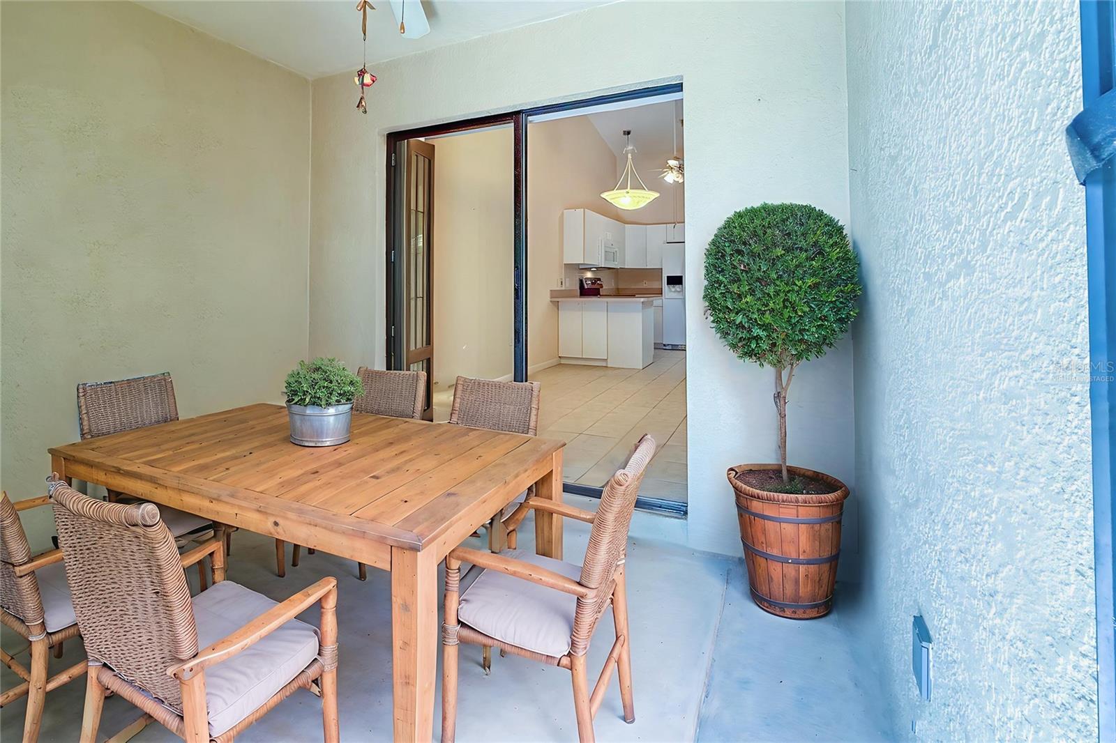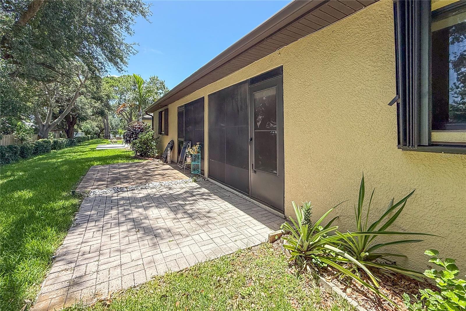 One or more photo(s) has been virtually staged. Welcome to Your Slice of Paradise in West Bradenton! Tucked away in an exclusive enclave of just 10 paired villas, this charming land condo offers a rare blend of privacy, comfort, and low-maintenance living — all in a non-age-restricted community that welcomes up to 3 pets (100 lbs each!). Enjoy a relaxed lifestyle with desirable amenities, including a solar-heated pool, shaded pavilion, dog park, and beautifully maintained private roads. Your HOA covers lawn care, irrigation, roof replacement, driveway resurfacing, exterior painting, and more — so you can focus on what matters most. Step inside this 2-bedroom, 2-bath villa featuring a split floor plan, soaring cathedral ceilings, and a light-filled layout. The primary suite includes an en-suite bath, while the attached one-car garage provides convenience with an in-unit washer and dryer. Major updates include: New Roof (2020) New HVAC (2019) Hurricane shutters on all windows and the lanai for added peace of mind. And for a touch of Florida charm — yes, that’s a pineapple growing just outside your back vinyl-enclosed porch (recently harvested and enjoyed!). This is a rare opportunity to own in a quiet, well-cared-for community close to everything Bradenton has to offer. Come see it before it’s gone!