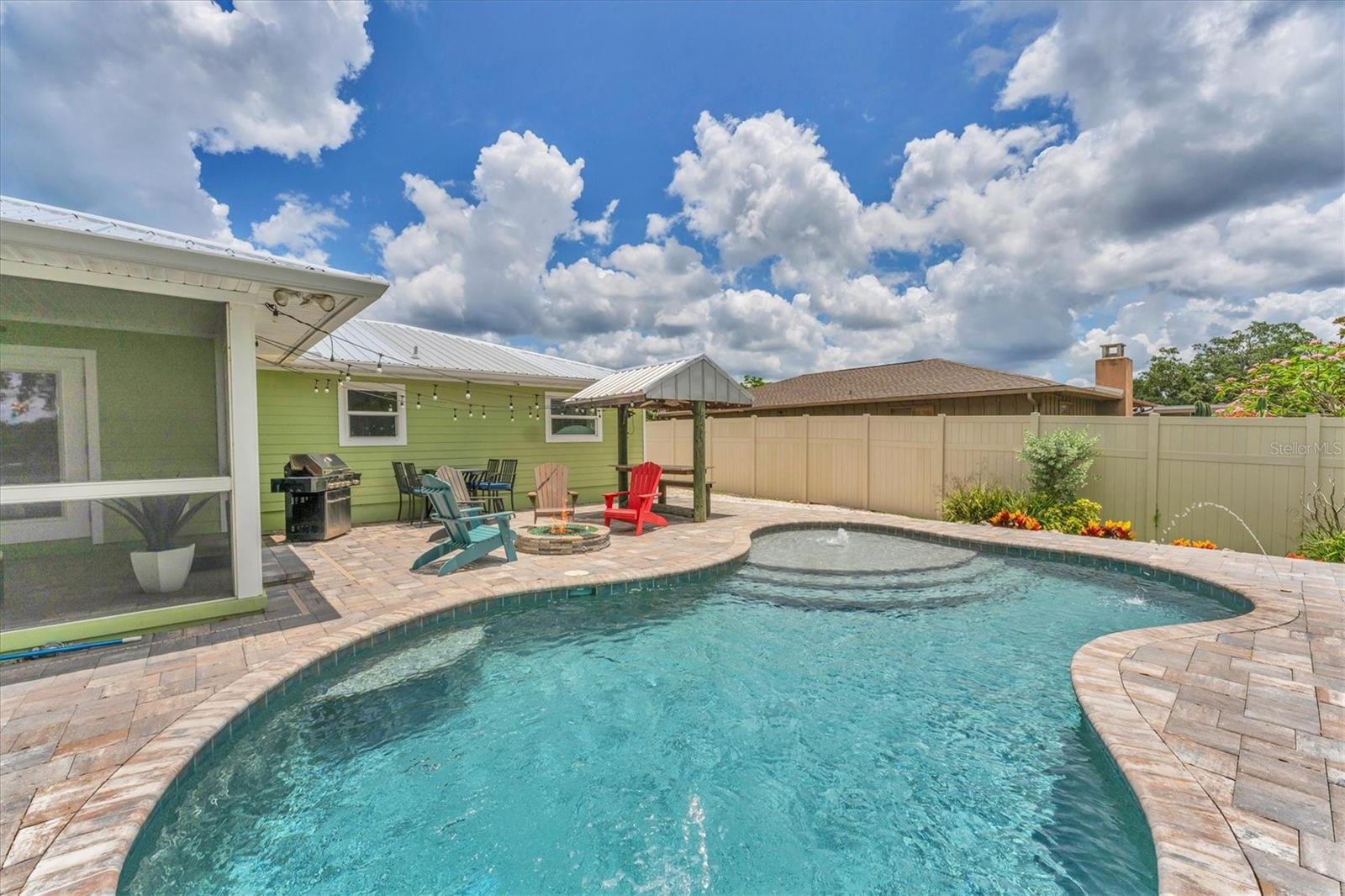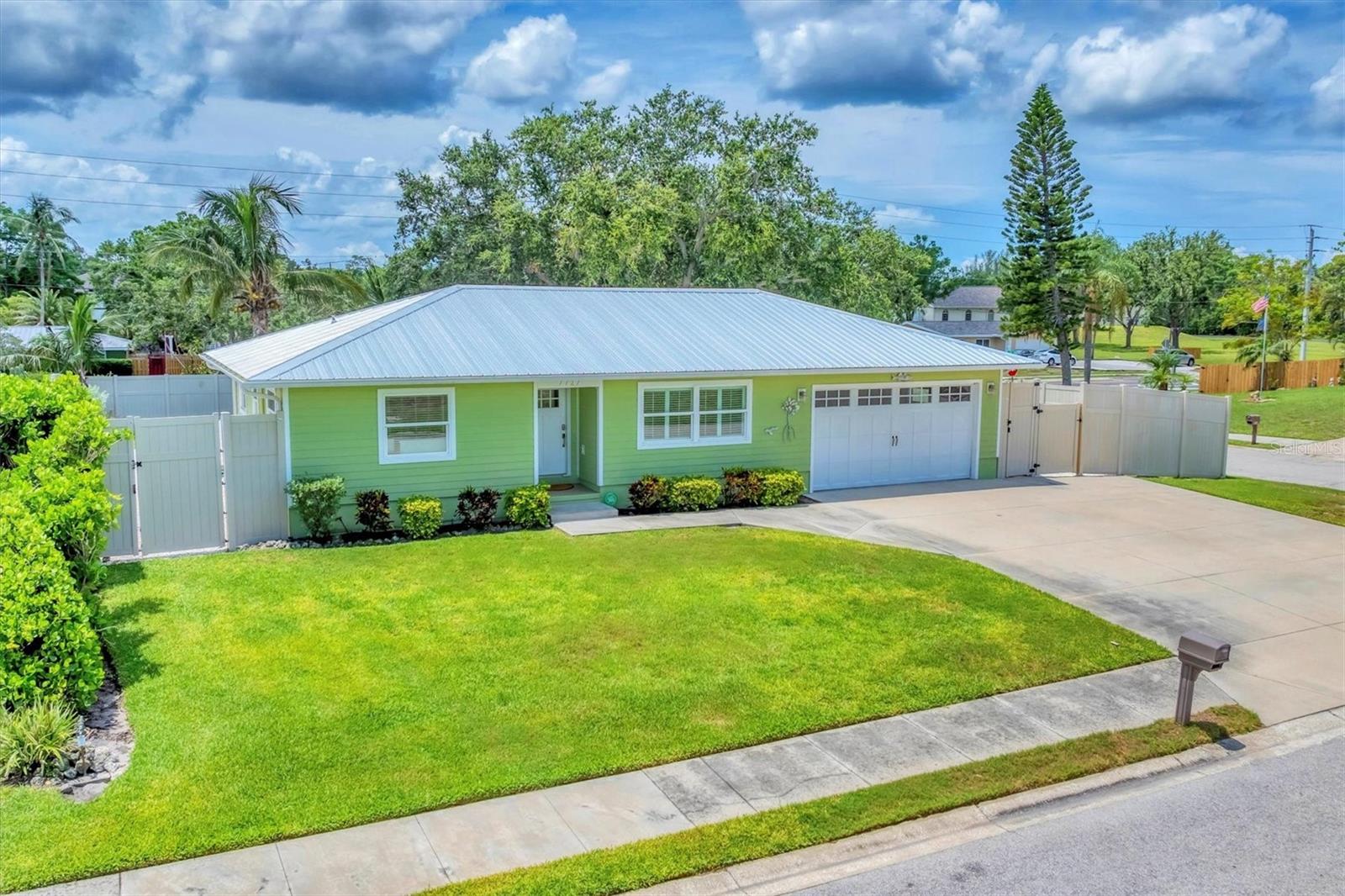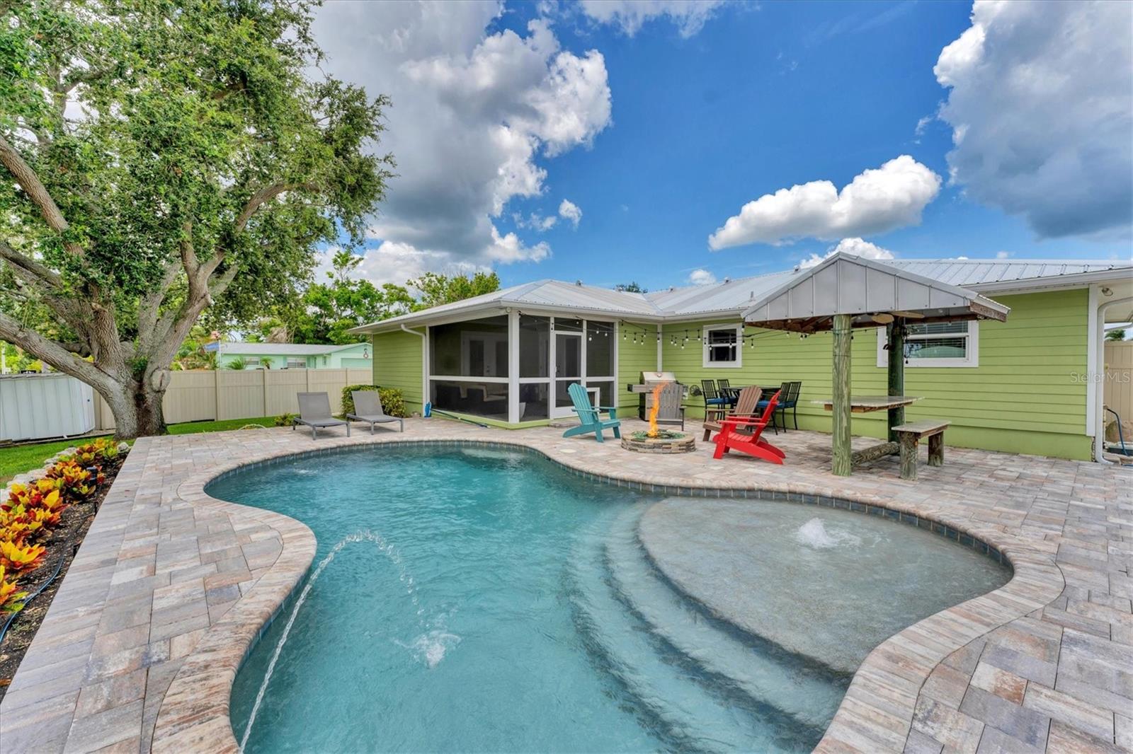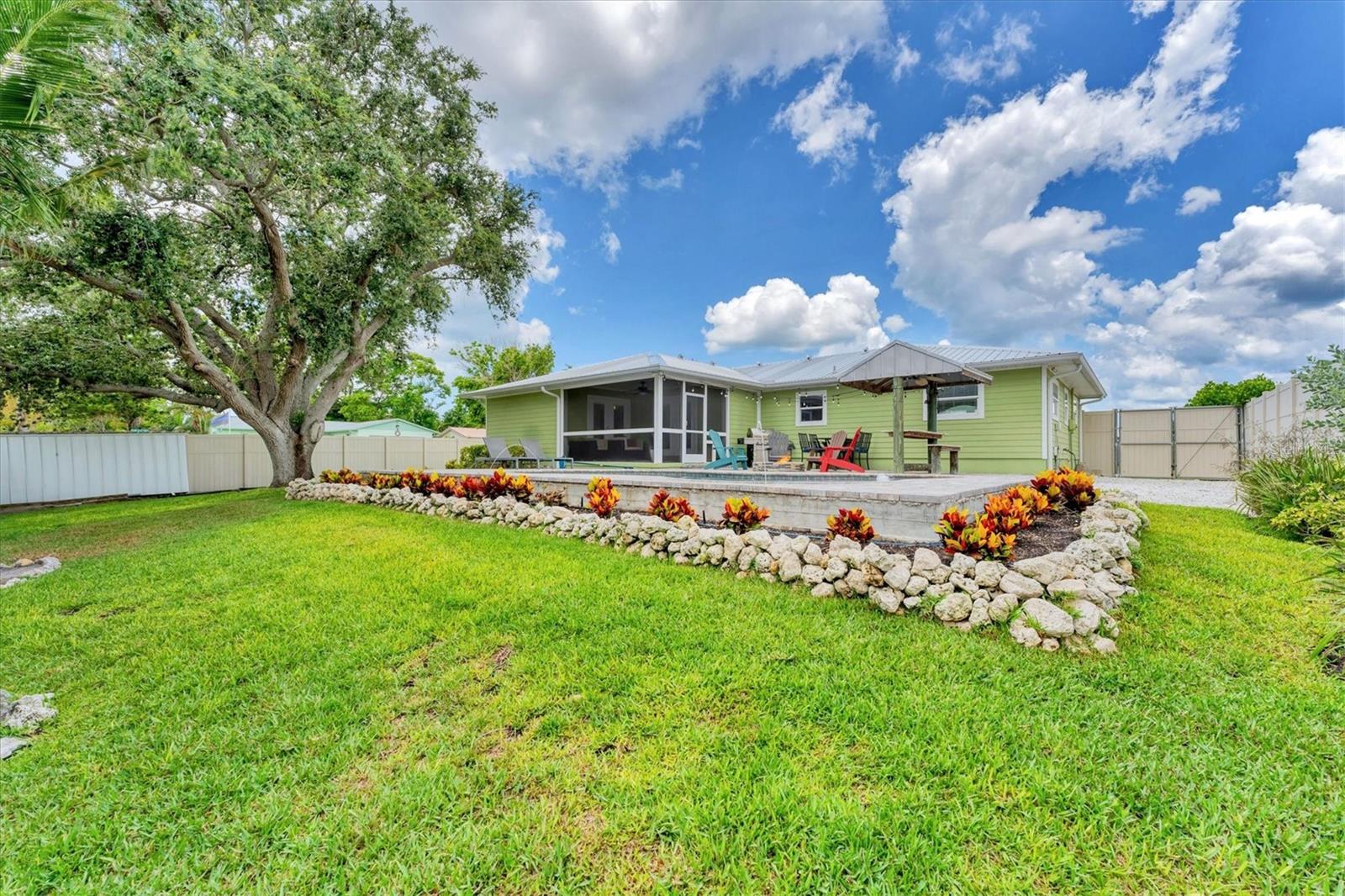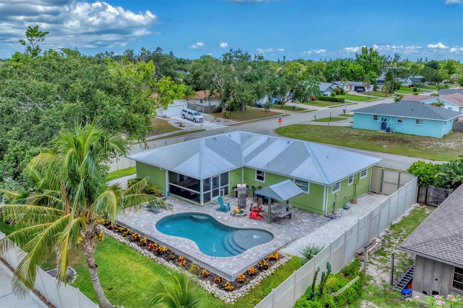 Discover Florida, living at its finest in this breathtaking home, perfectly positioned on a spacious corner lot. As you step inside, you'll be welcomed by a warm, inviting living room filled with natural light, seamlessly connecting to a generous kitchen, dining area, and cozy TV space — all enhanced by elegant French doors that open to the lanai. The kitchen is a chef's dream, offering ample cabinets, abundant counter space, and a large island that provides extra storage and a perfect spot for casual dining. With sleek stainless steel appliances and stunning quartz countertops, this space is not only functional but designed for unforgettable entertaining experiences. This thoughtfully designed split floor plan ensures privacy for everyone. On one side of the home, discover two spacious bedrooms accompanied by a full bath, while the luxurious primary suite awaits on the opposite side. The primary features a large walk-in closet and an exquisite ensuite bathroom, complete with quartz countertops and an oversized tiled walk-in shower with double showerheads. Easy access to the lanai through French doors makes this suite even more enticing. Step outside to the lanai and be captivated by the picturesque view of the sparkling pool and beautifully landscaped backyard. The backyard boasts a pool with stunning fountains, a built-in fire pit for cozy nights, and a covered dining area with quartz countertops — a perfect spot to unwind and entertain. There is an oversized shed and other small storage units. There is also ample space to park your RV or boat on either side of the house. Located close to the scenic Robinson's Preserve and DeSoto National Memorial. This home could be sold turn key, perfect opportunity for an investor or second home. Newer metal roof (2021). Newer A/C (2021). New electrical (2021). Is this your perfect match? Book your showing today!