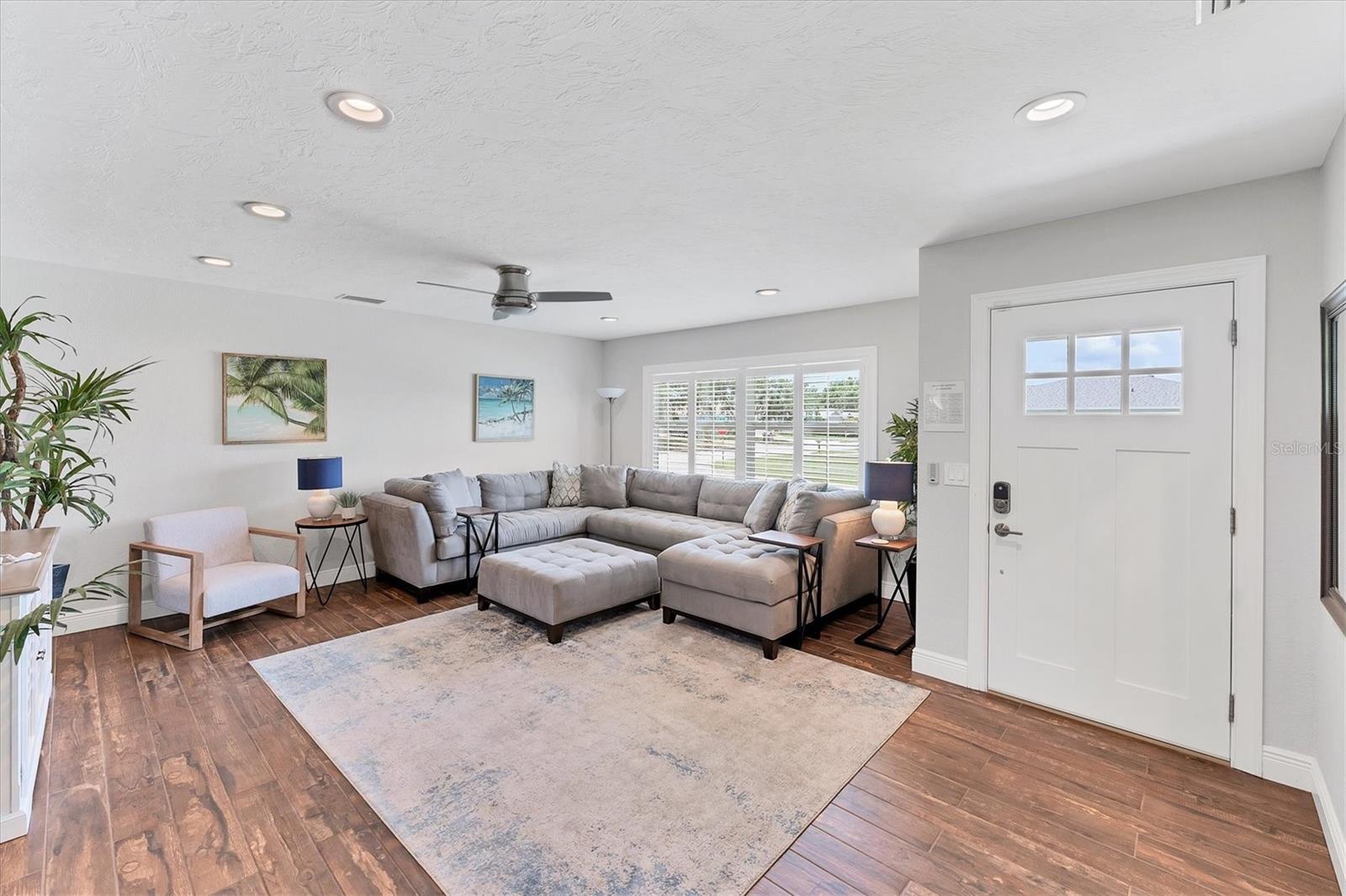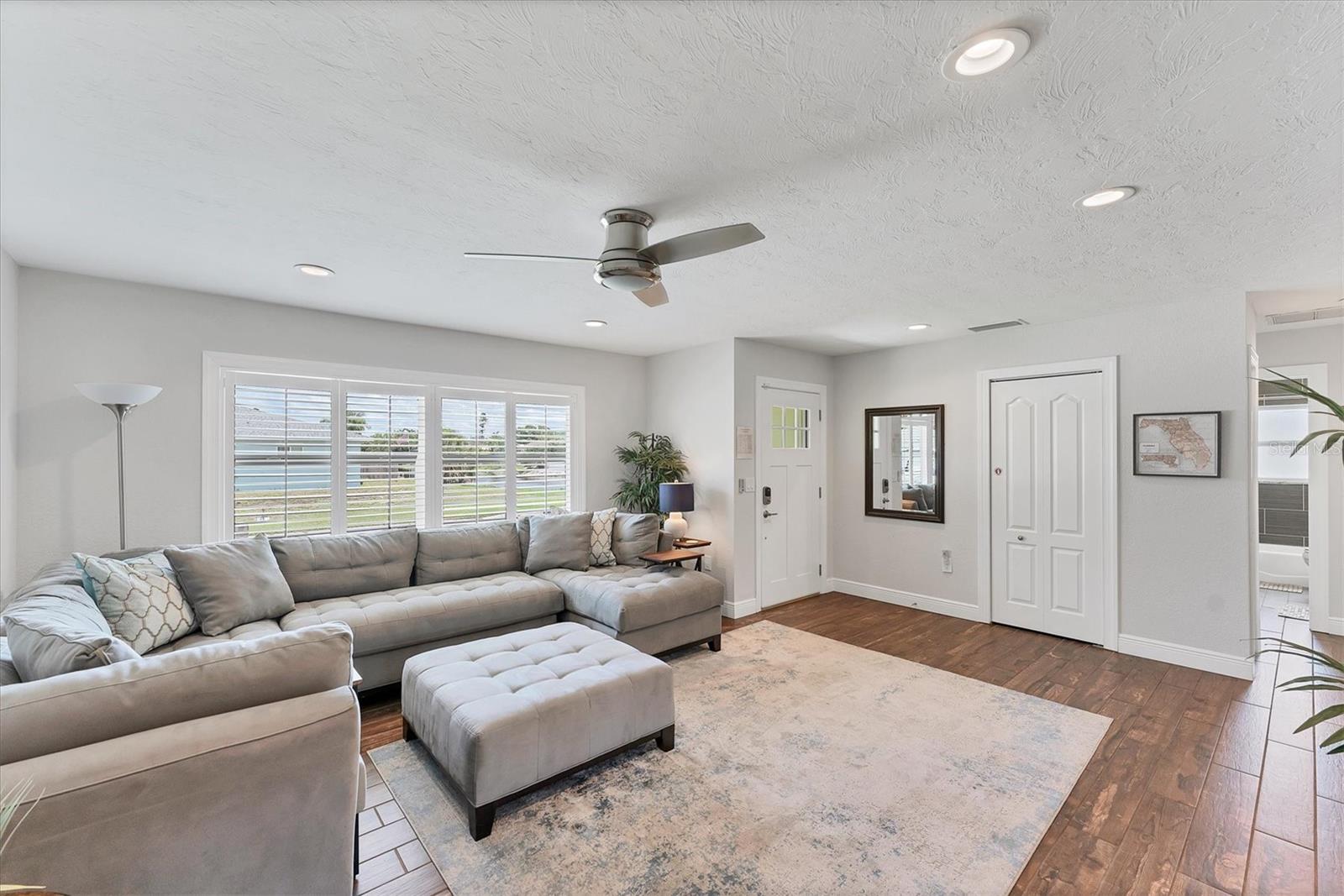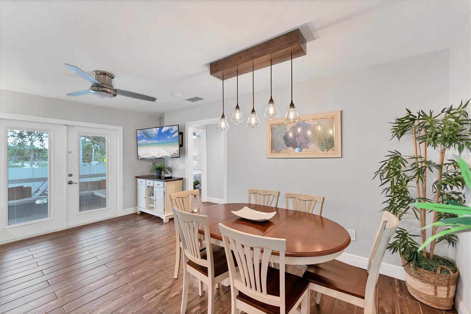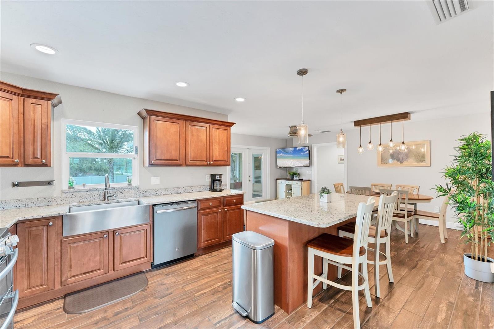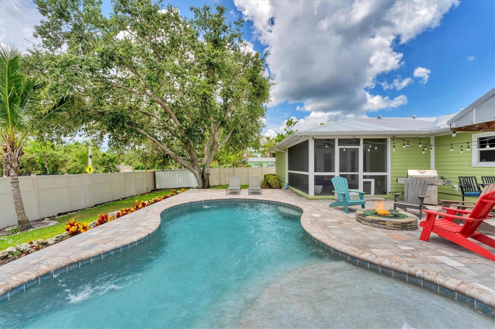 Discover Florida, living at its finest in this breathtaking home, perfectly positioned on a spacious corner lot. As you step inside, you'll be welcomed by a warm, inviting living room filled with natural light, seamlessly connecting to a generous kitchen, dining area, and cozy TV space — all enhanced by elegant French doors that open to the lanai. The kitchen is a chef's dream, offering ample cabinets, abundant counter space, and a large island that provides extra storage and a perfect spot for casual dining. With sleek stainless steel appliances and stunning quartz countertops, this space is not only functional but designed for unforgettable entertaining experiences. This thoughtfully designed split floor plan ensures privacy for everyone. On one side of the home, discover two spacious bedrooms accompanied by a full bath, while the luxurious primary suite awaits on the opposite side. The primary features a large walk-in closet and an exquisite ensuite bathroom, complete with quartz countertops and an oversized tiled walk-in shower with double showerheads. Easy access to the lanai through French doors makes this suite even more enticing. Step outside to the lanai and be captivated by the picturesque view of the sparkling pool and beautifully landscaped backyard. The backyard boasts a pool with stunning fountains, a built-in fire pit for cozy nights, and a covered dining area with quartz countertops — a perfect spot to unwind and entertain. There is an oversized shed and other small storage units. There is also ample space to park your RV or boat on either side of the house. Located close to the scenic Robinson's Preserve and DeSoto National Memorial. This home could be sold turn key, perfect opportunity for an investor or second home. Newer metal roof (2021). Newer A/C (2021). New electrical (2021). Is this your perfect match? Book your showing today!
