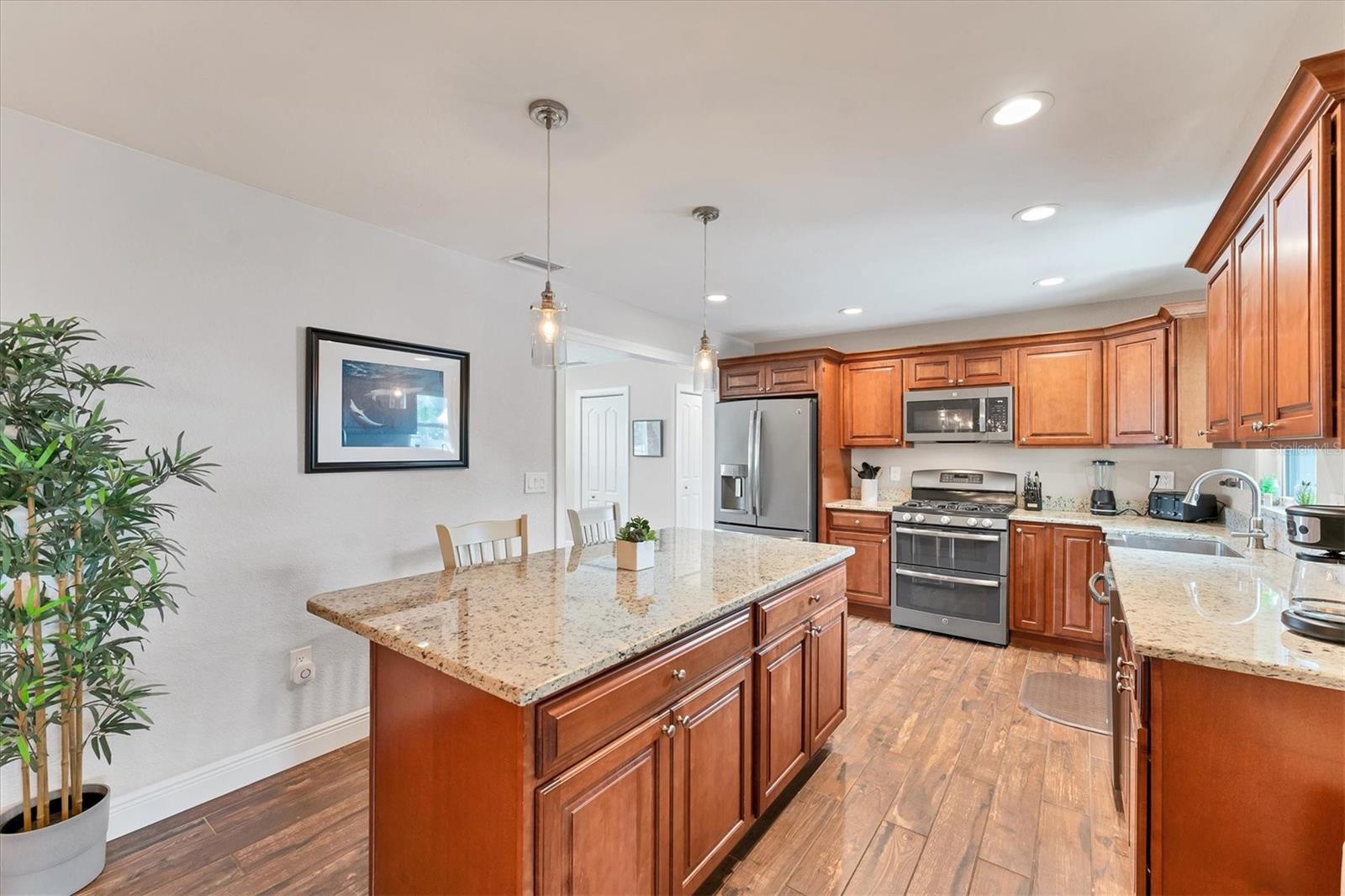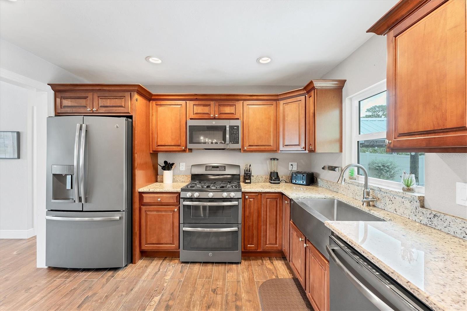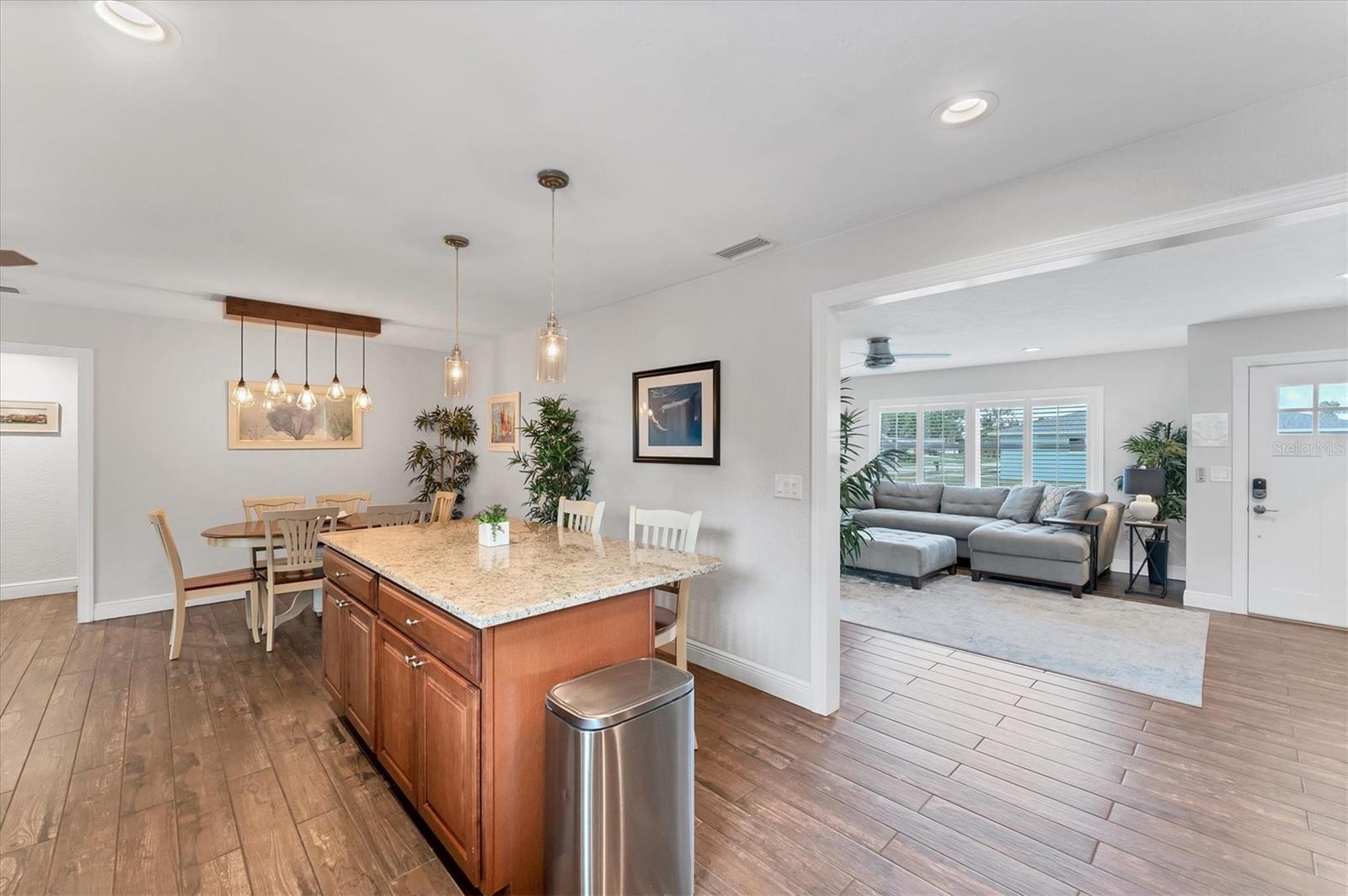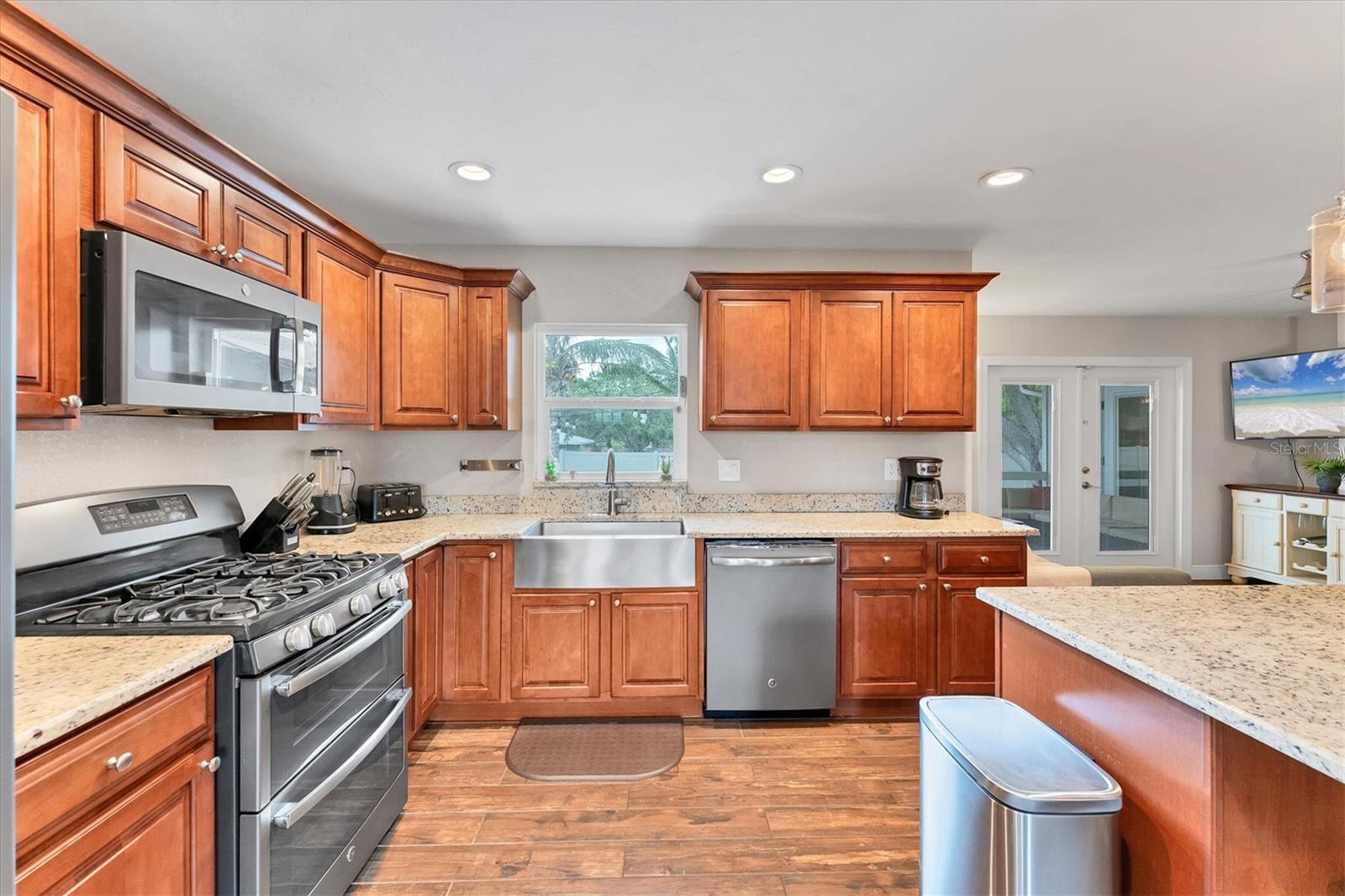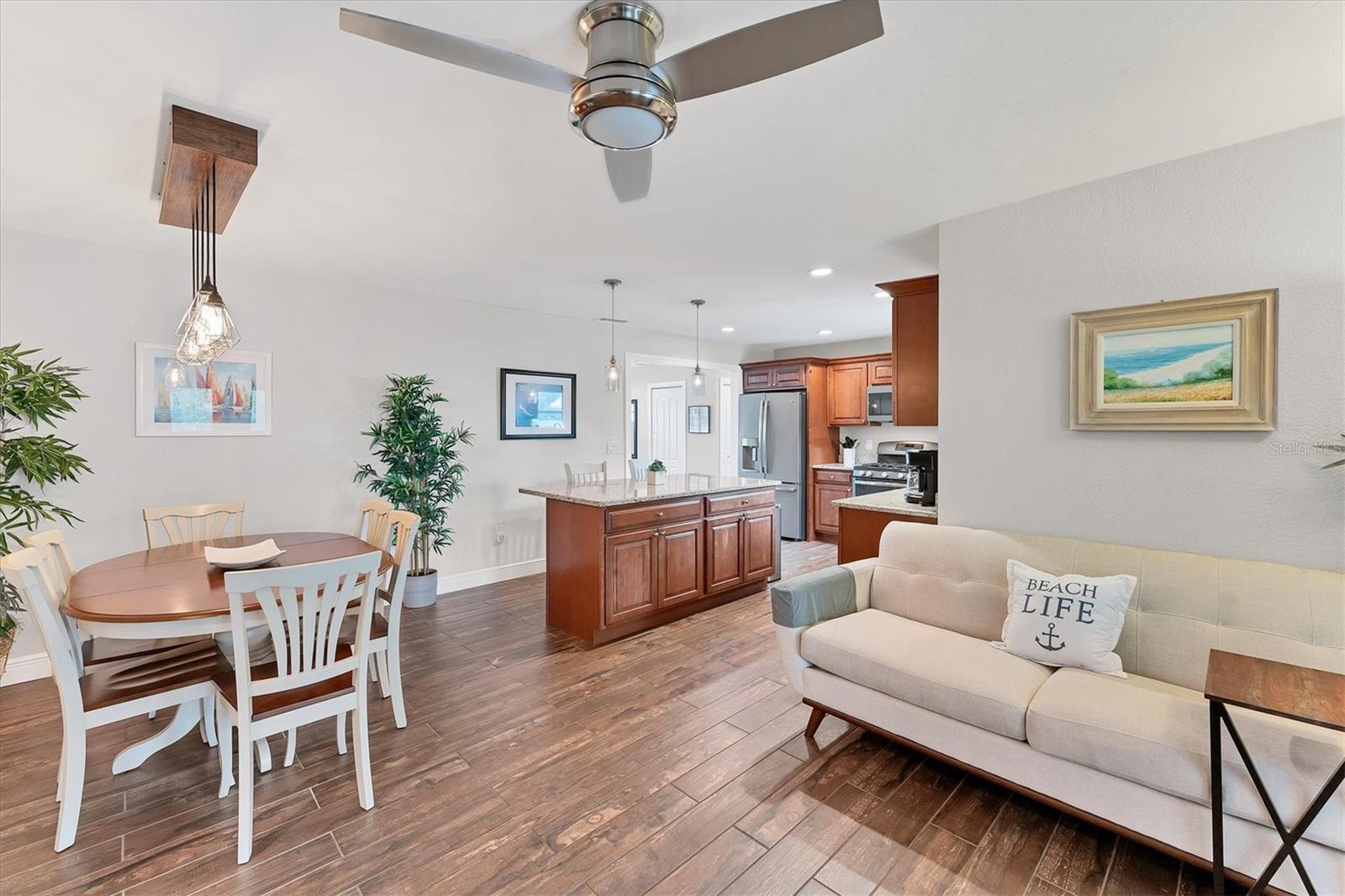 Discover Florida, living at its finest in this breathtaking home, perfectly positioned on a spacious corner lot. As you step inside, you'll be welcomed by a warm, inviting living room filled with natural light, seamlessly connecting to a generous kitchen, dining area, and cozy TV space — all enhanced by elegant French doors that open to the lanai. The kitchen is a chef's dream, offering ample cabinets, abundant counter space, and a large island that provides extra storage and a perfect spot for casual dining. With sleek stainless steel appliances and stunning quartz countertops, this space is not only functional but designed for unforgettable entertaining experiences. This thoughtfully designed split floor plan ensures privacy for everyone. On one side of the home, discover two spacious bedrooms accompanied by a full bath, while the luxurious primary suite awaits on the opposite side. The primary features a large walk-in closet and an exquisite ensuite bathroom, complete with quartz countertops and an oversized tiled walk-in shower with double showerheads. Easy access to the lanai through French doors makes this suite even more enticing. Step outside to the lanai and be captivated by the picturesque view of the sparkling pool and beautifully landscaped backyard. The backyard boasts a pool with stunning fountains, a built-in fire pit for cozy nights, and a covered dining area with quartz countertops — a perfect spot to unwind and entertain. There is an oversized shed and other small storage units. There is also ample space to park your RV or boat on either side of the house. Located close to the scenic Robinson's Preserve and DeSoto National Memorial. This home could be sold turn key, perfect opportunity for an investor or second home. Newer metal roof (2021). Newer A/C (2021). New electrical (2021). Is this your perfect match? Book your showing today!