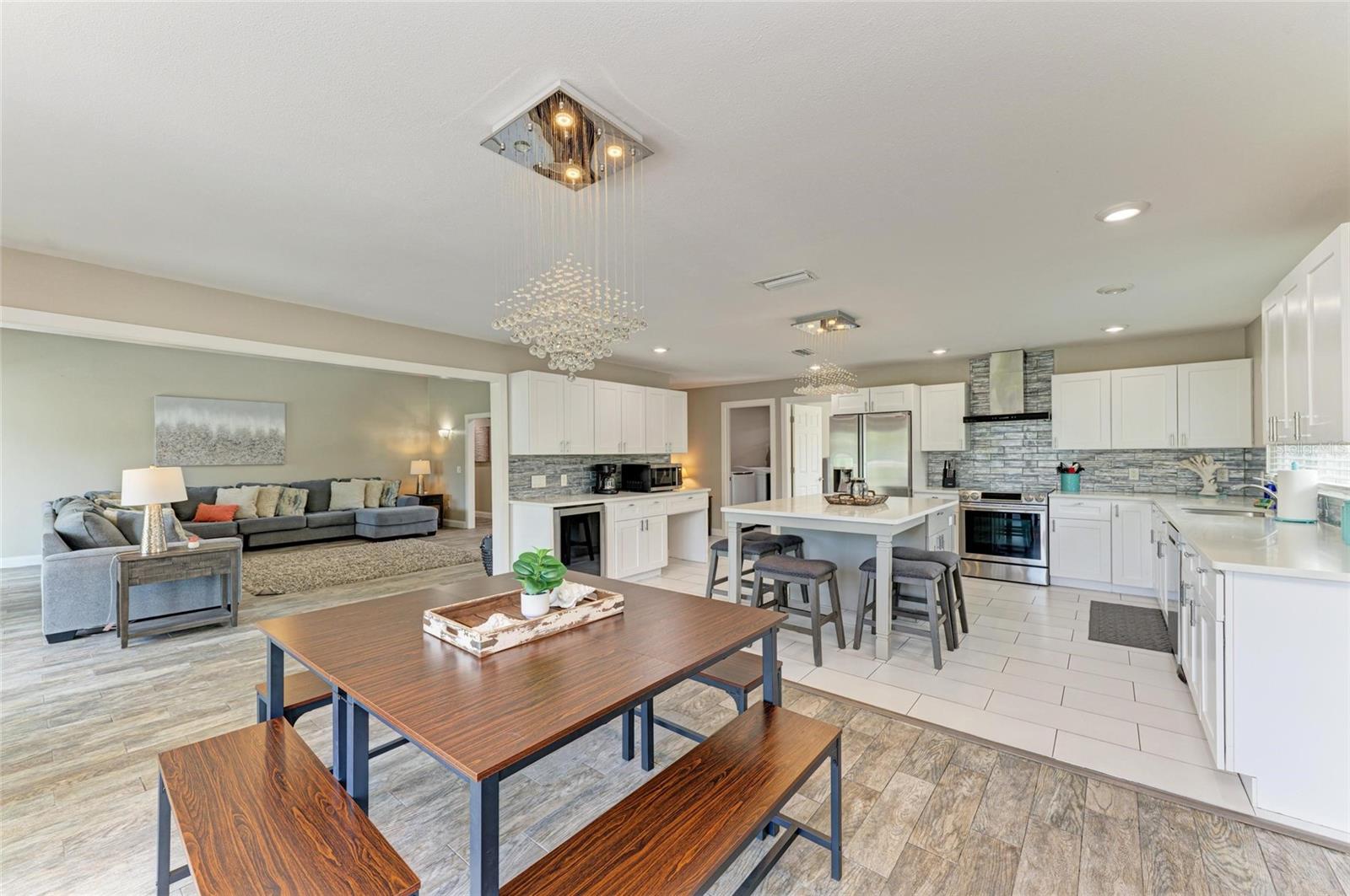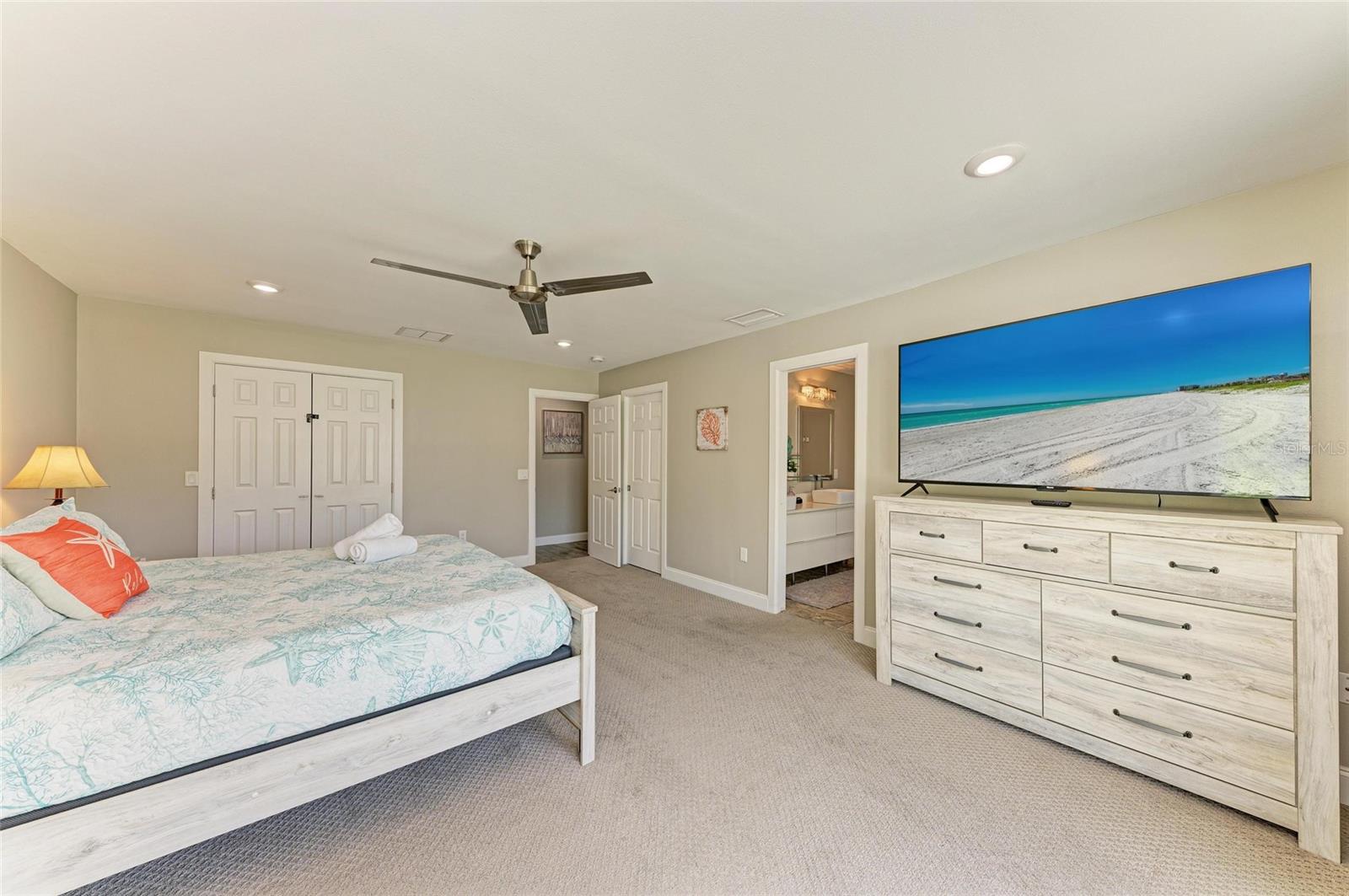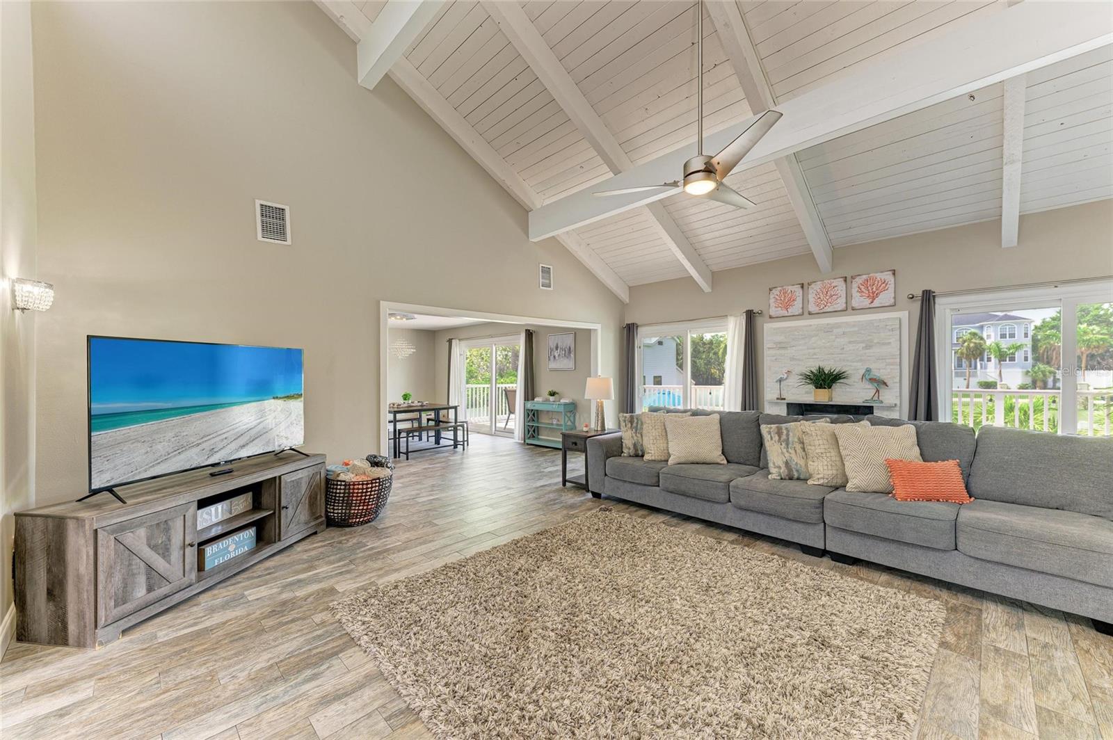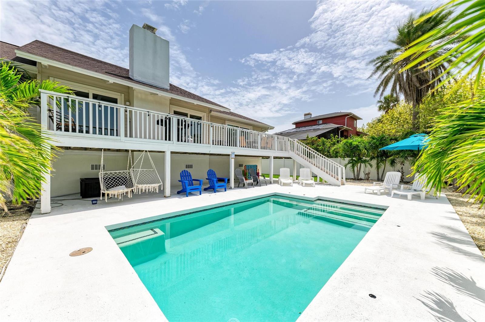 Welcome to your dream home in the highly desirable El Conquistador community—just across from Sarasota Bay on a quiet cul-de-sac street. This beautifully renovated 4-bedroom, 3.5-bathroom pool home sits on a large lot with no HOA, no CDD fees, and no rental restrictions—perfect as a primary residence or a high-income producing property (rental history available upon request). Completely renovated in 2017, this light-filled home showcases a modern, neutral palette throughout. The chef-inspired kitchen is the heart of the home, featuring quartz countertops, soft-close cabinetry, a large center island, stainless steel appliances, wine cooler, built-in desk area, and designer lighting. The spacious living room boasts vaulted ceilings, a decorative fireplace with a stone surround, and sliding glass doors that open to an expansive balcony, ideal for entertaining or relaxing with a view of your private oasis. Retreat to the master suite complete with two walk-in closets and a spa-like ensuite offering quartz counters, modern fixtures, a soaking tub, and a walk-in shower. Enjoy peace of mind with numerous upgrades: double-pane windows and doors, new roof (2020), new AC (2022), and new pool pump (2024). The oversized backyard is completely fenced in and offers ample space to store your boat, RV, or other toys. Situated just 2 miles from IMG Academy, IMG Golf Club, beautiful Gulf beaches, and an array of shopping and dining options, this location offers convenience and lifestyle without compromise. Don’t miss your opportunity to own this exceptional home in one of Bradenton's best-kept secrets. Schedule your private showing today!