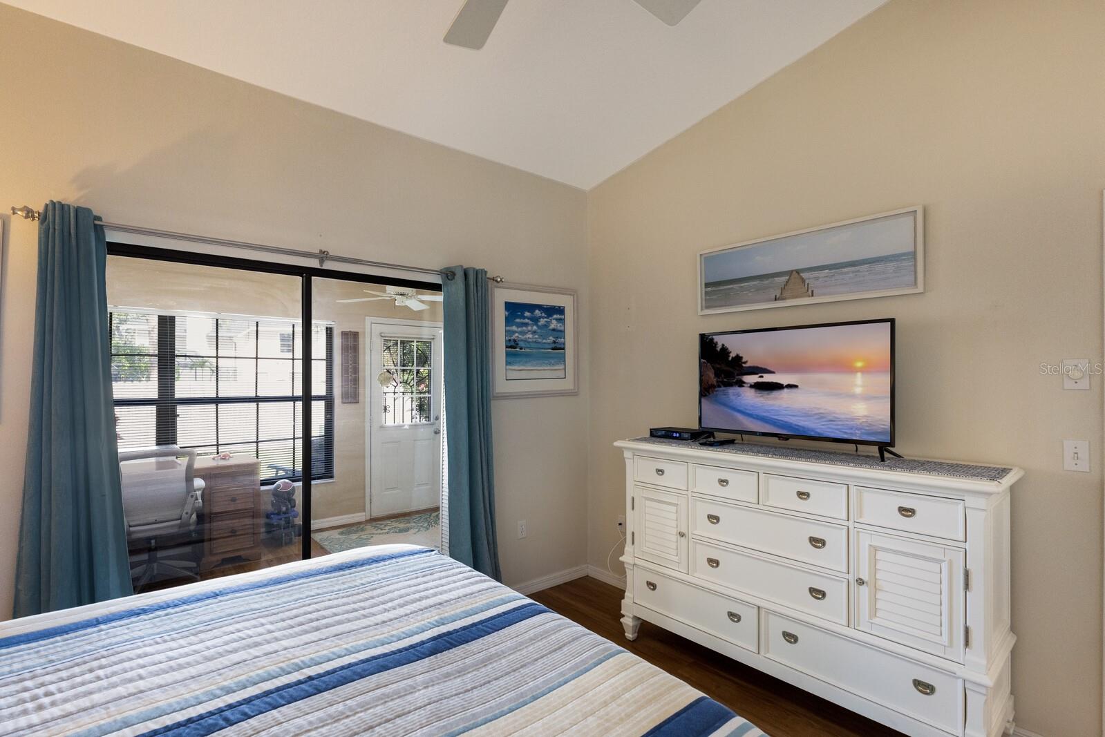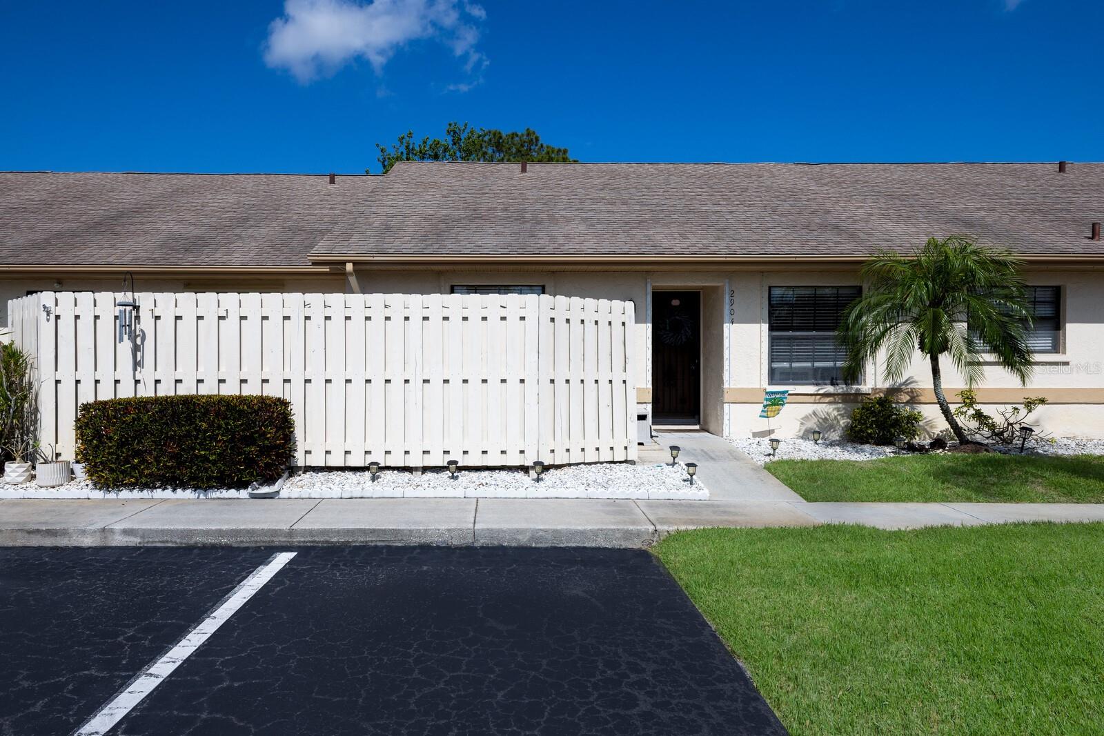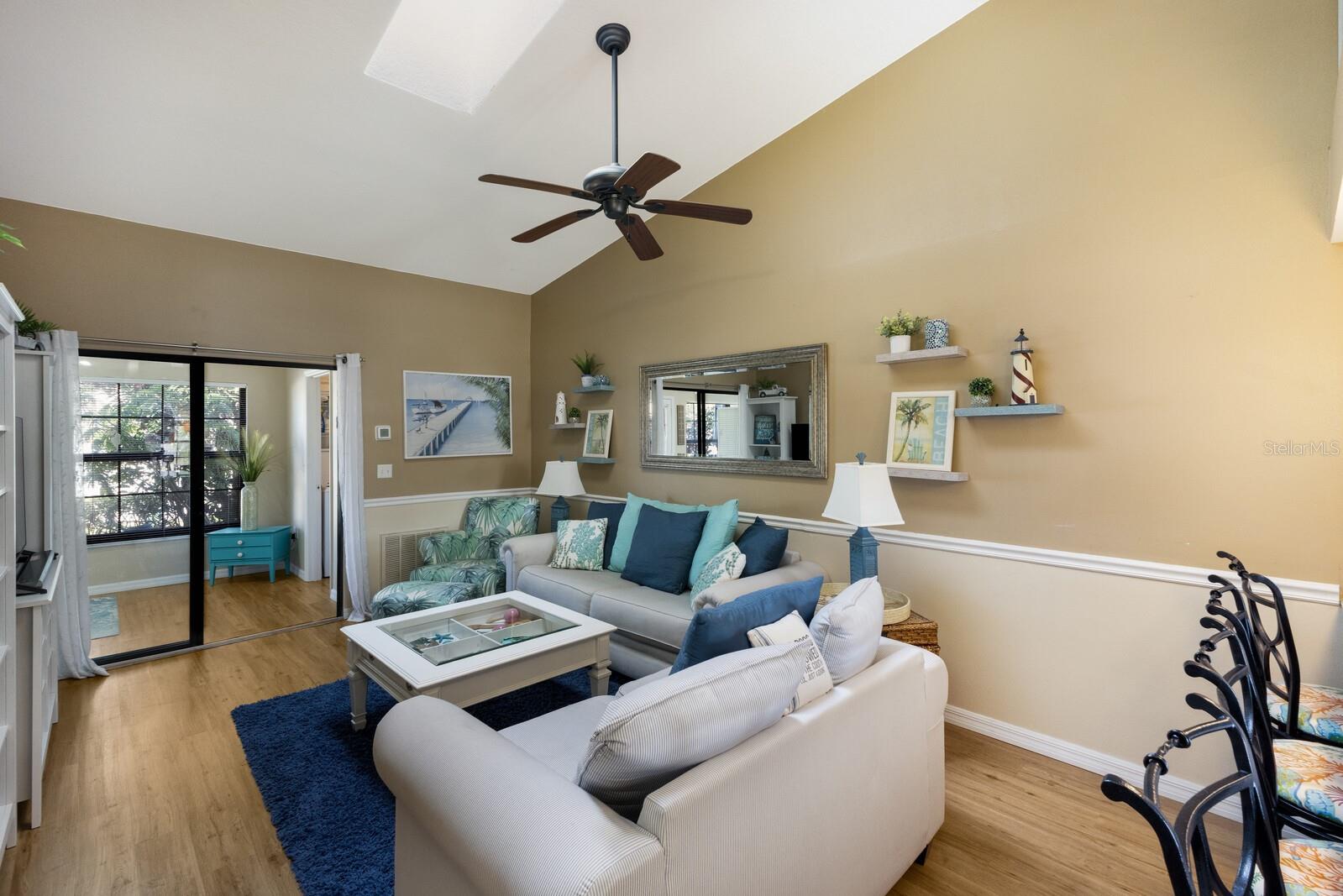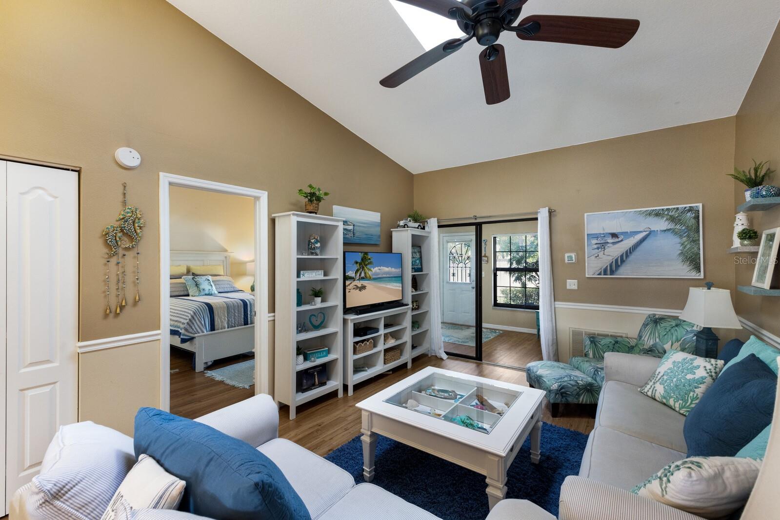 Beautifully updated 2bdrm 2full bath split floor plan condo. Wood floors thru-out. Glassed-in lanai with air for extra living space. Front courtyard and rear patio area for relaxing outside. Great room with vaulted ceiling, skylight and lots of windows that provides plenty of natural light. Eat-in kitchen with newer stainless-steel appliances. Primary suite with bath and walk-in closet. Hurricane shutters, Nice pool area. HOA that covers cable, internet, water, trash, exterior, grounds, and pool. Great location close to shopping, restaurants, GT Bray park, Blake hospital and Anna Maria Island. Assigned parking right outside your door. Pet friendly community.