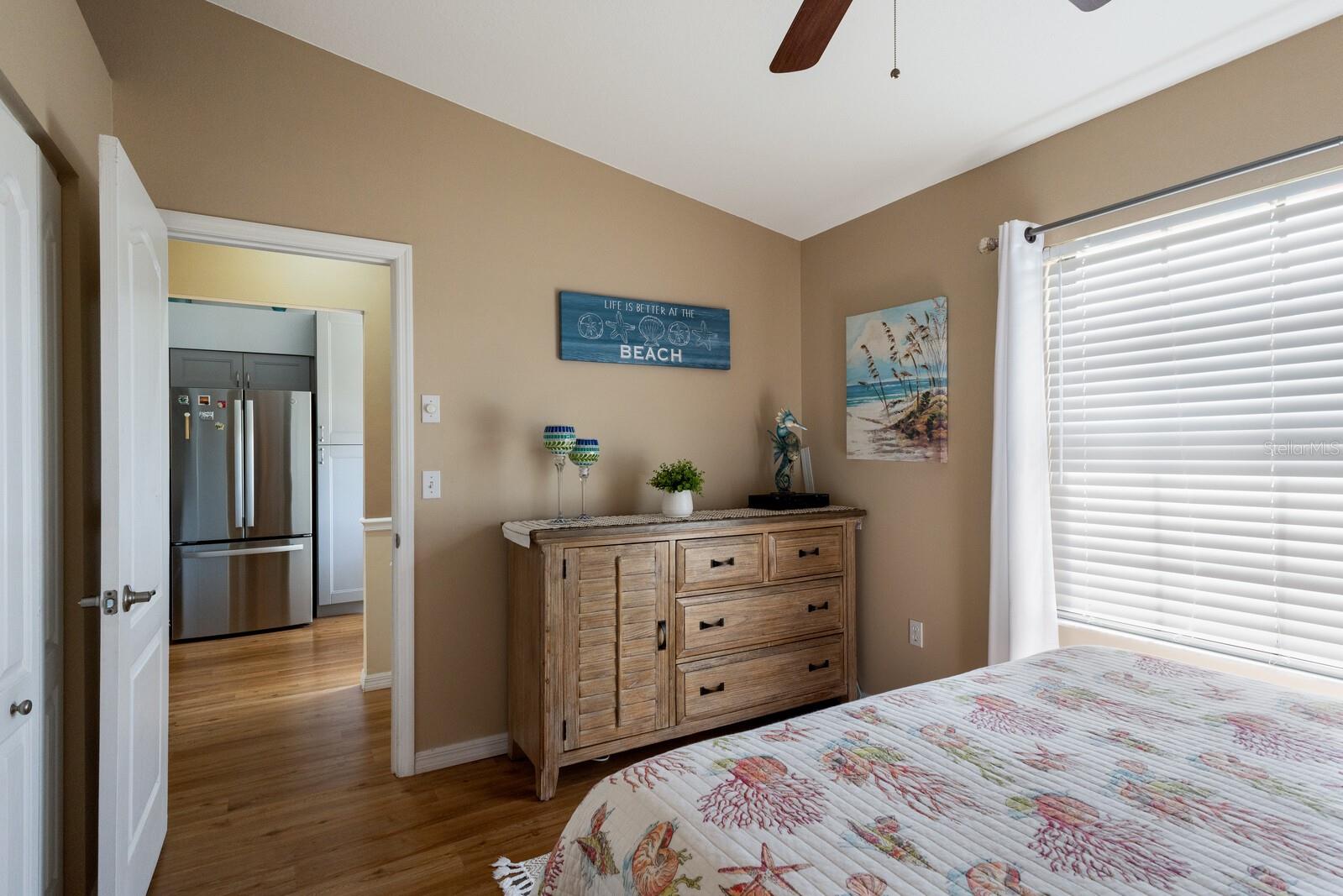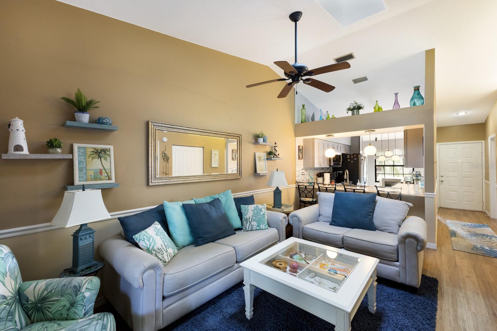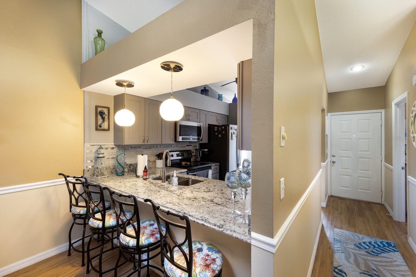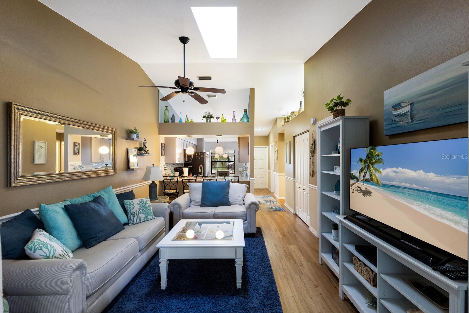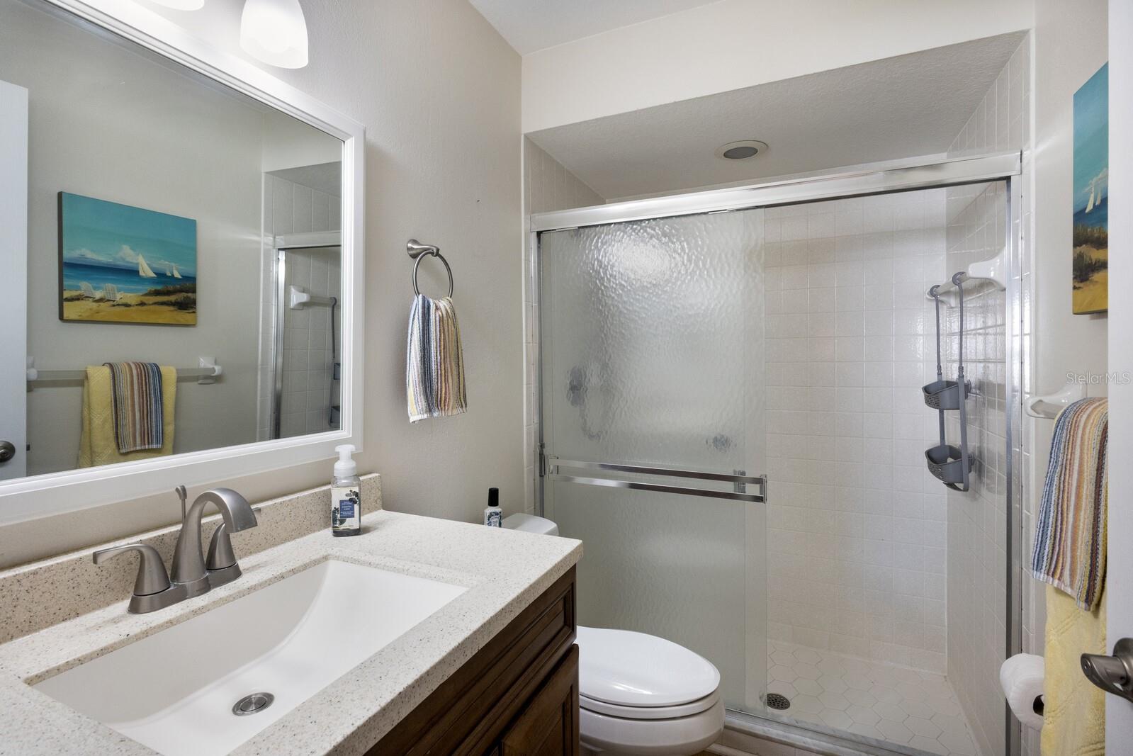 Beautifully updated 2bdrm 2full bath split floor plan condo. Wood floors thru-out. Glassed-in lanai with air for extra living space. Front courtyard and rear patio area for relaxing outside. Great room with vaulted ceiling, skylight and lots of windows that provides plenty of natural light. Eat-in kitchen with newer stainless-steel appliances. Primary suite with bath and walk-in closet. Hurricane shutters, Nice pool area. HOA that covers cable, internet, water, trash, exterior, grounds, and pool. Great location close to shopping, restaurants, GT Bray park, Blake hospital and Anna Maria Island. Assigned parking right outside your door. Pet friendly community.