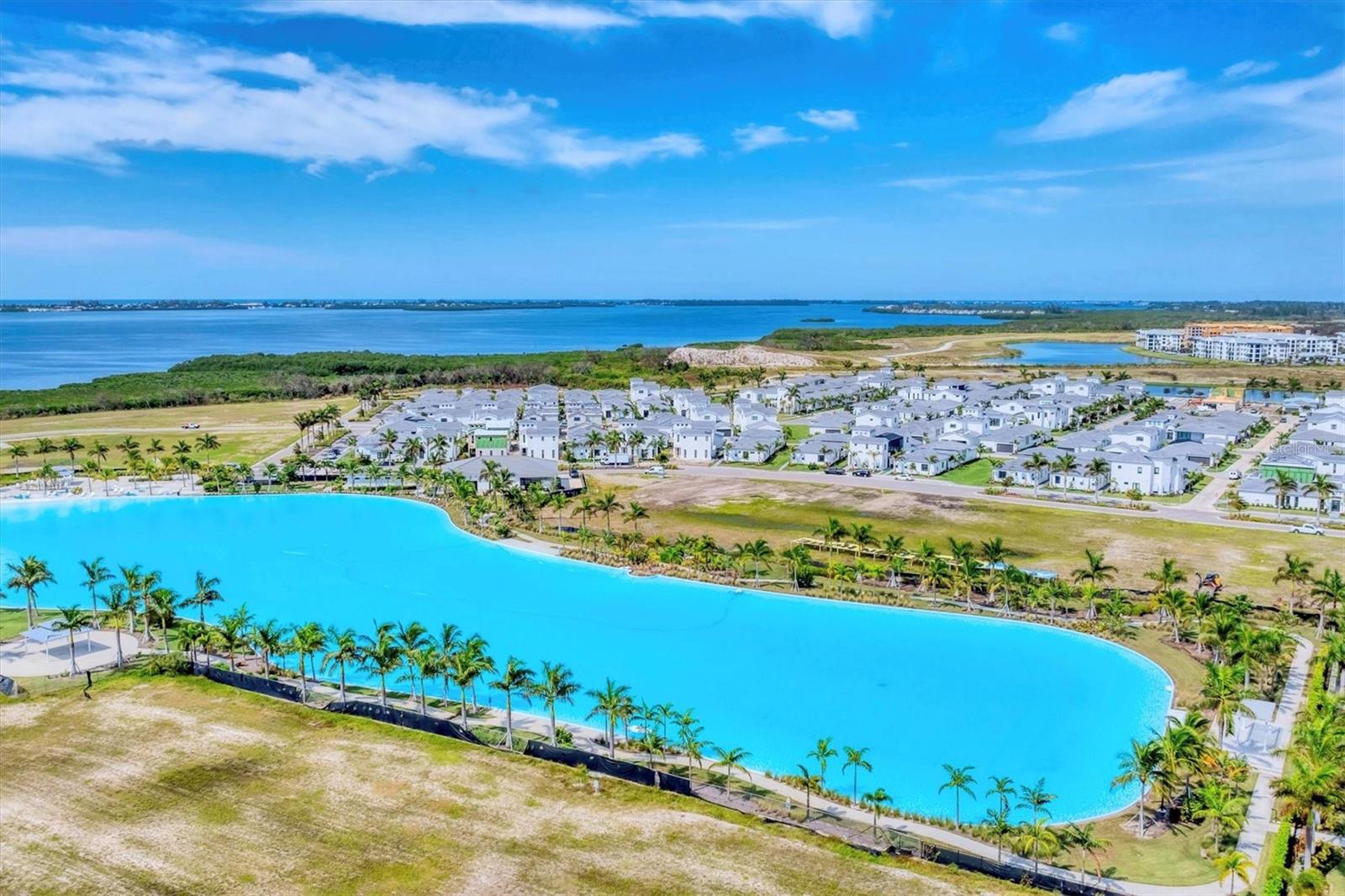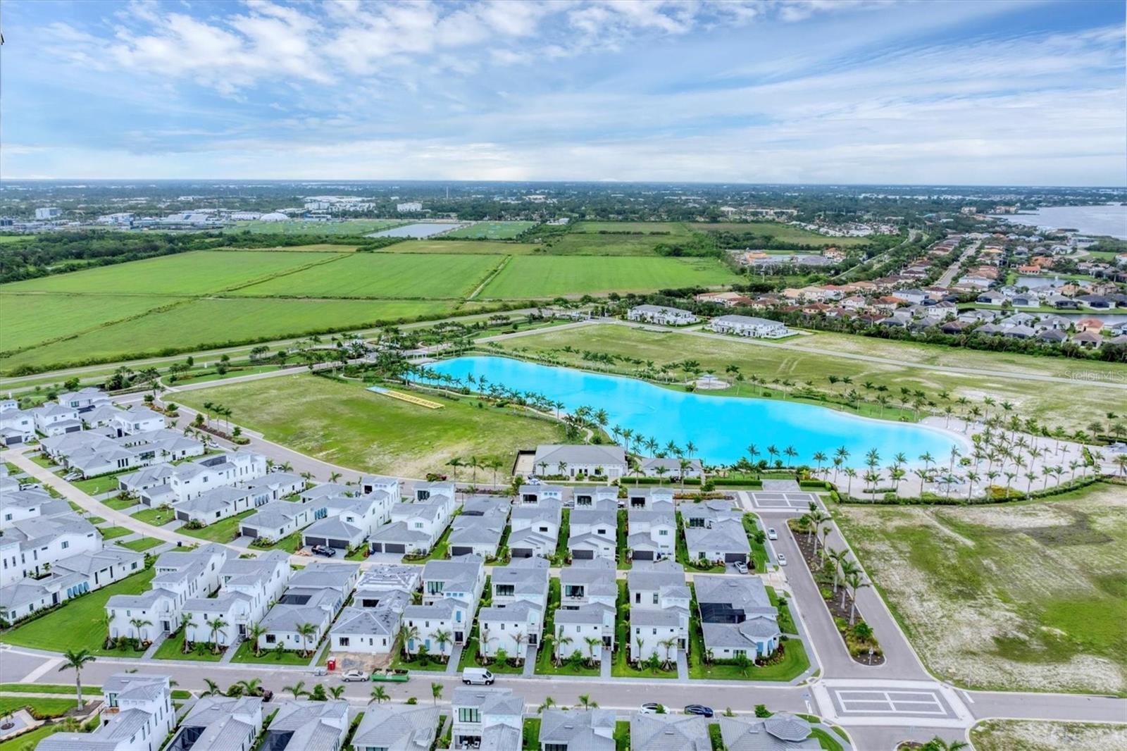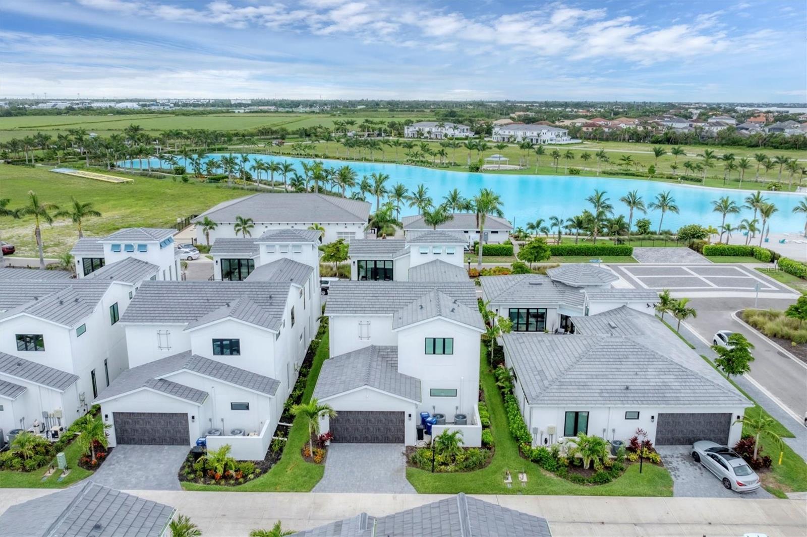 $150,000 PRICE REDUCTION from initial ask, well under comparable active listings! Stunning 2024-built FURNISHED home in premier gated community AQUA LAGOON, located near Sarasota Bay. Set on a premium lot, this two-story residence is steps away from AQUA’s signature four-acre blue lagoon and tropical shoreline—bringing serene views and a beach-like setting right to your doorstep. Featuring high ceilings, brand-new luxury vinyl flooring in some main living areas, and an elegant European-inspired interior throughout, the main level features a bright and airy open-concept layout with a formal dining room, oversized living room, flexible den/office space, and a cozy nook beneath the staircase, perfect as a sitting or lounge area. A masterpiece of design, the gourmet kitchen boasts beautiful wood cabinetry and large ceiling beams, creating a warm and welcoming ambiance. The large center island features a gas cooking and seating for four, while Caesarstone quartz surfaces and stainless steel appliances round out this dream cooking space. Upstairs, the primary suite offers a private balcony overlooking the pool and courtyard, an oversized walk-in closet, and a spa-inspired bath with dual vanities, walk-in shower, and freestanding Jacuzzi tub. Two additional guest suites, each with full bath and one with its own balcony, plus a second living room and a well-appointed laundry room complete the upper level. The tranquil outdoor oasis centers around a private courtyard with a salt-chlorinated pool with waterfall feature, and covered lounge area. Additional features include a two-car garage with epoxy flooring and luggage shelving, paver driveway, four-zone A/C, impact-rated windows and doors, gas pool heater connection, and a Sonos sound system with room-by-room volume control. Ideally located near IMG Academy, IMG Golf Club, Anna Maria Island, Cortez Village, SRQ Airport, and a short drive to shopping and dining destinations including UTC and St. Armands Circle. Enjoy the perfect fusion of luxury living and waterfront tranquility in this exceptional home where every day feels like a resort getaway.