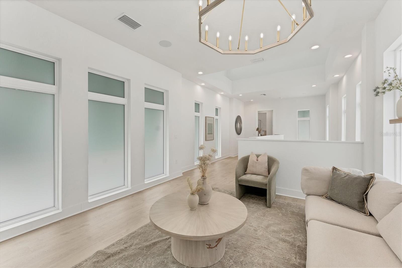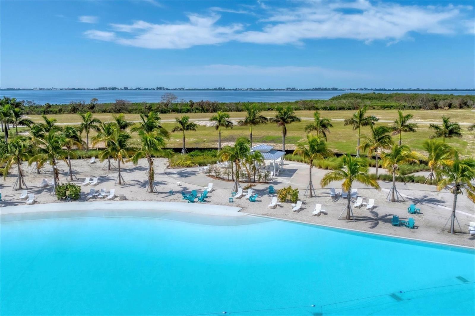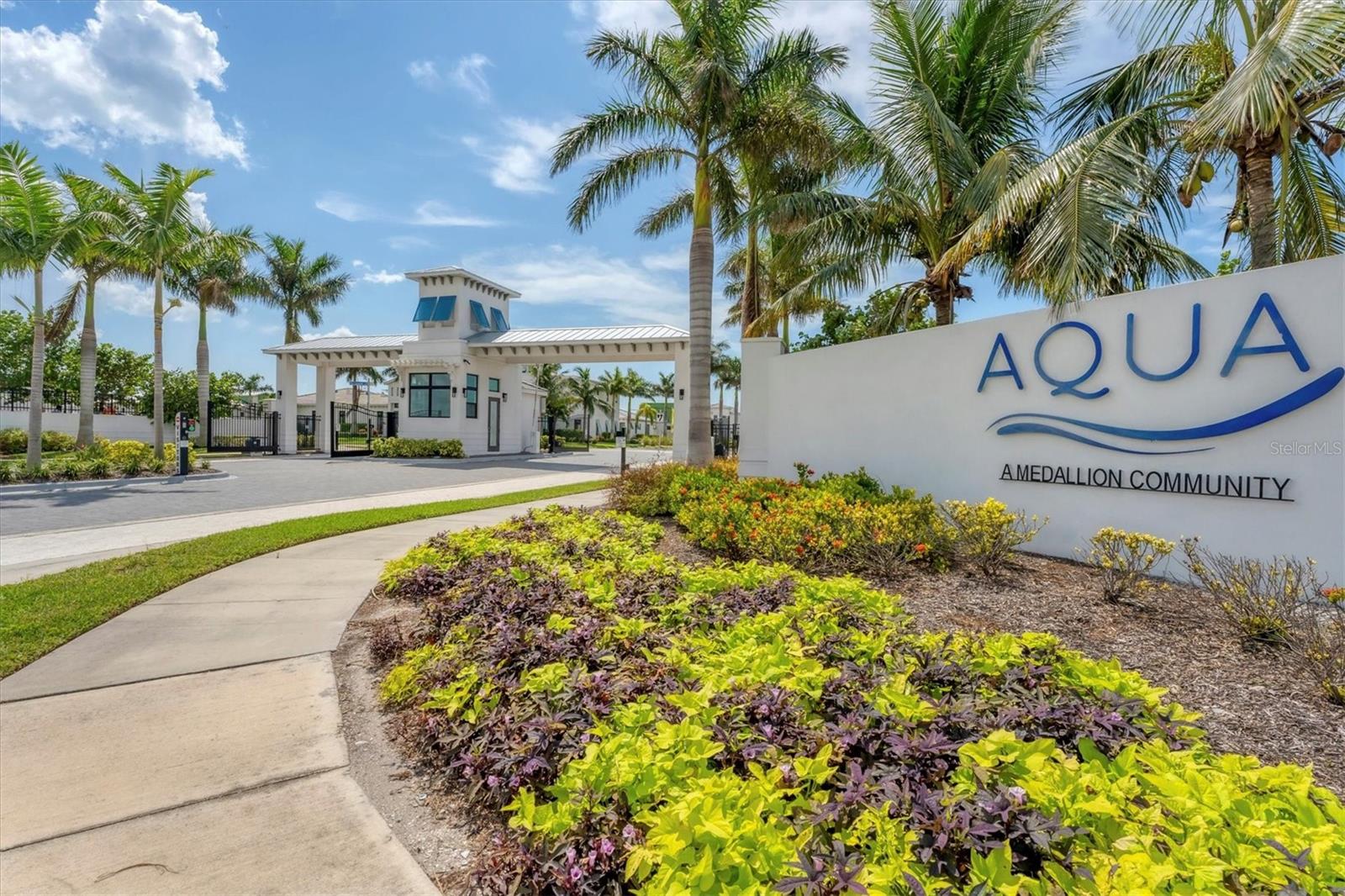 $150,000 PRICE REDUCTION from initial ask, well under comparable active listings! Stunning 2024-built FURNISHED home in premier gated community AQUA LAGOON, located near Sarasota Bay. Set on a premium lot, this two-story residence is steps away from AQUA’s signature four-acre blue lagoon and tropical shoreline—bringing serene views and a beach-like setting right to your doorstep. Featuring high ceilings, brand-new luxury vinyl flooring in some main living areas, and an elegant European-inspired interior throughout, the main level features a bright and airy open-concept layout with a formal dining room, oversized living room, flexible den/office space, and a cozy nook beneath the staircase, perfect as a sitting or lounge area. A masterpiece of design, the gourmet kitchen boasts beautiful wood cabinetry and large ceiling beams, creating a warm and welcoming ambiance. The large center island features a gas cooking and seating for four, while Caesarstone quartz surfaces and stainless steel appliances round out this dream cooking space. Upstairs, the primary suite offers a private balcony overlooking the pool and courtyard, an oversized walk-in closet, and a spa-inspired bath with dual vanities, walk-in shower, and freestanding Jacuzzi tub. Two additional guest suites, each with full bath and one with its own balcony, plus a second living room and a well-appointed laundry room complete the upper level. The tranquil outdoor oasis centers around a private courtyard with a salt-chlorinated pool with waterfall feature, and covered lounge area. Additional features include a two-car garage with epoxy flooring and luggage shelving, paver driveway, four-zone A/C, impact-rated windows and doors, gas pool heater connection, and a Sonos sound system with room-by-room volume control. Ideally located near IMG Academy, IMG Golf Club, Anna Maria Island, Cortez Village, SRQ Airport, and a short drive to shopping and dining destinations including UTC and St. Armands Circle. Enjoy the perfect fusion of luxury living and waterfront tranquility in this exceptional home where every day feels like a resort getaway.