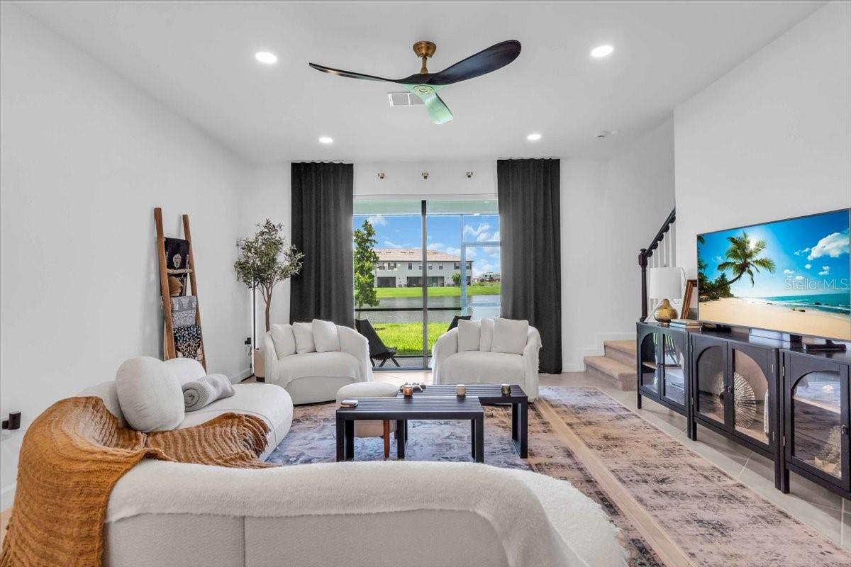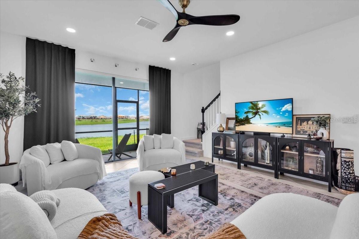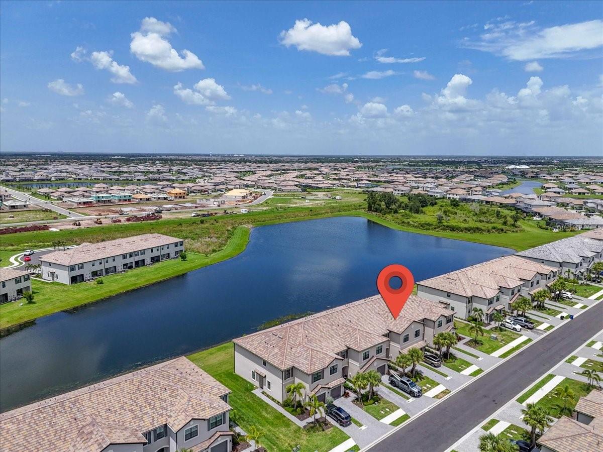 Welcome to this beautifully designed townhome Located in the highly sought-after Lorraine Lakes community. This fantastic, gated community with resort style amenities makes coming home feel like a vacation. Lakewood Ranch is recognized as the number one selling master planned community, and Lorraine Lakes helps set the standards to make that recognition possible. The HOA benefits include lawn maintenance, irrigation, cable, internet, 3 entrances, many common areas, gate guard, and 24-hour security. The amazing resort style town center features amenities including a full-service restaurant, tiki bar, arcade, gym, fitness center, saunas, pickle ball, tennis, volleyball, resort pool, lap pool, and splash pad to name a few. Lorraine Lakes flourishes with walking paths and lovely lakes including the main pond with dock, and fishing is permitted. As you step inside you’ll notice the open-concept layout that seamlessly blends the kitchen, living, and dining areas—ideal for entertaining or casual family living. The main living areas feature neutral ceramic tile flooring, the kitchen comes fully equipped with stainless steel appliances, a gas stove, granite countertops, and 36” upper cabinets providing ample storage. Enjoy casual seating at the kitchen counter and an elegant, dedicated dining area perfect for family meals or gatherings. Enjoy additional designer lighting upgrades that add a stylish touch throughout the home. Step outside to your covered and screened lanai and take in the serene water views—a perfect setting for morning coffee or evening relaxation. Upstairs, the spacious owner’s suite offers a luxurious ensuite bath featuring dual vanities, a walk-in shower, and a generous walk-in closet with custom closet organizer. Two additional bedrooms share a well-appointed full bath, making them ideal for guests or family. It is important to consider the energy efficiency of this south-facing home keeping your utility bills lower and comfort levels higher. Fantastic opportunity to own this gorgeous townhome located in the heart of Lakewood Ranch conveniently located to shopping, restaurants, A-rated schools, championship golf courses and a short drive to the famous beaches of the gulf coast.
