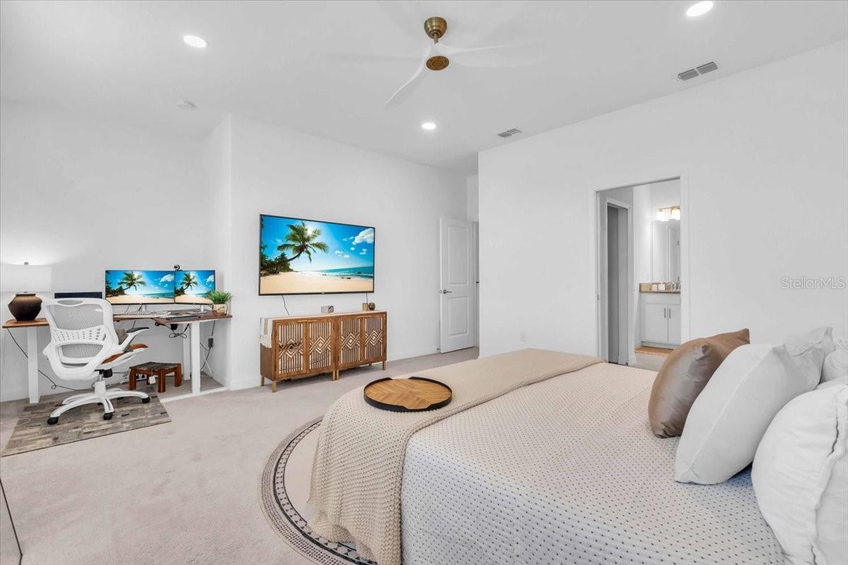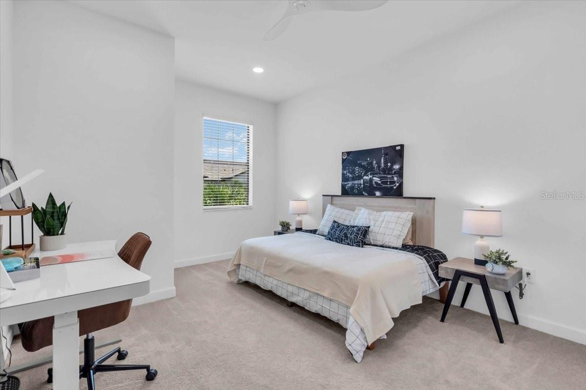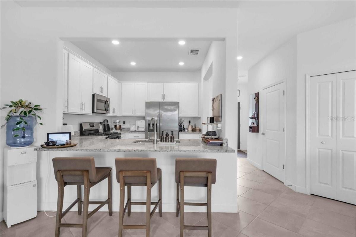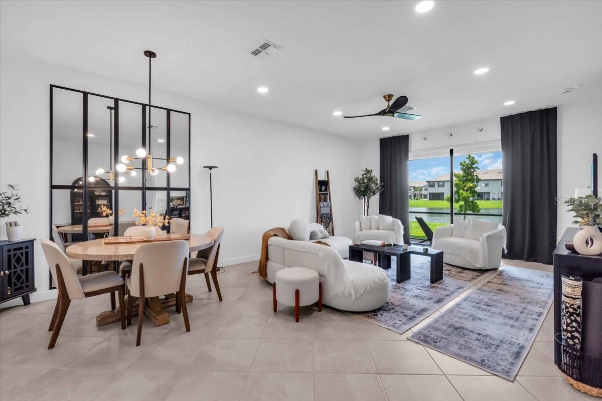 Welcome to this beautifully designed townhome Located in the highly sought-after Lorraine Lakes community. This fantastic, gated community with resort style amenities makes coming home feel like a vacation. Lakewood Ranch is recognized as the number one selling master planned community, and Lorraine Lakes helps set the standards to make that recognition possible. The HOA benefits include lawn maintenance, irrigation, cable, internet, 3 entrances, many common areas, gate guard, and 24-hour security. The amazing resort style town center features amenities including a full-service restaurant, tiki bar, arcade, gym, fitness center, saunas, pickle ball, tennis, volleyball, resort pool, lap pool, and splash pad to name a few. Lorraine Lakes flourishes with walking paths and lovely lakes including the main pond with dock, and fishing is permitted. As you step inside you’ll notice the open-concept layout that seamlessly blends the kitchen, living, and dining areas—ideal for entertaining or casual family living. The main living areas feature neutral ceramic tile flooring, the kitchen comes fully equipped with stainless steel appliances, a gas stove, granite countertops, and 36” upper cabinets providing ample storage. Enjoy casual seating at the kitchen counter and an elegant, dedicated dining area perfect for family meals or gatherings. Enjoy additional designer lighting upgrades that add a stylish touch throughout the home. Step outside to your covered and screened lanai and take in the serene water views—a perfect setting for morning coffee or evening relaxation. Upstairs, the spacious owner’s suite offers a luxurious ensuite bath featuring dual vanities, a walk-in shower, and a generous walk-in closet with custom closet organizer. Two additional bedrooms share a well-appointed full bath, making them ideal for guests or family. It is important to consider the energy efficiency of this south-facing home keeping your utility bills lower and comfort levels higher. Fantastic opportunity to own this gorgeous townhome located in the heart of Lakewood Ranch conveniently located to shopping, restaurants, A-rated schools, championship golf courses and a short drive to the famous beaches of the gulf coast.