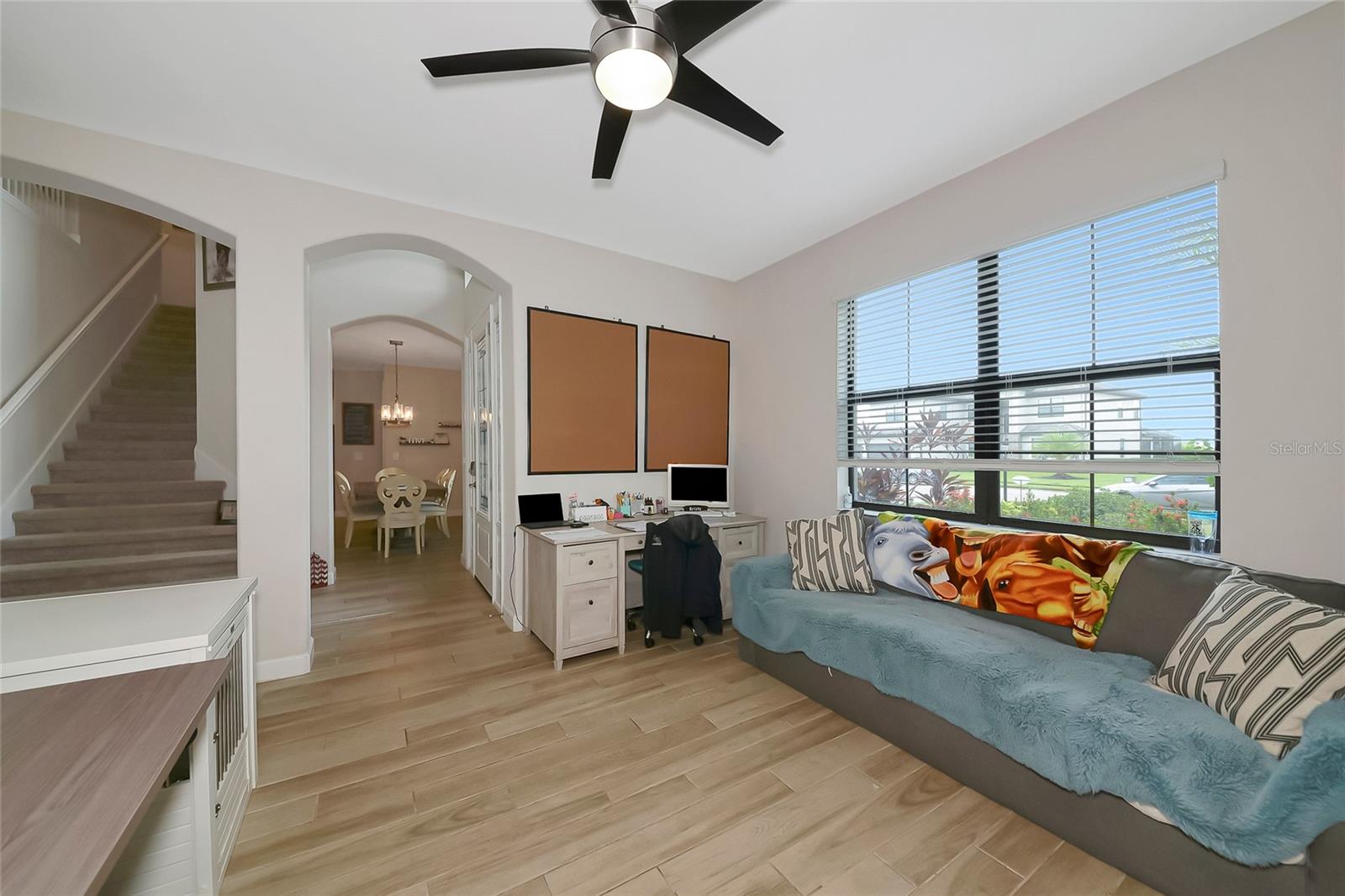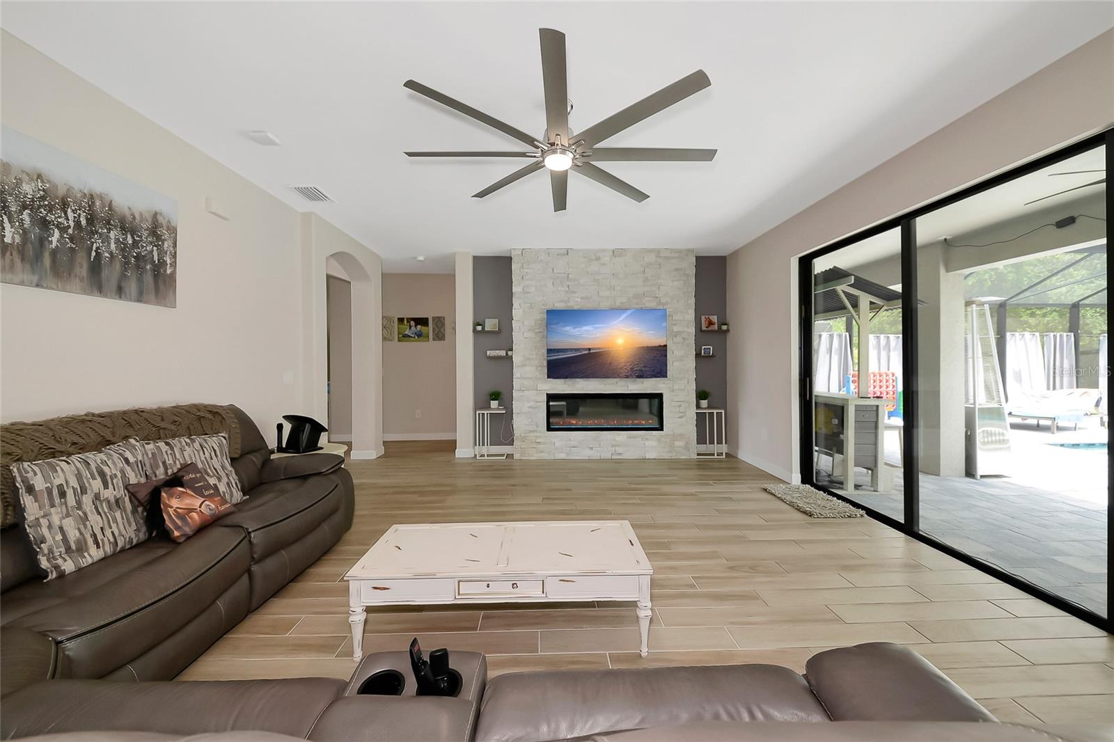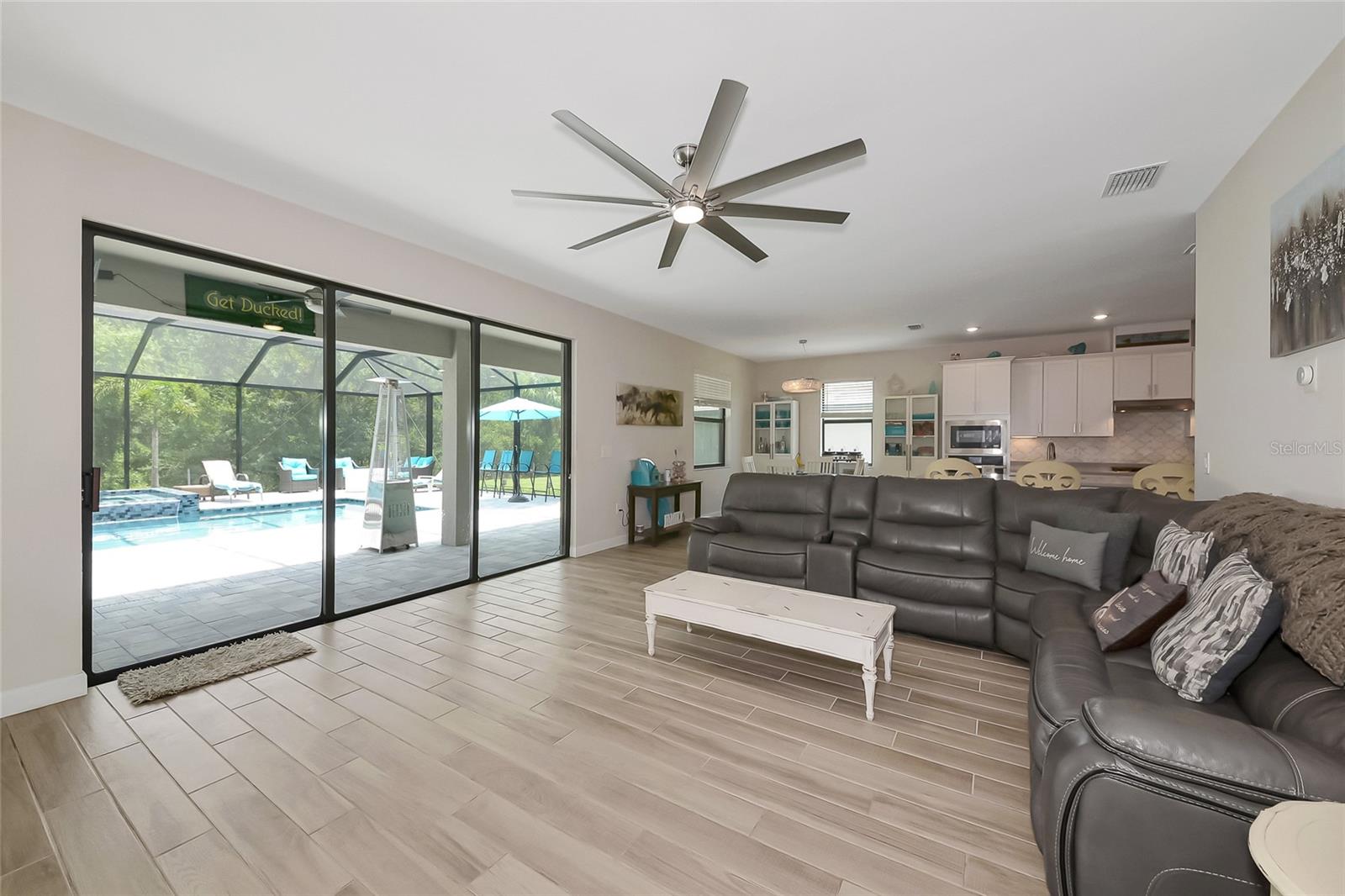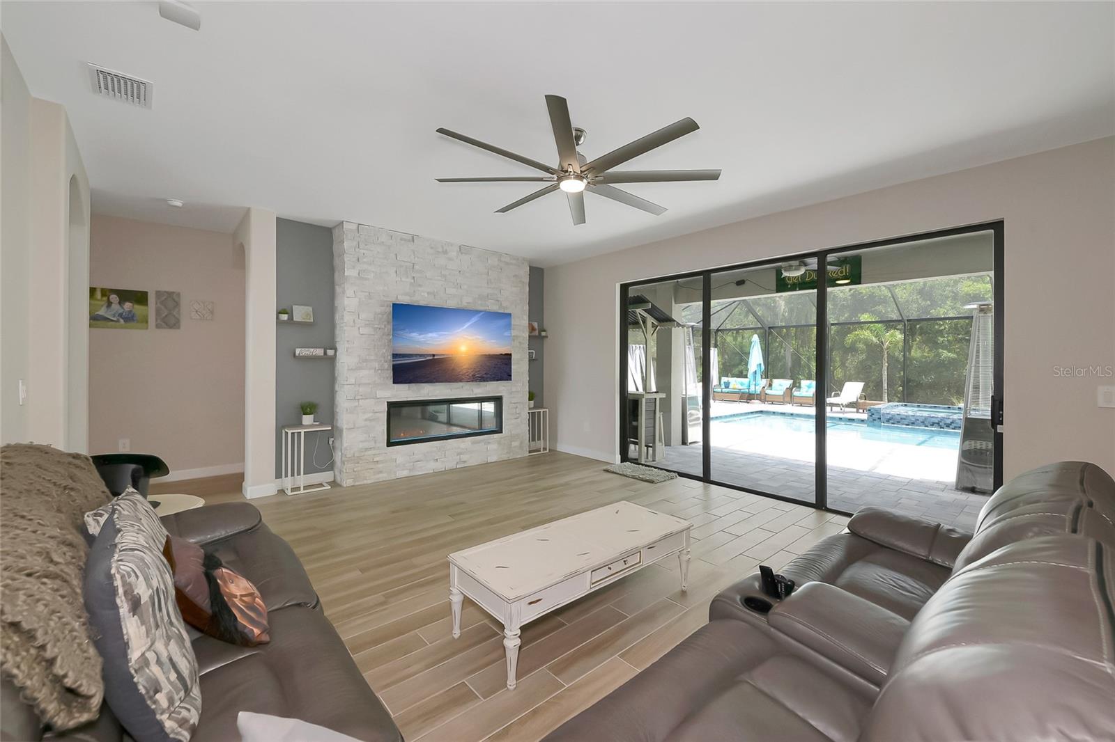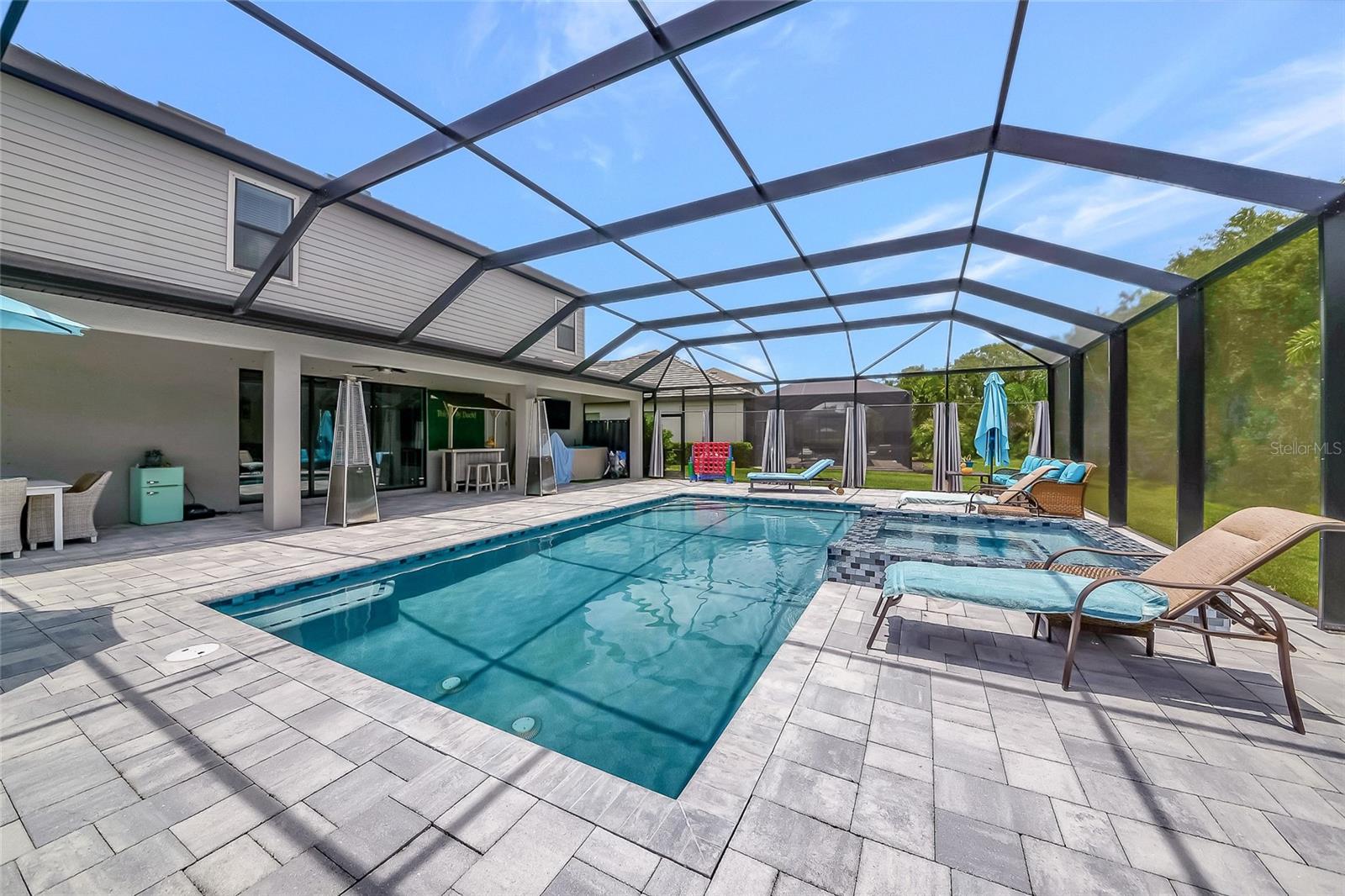Professional photos coming soon. Welcome to the National—one of the most sought-after floor plans in the highly desirable, amenity-rich community of Lorraine Lakes in Lakewood Ranch! This expansive home offers 6 bedrooms, 3 bathrooms, a 3-car garage, and over 3,500 square feet under air—perfect for large families or anyone who loves to entertain. Downstairs, you'll find a private office/den, a spacious guest bedroom next to a full pool bath, and a stunning open-concept kitchen that will impress even the most discerning chef. The gourmet kitchen features 42-inch white cabinetry, quartz countertops, a gas cooktop, built-in microwave, and wall oven. Adjacent to the kitchen is a cozy breakfast nook and a formal dining room ideal for hosting gatherings. The great room offers a dramatic focal point with a stacked-stone electric fireplace—perfect for cozy nights in. Step outside to your private backyard oasis, featuring a custom 50x50 heated pool and raised spa that seats 8, all easily controlled from your smartphone. Upstairs, discover a versatile layout with 4 additional bedrooms plus a loft, and a flex room currently set up as a home theater. The primary suite is massive, featuring dual walk-in closets and a luxurious en-suite bathroom with separate vanities, a soaking tub, and a walk-in shower. Living in Lorraine Lakes means enjoying low-maintenance living, with lawn care, irrigation, cable, and internet all included in your HOA dues. The resort-style amenities are unmatched. 24-hour guard-gated entrance, massive clubhouse with a fitness center, saunas, indoor basketball court, arcade & game room, tennis, pickleball, and outdoor basketball courts. Onsite restaurant and bar (indoor and outdoor dining) Full-time lifestyle director, curating a year-round social calendar It’s no surprise Lorraine Lakes has been named one of the top-selling communities in Lakewood Ranch. This home is move-in ready and loaded with upgrades—don’t miss your chance to live the lifestyle you've been dreaming of!
