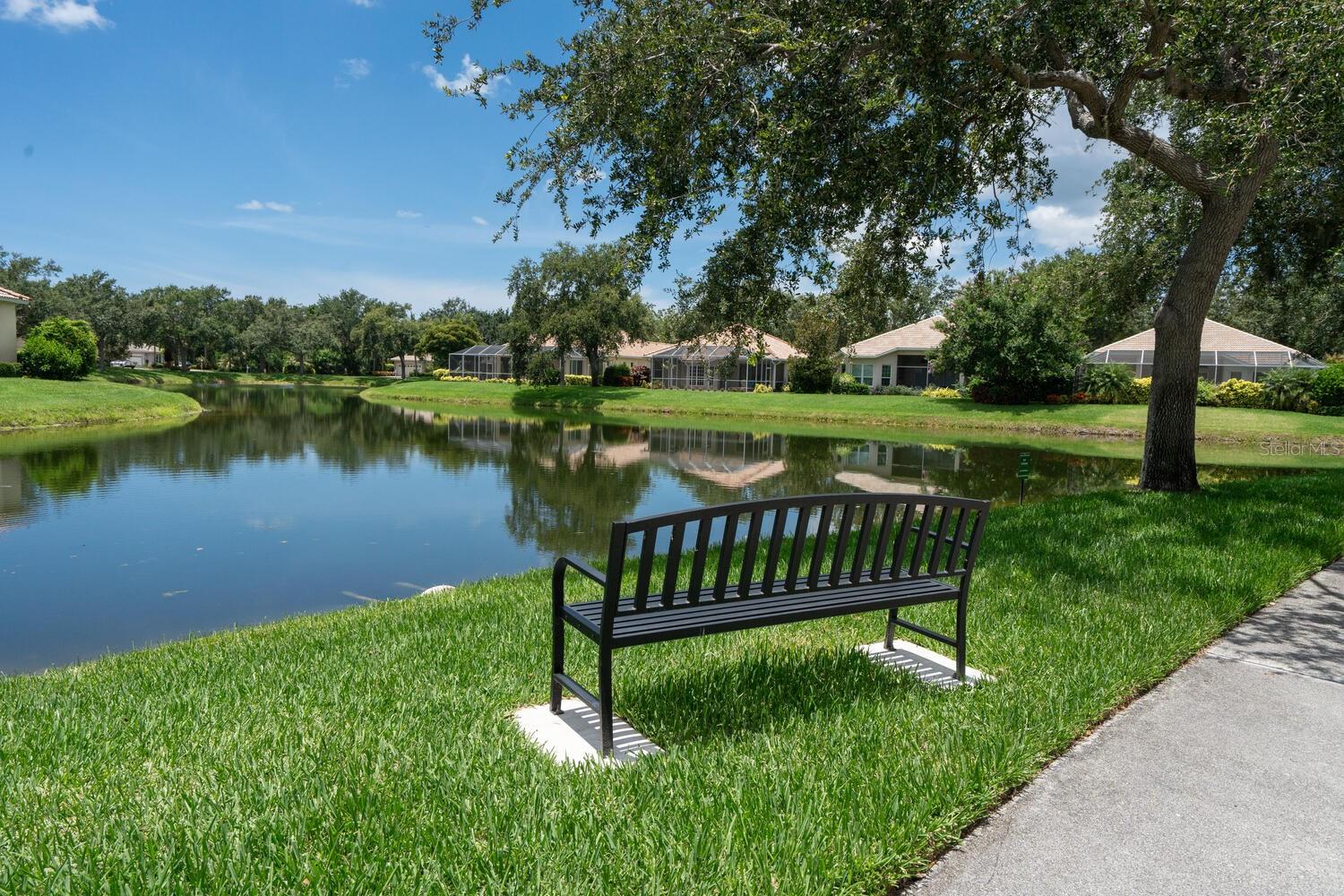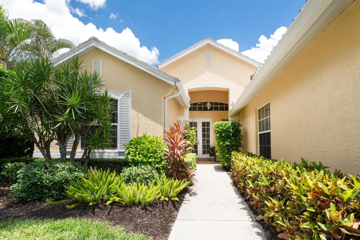 Back on the market with no issues with property. LOCATION LOCATION LOCATION! We've all heard the timeless expression, but not all homes meet the standard. This beautiful home most certainly does! Found in the sought after neighborhood of The Greens at El Conquistador - a tucked away, intimate sized subdivision of only 43 classically designed homes with a Southern Mediterranean flair encompassed by preserves, lakes & the IMG golf course. The ease and freedom of a single family home with superior quality concrete block construction and the desirability of maintenance free yard care - perfect for a second home or those on the go! This customized home enjoys an ideal floorplan with the spaciousness of approximately 2300 square feet along with the comfortable flow of an open Great Room concept featuring soaring, volume ceilings with abundance of recessed lighting, decorative moldings, fireplace and tile floors on the diagonal. Ten foot sliders pocket for wide expanse out to the private screened pool and patio with cabana bath and deep preserve back-drop. The large, thoughtfully designed kitchen features center island with vegetable sink and an excellent layout of cabinetry with built-in appliances and extra oven. Delightful breakfast area has bay window with window seat, built-in desk and there is the convenient access from garage for bringing in groceries. Three bedrooms, smartly laid out with pocket door entry to second and third bedrooms and a grand owner's retreat with tray ceiling & huge walk-in master closet. Lovely master bath with dual sinks, garden tub with separate shower & private water closet with bidet. A/C system replaced December 2024. Super to have, brand new electric storm shutter at front entrance. Nice size interior laundry room. Also to be appreciated is the extended length of the garage to fit larger vehicles. Family and pet friendly atmosphere with sidewalks and graceful, mature landscaping. By way of a short golf cart drive, Greens residents can partake of the semi-private IMG Golf and Country Club with its championship course & Sarasota Bayfront dining. Near all conveniences with close proximity to renown IMG Academy and just 20 minutes to fun Anna Maria Island with its wonderful Gulf beaches plus the same short distance to the cultural arts and buzz of downtown Sarasota. Florida living to be cherished for the fortunate Buyer that does not delay!