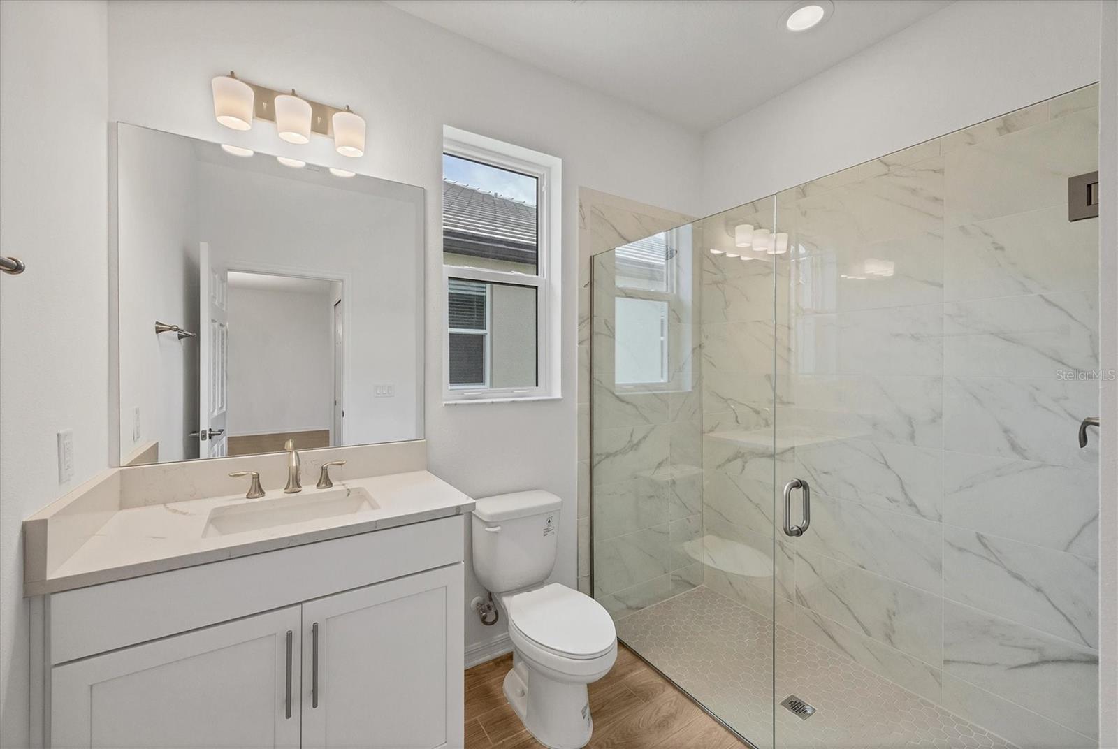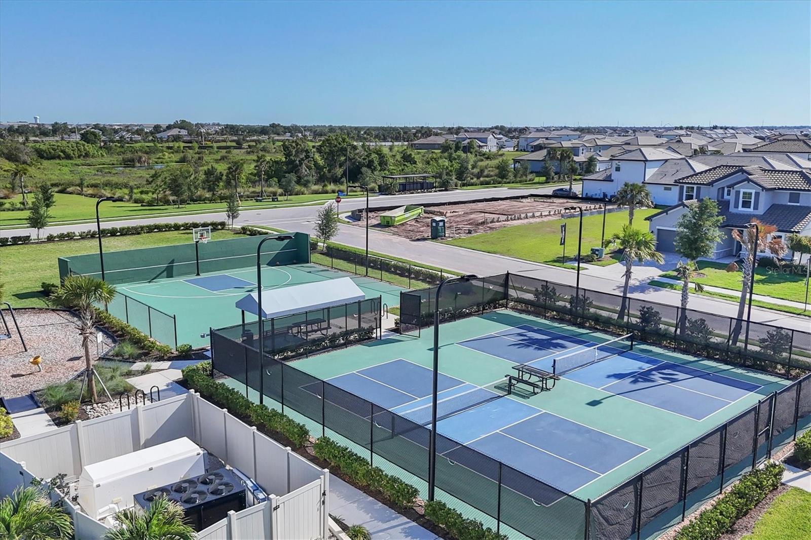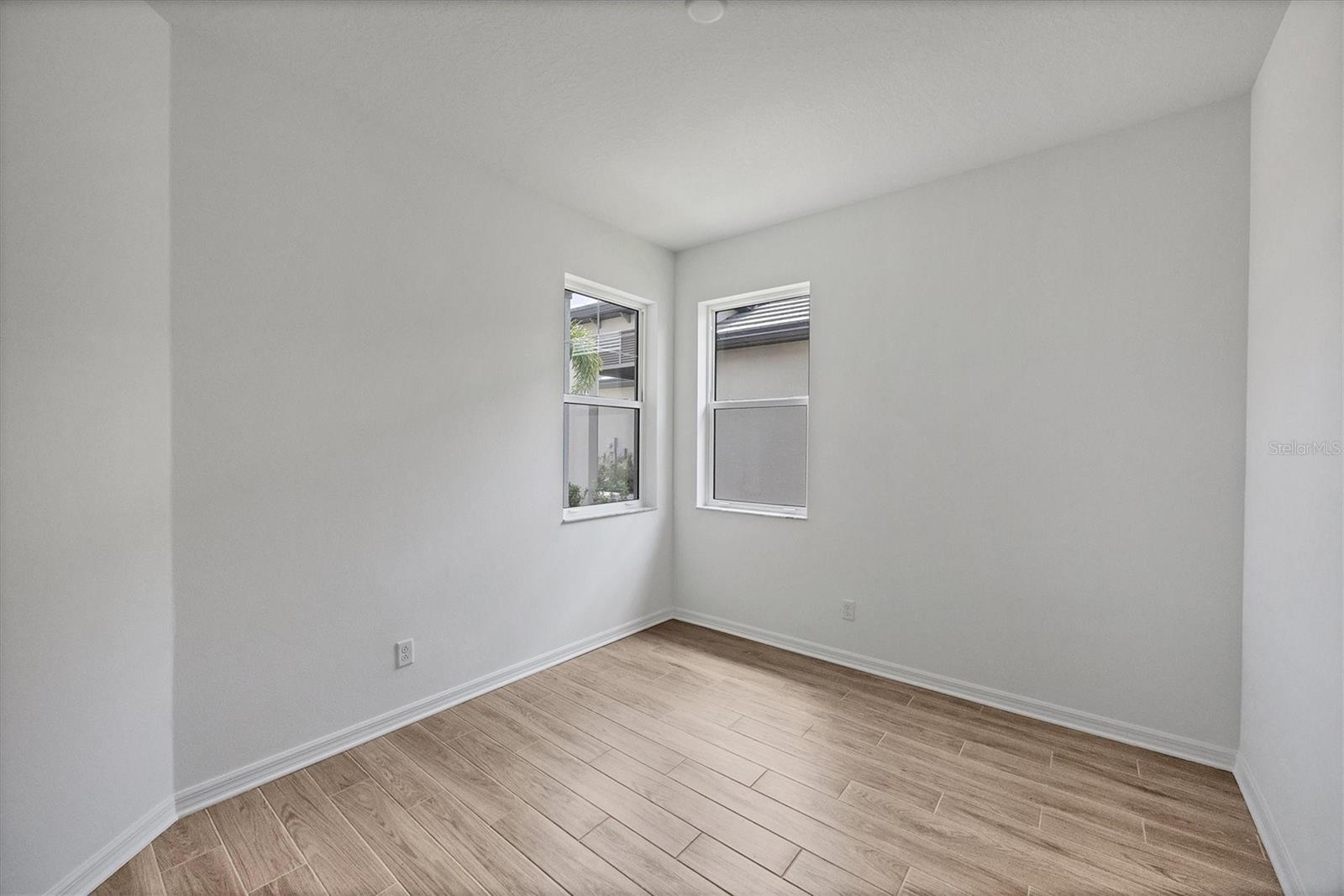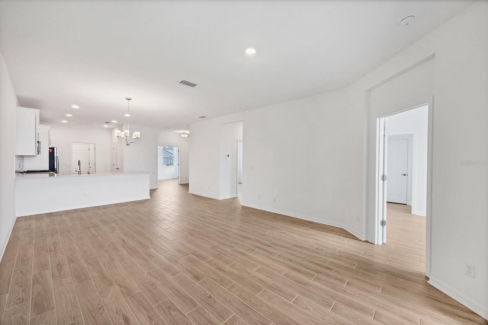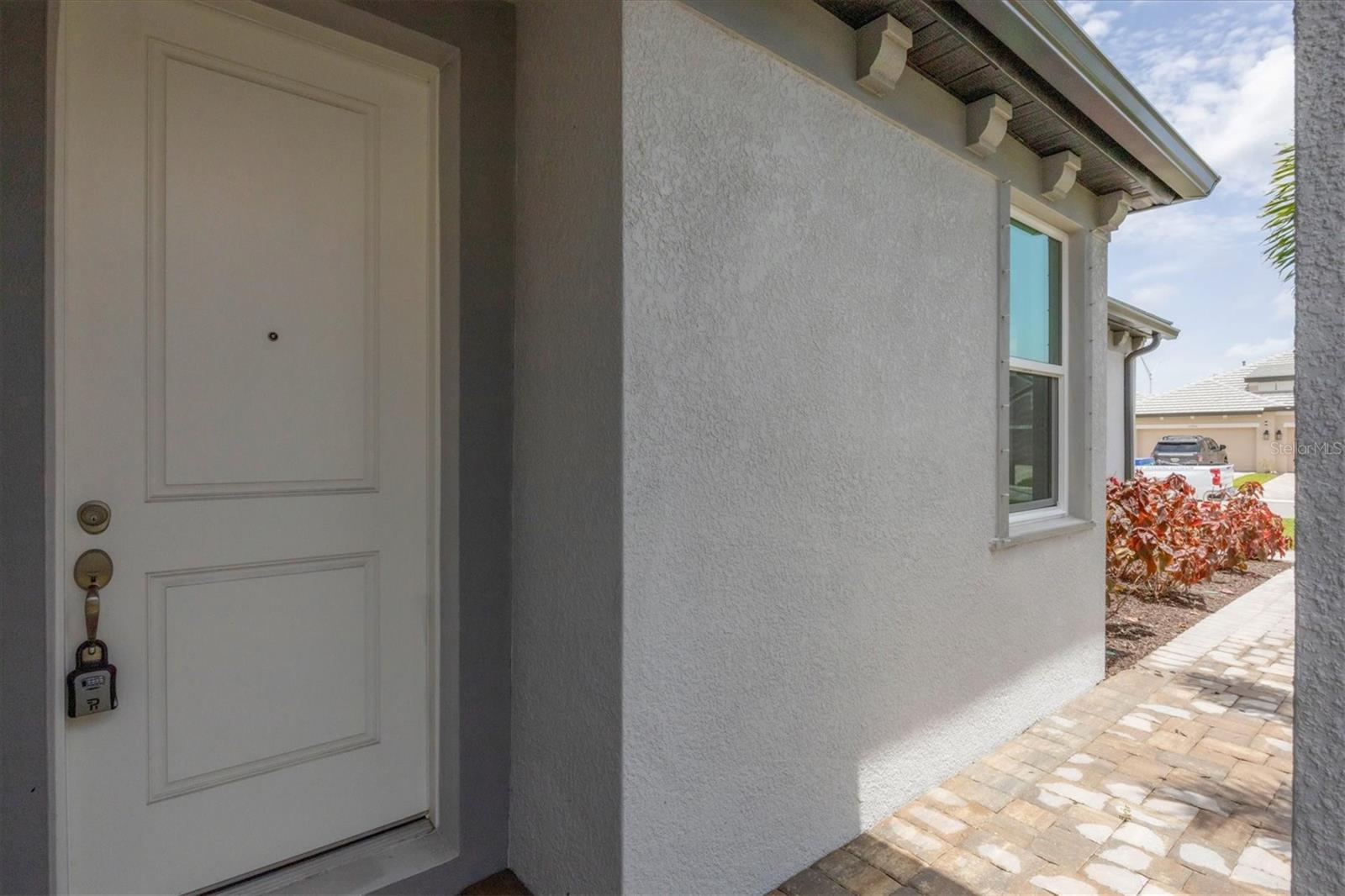One or more photo(s) has been virtually staged. Why wait to build when you can move right into this new, never-lived-in Emerald model by M/I Homes? Enjoy serene, long water views from this beautifully designed maintenance-free villa near the Sweetwater Villas amenity center and pool. This thoughtfully laid-out home features two bedrooms plus a versatile den with double doors, ideal as a home office, guest room or hobby space. The open-concept floor plan flows seamlessly from the spacious great room to the paver, screened lanai overlooking the lake, an ideal setting for relaxing or entertaining. Inside, you'll find neutral tile flooring throughout, bright white paint and an elegant kitchen featuring white cabinetry, new stainless steel appliances, quartz countertops, a breakfast bar and a sleek glossy white backsplash. The primary suite offers peaceful lake views, a large walk-in closet, and an en-suite bath with dual sinks, quartz counters, white cabinetry and a walk-in glass-enclosed shower. The guest suite is privately tucked away and includes a stylish bath with a marbled tile walk-in shower. A two-car garage and paver driveway complete this move-in-ready home. Enjoy effortless, maintenance-free living with professional landscaping and irrigation included, all in a gated neighborhood offering plentiful resort-style amenities for a carefree lifestyle. Sweetwater at Lakewood Ranch offers an exceptional array of amenities, including two amenity centers, heated pool, playground, multi-purpose sports court, pickleball courts, bocce ball courts, a 24-hour fitness room, social hall, festival lawn and amphitheater. Easy living, lock and leave, ideal for a winter getaway! Your new home awaits in this vibrant, amenity-rich community. This is Florida living at its finest.