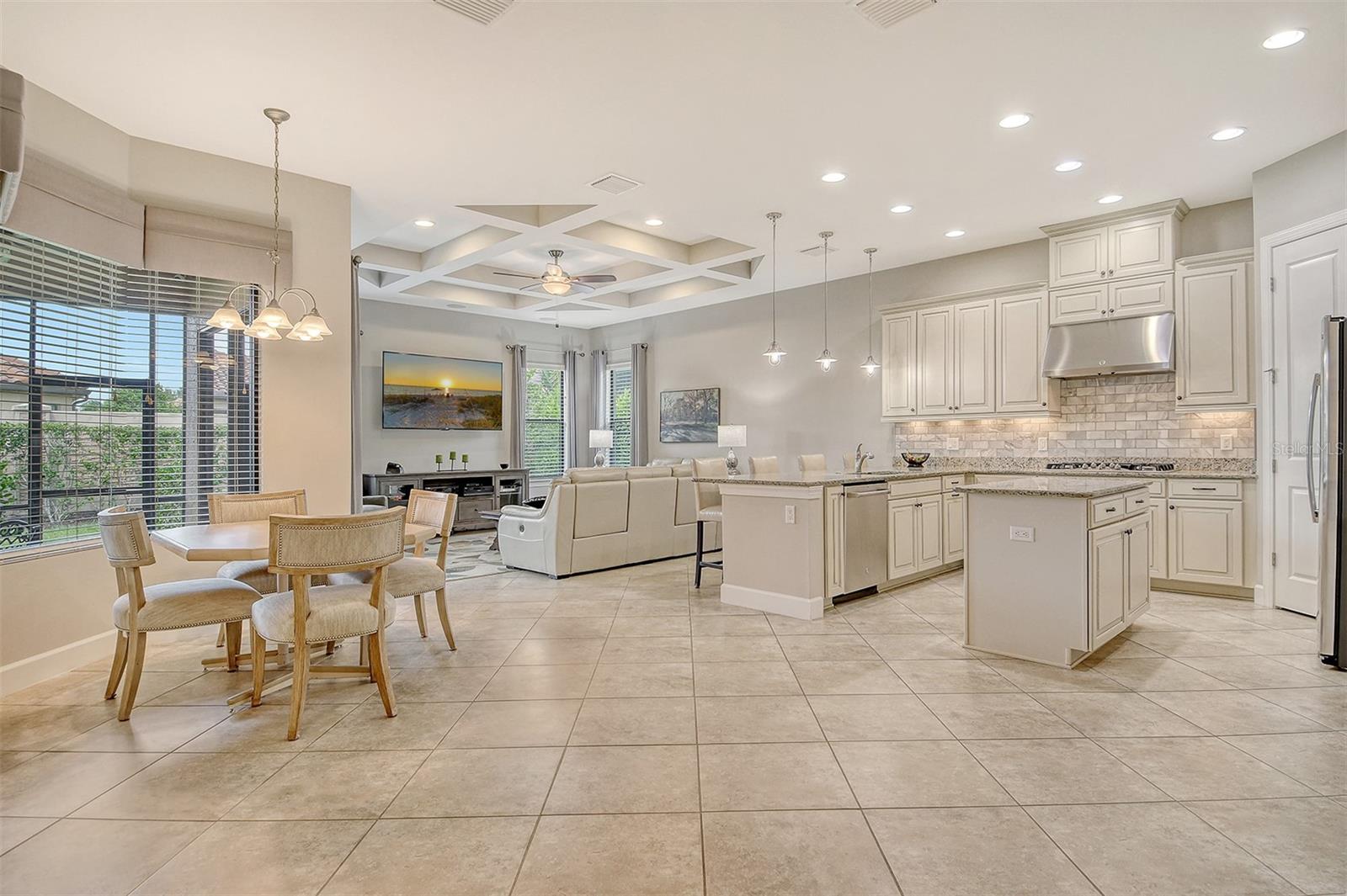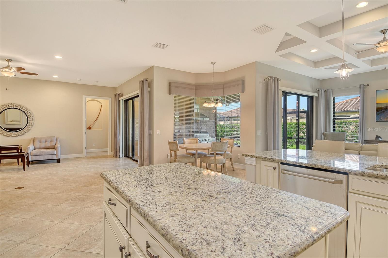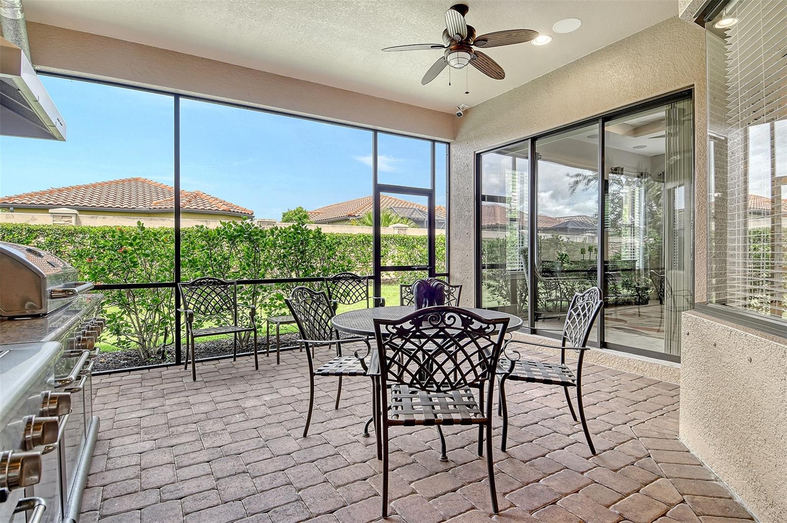 HAPPY NEW YEAR and WELCOME HOME to your Aggressively Priced BELLA CASA VII Floorplan. With a First Time Reduction of over $100,000! Very few of this floorplan were built and even fewer become available! Open and airy, this floorplan provides nearly 3000 sq ft of under air living space while delivering the spaciousness desired in a great floorplan with a uniqueness all its own. Offering three bedrooms all on suites with an additional powder room and den! Tray ceiling in the family room brings that special touch to the family room area while keeping the other ceilings in the home transitional in design. The home's neutral color palette makes it a decorator's delight. A large quartz island with pendant lighting along with GE stainless steel appliances including a gas cooktop with built in oven and microwave makes this kitchen highly functional and very attractive. Surround sound throughout. The tandem garage is currently a built-out area which can function in a variety of ways with air condition for a wine room or the current owner would be happy to remove convert it back to open extra garage space. The Full-Home Kohler Generator provides added peace of mind. Home Warranty Included. GOLF MEMBERSHIP IS INCLUDED in the HOA fees. Enjoy playing on your 18-hole championship course as you enjoy all the resort-style amenities provided. Enjoy the onsite world class culinary center. Enjoy all the wonderful dining options for dining out within leaving your private gated community. The Tiki Bar, The Bahama Bar, The Barrel House. Numerous ways to get your steps in -pickle ball courts, tennis, bocce ball then you can cool down on of the two pools and spa. Wellness programs, fitness center with full time activities director on site! Let's not forget the playground and dog park! The home is one block away from all these neighborhood activities. Esplanade Golf and Country Clubs is one of Lakewood Ranch's premier Golf and Country Club Communities and Lakewood Ranch is one of the top ranked Master Planned Community in America! Yes, it is all about the Floorplan and the Location.