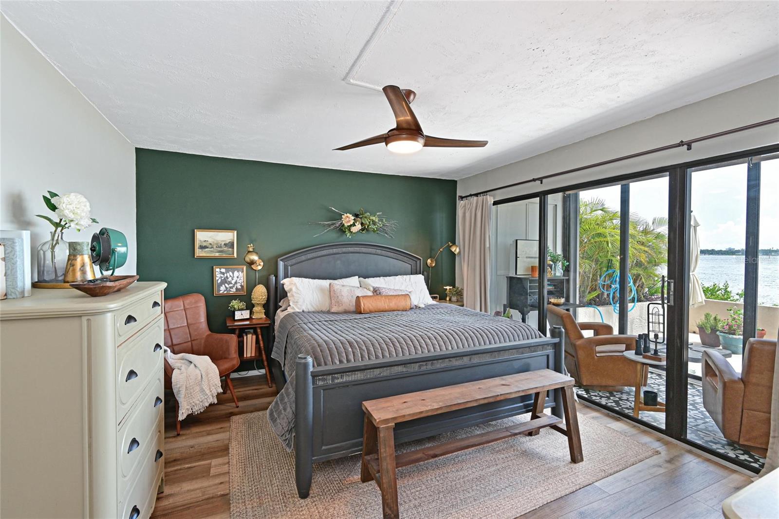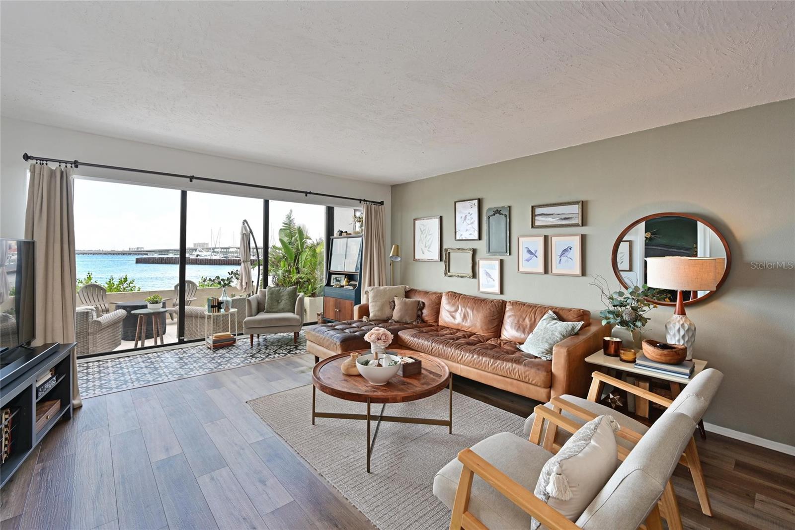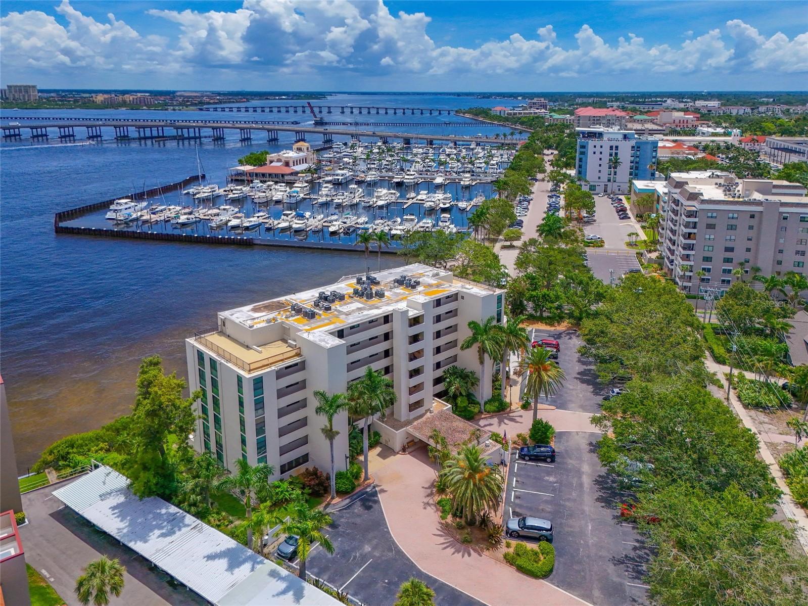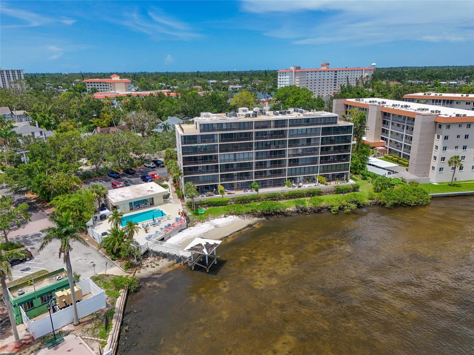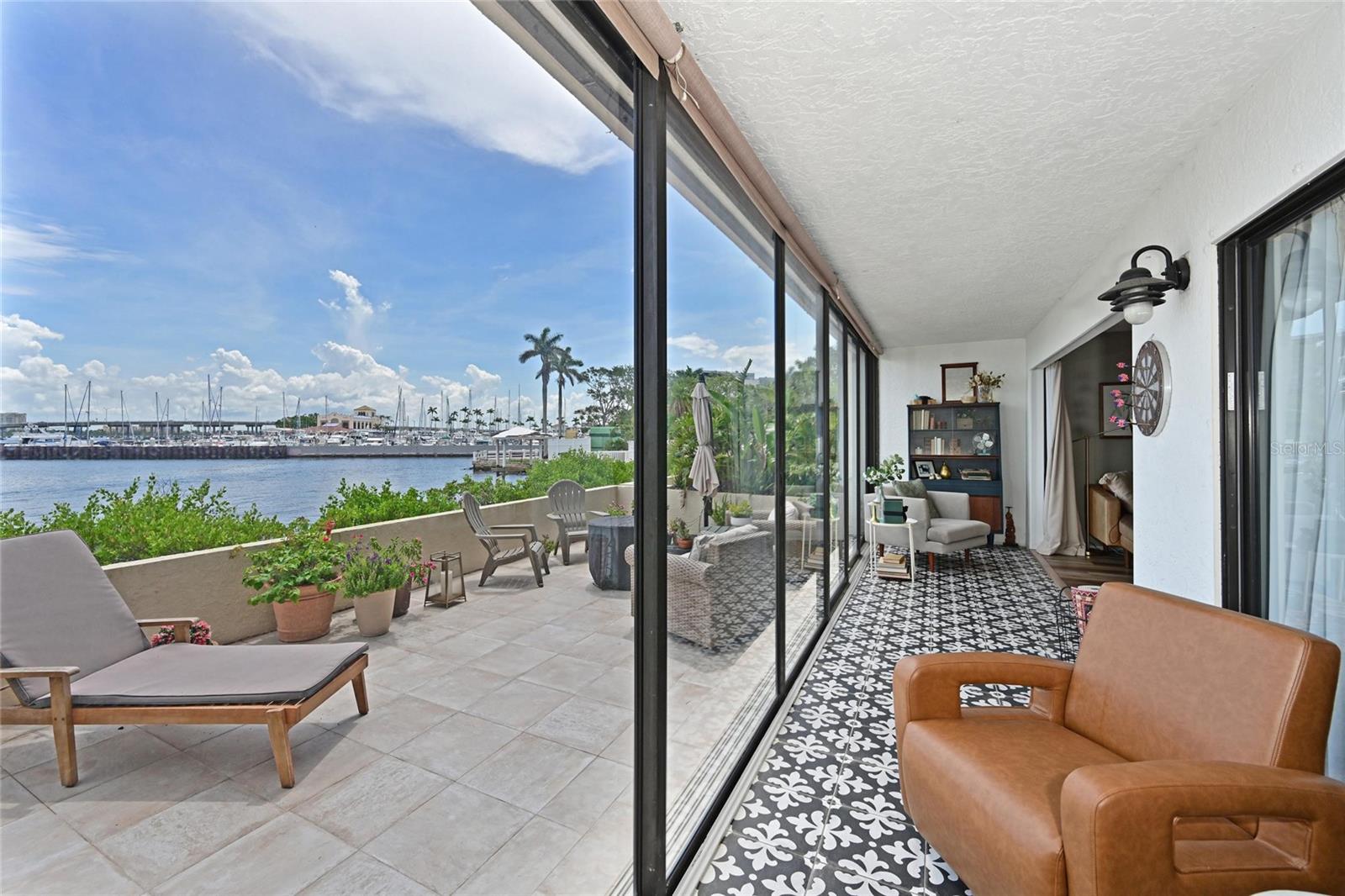 Direct Waterfront Condo with Stunning Panoramic River Views. If you're seeking an alluring ambiance paired with exceptional waterfront living, look no further—this beautifully remodeled 2-bedroom, 2-bath condo is the one. Perfectly positioned in a direct waterfront location, it boasts unobstructed, panoramic views of the Manatee River from the great room, kitchen, dining, master suite, and the oversized outdoor Veranda. Step inside and feel immediately at home in the warmth and character of this thoughtfully renovated residence. The open-concept great room is anchored by luxury vinyl plank flooring, designer lighting, and stylish accent wall, creating a welcoming and modern space for relaxing or entertaining. The gourmet kitchen is both beautiful and functional, featuring quartz countertops, stainless steel appliances, a double oven range, tile backsplash, tray ceiling, recessed lighting, and plantation shutters—all elevated by elegant finishes and attention to detail. The spacious master bedroom offers breathtaking water views and access to an ensuite bath with quartz countertops, showcasing high-end flooring, framed mirror, seamless glass shower doors, and dual closets. The guest bedroom and bath are equally refined with upgraded tile, plantation shutters, framed mirror, and generous closet space. There is additional living space in an enclosed lanai area that opens through sliders to the extended outdoor living space of the Veranda. Additional features include a stackable washer/dryer, impact-resistant front windows, new tile on Veranda and a 2023 AC unit. HOA fees cover water, sewer, trash, cable TV, and WiFi—adding ease to a maintenance free lifestyle. Outdoor enthusiasts will love the direct shoreline access, ideal for fishing or launching a kayak. A fishing kayak is included and kayak storage is conveniently located under the pool deck. The complex also offers a private beach, plus resort-style amenities: pool, spa, clubhouse, sauna, billiards, and a scenic water gazebo. Situated on the west end of the Riverwalk, you’re just steps from Twin Dolphins Marina—perfect for boaters—and close to Pier 22 for waterfront dining. Explore the vibrant downtown Bradenton scene, enjoy the weekly Farmers Market, or take a short drive to the world-class beaches of Sarasota, Bradenton, St. Pete, and near by Anna Maria Island. With easy access to both Sarasota and Tampa airports, this location is as convenient as it is captivating.