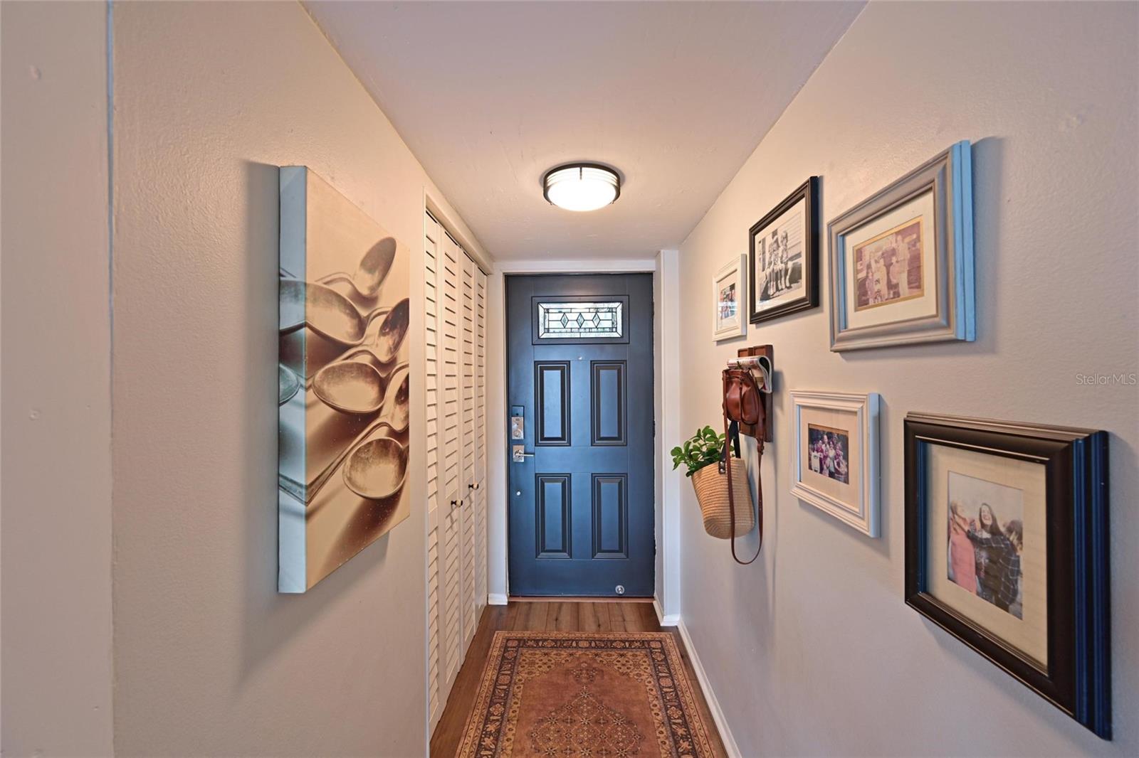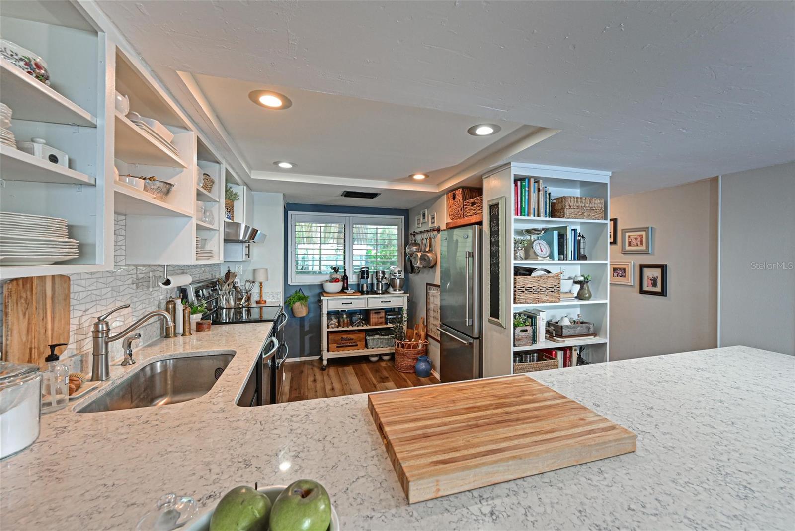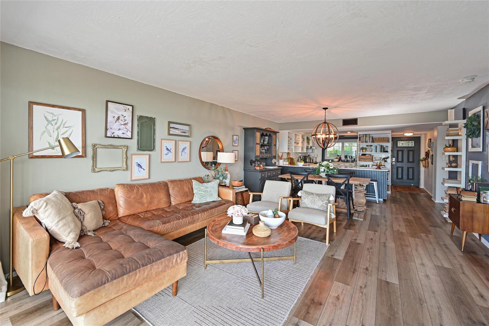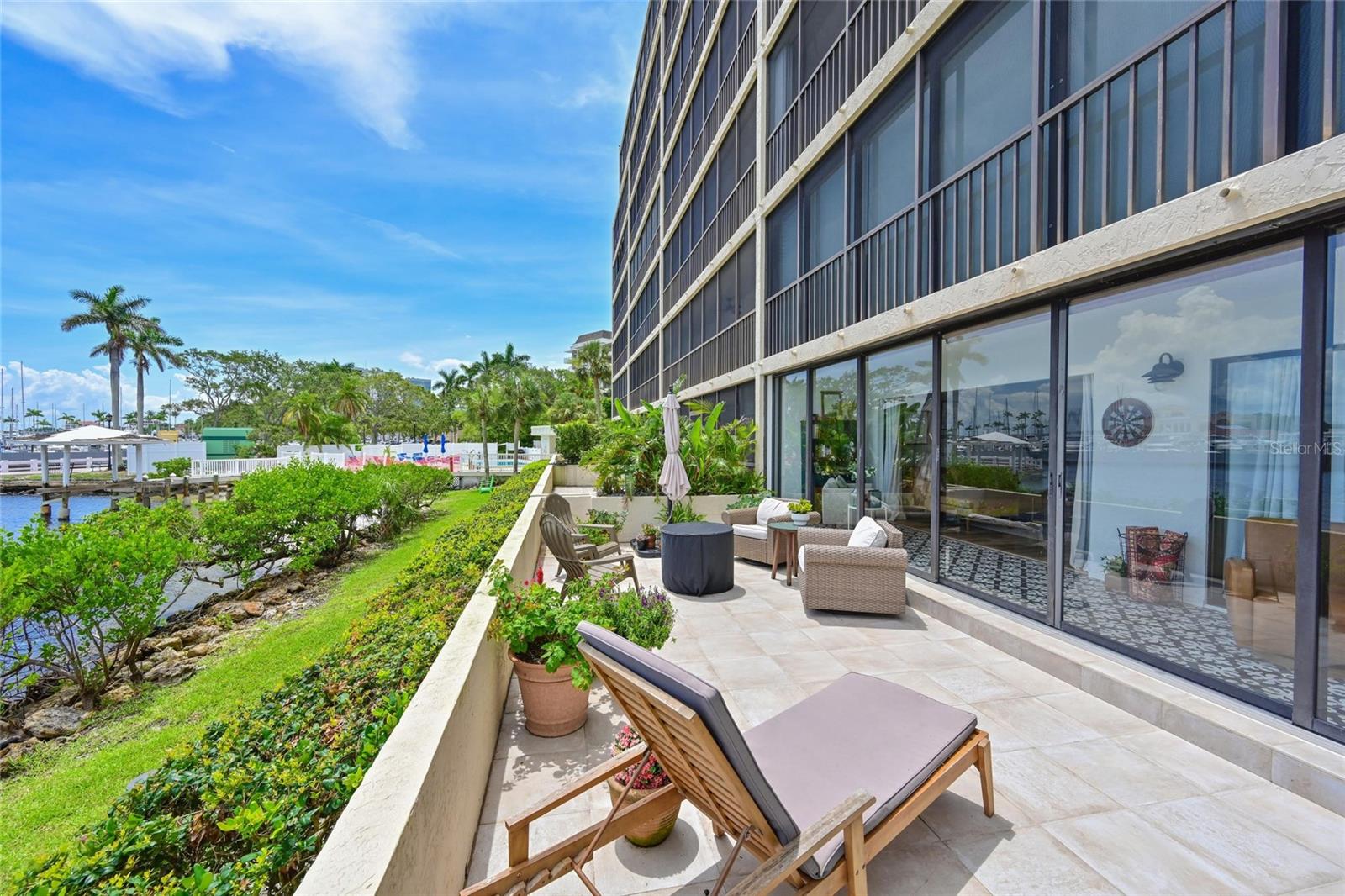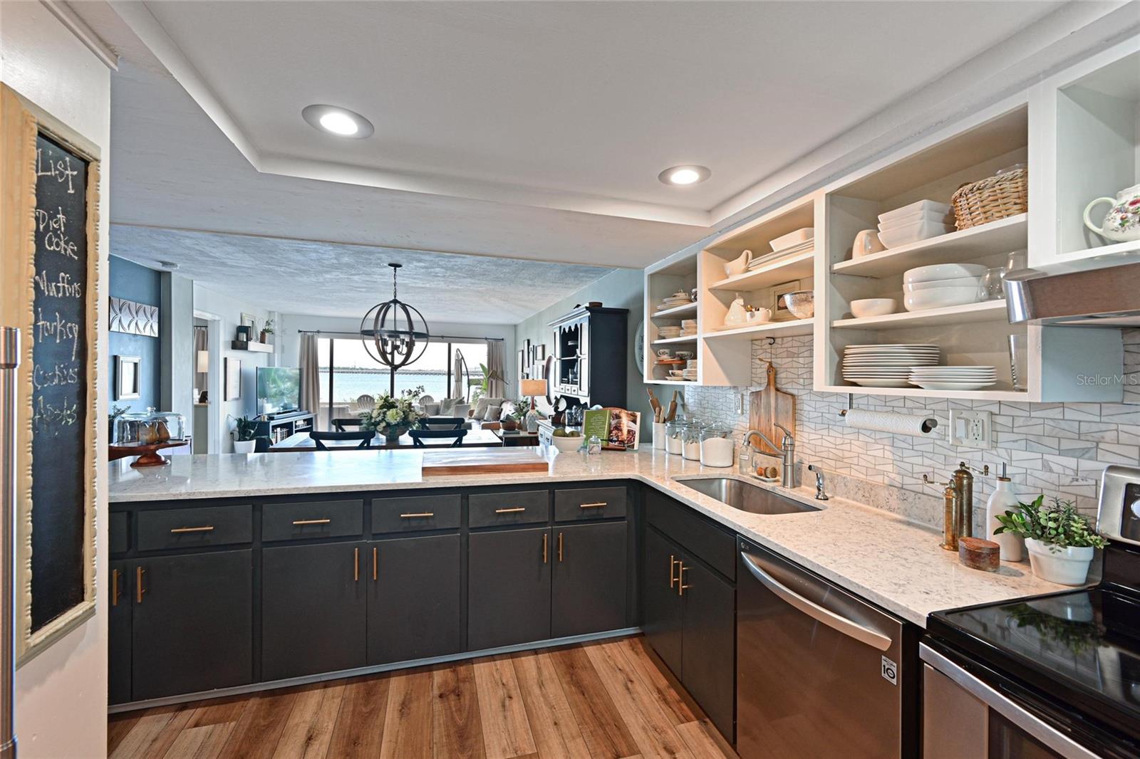 Direct Waterfront Condo with Stunning Panoramic River Views. If you're seeking an alluring ambiance paired with exceptional waterfront living, look no further—this beautifully remodeled 2-bedroom, 2-bath condo is the one. Perfectly positioned in a direct waterfront location, it boasts unobstructed, panoramic views of the Manatee River from the great room, kitchen, dining, master suite, and the oversized outdoor Veranda. Step inside and feel immediately at home in the warmth and character of this thoughtfully renovated residence. The open-concept great room is anchored by luxury vinyl plank flooring, designer lighting, and stylish accent wall, creating a welcoming and modern space for relaxing or entertaining. The gourmet kitchen is both beautiful and functional, featuring quartz countertops, stainless steel appliances, a double oven range, tile backsplash, tray ceiling, recessed lighting, and plantation shutters—all elevated by elegant finishes and attention to detail. The spacious master bedroom offers breathtaking water views and access to an ensuite bath with quartz countertops, showcasing high-end flooring, framed mirror, seamless glass shower doors, and dual closets. The guest bedroom and bath are equally refined with upgraded tile, plantation shutters, framed mirror, and generous closet space. There is additional living space in an enclosed lanai area that opens through sliders to the extended outdoor living space of the Veranda. Additional features include a stackable washer/dryer, impact-resistant front windows, new tile on Veranda and a 2023 AC unit. HOA fees cover water, sewer, trash, cable TV, and WiFi—adding ease to a maintenance free lifestyle. Outdoor enthusiasts will love the direct shoreline access, ideal for fishing or launching a kayak. A fishing kayak is included and kayak storage is conveniently located under the pool deck. The complex also offers a private beach, plus resort-style amenities: pool, spa, clubhouse, sauna, billiards, and a scenic water gazebo. Situated on the west end of the Riverwalk, you’re just steps from Twin Dolphins Marina—perfect for boaters—and close to Pier 22 for waterfront dining. Explore the vibrant downtown Bradenton scene, enjoy the weekly Farmers Market, or take a short drive to the world-class beaches of Sarasota, Bradenton, St. Pete, and near by Anna Maria Island. With easy access to both Sarasota and Tampa airports, this location is as convenient as it is captivating.