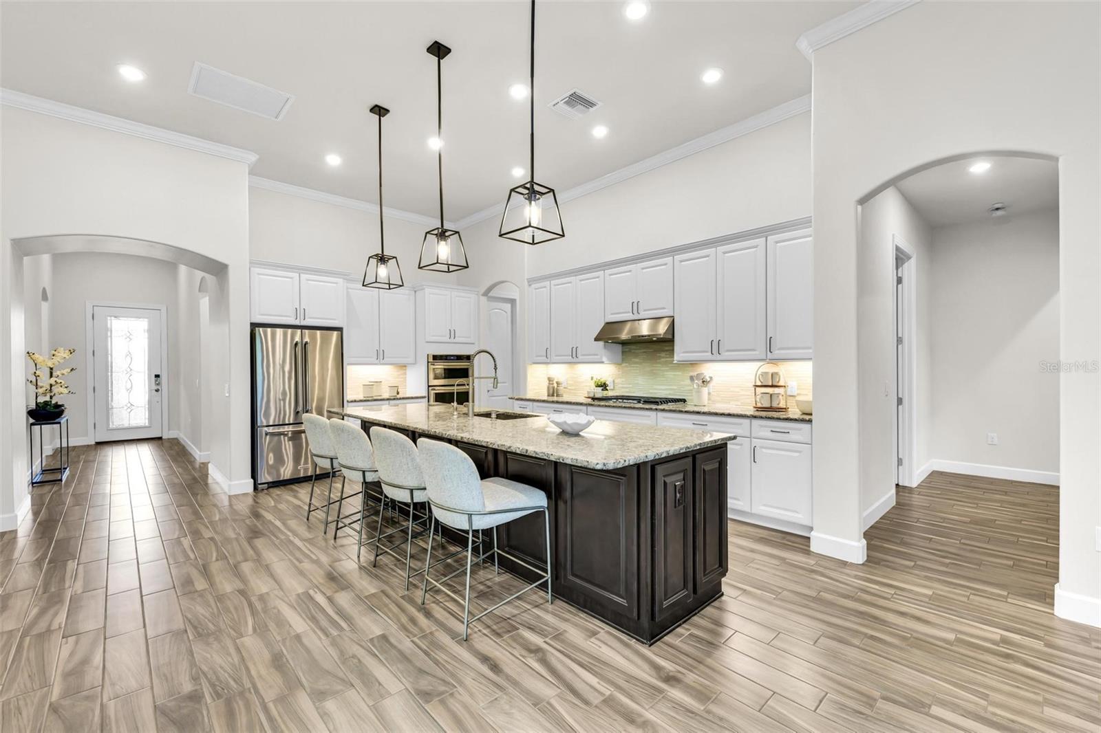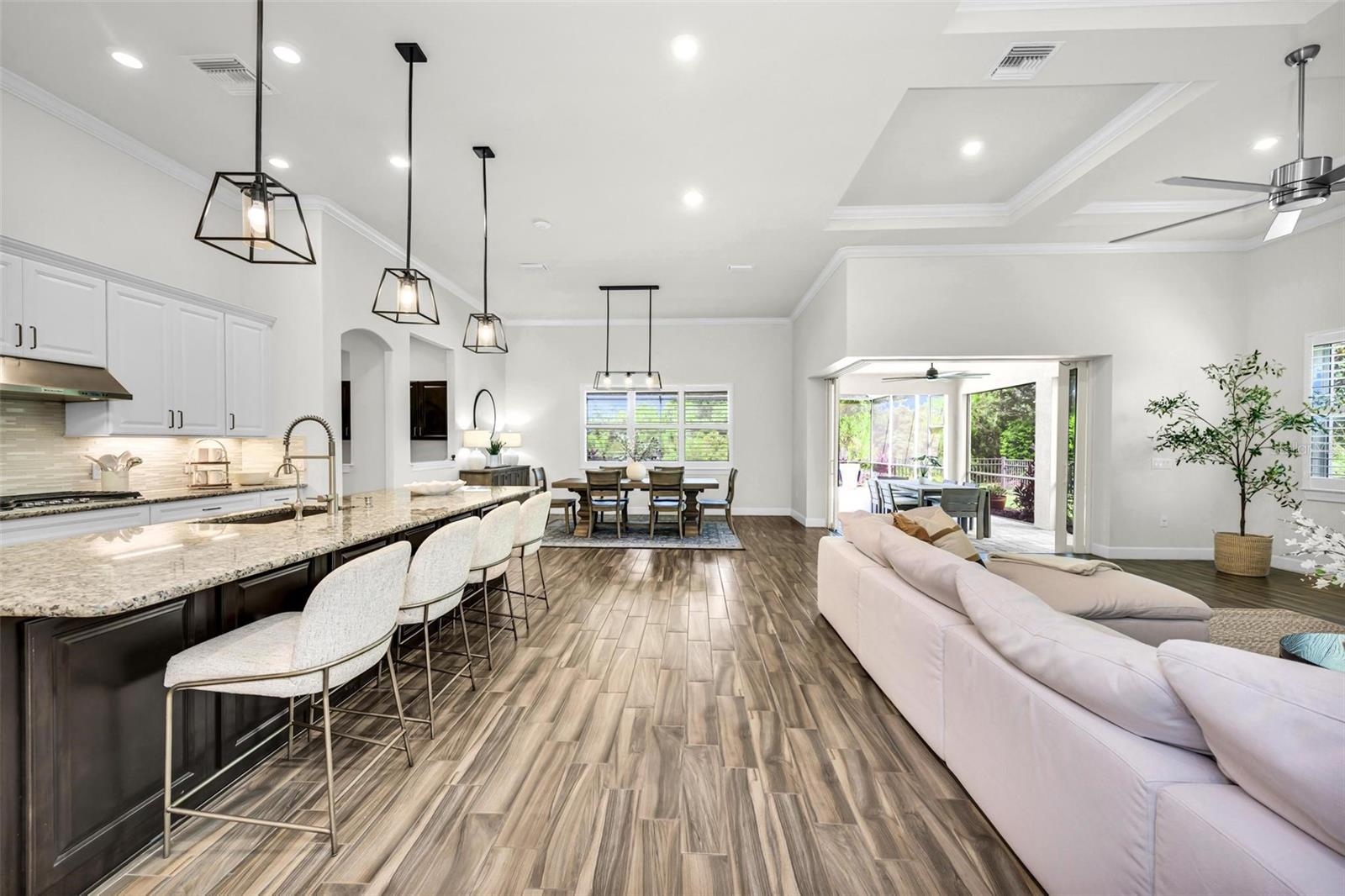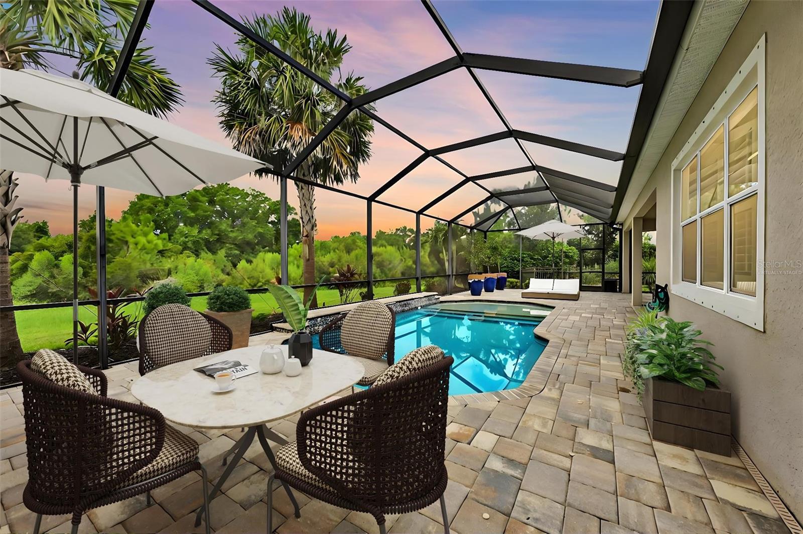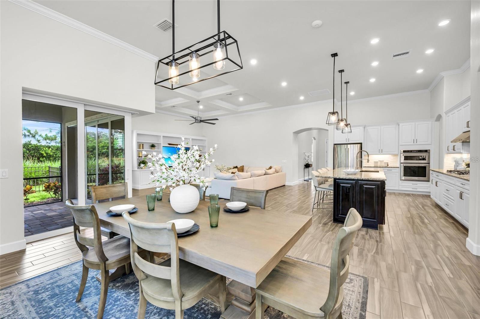One or more photo(s) has been virtually staged. Where timeless elegance meets modern Florida living—welcome to your dream home in Mallory Park. This luxurious 2,900-square-foot residence, built in 2018, embodies modern elegance and functional comfort. Seamlessly blending opulence with practicality, the home features an impressive Great Room with 10-foot tray ceilings, zero-corner sliding glass doors that expand the living space outdoors, and a custom-built media center designed for top-tier entertainment. The chef’s kitchen is a culinary masterpiece, outfitted with modern appliances, a spacious pantry, and elegant Pottery Barn lighting above the expansive island. Adjacent, the dining area dazzles with a new Pottery Barn chandelier and direct access to the outdoor oasis through zero-corner sliding glass doors. The Primary Suite offers a private sanctuary, a spacious bedroom with a large walk-in closet featuring a built-in organization system, and an en-suite bath complete with double vanities, a soaking tub, and a separate shower. Additional generously sized bedrooms share a convenient Jack-and-Jill bathroom. Architectural details abound throughout the home, from high ceilings to tray ceilings, creating an atmosphere of refinement and luxury. Practical features include a large laundry room with additional appliances, a three-car garage with ample storage solutions, and a custom-built drop zone for daily organization. Outdoors, the home continues to impress with a newly heated pool, a screened lanai with new bug protection screens and privacy panels, two spacious covered patio areas ideal for dining and gatherings, and a sunny deck perfect for enjoying the Florida sunshine. A fully fenced yard ensures pet safety, while the property’s prominent corner lot location offers privacy and scenic views. Residents of Mallory Park enjoy exclusive access to a gated community entrance, proximity to top-rated schools, and a variety of amenities, including a state-of-the-art amenity center with clubhouse, gym, resort-style pool, event space, gathering areas, fishing lake with dock, fire pit area, and playground. Located in the heart of Lakewood Ranch, residents have easy access to shopping centers, medical facilities, dining options, and recreational activities. With its unbeatable location and exceptional features, this home presents a rare opportunity to live in luxury in Lakewood Ranch. Contact us today to schedule your private tour and experience elegant Florida living.