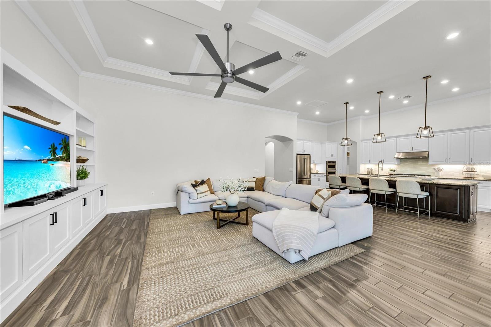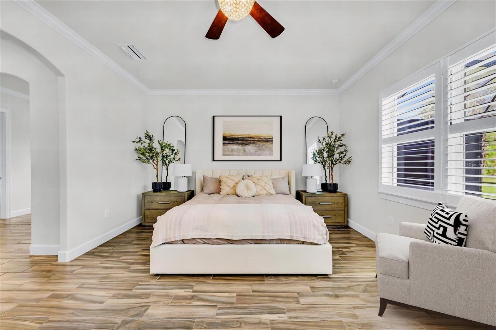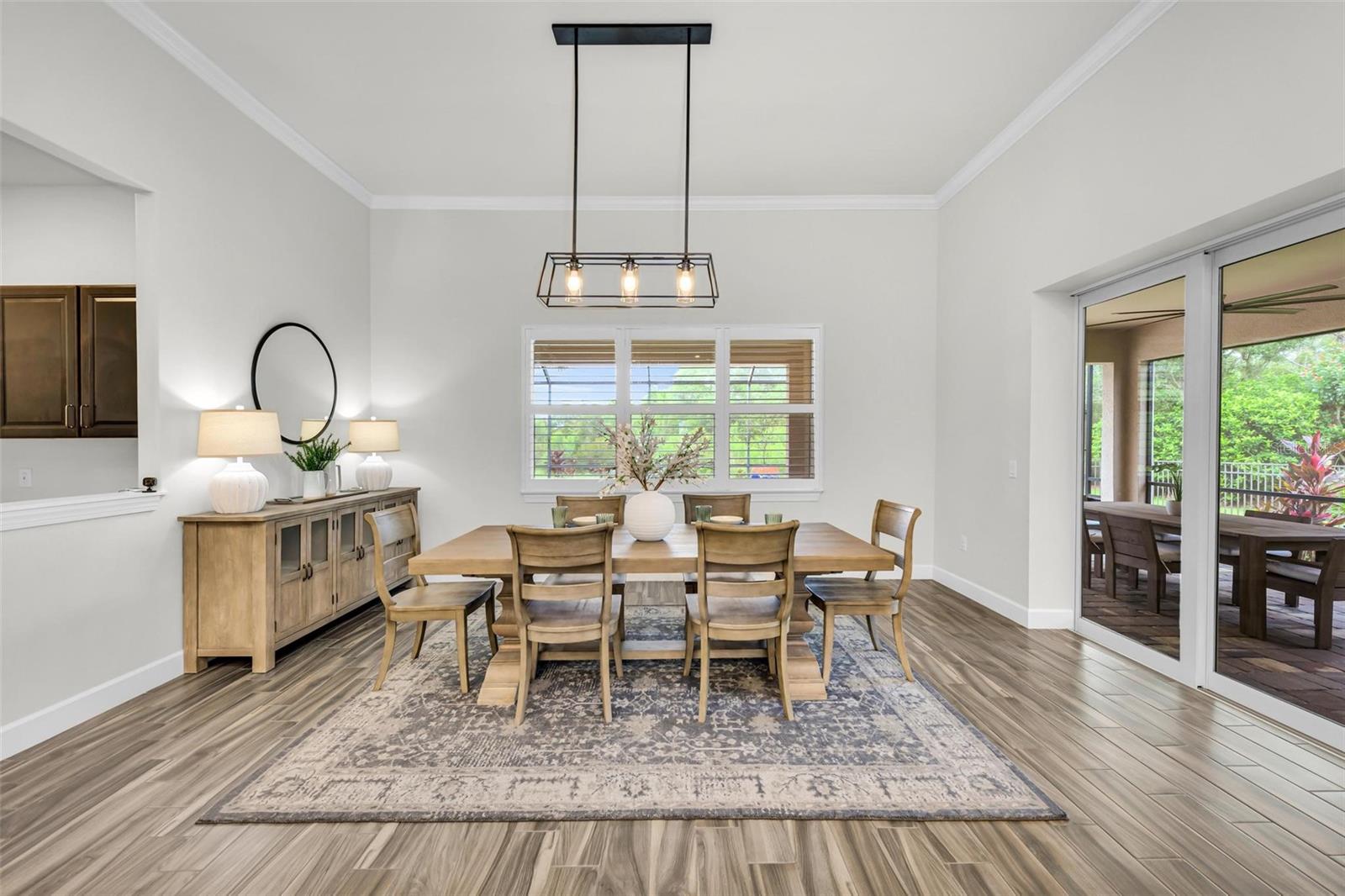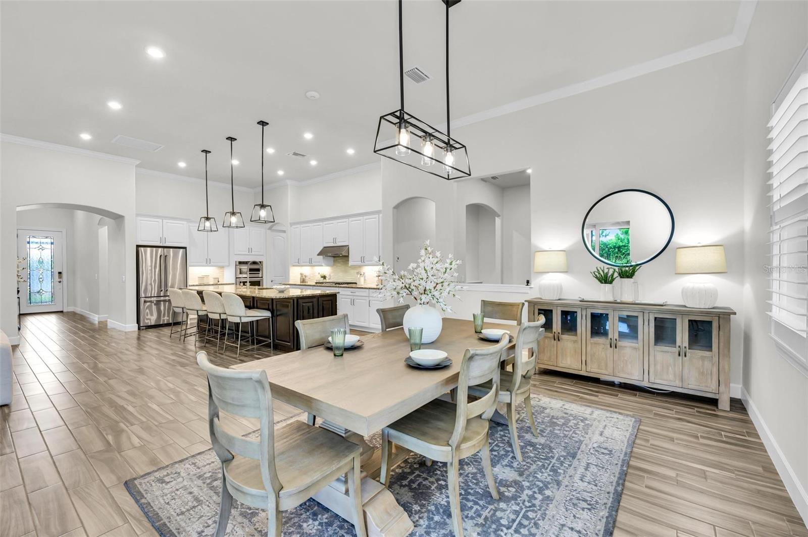 One or more photo(s) has been virtually staged. Where timeless elegance meets modern Florida living—welcome to your dream home in Mallory Park. This luxurious 2,900-square-foot residence, built in 2018, embodies modern elegance and functional comfort. Seamlessly blending opulence with practicality, the home features an impressive Great Room with 10-foot tray ceilings, zero-corner sliding glass doors that expand the living space outdoors, and a custom-built media center designed for top-tier entertainment. The chef’s kitchen is a culinary masterpiece, outfitted with modern appliances, a spacious pantry, and elegant Pottery Barn lighting above the expansive island. Adjacent, the dining area dazzles with a new Pottery Barn chandelier and direct access to the outdoor oasis through zero-corner sliding glass doors. The Primary Suite offers a private sanctuary, a spacious bedroom with a large walk-in closet featuring a built-in organization system, and an en-suite bath complete with double vanities, a soaking tub, and a separate shower. Additional generously sized bedrooms share a convenient Jack-and-Jill bathroom. Architectural details abound throughout the home, from high ceilings to tray ceilings, creating an atmosphere of refinement and luxury. Practical features include a large laundry room with additional appliances, a three-car garage with ample storage solutions, and a custom-built drop zone for daily organization. Outdoors, the home continues to impress with a newly heated pool, a screened lanai with new bug protection screens and privacy panels, two spacious covered patio areas ideal for dining and gatherings, and a sunny deck perfect for enjoying the Florida sunshine. A fully fenced yard ensures pet safety, while the property’s prominent corner lot location offers privacy and scenic views. Residents of Mallory Park enjoy exclusive access to a gated community entrance, proximity to top-rated schools, and a variety of amenities, including a state-of-the-art amenity center with clubhouse, gym, resort-style pool, event space, gathering areas, fishing lake with dock, fire pit area, and playground. Located in the heart of Lakewood Ranch, residents have easy access to shopping centers, medical facilities, dining options, and recreational activities. With its unbeatable location and exceptional features, this home presents a rare opportunity to live in luxury in Lakewood Ranch. Contact us today to schedule your private tour and experience elegant Florida living.