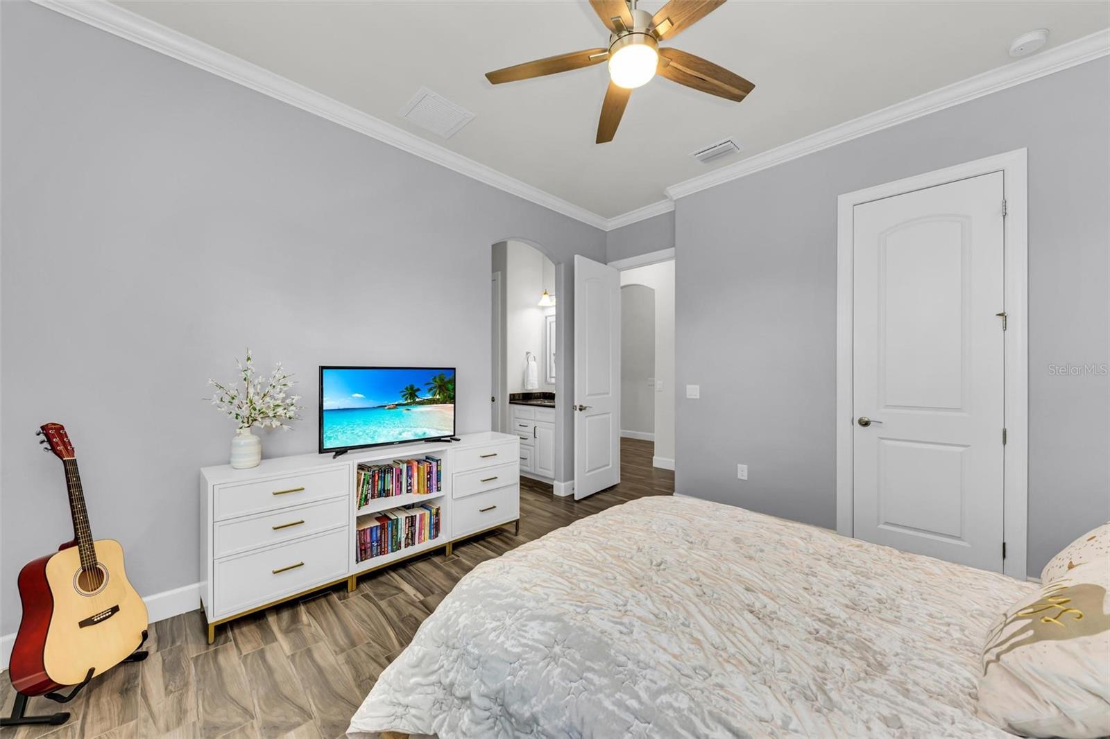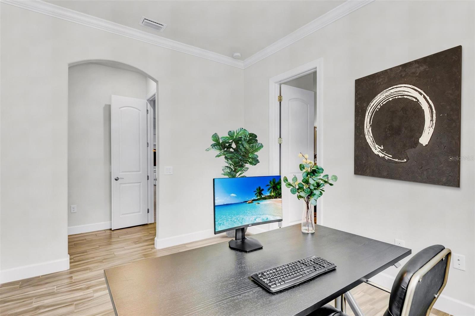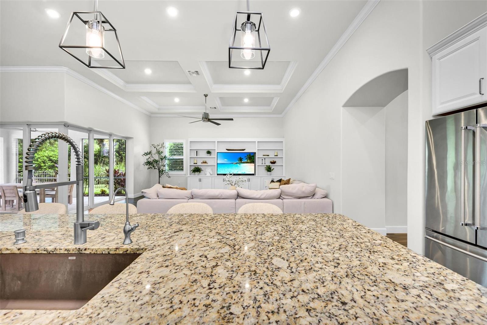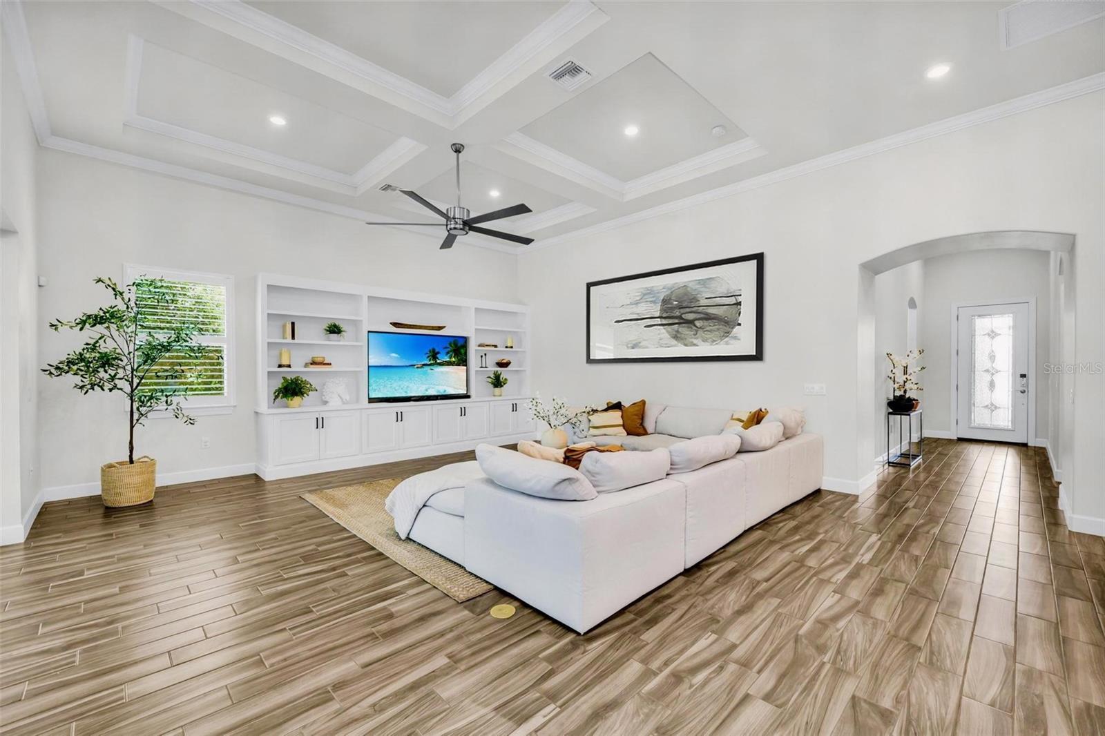 One or more photo(s) has been virtually staged. Where timeless elegance meets modern Florida living—welcome to your dream home in Mallory Park. This luxurious 2,900-square-foot residence, built in 2018, embodies modern elegance and functional comfort. Seamlessly blending opulence with practicality, the home features an impressive Great Room with 10-foot tray ceilings, zero-corner sliding glass doors that expand the living space outdoors, and a custom-built media center designed for top-tier entertainment. The chef’s kitchen is a culinary masterpiece, outfitted with modern appliances, a spacious pantry, and elegant Pottery Barn lighting above the expansive island. Adjacent, the dining area dazzles with a new Pottery Barn chandelier and direct access to the outdoor oasis through zero-corner sliding glass doors. The Primary Suite offers a private sanctuary, a spacious bedroom with a large walk-in closet featuring a built-in organization system, and an en-suite bath complete with double vanities, a soaking tub, and a separate shower. Additional generously sized bedrooms share a convenient Jack-and-Jill bathroom. Architectural details abound throughout the home, from high ceilings to tray ceilings, creating an atmosphere of refinement and luxury. Practical features include a large laundry room with additional appliances, a three-car garage with ample storage solutions, and a custom-built drop zone for daily organization. Outdoors, the home continues to impress with a newly heated pool, a screened lanai with new bug protection screens and privacy panels, two spacious covered patio areas ideal for dining and gatherings, and a sunny deck perfect for enjoying the Florida sunshine. A fully fenced yard ensures pet safety, while the property’s prominent corner lot location offers privacy and scenic views. Residents of Mallory Park enjoy exclusive access to a gated community entrance, proximity to top-rated schools, and a variety of amenities, including a state-of-the-art amenity center with clubhouse, gym, resort-style pool, event space, gathering areas, fishing lake with dock, fire pit area, and playground. Located in the heart of Lakewood Ranch, residents have easy access to shopping centers, medical facilities, dining options, and recreational activities. With its unbeatable location and exceptional features, this home presents a rare opportunity to live in luxury in Lakewood Ranch. Contact us today to schedule your private tour and experience elegant Florida living.