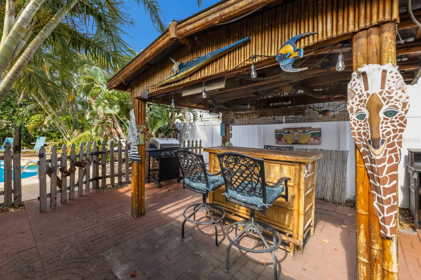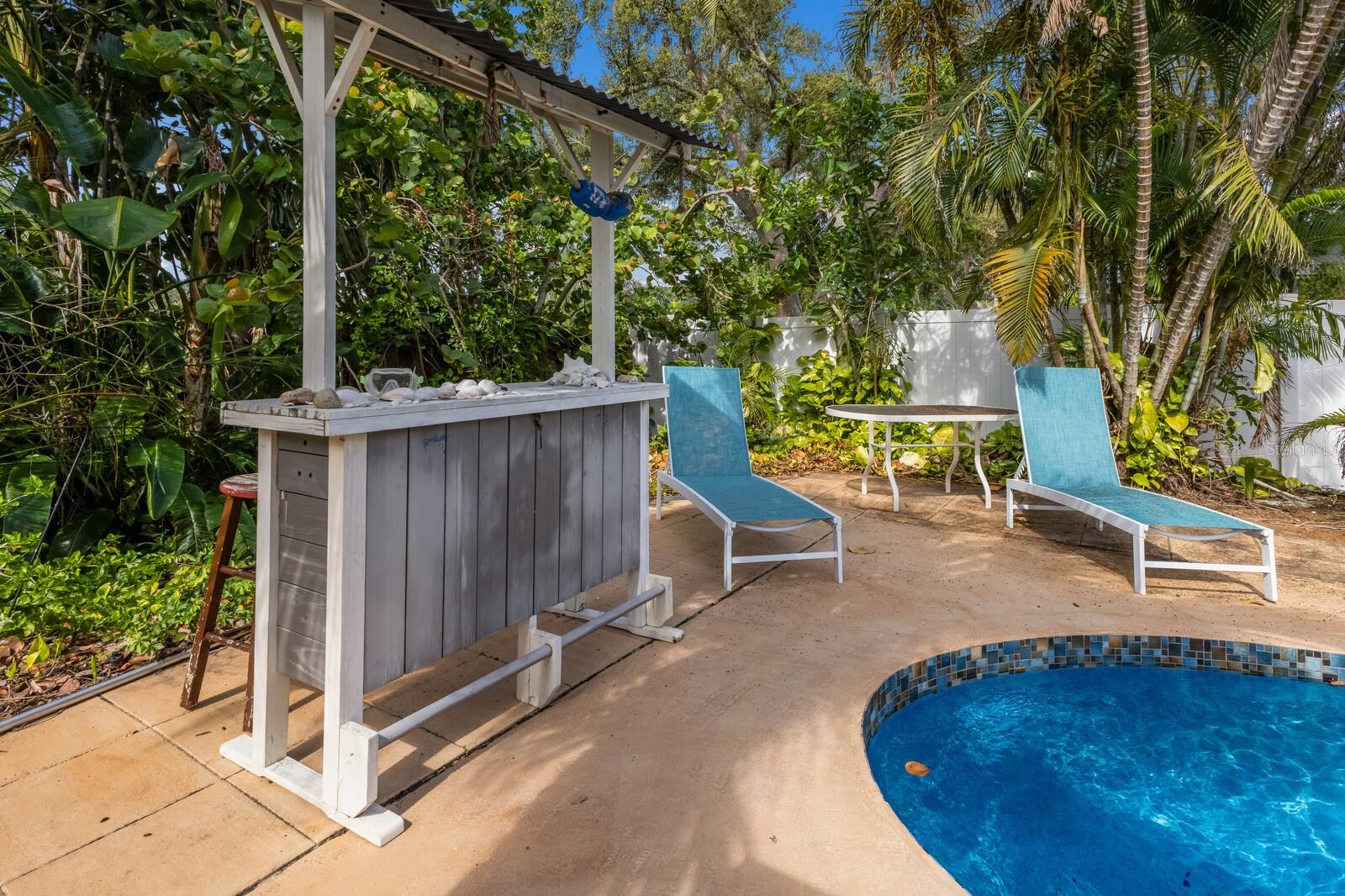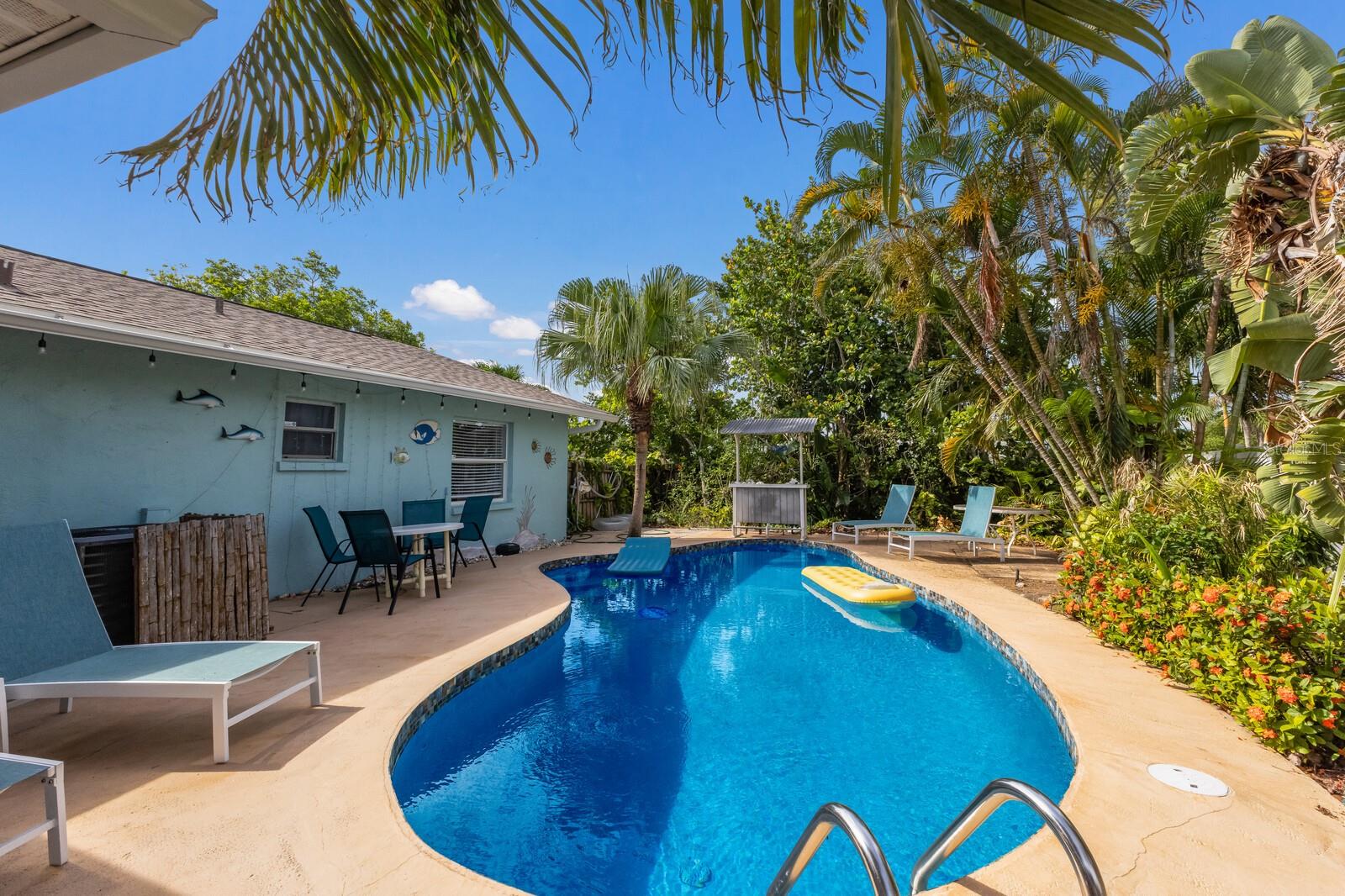 Tropical oasis in West Bradenton. Just around the corner from famous Anna Maria Island, Holmes Beach and only 2.5 miles to the sandy shores of dog-friendly Palma Sola Causeway! Welcome to Serenity by the Sea, an active and successful three-bedroom, two-bath, 1,532-square-foot short-term rental property. Filled with upgrades and coastal charm, it's no wonder this home has been generating rental income annually. Whether you’re seeking a proven investment property or your private Florida escape, this one checks every box. Enter to a bright, coastal-inspired interior, professionally furnished and styled to create a relaxing, vacation-ready atmosphere. Outside, the home transforms into a tropical retreat, featuring a resort-style heated swimming pool with several areas of lounge chairs for soaking up some sun. The pool area is fenced in and surrounded by large mature palm trees, giving you privacy and serenity. Separating the pool area from the separately fenced-in yard is your custom-built tiki bar! The ideal place to get together with friends or family to enjoy the Florida lifestyle all year round. Additionally, the owners have recently completed several large updates to the property for peace of mind as well as long-term value. Some notable recent improvements include a 2024 roof, a 2024 HVAC, a new 2025 electrical panel, recently resurfaced pool with Pebble-Tech, a new pool heater and pump, a new irrigation system, gutters installed around the property, a beautiful new wood privacy fence as well as new flooring in both baths. Around the desirable area of Palma Sola, with no HOA or deed restrictions, you can enjoy complete flexibility, continue operating as a thriving vacation rental or claim it as your sun-soaked getaway. Just minutes from some of Florida's best beaches, shopping, waterfront dining, beachfront horseback riding, historical downtown Bradenton and several world-class hospitals, this home has it all.